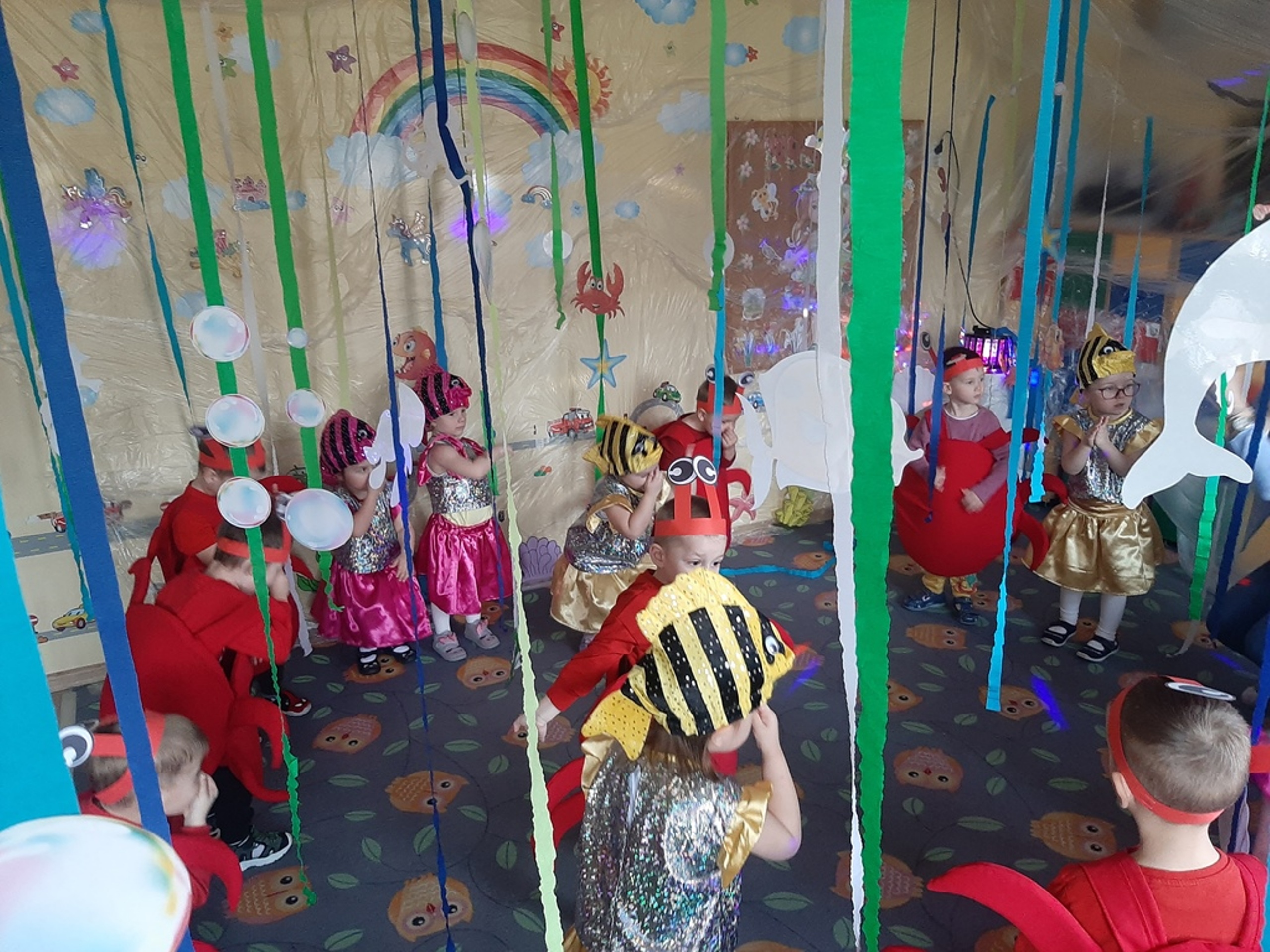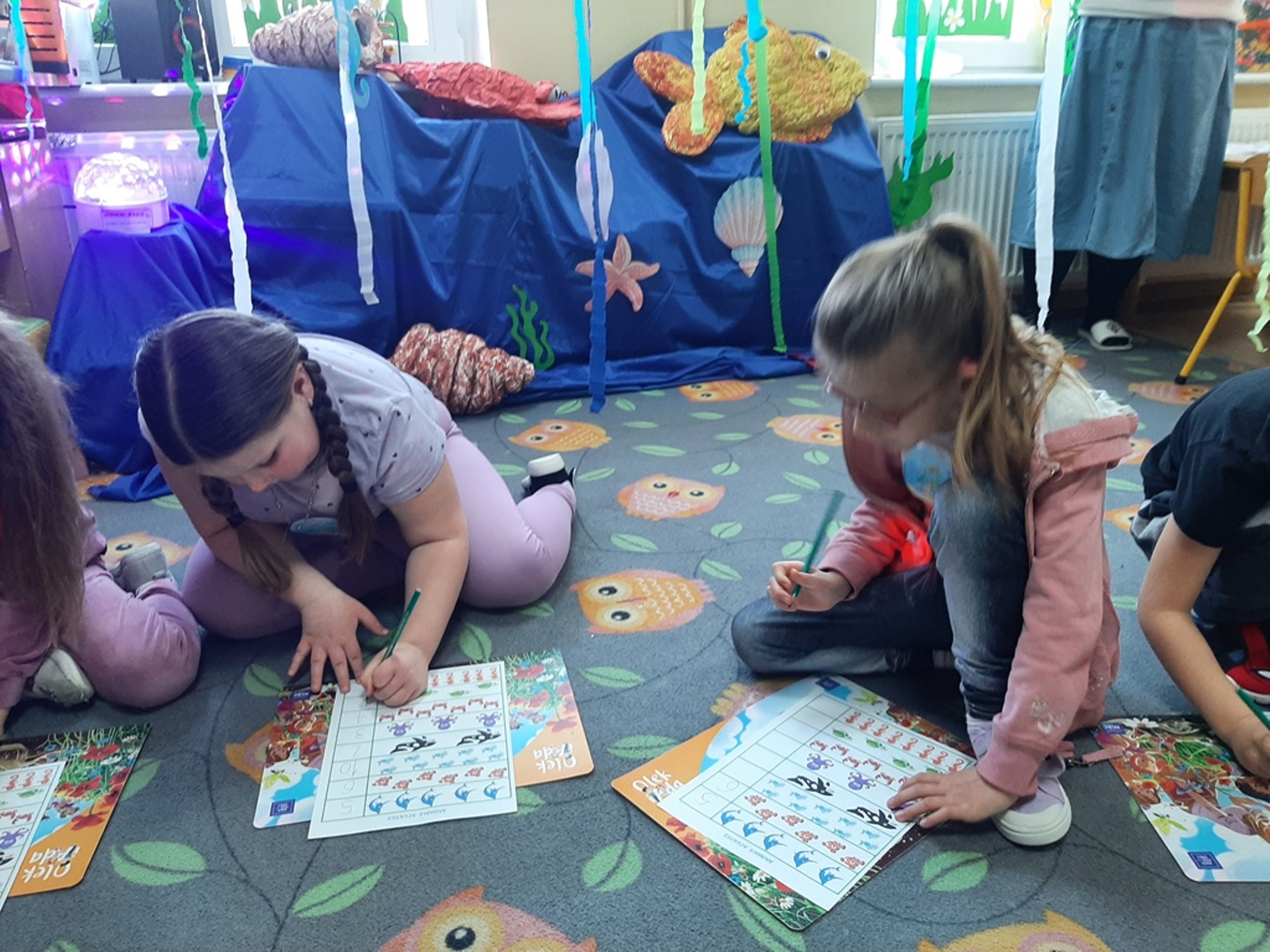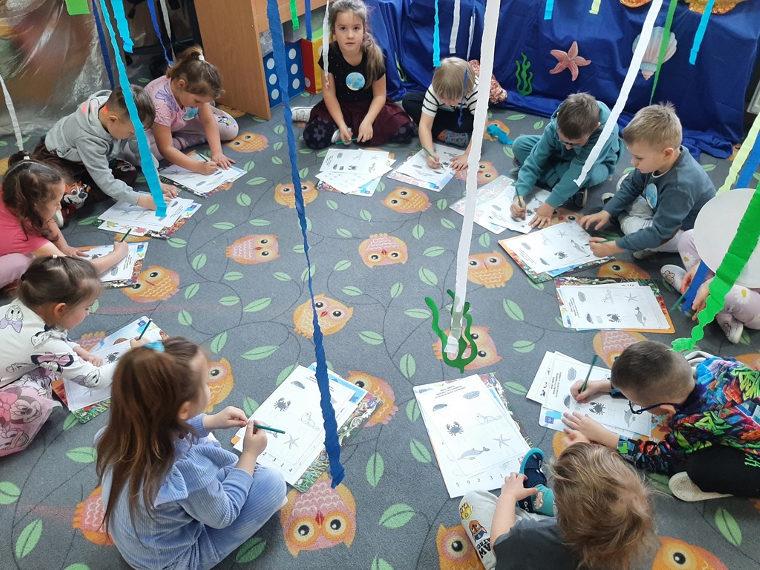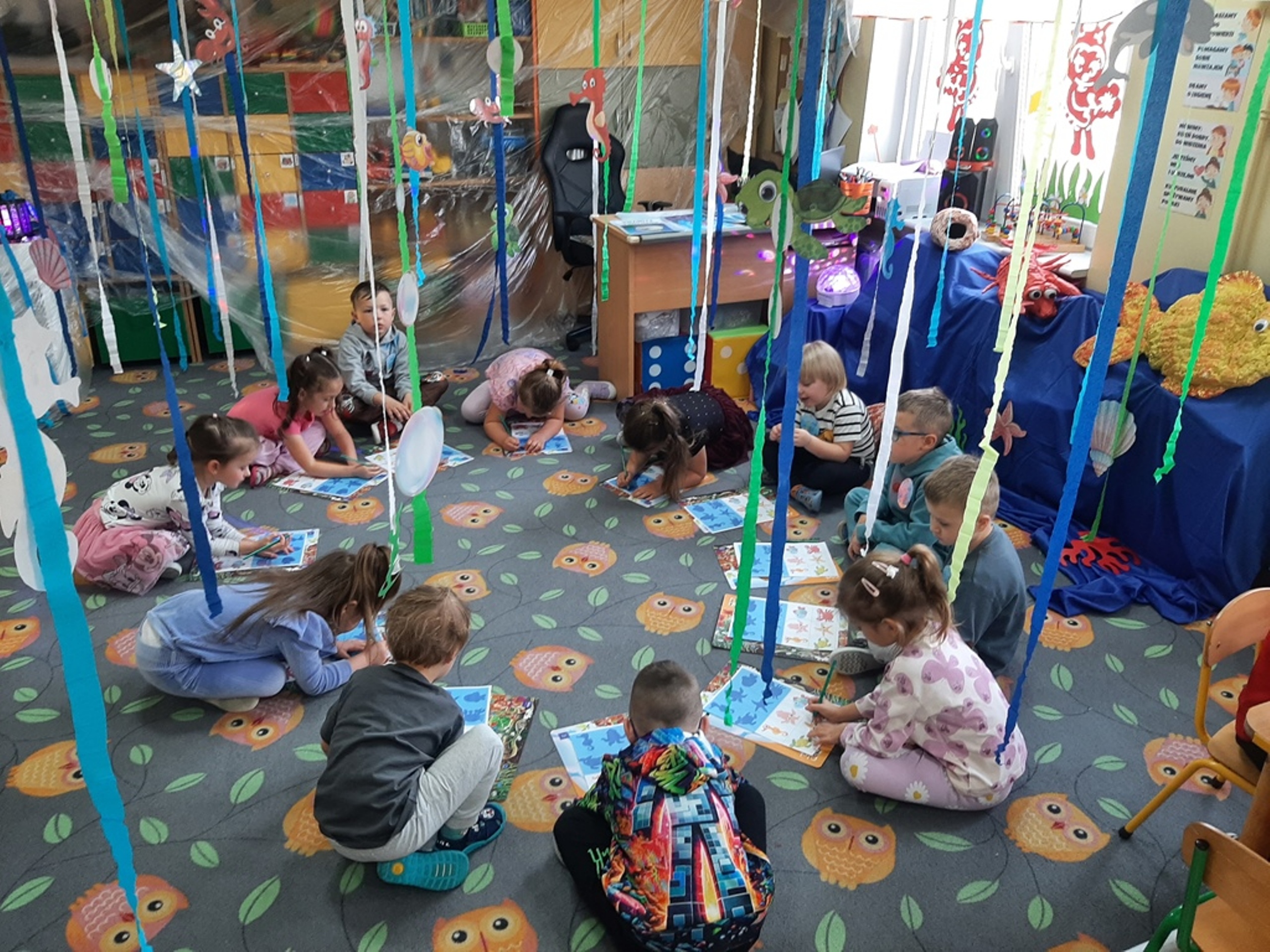 Dzieci poznały nazwy oceanów, dowiedziały się również, że ocean to bogaty i różnorodny świat pełen niezmierzonych przestworzy. Zajęcie wzbudziło wśród dzieci zainteresowanie światem podwodnych głębin, zwierząt i raf koralowych .Ważnym elementem zajęcia był temat zanieczyszczeń mórz i oceanów przez rozwiniętą i niszczycielską działalność człowieka. Dzieci wysłuchały ciekawostek związanych z możliwością ochrony środowiska wodnego oraz korzyściami jakie niesie ze sobą oszczędzanie wody. Dzieci z oddziału „Bratki” zaprosiły do wspólnej zabawy kolegów i koleżanki z oddziału „Tulipanki” i „Stokrotki”. Po zakończonej części edukacyjnej przyszedł czas na zabawę.