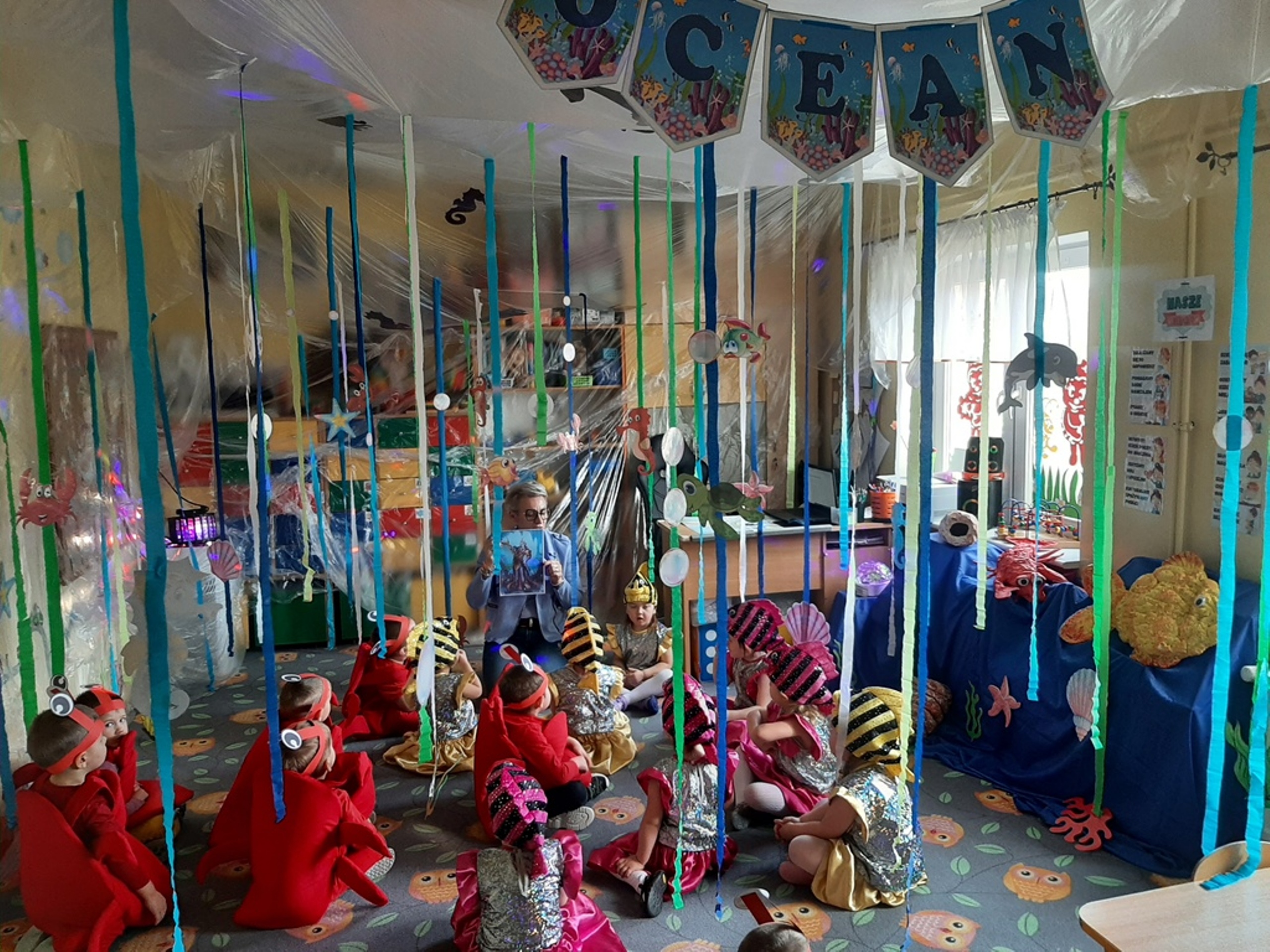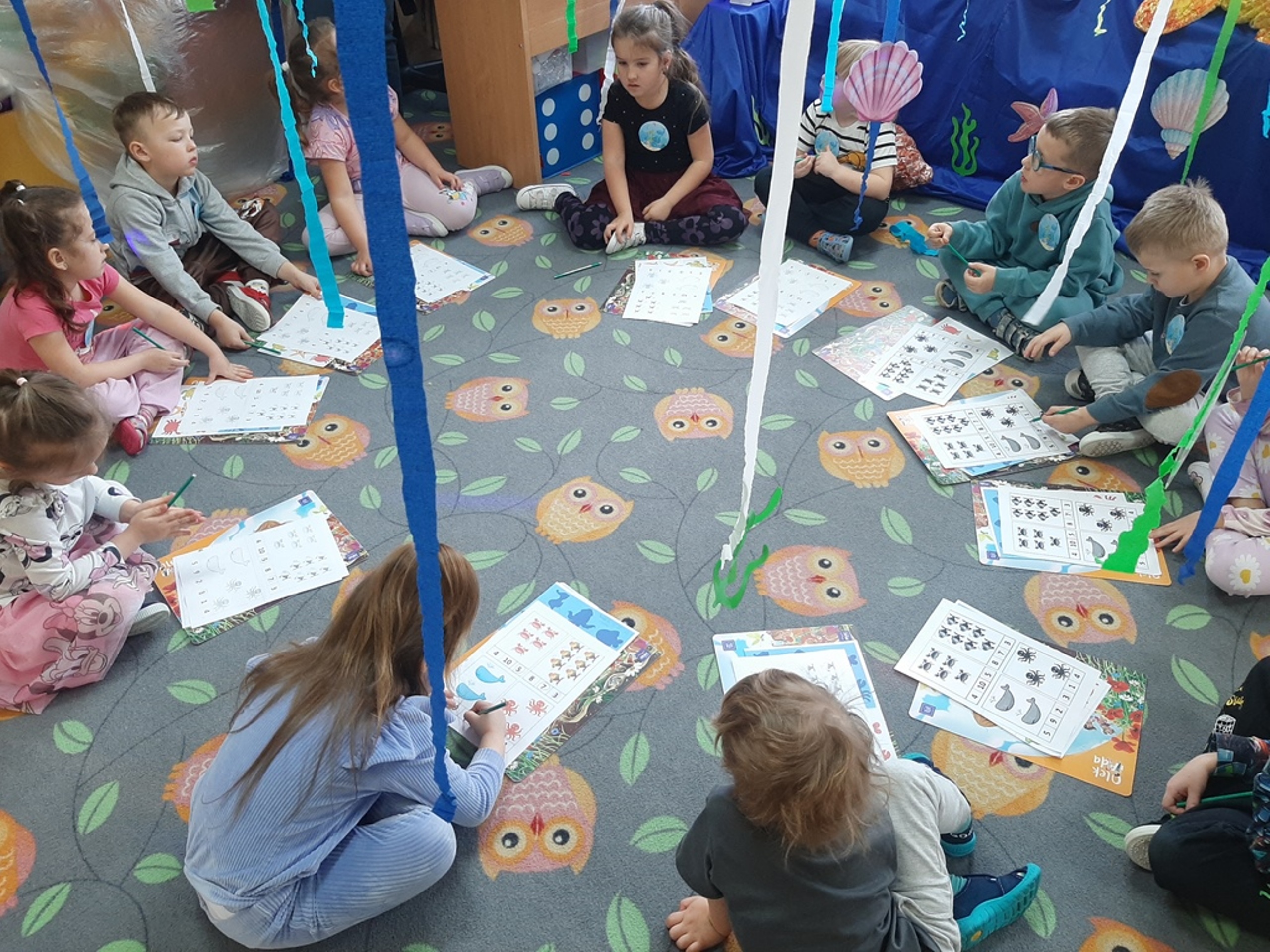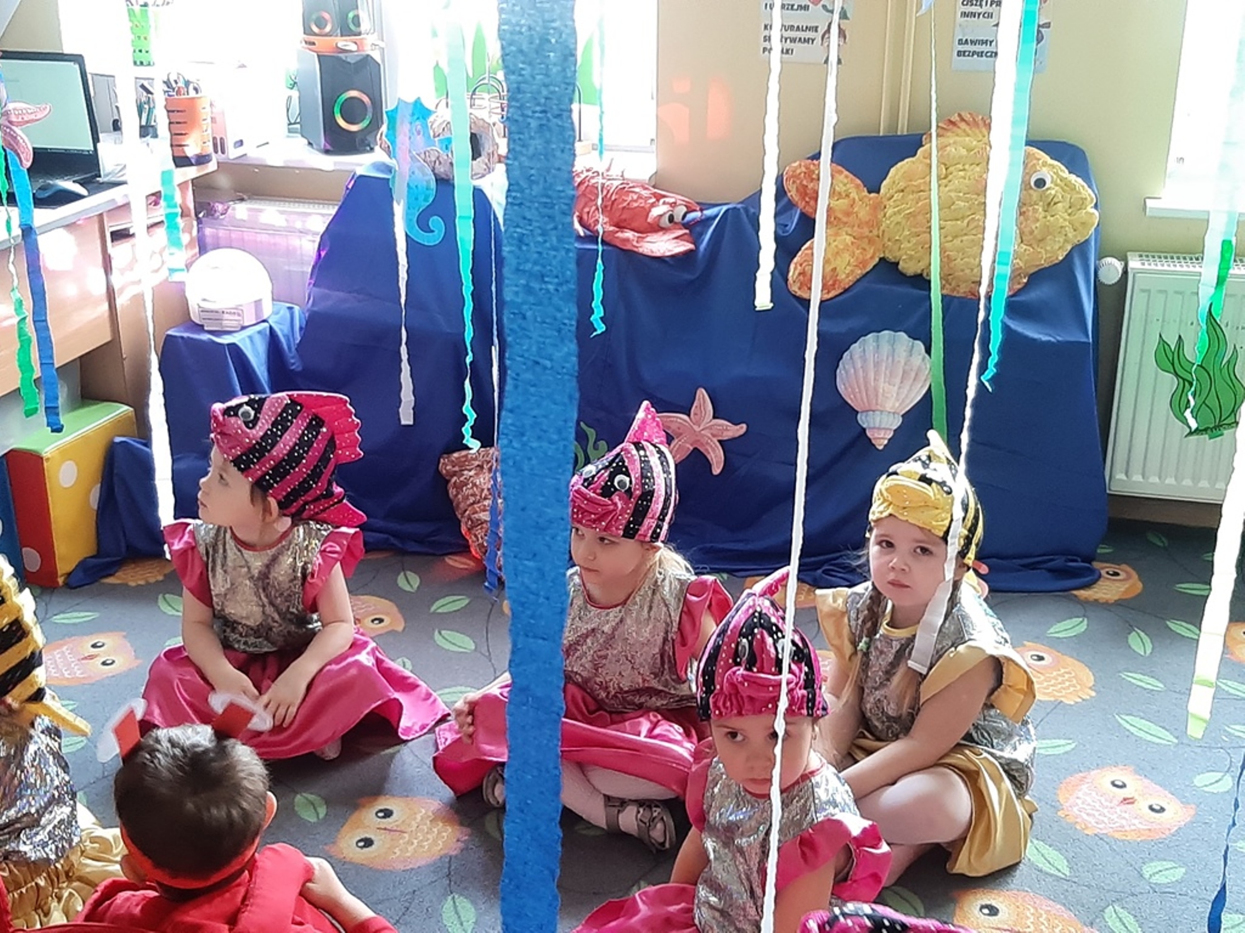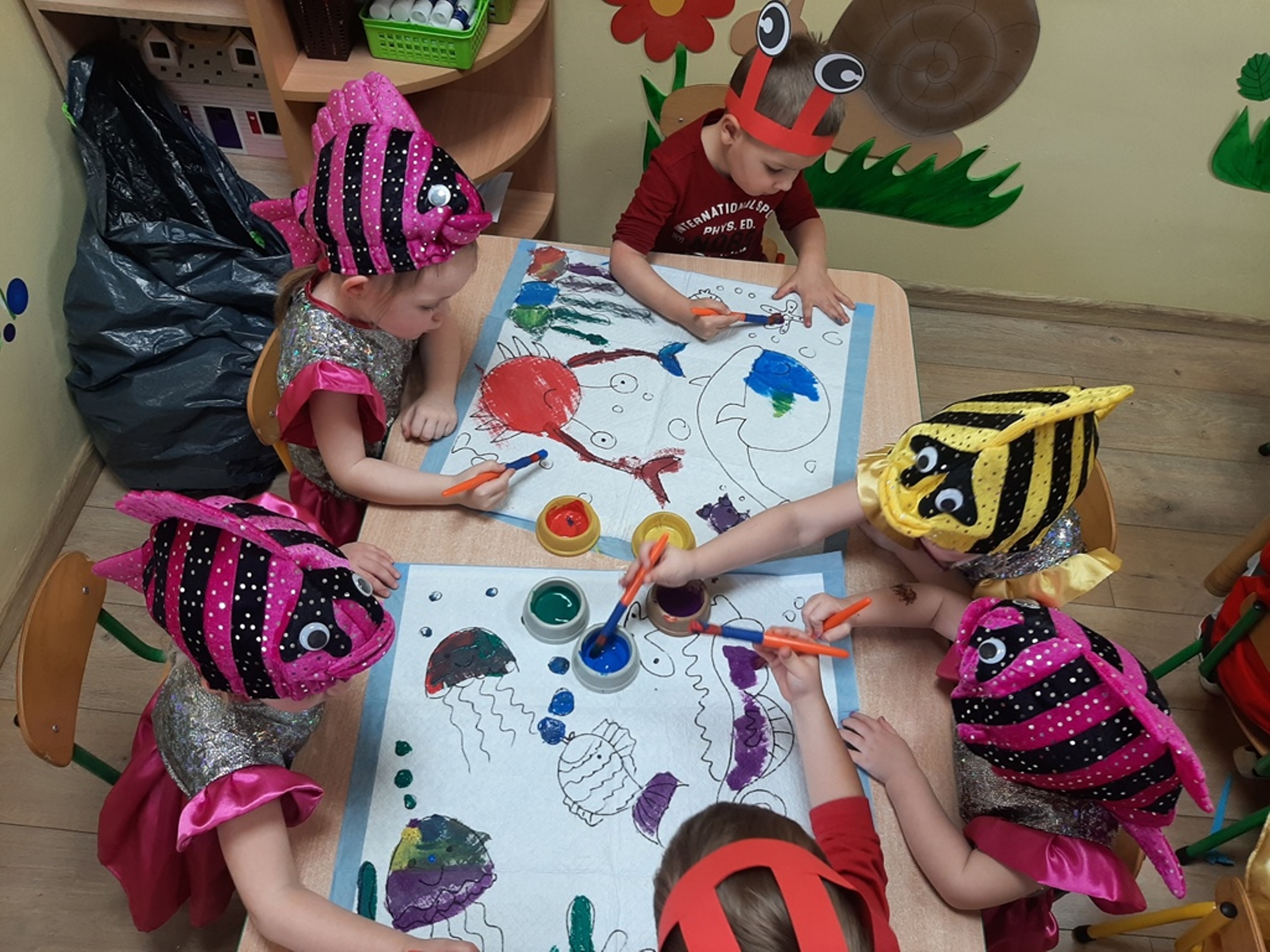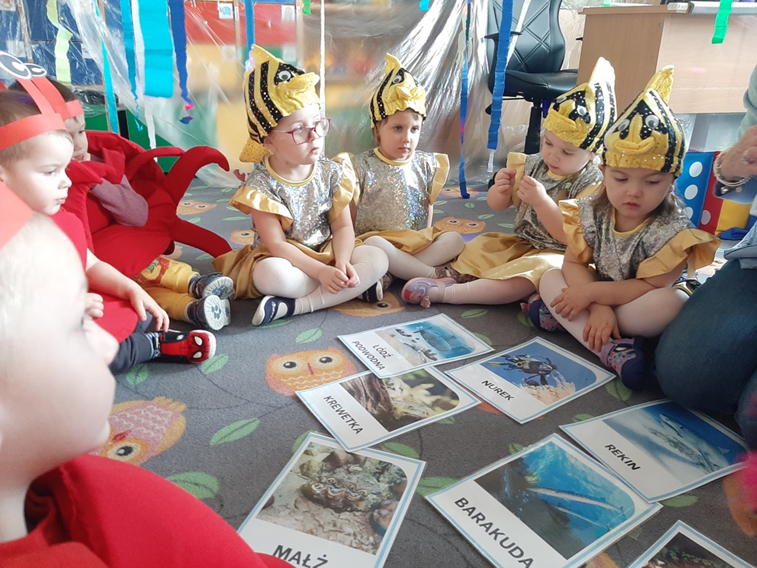 Dzieci poznały nazwy oceanów, dowiedziały się również, że ocean to bogaty i różnorodny świat pełen niezmierzonych przestworzy. Zajęcie wzbudziło wśród dzieci zainteresowanie światem podwodnych głębin, zwierząt i raf koralowych .Ważnym elementem zajęcia był temat zanieczyszczeń mórz i oceanów przez rozwiniętą i niszczycielską działalność człowieka. Dzieci wysłuchały ciekawostek związanych z możliwością ochrony środowiska wodnego oraz korzyściami jakie niesie ze sobą oszczędzanie wody. Dzieci z oddziału „Bratki” zaprosiły do wspólnej zabawy kolegów i koleżanki z oddziału „Tulipanki” i „Stokrotki”. Po zakończonej części edukacyjnej przyszedł czas na zabawę.