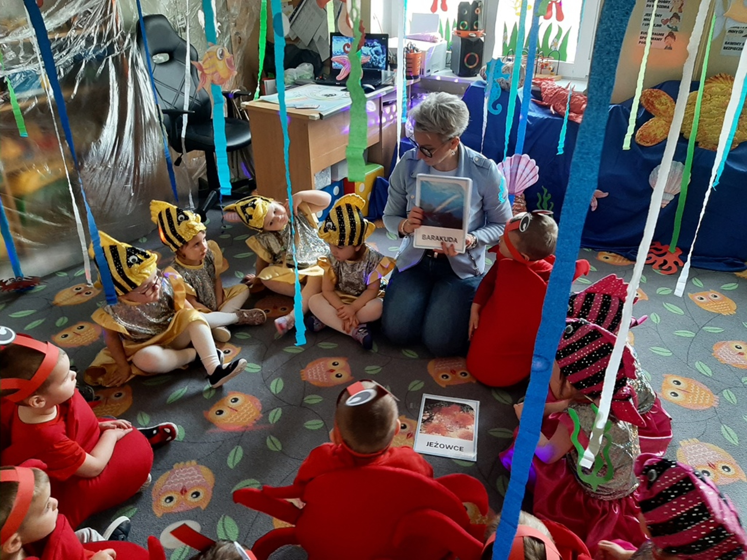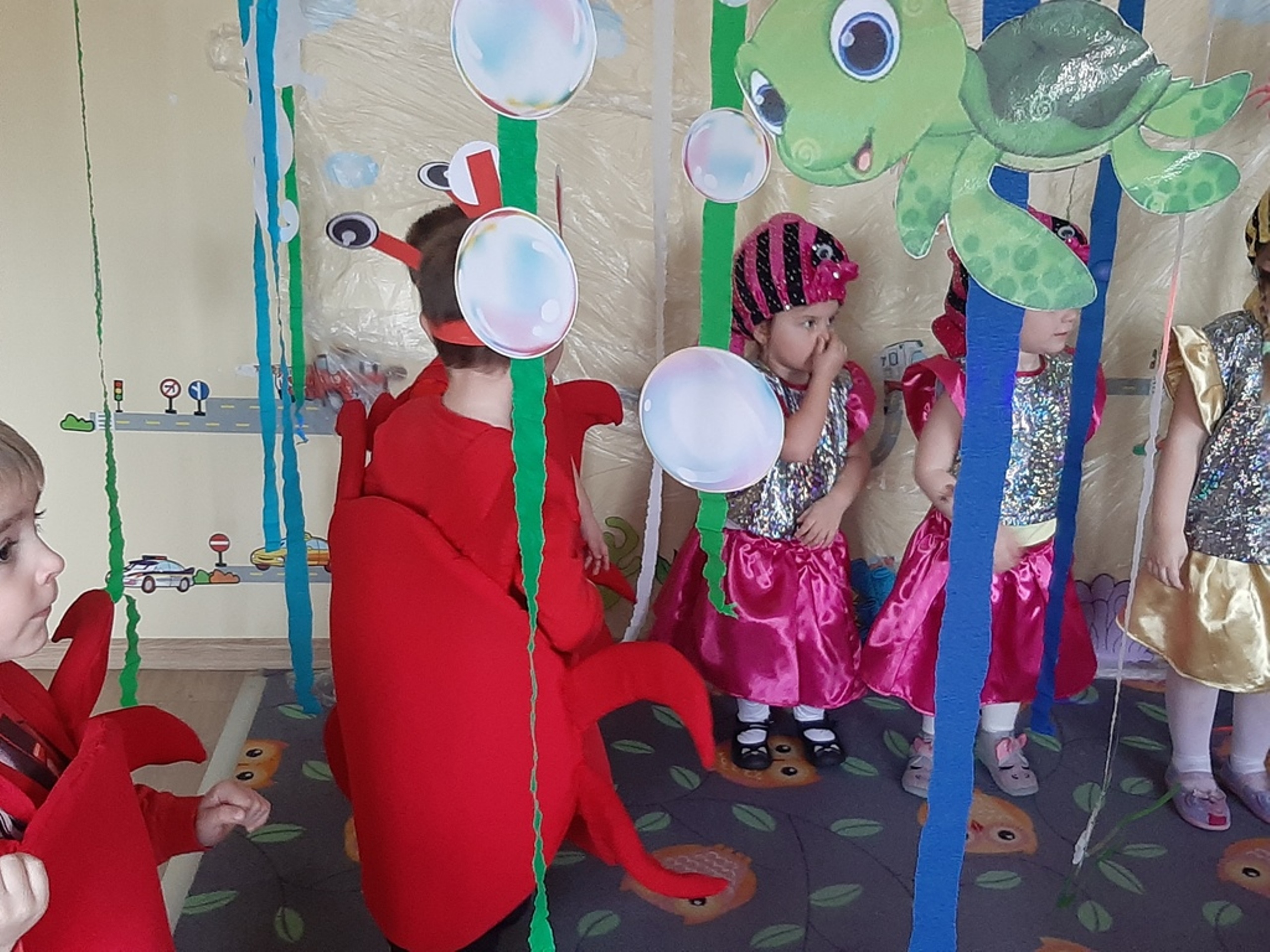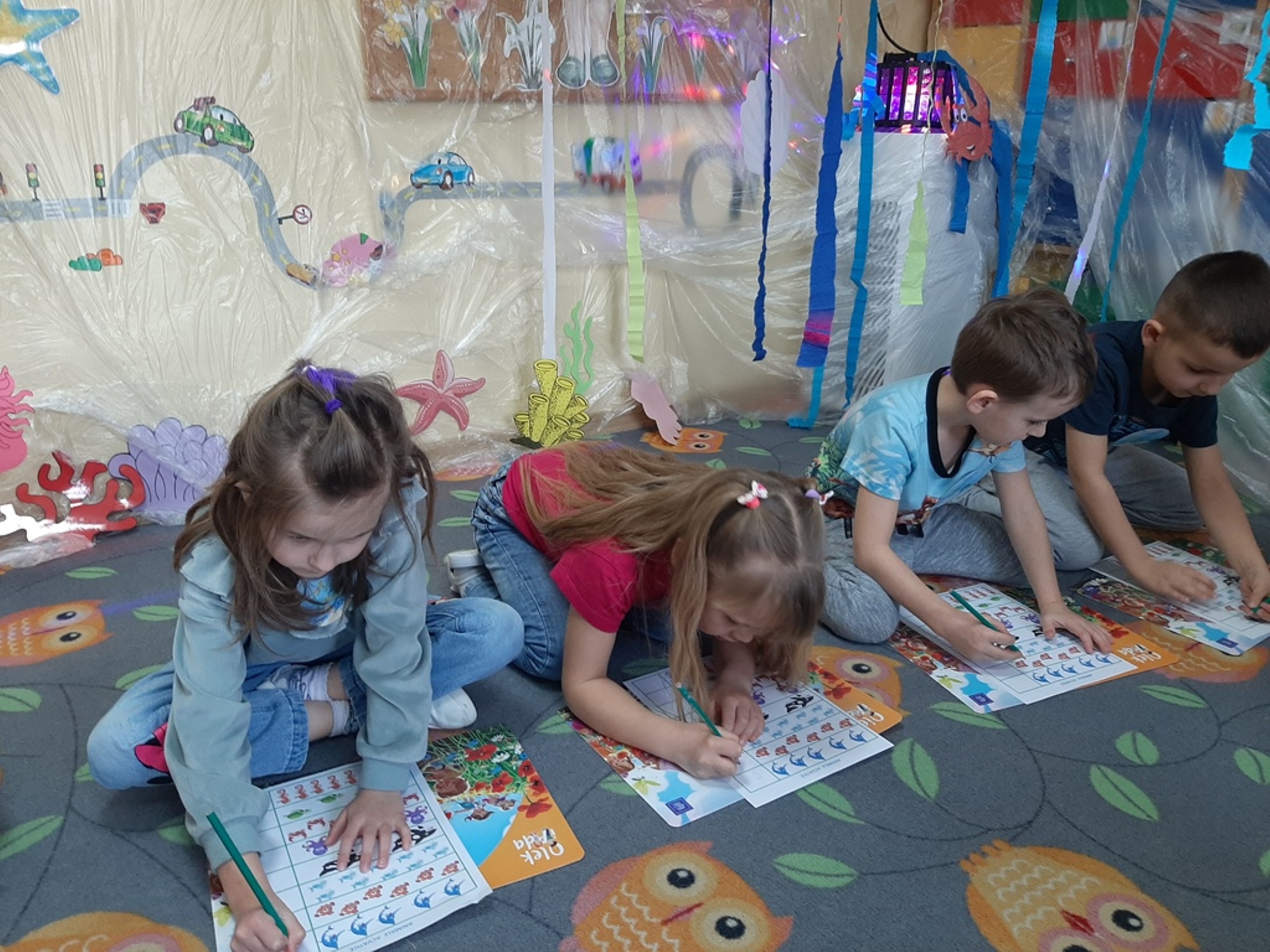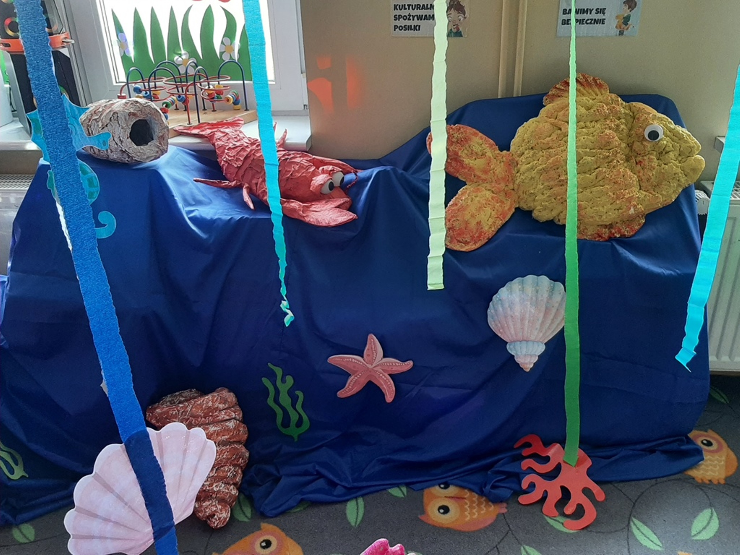 Dzieci poznały nazwy oceanów, dowiedziały się również, że ocean to bogaty i różnorodny świat pełen niezmierzonych przestworzy. Zajęcie wzbudziło wśród dzieci zainteresowanie światem podwodnych głębin, zwierząt i raf koralowych .Ważnym elementem zajęcia był temat zanieczyszczeń mórz i oceanów przez rozwiniętą i niszczycielską działalność człowieka. Dzieci wysłuchały ciekawostek związanych z możliwością ochrony środowiska wodnego oraz korzyściami jakie niesie ze sobą oszczędzanie wody. Dzieci z oddziału „Bratki” zaprosiły do wspólnej zabawy kolegów i koleżanki z oddziału „Tulipanki” i „Stokrotki”. Po zakończonej części edukacyjnej przyszedł czas na zabawę.