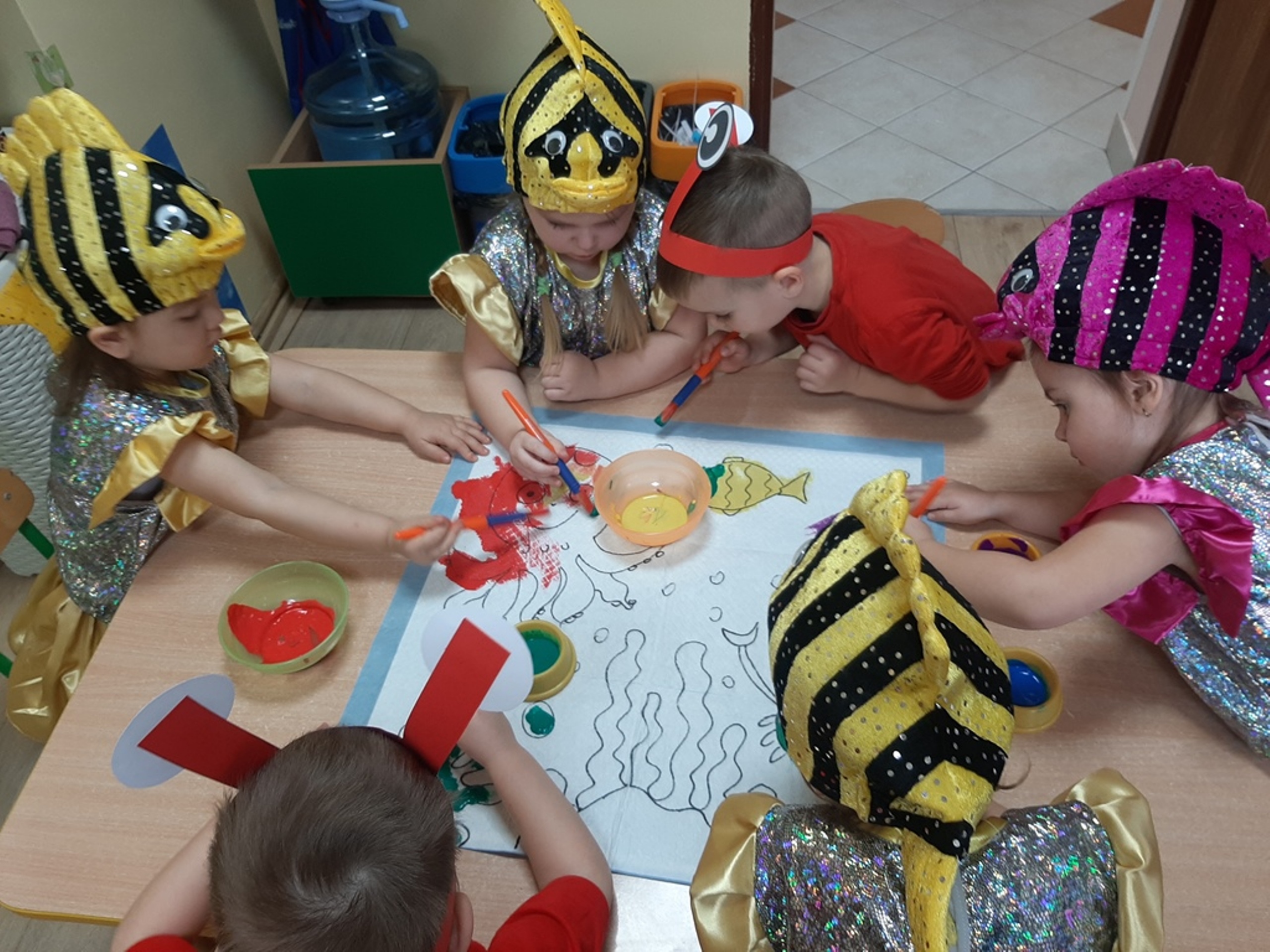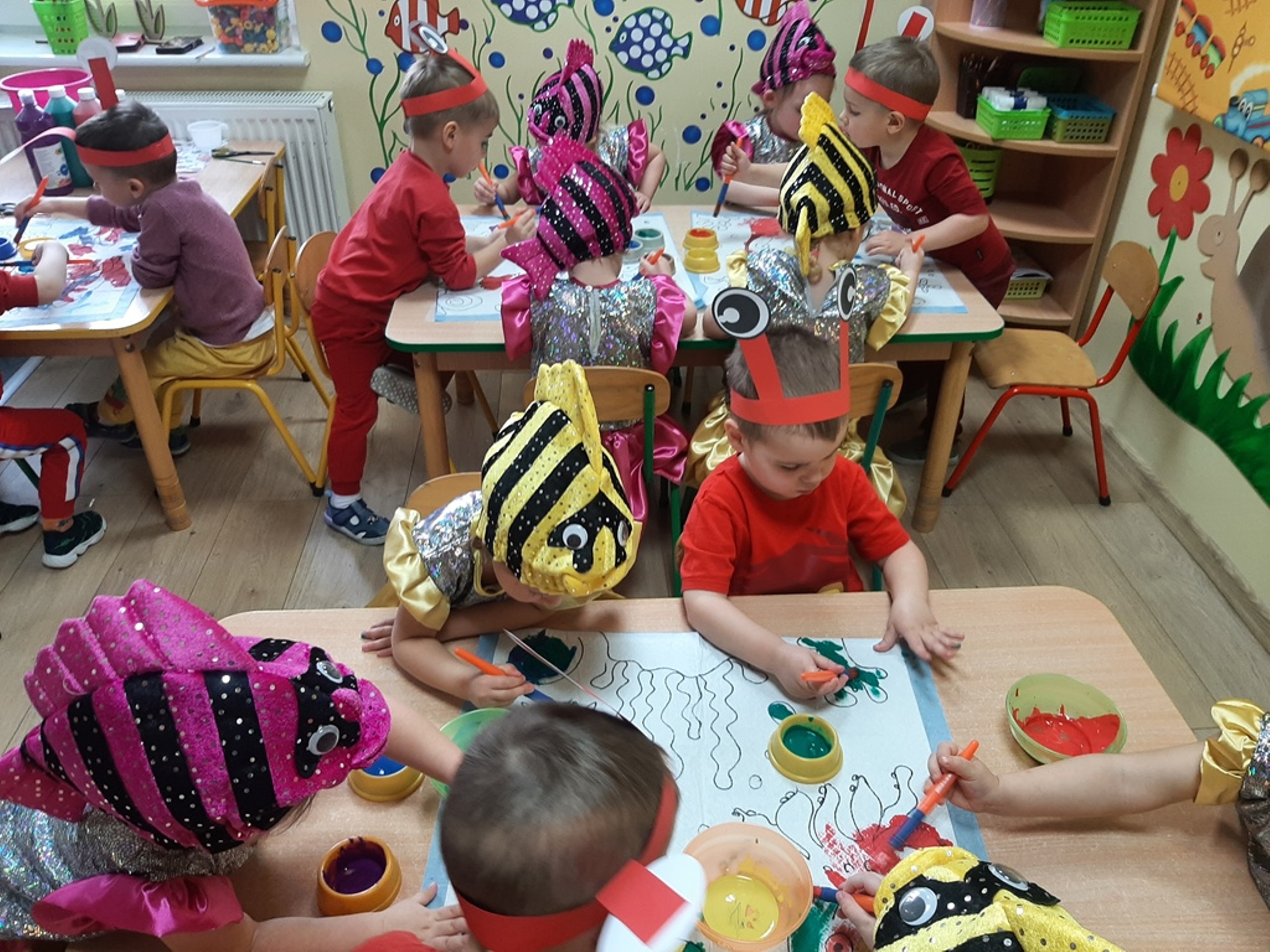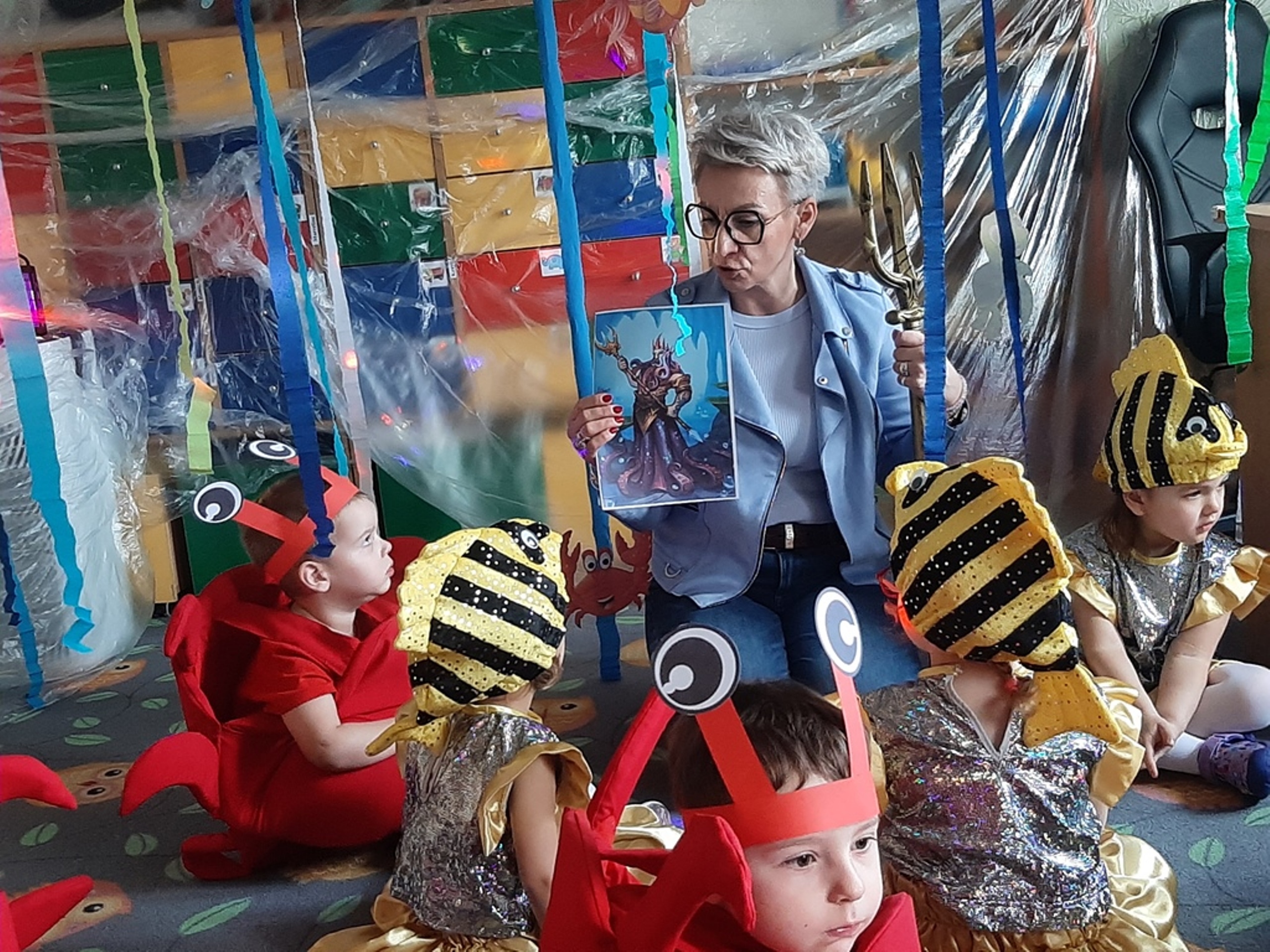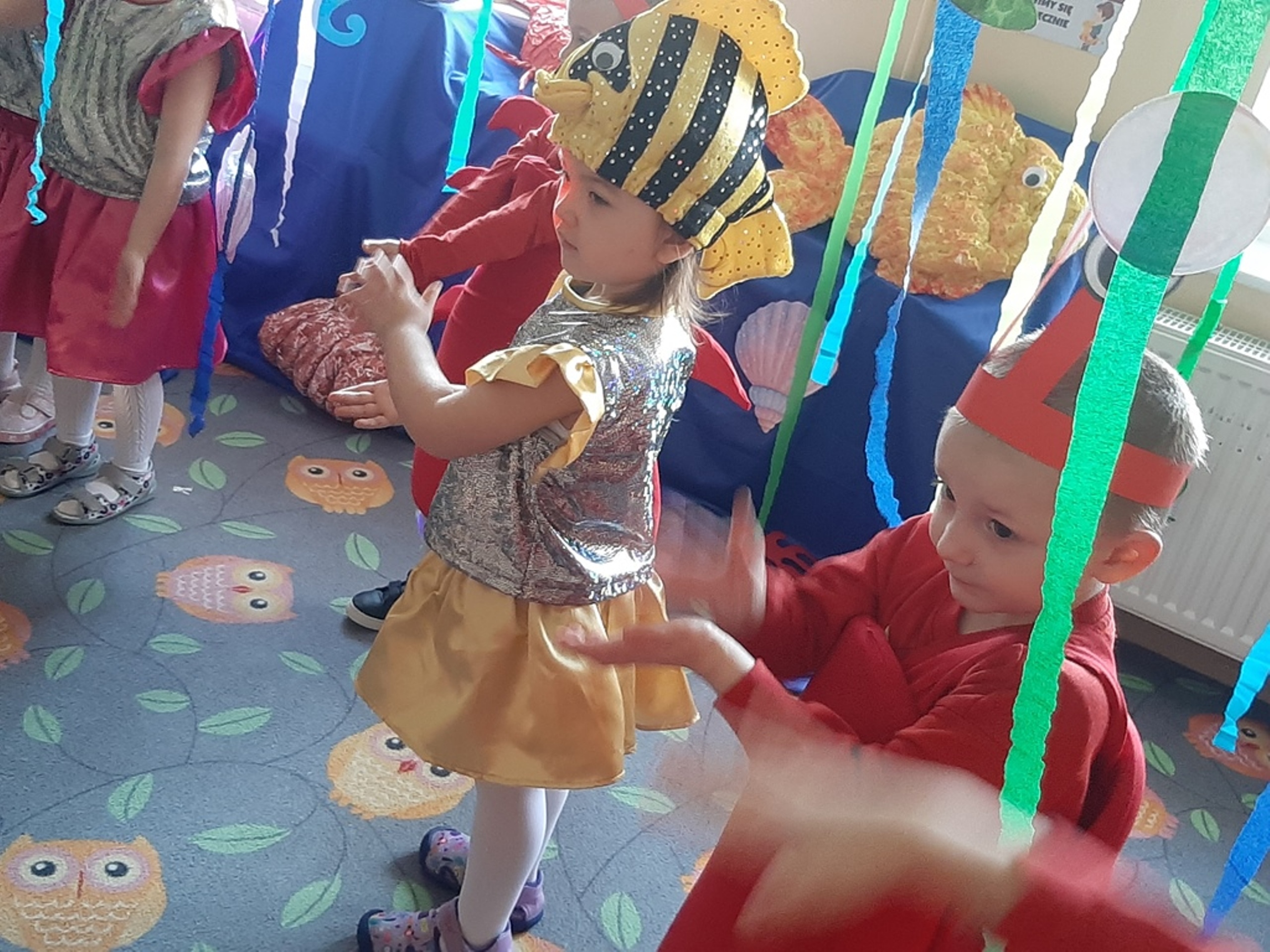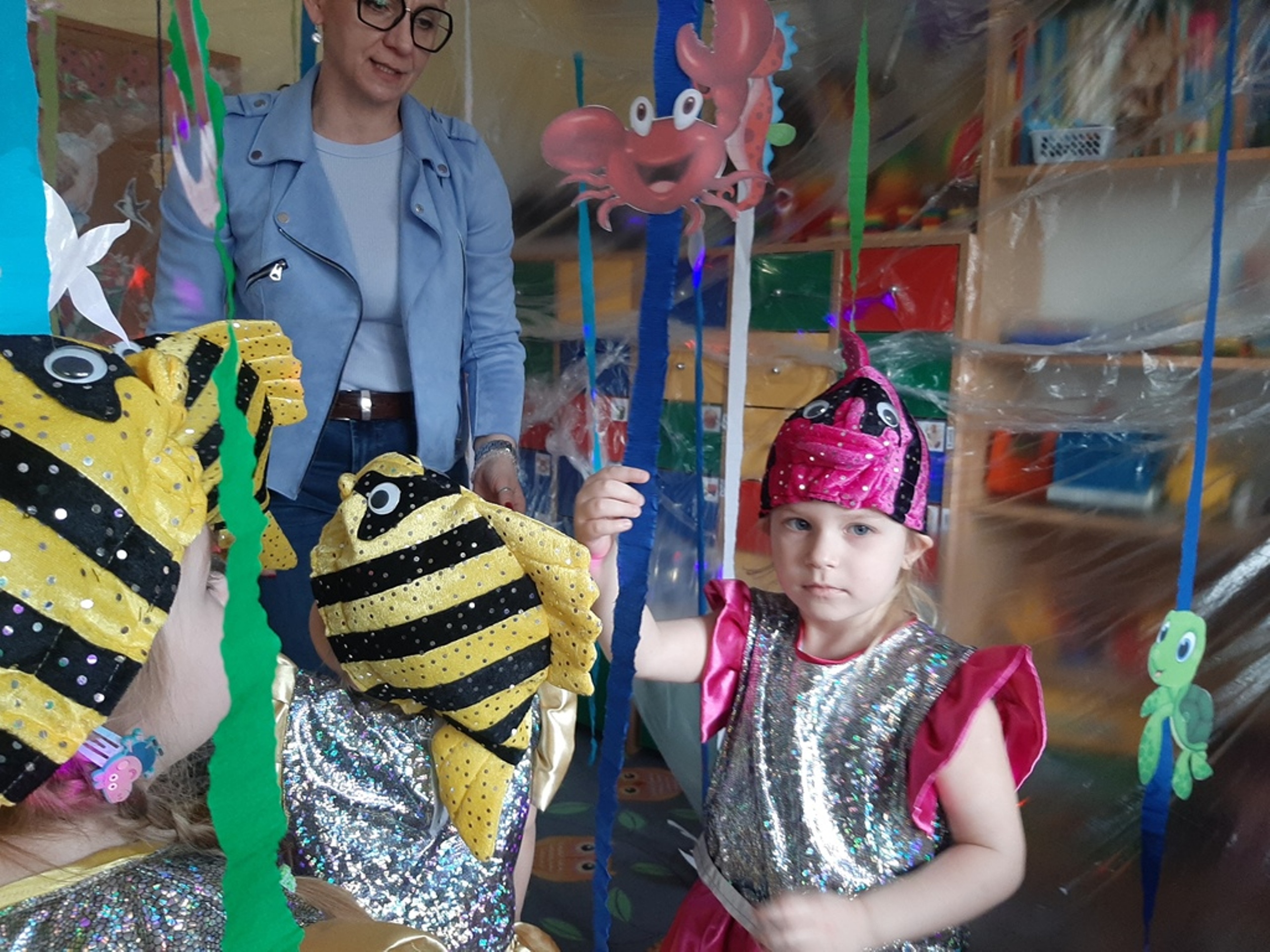 Dzieci poznały nazwy oceanów, dowiedziały się również, że ocean to bogaty i różnorodny świat pełen niezmierzonych przestworzy. Zajęcie wzbudziło wśród dzieci zainteresowanie światem podwodnych głębin, zwierząt i raf koralowych .Ważnym elementem zajęcia był temat zanieczyszczeń mórz i oceanów przez rozwiniętą i niszczycielską działalność człowieka. Dzieci wysłuchały ciekawostek związanych z możliwością ochrony środowiska wodnego oraz korzyściami jakie niesie ze sobą oszczędzanie wody. Dzieci z oddziału „Bratki” zaprosiły do wspólnej zabawy kolegów i koleżanki z oddziału „Tulipanki” i „Stokrotki”. Po zakończonej części edukacyjnej przyszedł czas na zabawę.
