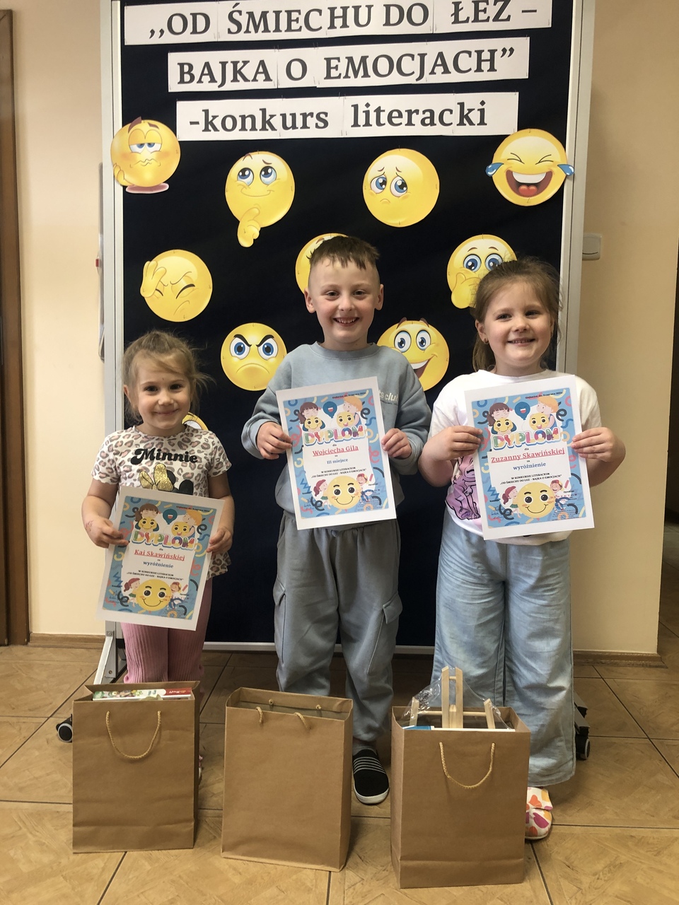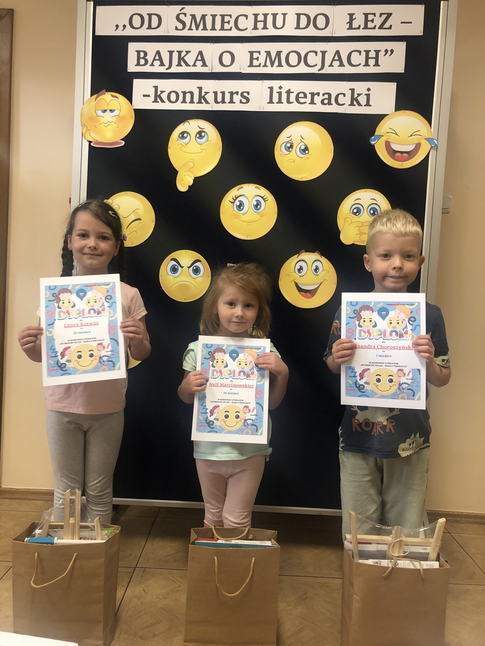W poniedziałek, 9 czerwca odbył się finał konkursu literackiego pt. „Od śmiechu do łez- bajka o emocjach”. Głównym celem konkursu było napisanie bajki, która przedstawi czytelnikowi sposób radzenia sobie z emocjami, uwrażliwi uczestników na piękno języka polskiego oraz stworzy sytuację dającą dziecku możliwość ciekawej formy spędzenia czasu z rodzicem.
