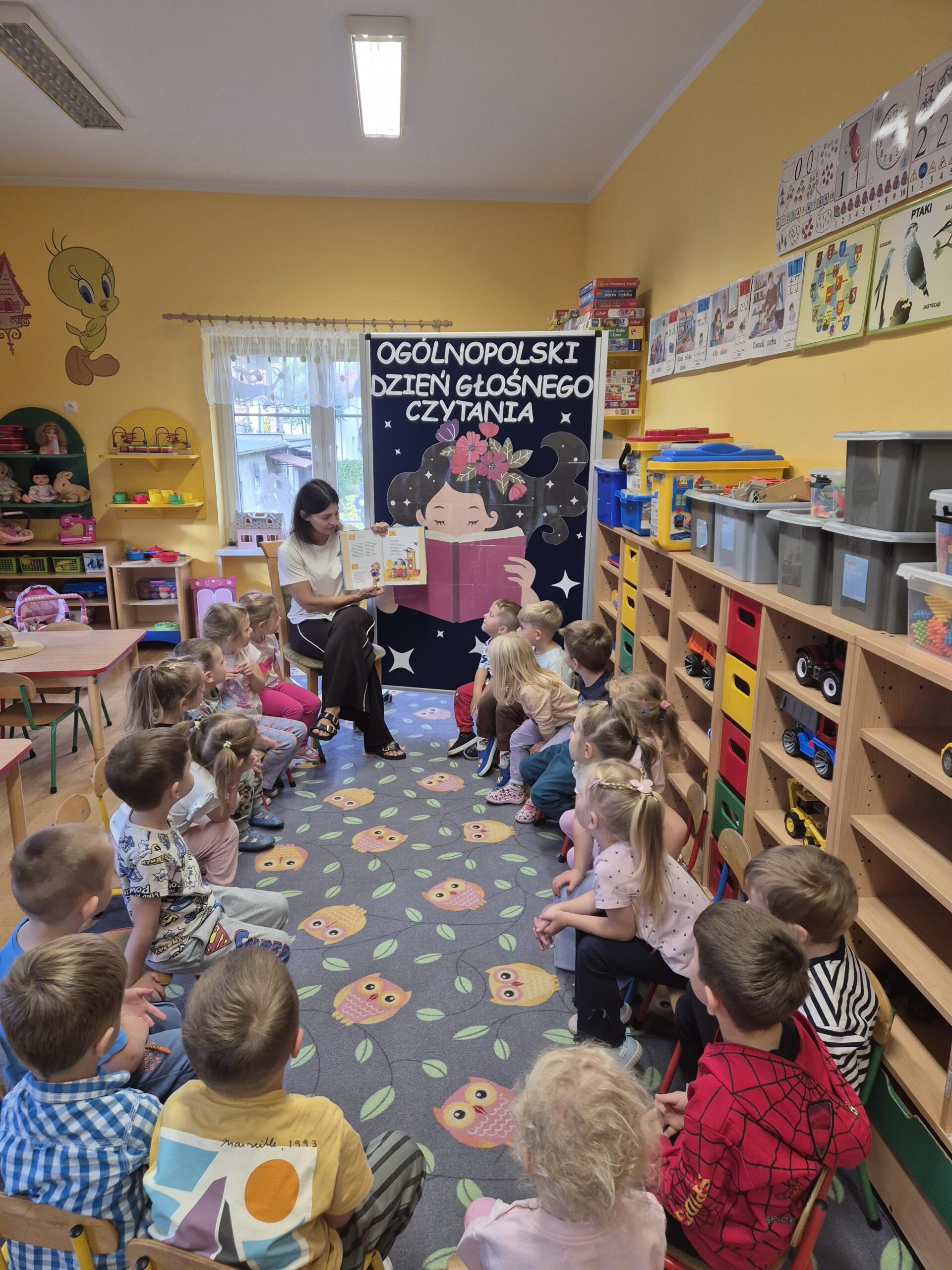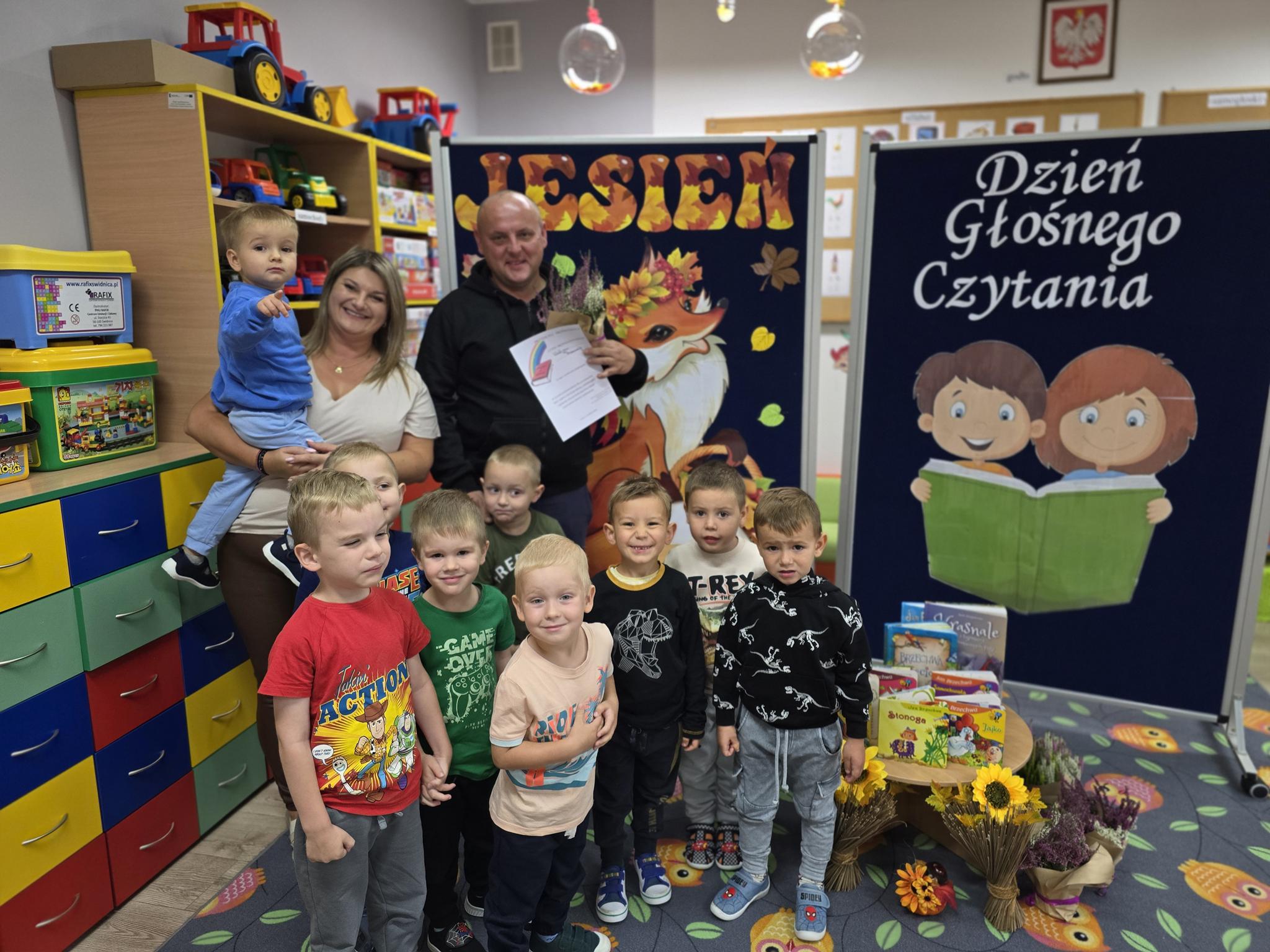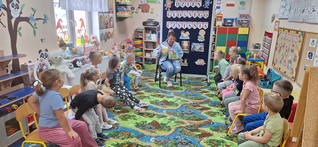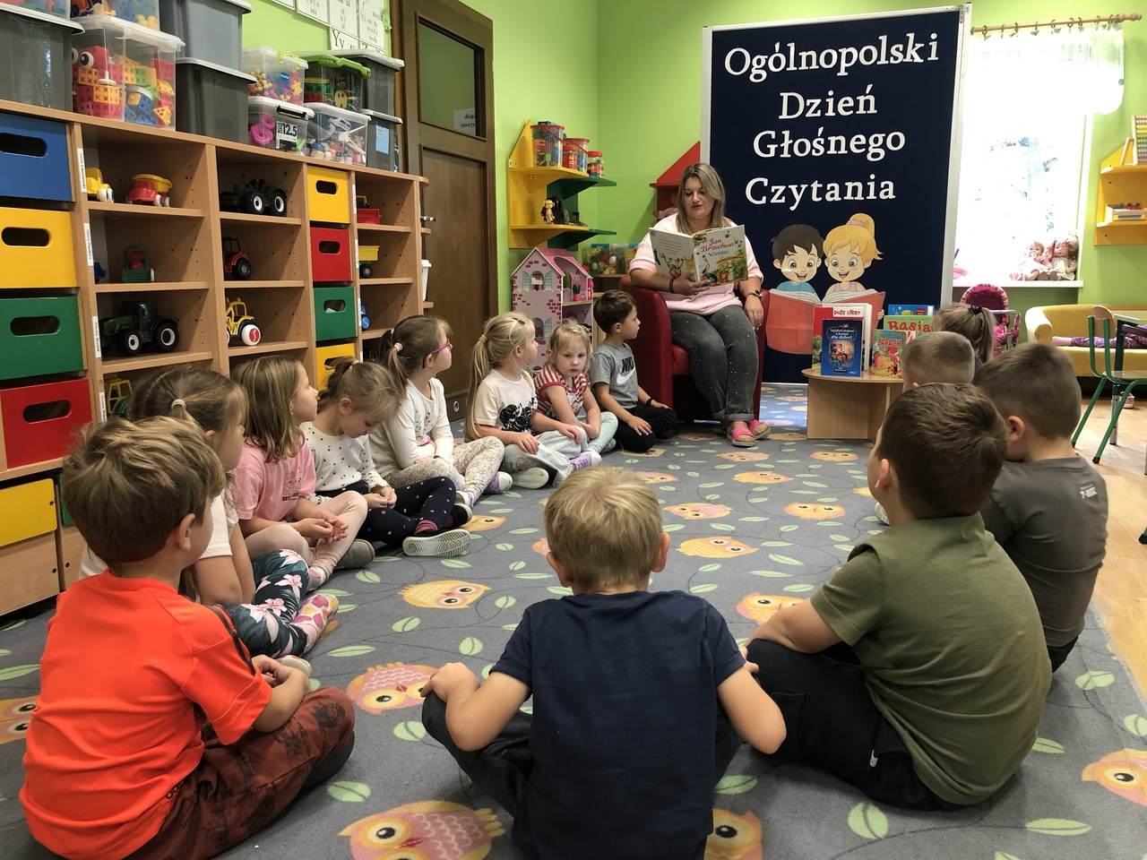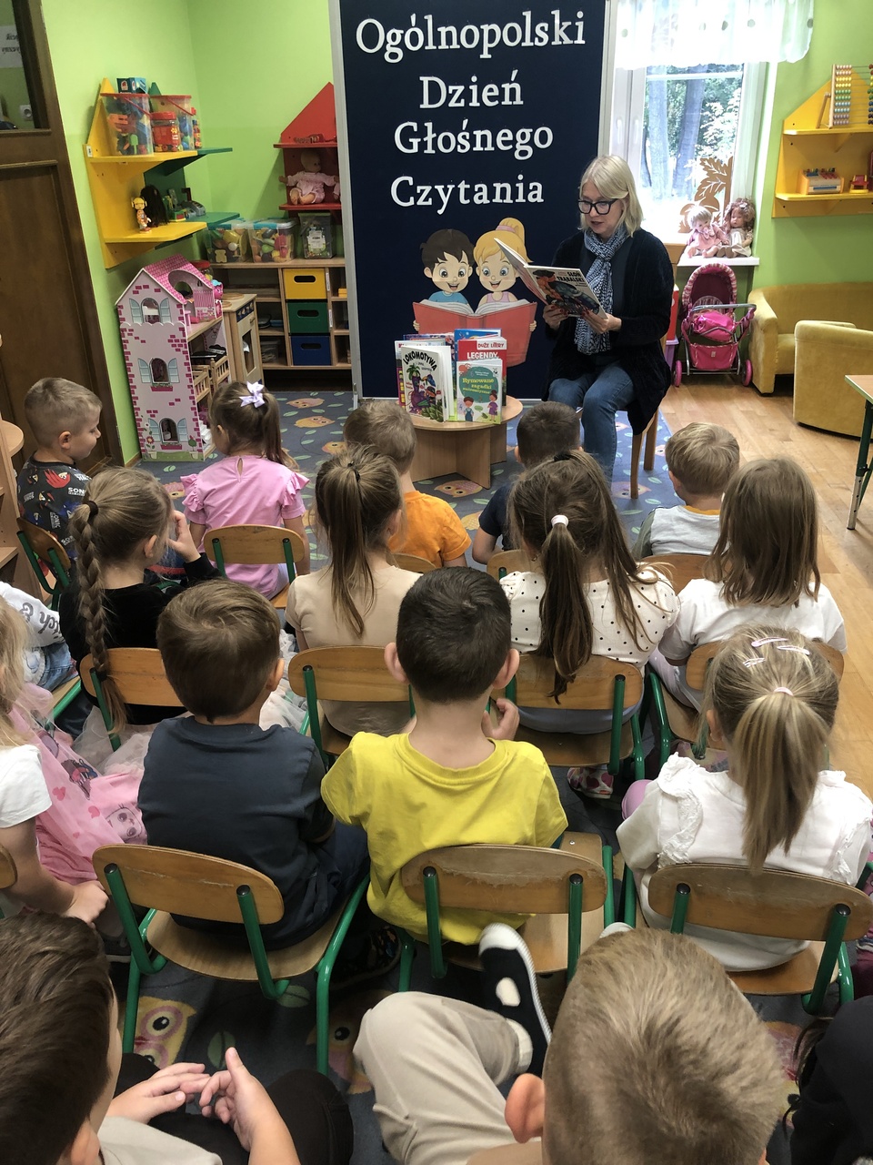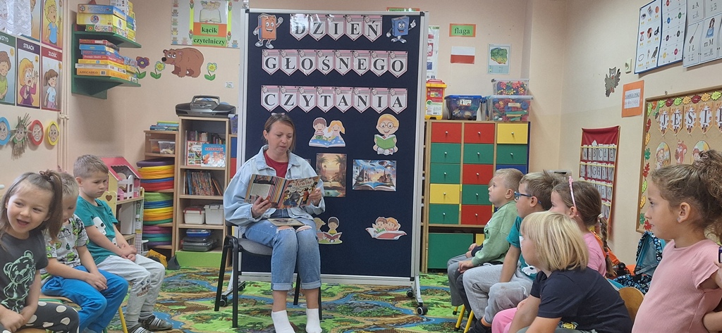 29 września w przedszkolu obchodzony był Ogólnopolski Dzień Głośnego Czytania. Głośne czytanie dzieciom jest prostą i przyjemną formą stymulacji rozwoju mowy i profilaktyki zaburzeń komunikacji językowej. Czytanie dzieciom na głos stymuluje ich rozwój, poszerza wiedzę o otaczającym świecie, wzbogaca słownictwo i pobudza wyobraźnię. Dzień Głośnego Czytania to świetna okazja do wspólnego odkrywania bogatego świata książek i przygód, które w nich na nas czekają. W Dniu Głośnego Czytania przedszkolaków odwiedzili goście, którzy czytali dzieciom specjalnie na tę okazję wybrane wiersze, bajki i baśnie. Przedszkolaki z wielkim zainteresowaniem słuchali czytanych tekstów oraz analizowali i oceniali zachowania bohaterów. To był wyjątkowy dzień, gdzie głośne czytanie miało wielką moc.