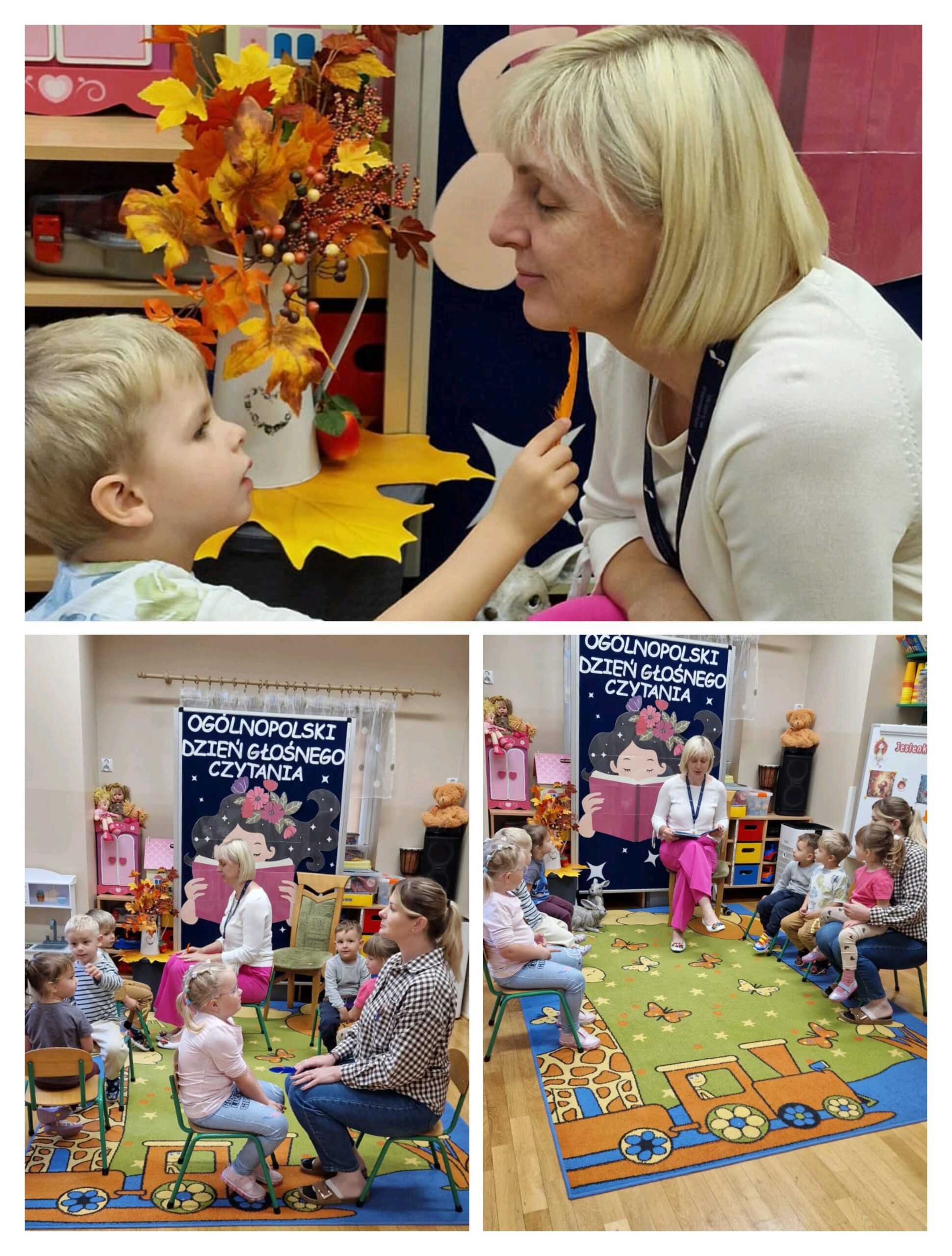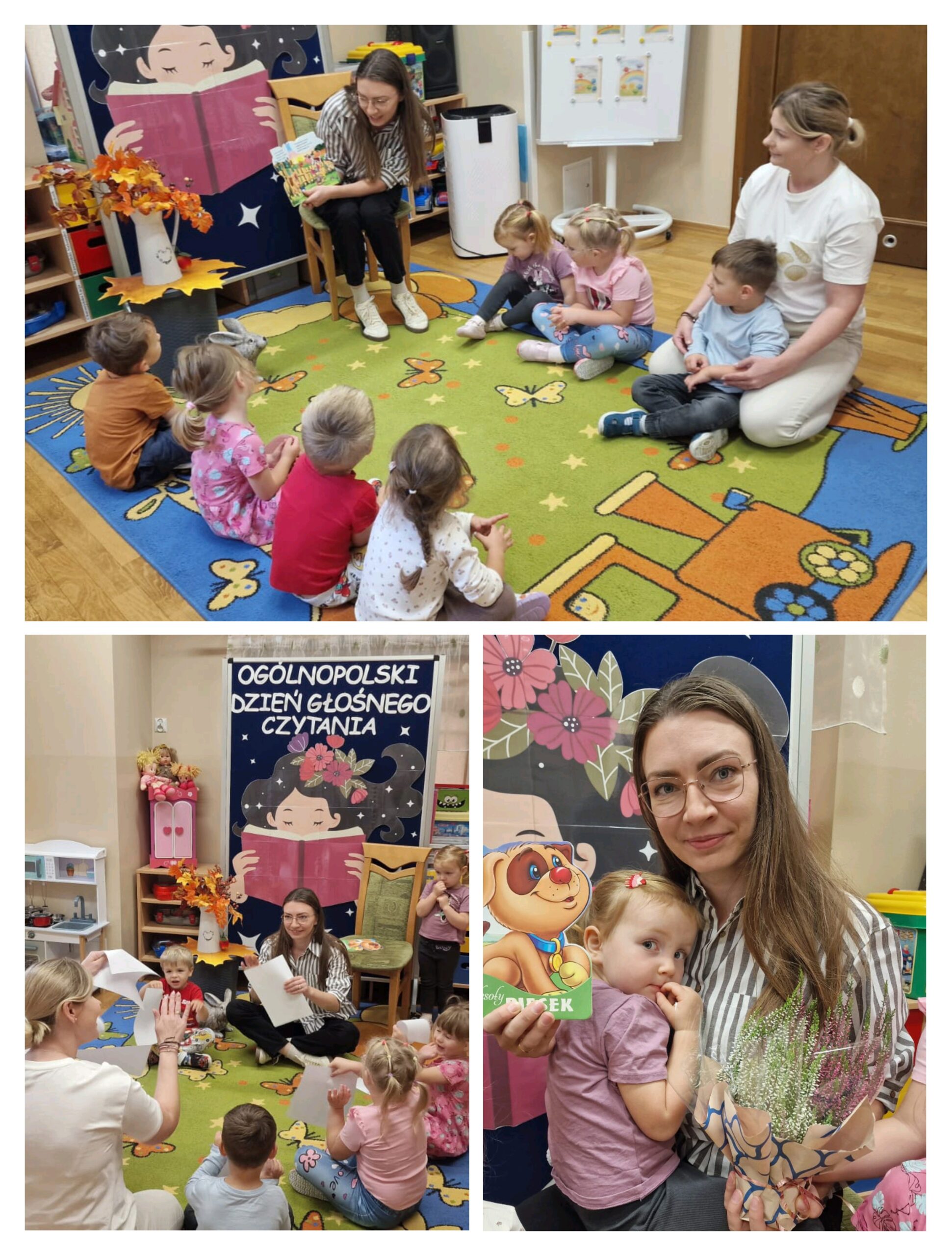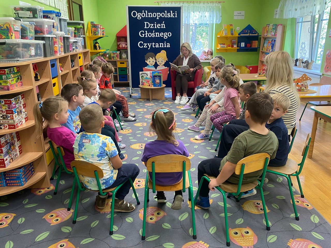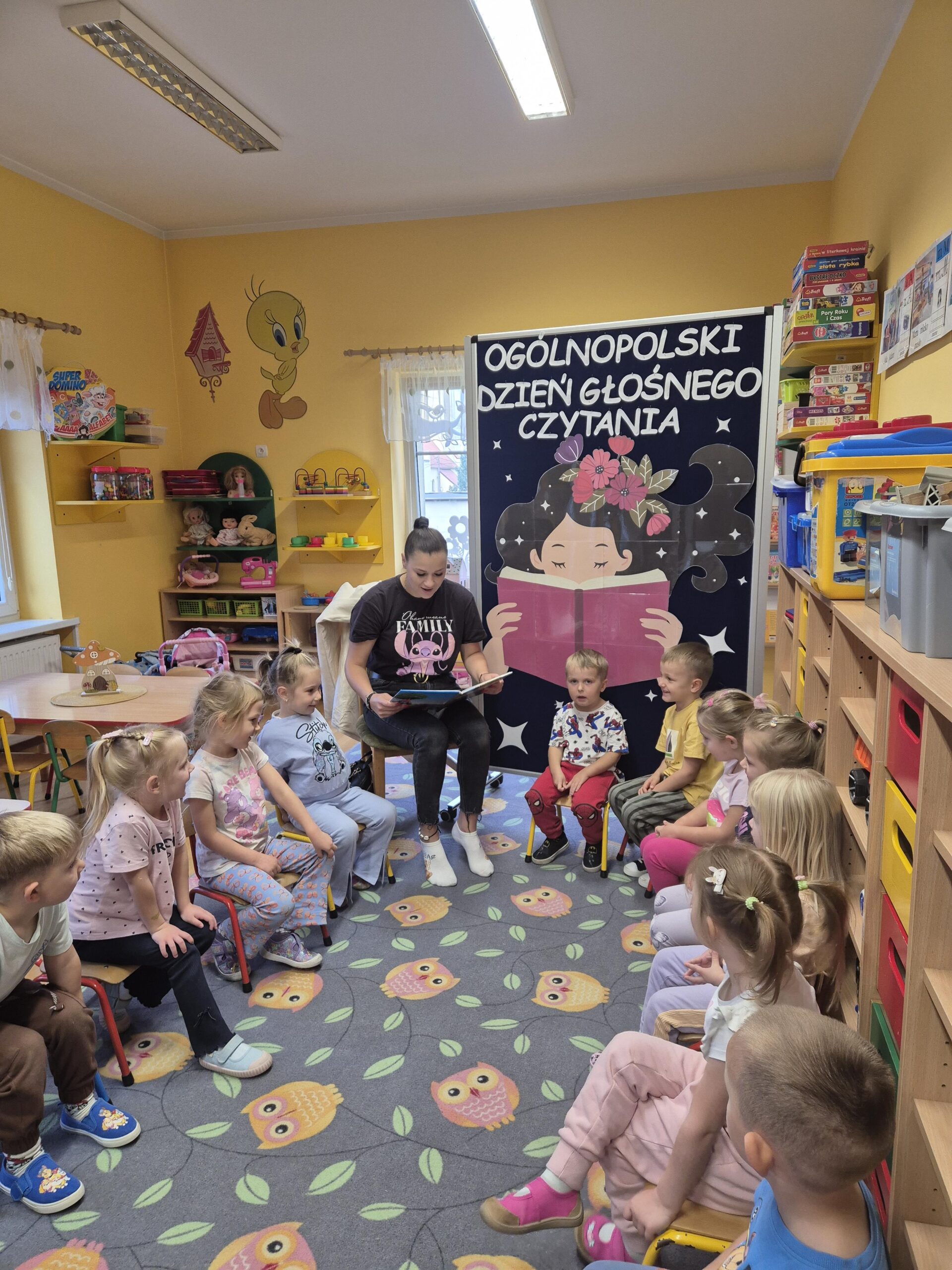 29 września w przedszkolu obchodzony był Ogólnopolski Dzień Głośnego Czytania. Głośne czytanie dzieciom jest prostą i przyjemną formą stymulacji rozwoju mowy i profilaktyki zaburzeń komunikacji językowej. Czytanie dzieciom na głos stymuluje ich rozwój, poszerza wiedzę o otaczającym świecie, wzbogaca słownictwo i pobudza wyobraźnię. Dzień Głośnego Czytania to świetna okazja do wspólnego odkrywania bogatego świata książek i przygód, które w nich na nas czekają. W Dniu Głośnego Czytania przedszkolaków odwiedzili goście, którzy czytali dzieciom specjalnie na tę okazję wybrane wiersze, bajki i baśnie. Przedszkolaki z wielkim zainteresowaniem słuchali czytanych tekstów oraz analizowali i oceniali zachowania bohaterów. To był wyjątkowy dzień, gdzie głośne czytanie miało wielką moc.