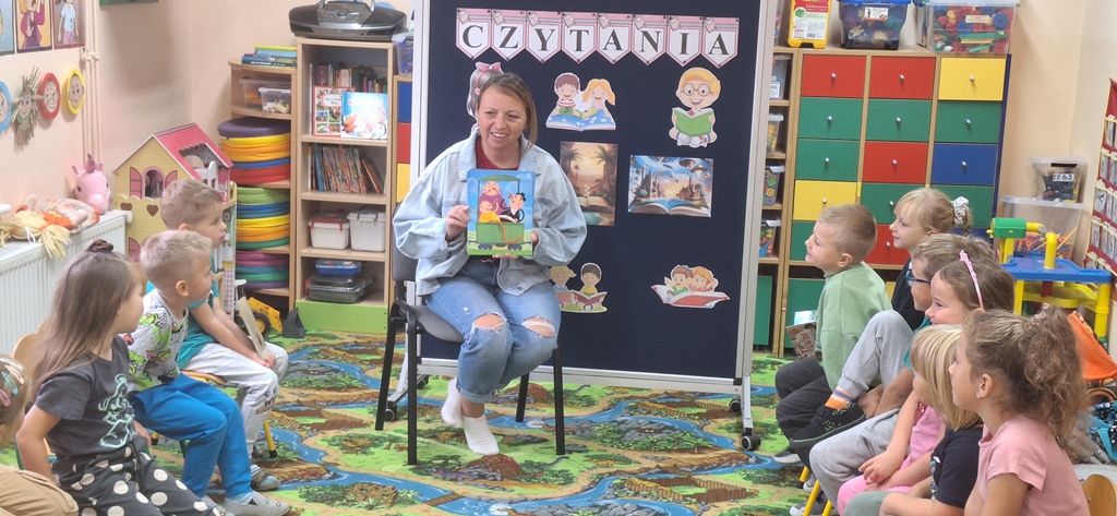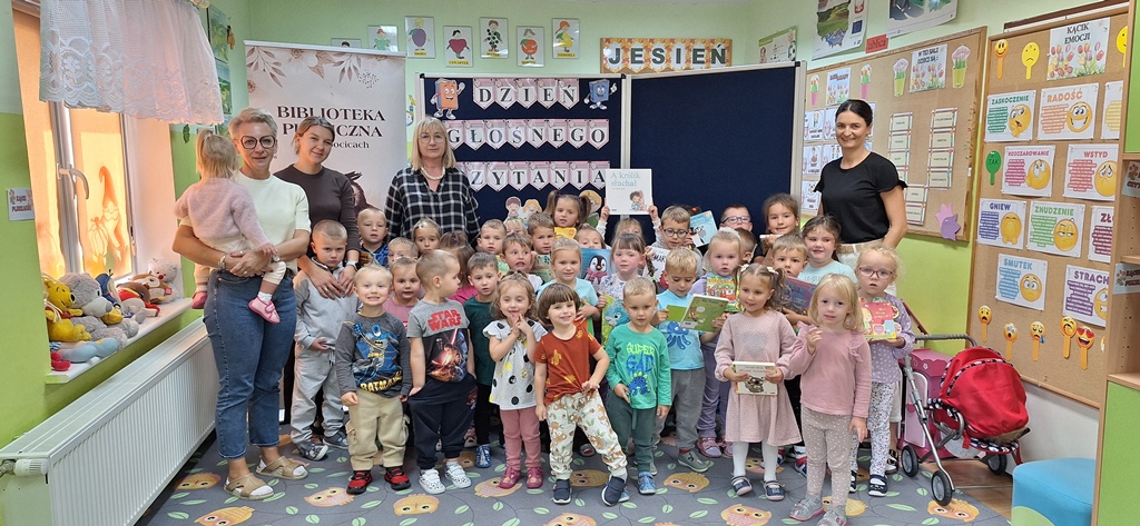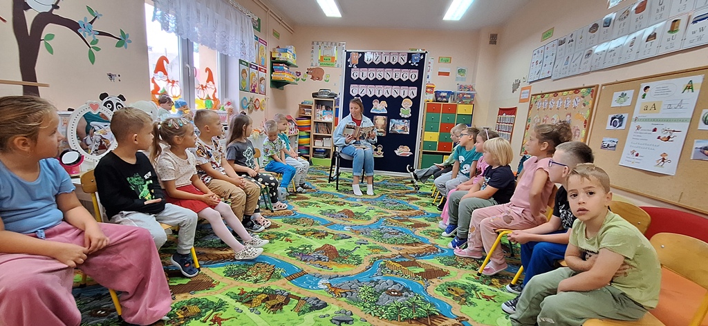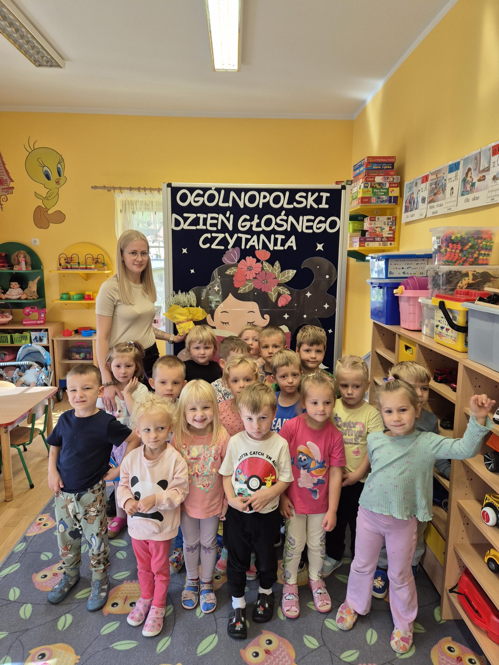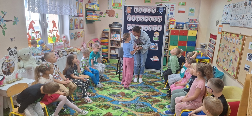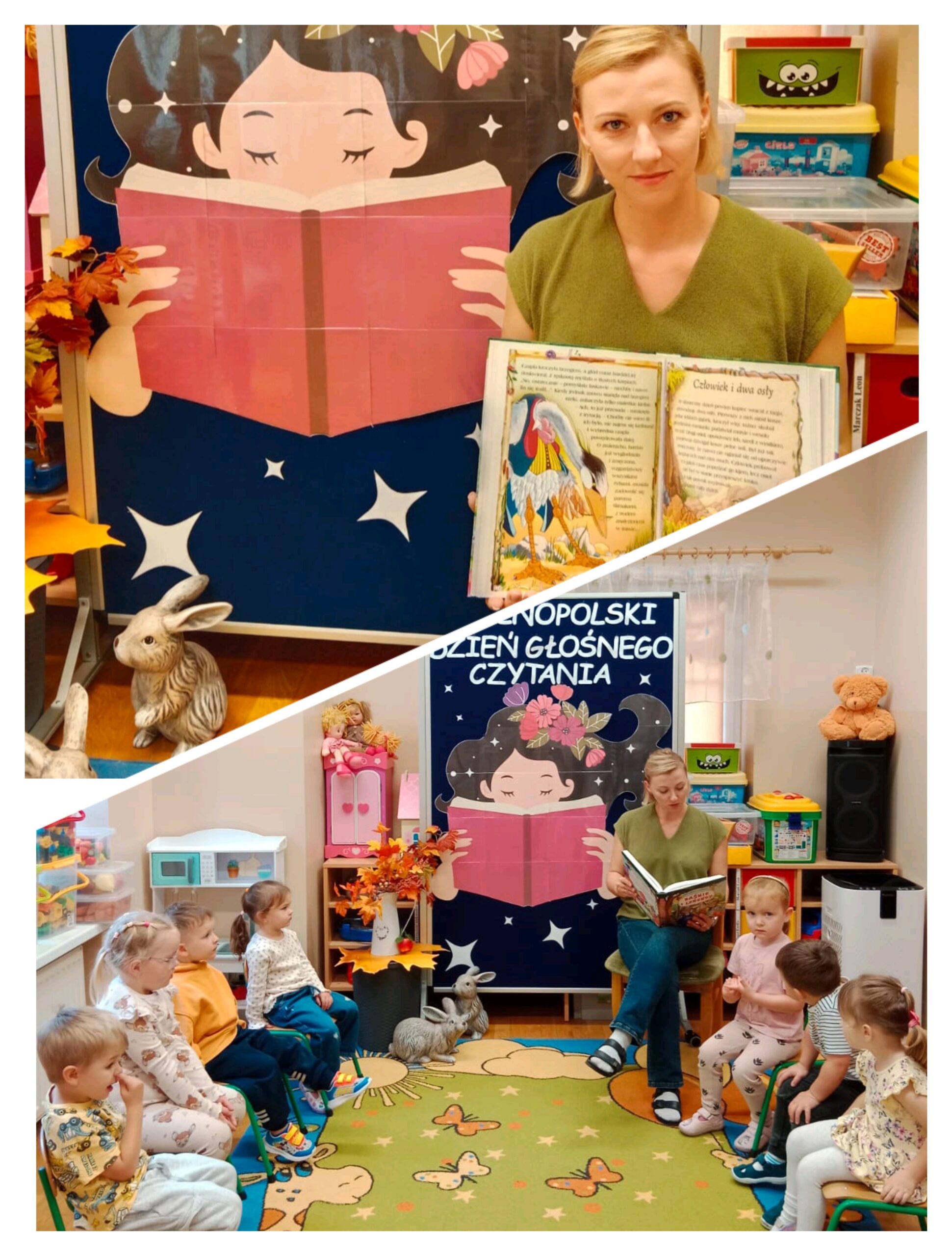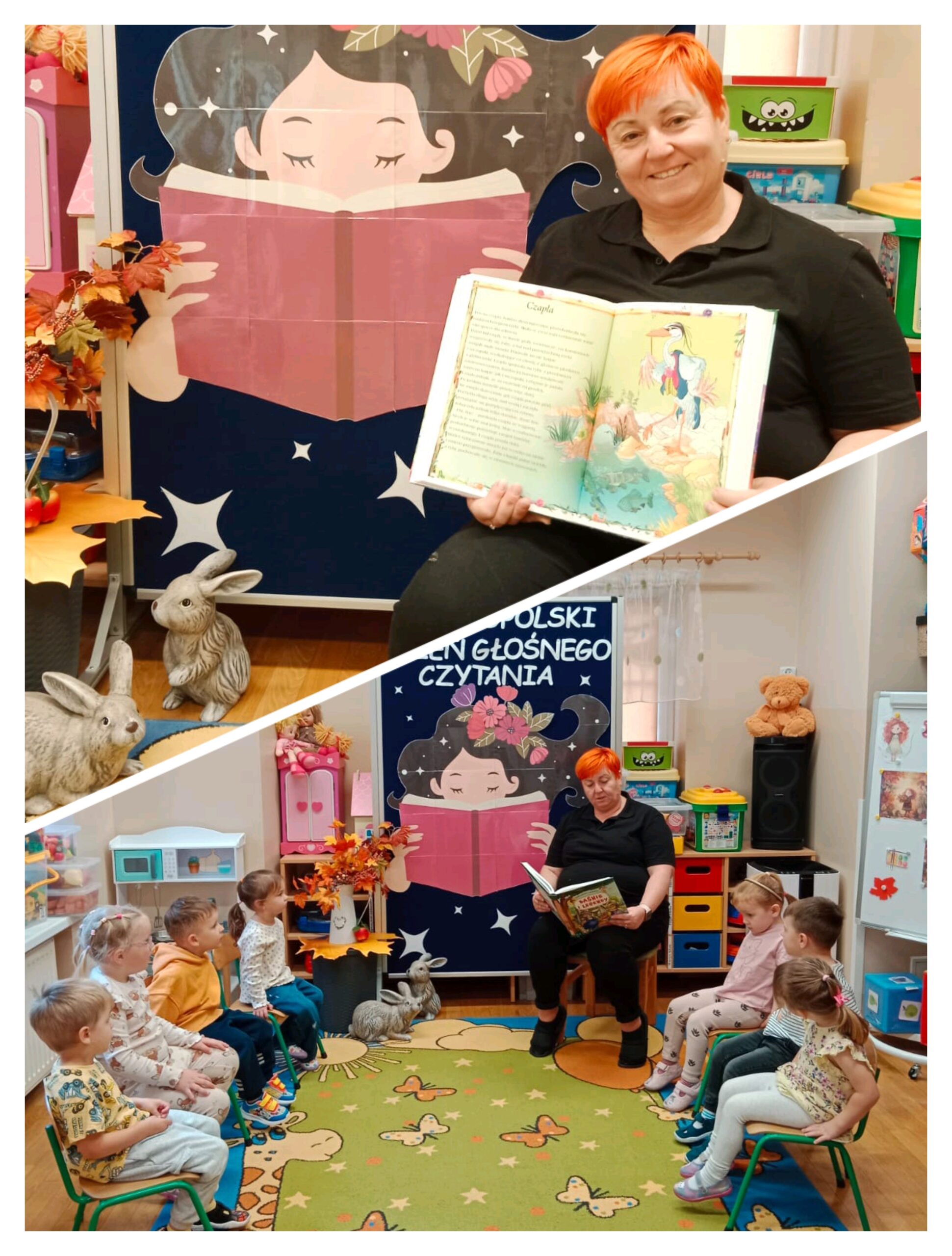 29 września w przedszkolu obchodzony był Ogólnopolski Dzień Głośnego Czytania. Głośne czytanie dzieciom jest prostą i przyjemną formą stymulacji rozwoju mowy i profilaktyki zaburzeń komunikacji językowej. Czytanie dzieciom na głos stymuluje ich rozwój, poszerza wiedzę o otaczającym świecie, wzbogaca słownictwo i pobudza wyobraźnię. Dzień Głośnego Czytania to świetna okazja do wspólnego odkrywania bogatego świata książek i przygód, które w nich na nas czekają. W Dniu Głośnego Czytania przedszkolaków odwiedzili goście, którzy czytali dzieciom specjalnie na tę okazję wybrane wiersze, bajki i baśnie. Przedszkolaki z wielkim zainteresowaniem słuchali czytanych tekstów oraz analizowali i oceniali zachowania bohaterów. To był wyjątkowy dzień, gdzie głośne czytanie miało wielką moc.