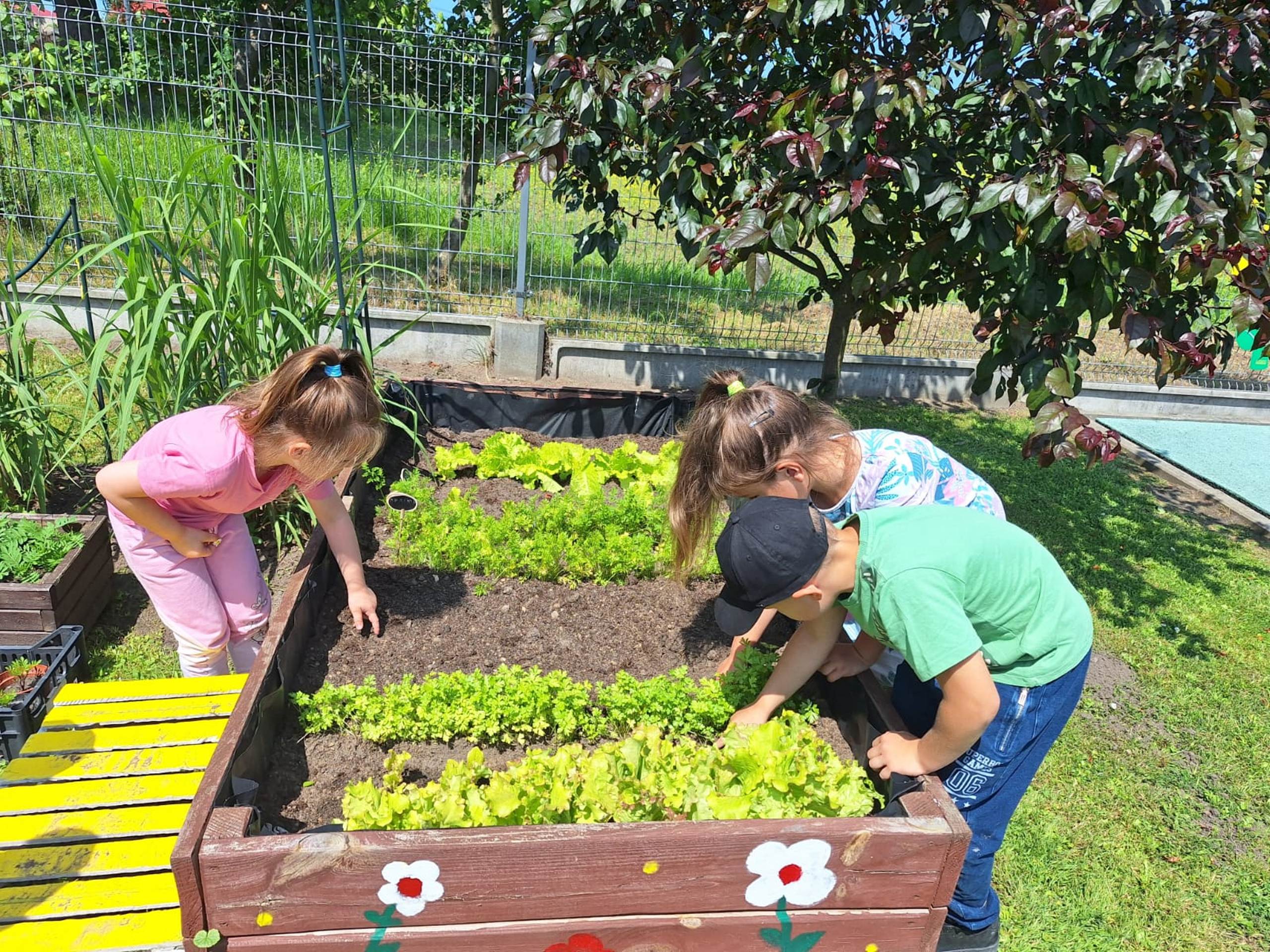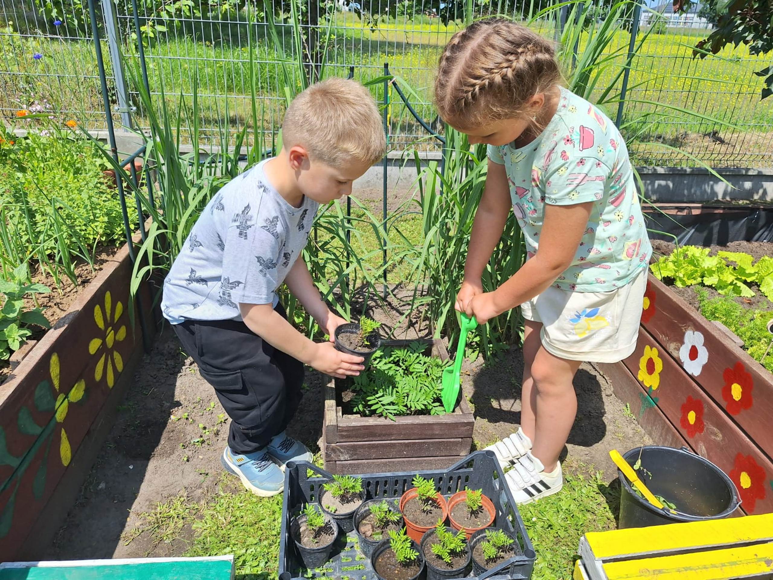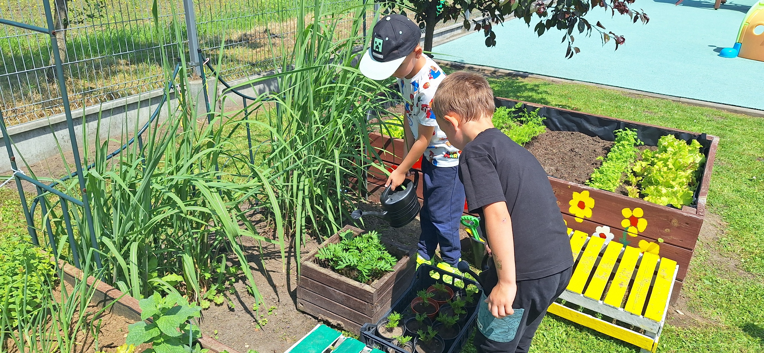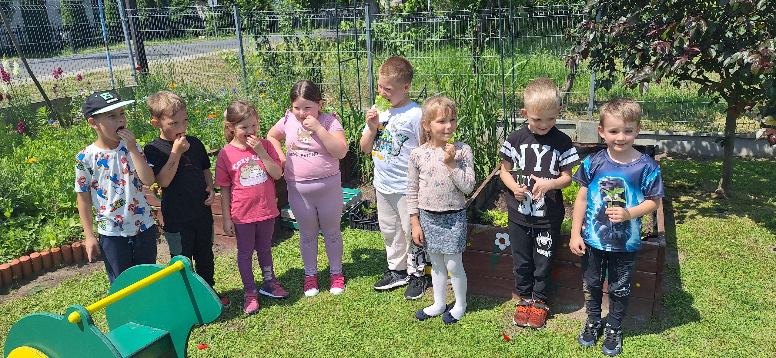 Kształtując u dzieci postawy ekologiczne dzieci wzbogaciły swoją wiedzę o etapach rozwoju i warunkach życia roślin. Obserwowały zmiany zachodzące w wyglądzie roślin w ciągu roku. Chcieliśmy by dzieci nauczyły się posługiwania się prostymi narzędziami ogrodniczymi i wyrobiły w sobie nawyk systematycznego pielęgnowania roślin w ogródku, czego uhonorowaniem miało być zbieranie plonów i degustowanie ich podczas posiłków przedszkolnych. Zależało nam, aby dzieci miały praktyczną możliwość poznania różnorodnych gatunków roślin występujących w ogrodzie – ziół, kwiatów, warzyw i owoców – i nauczenia się je rozpoznawać i prawidłowo nazywać.