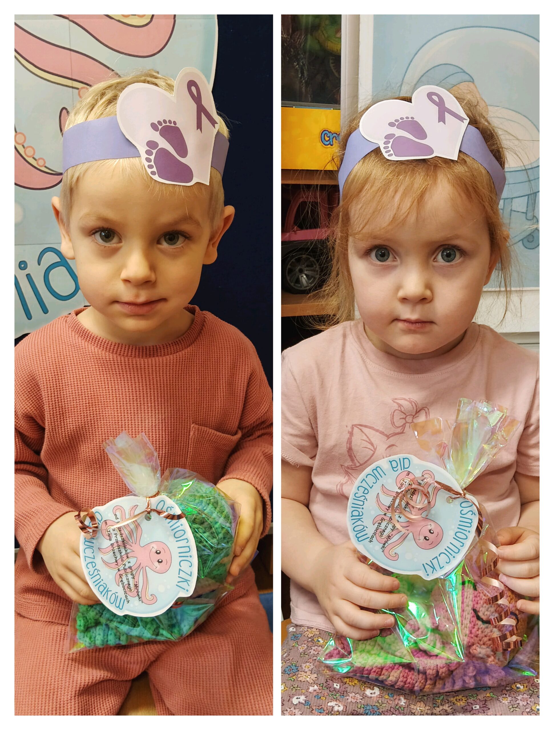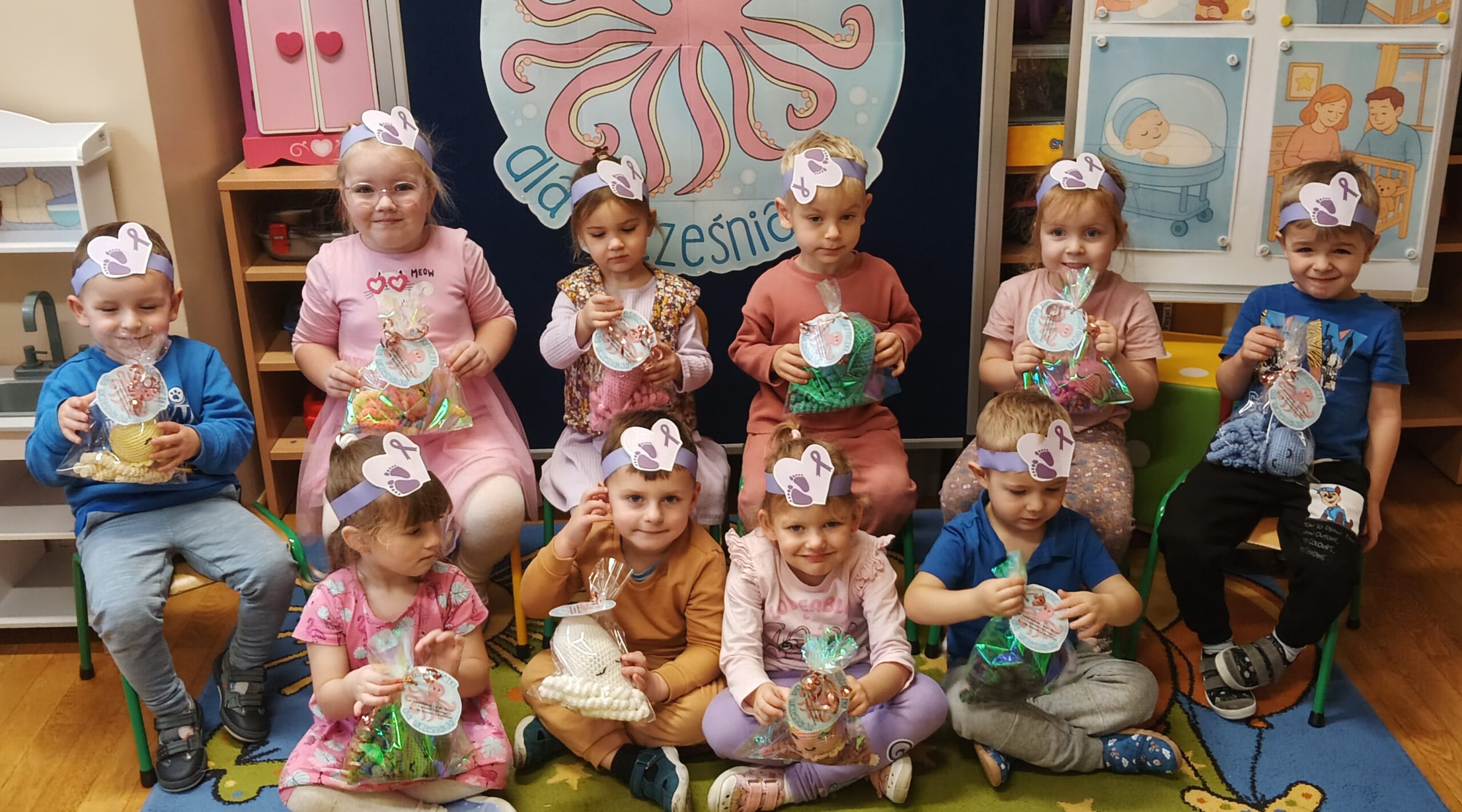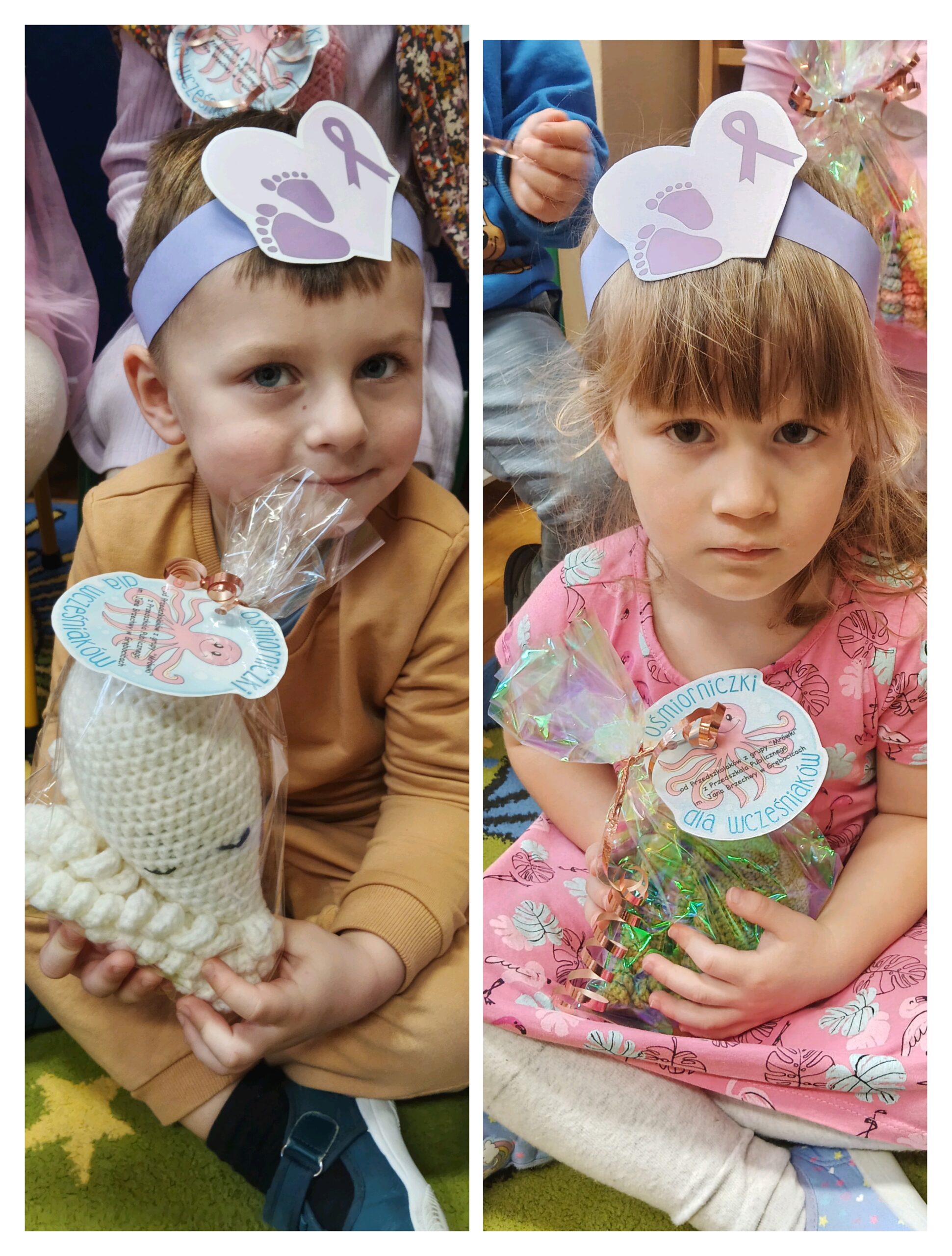 Dnia 1 grudnia na Oddział Neonatologiczny w Głogowskim Szpitalu Powiatowym trafiły kolorowe, szydełkowe ośmiorniczki przygotowane przez dzieci z grupy „Mrówki” z Przedszkola Publicznego im. Jana Brzechwy w Grębocicach. W ramach akcji ogólnopolskiego projektu charytatywnego „Ośmiorniczki dla Wcześniaków”, prowadzonego przez Fundację Małych Serc. Ordynator Oddziału Neonatologicznego, pani Zofia Dejlich-Waligóra, wyjaśniła, że maskotki najpierw trafiają w ręce mam, a dopiero później umieszczane zostaną w inkubatorach, by maluszki mogły poznać zapach swojej mamy.