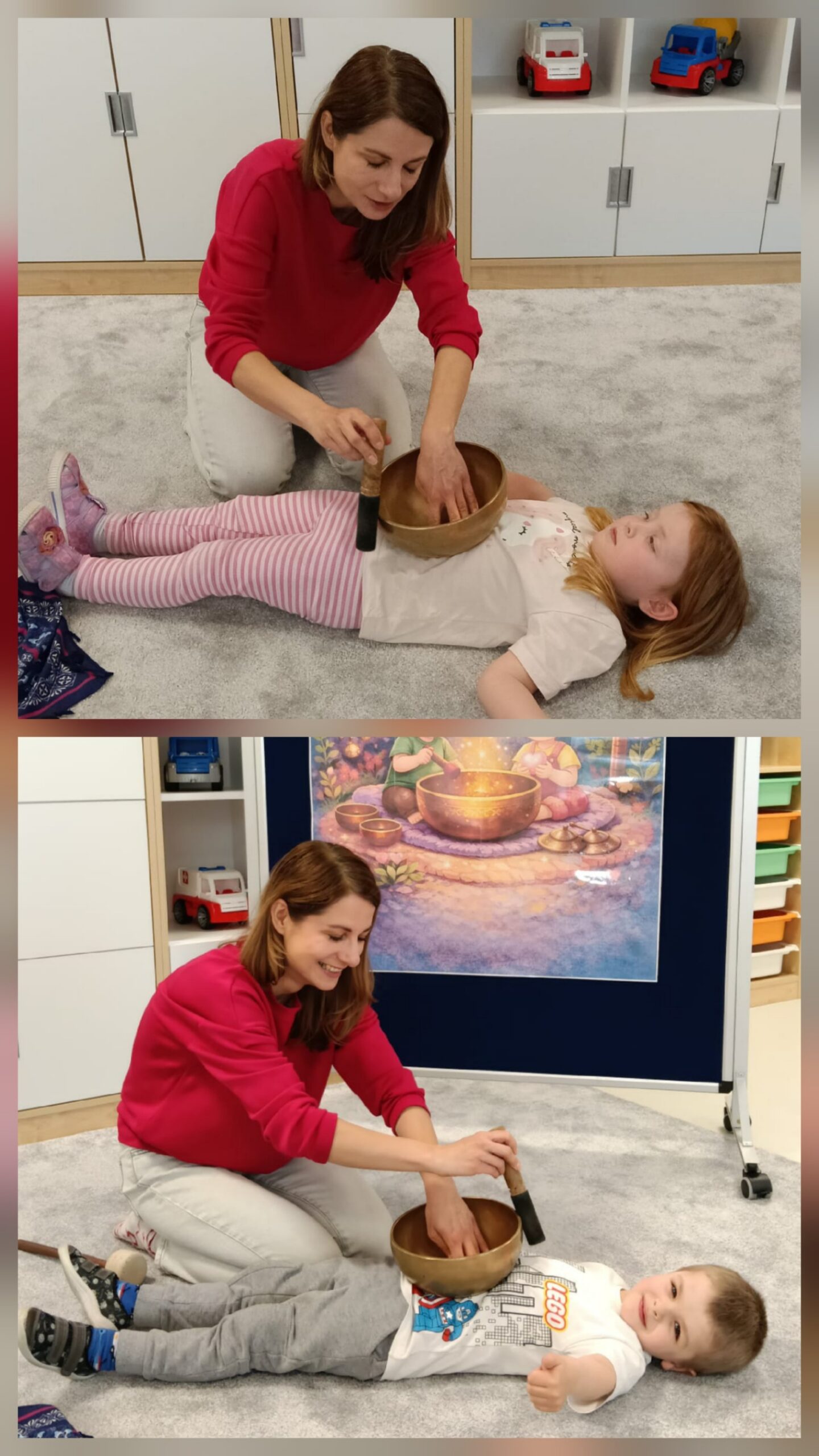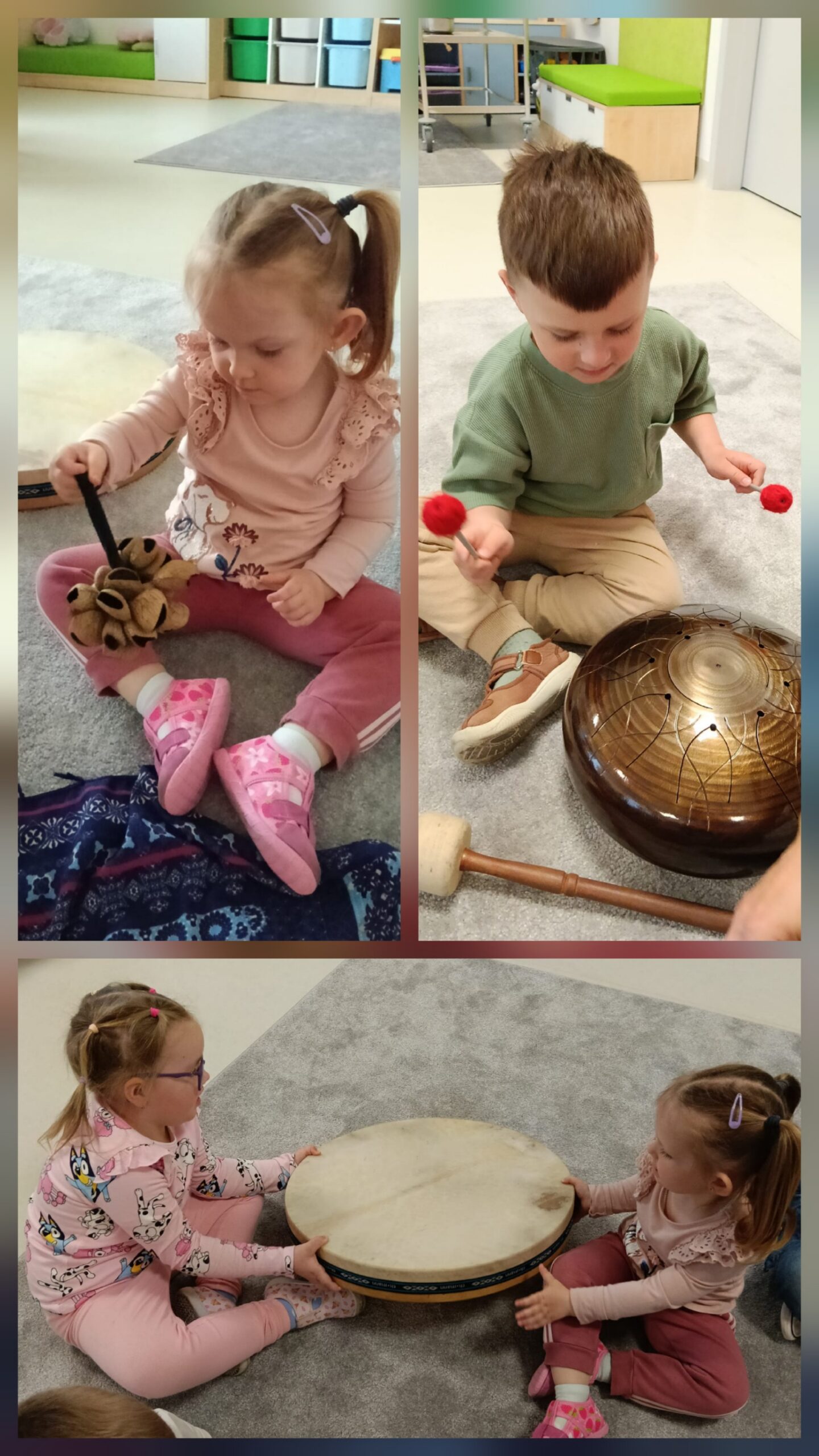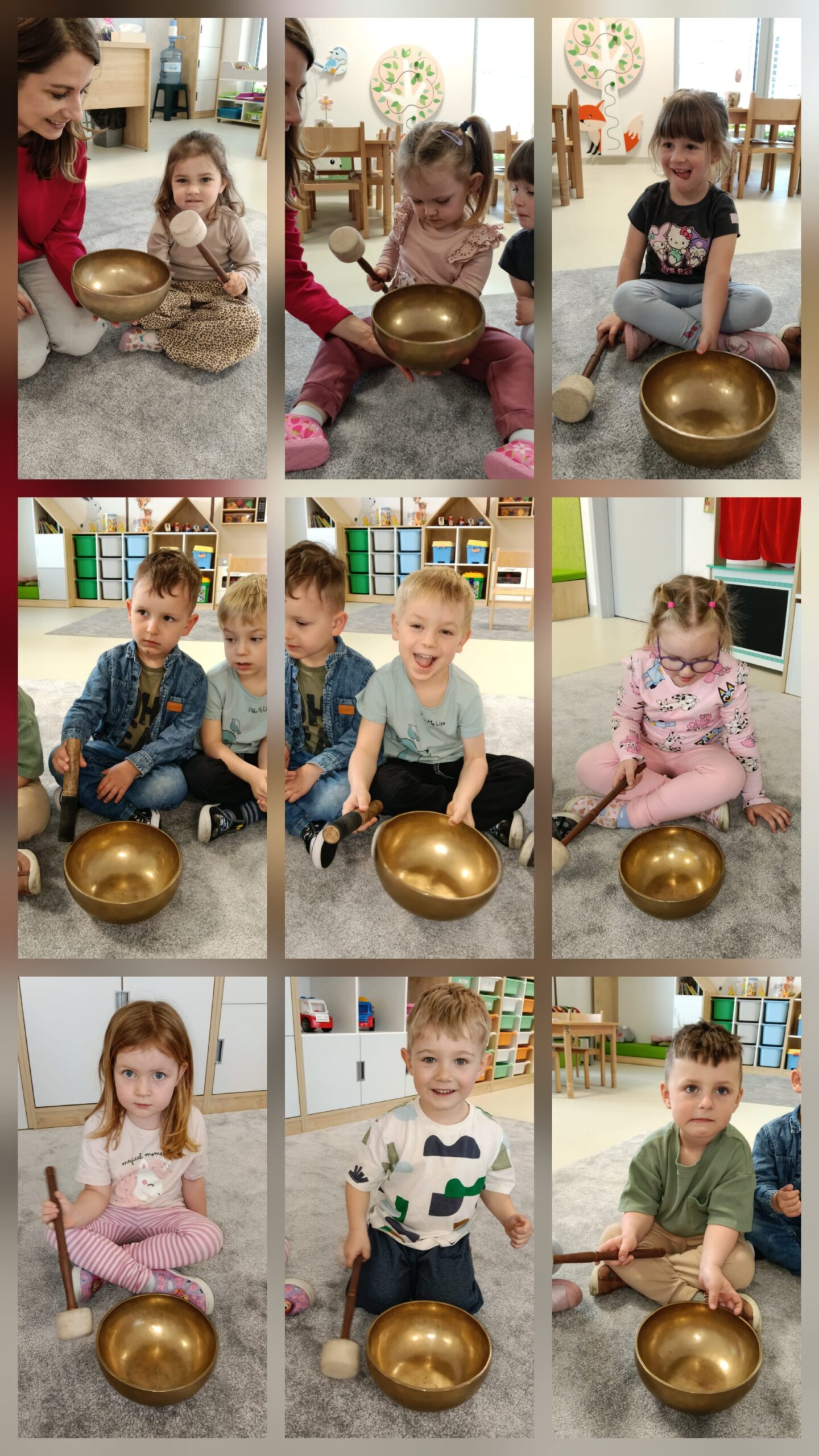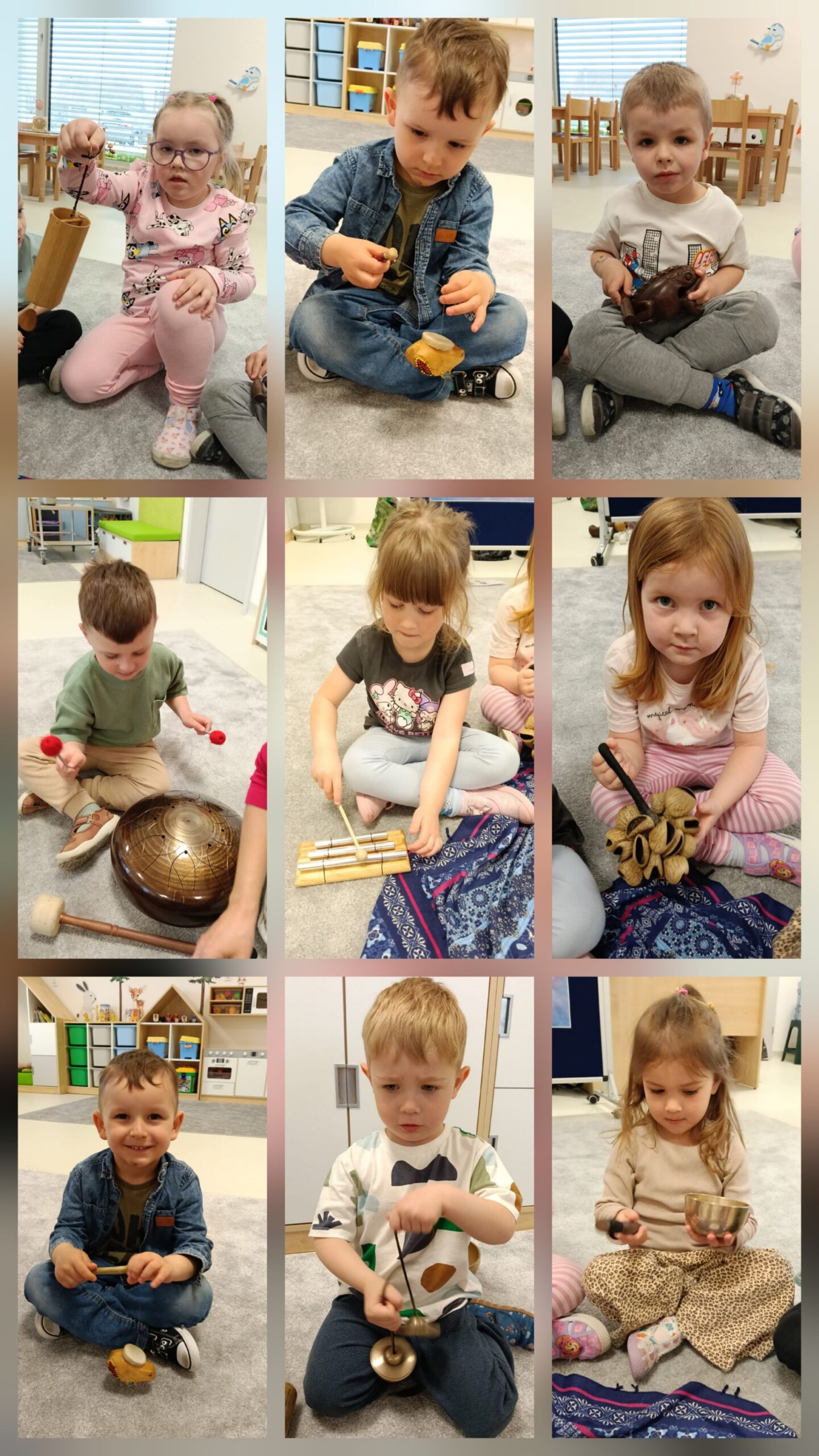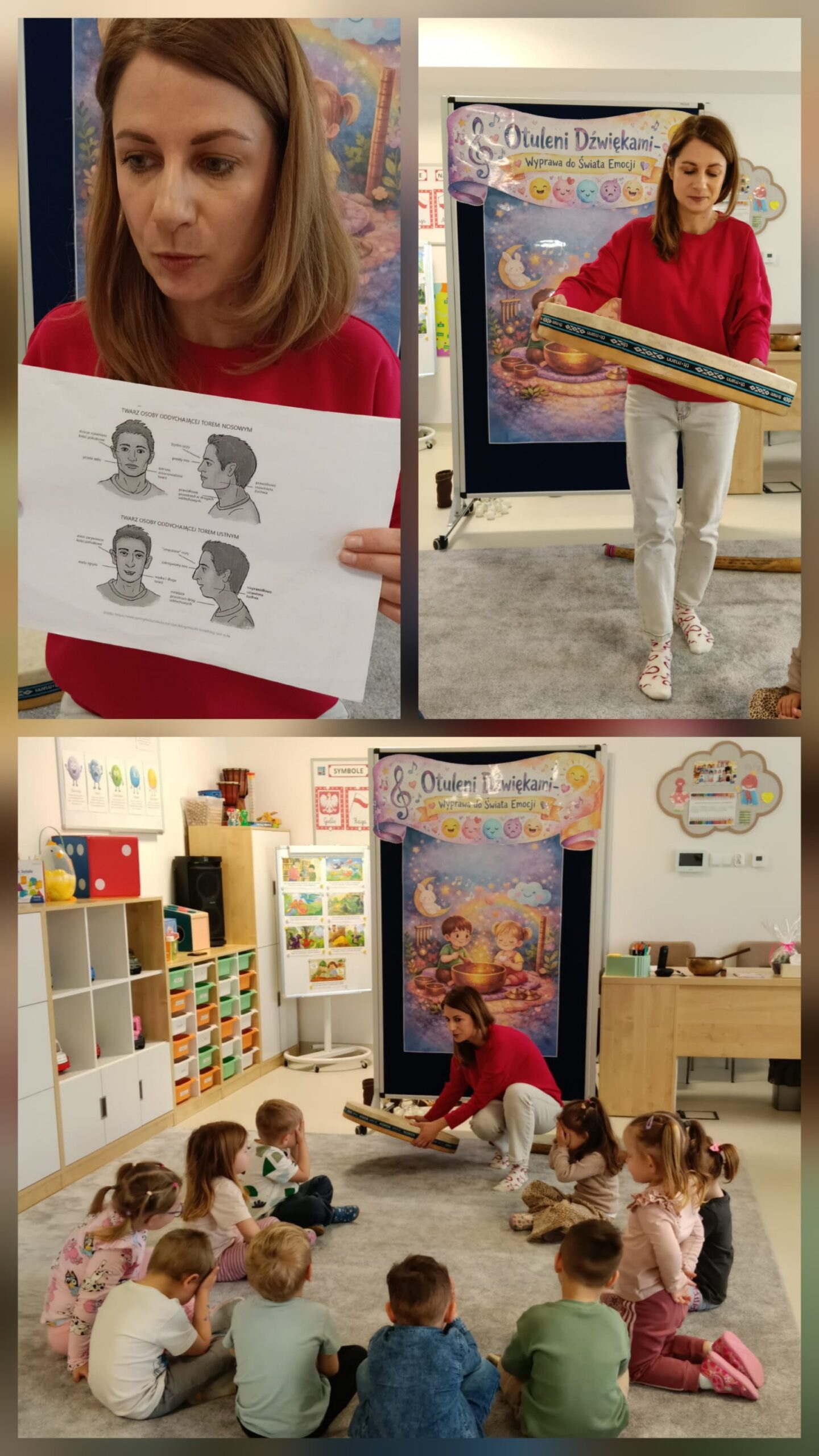Dzieci z oddziału „Mrówki” wyruszyły w niezwykłą muzyczną podróż pod przewodnictwem Pani Eweliny Ceklarz – terapeuty z PPP w Głogowie, trenera uważności i muzykoterapeuty holistycznego. Warsztaty rozpoczęliśmy od wyprawy nad morze – dzieci rozciągały ciała i wzmacniały mięśnie, przygotowując się do dalszych aktywności. Nie zabrakło także chwili na automasaż, który wspiera rozwój zmysłu dotyku. Podczas zajęć dzieci poznały podstawy prawidłowego oddychania – ważny krok w kierunku uważności. W dalszej części ćwiczyły empatię w relaksacji w parach, a następnie odkrywały egzotyczne i nowoczesne instrumenty muzyczne. Wspólnie stworzyliśmy wyjątkową relaksację przy dźwiękach, pełną rytmu i wyobraźni. To była piękna podróż do świata emocji i uważności – czas spokoju, współpracy i radości z odkrywania dźwięków.