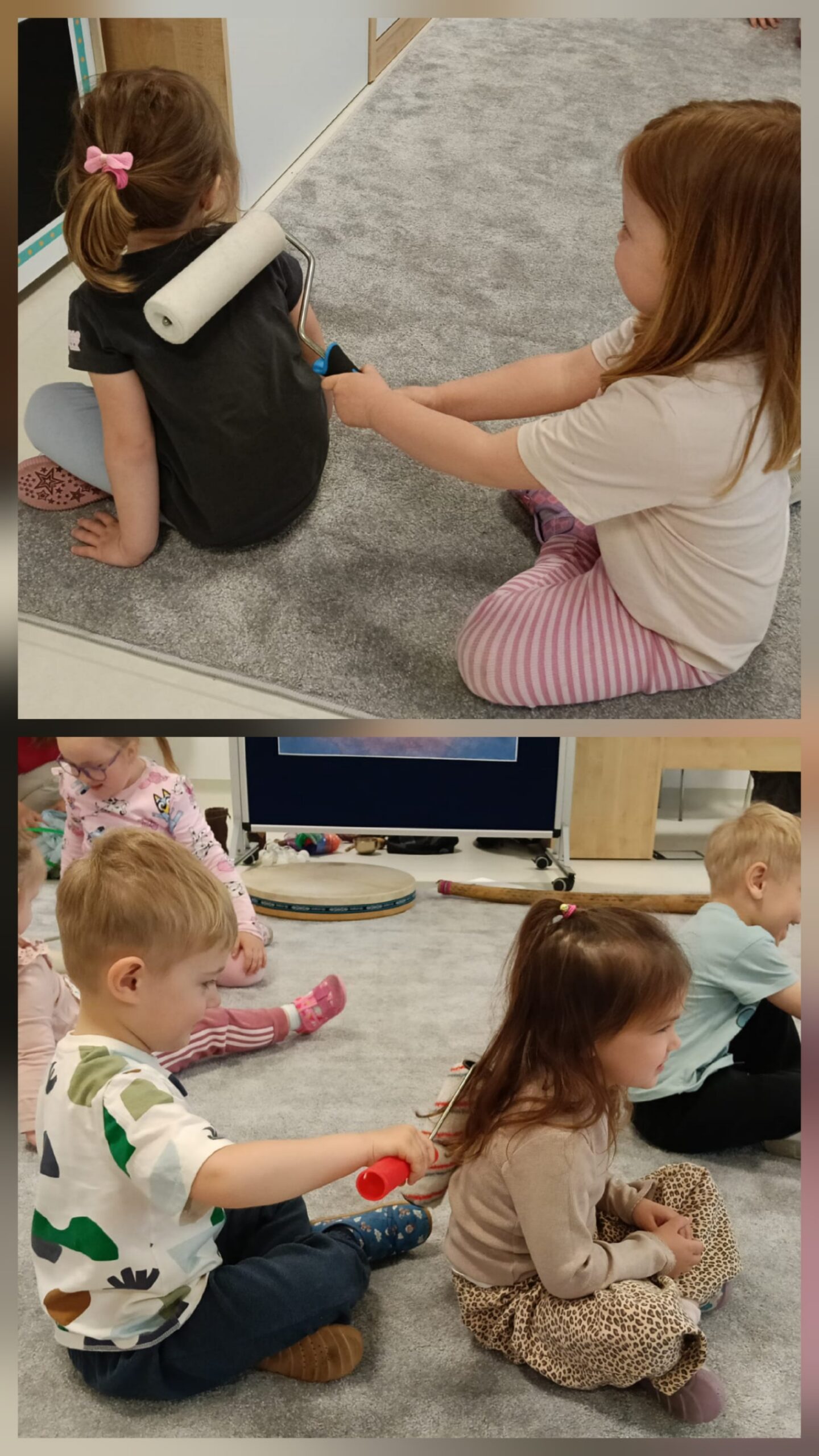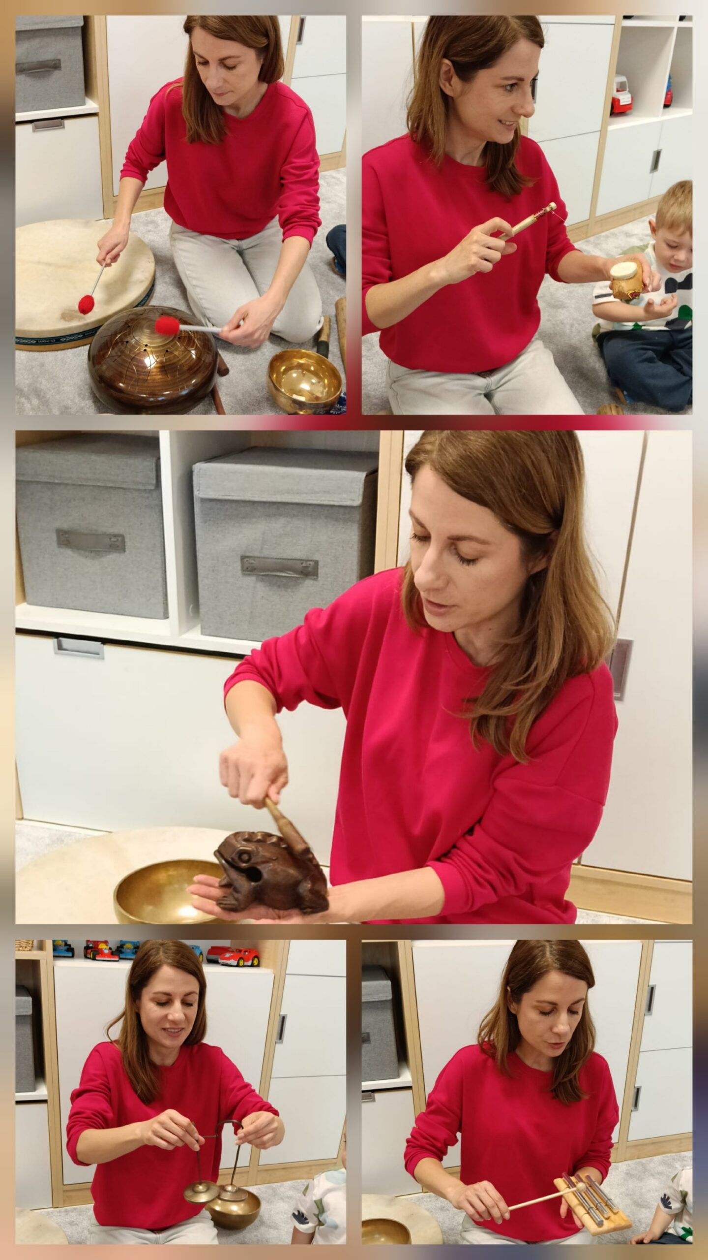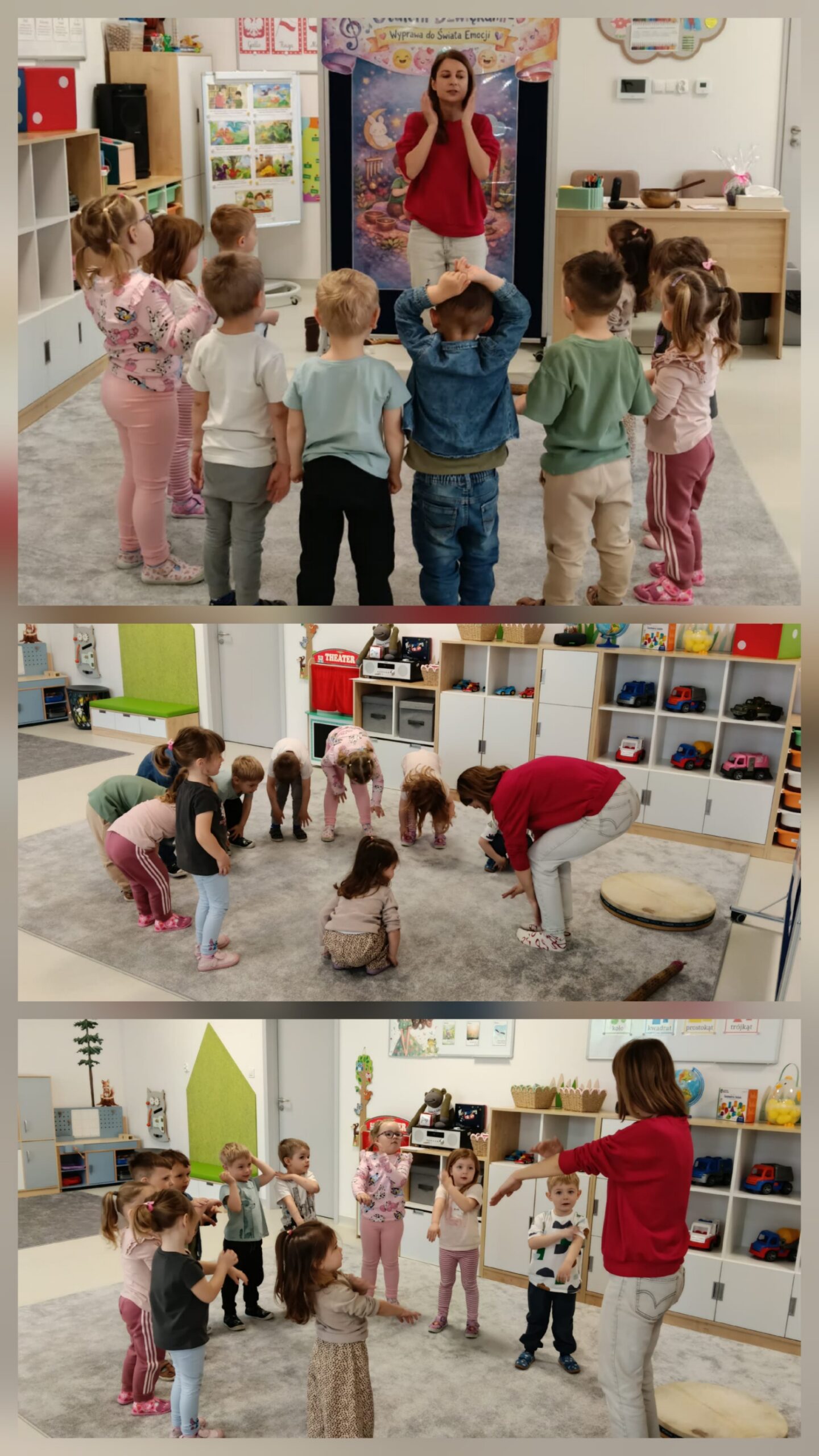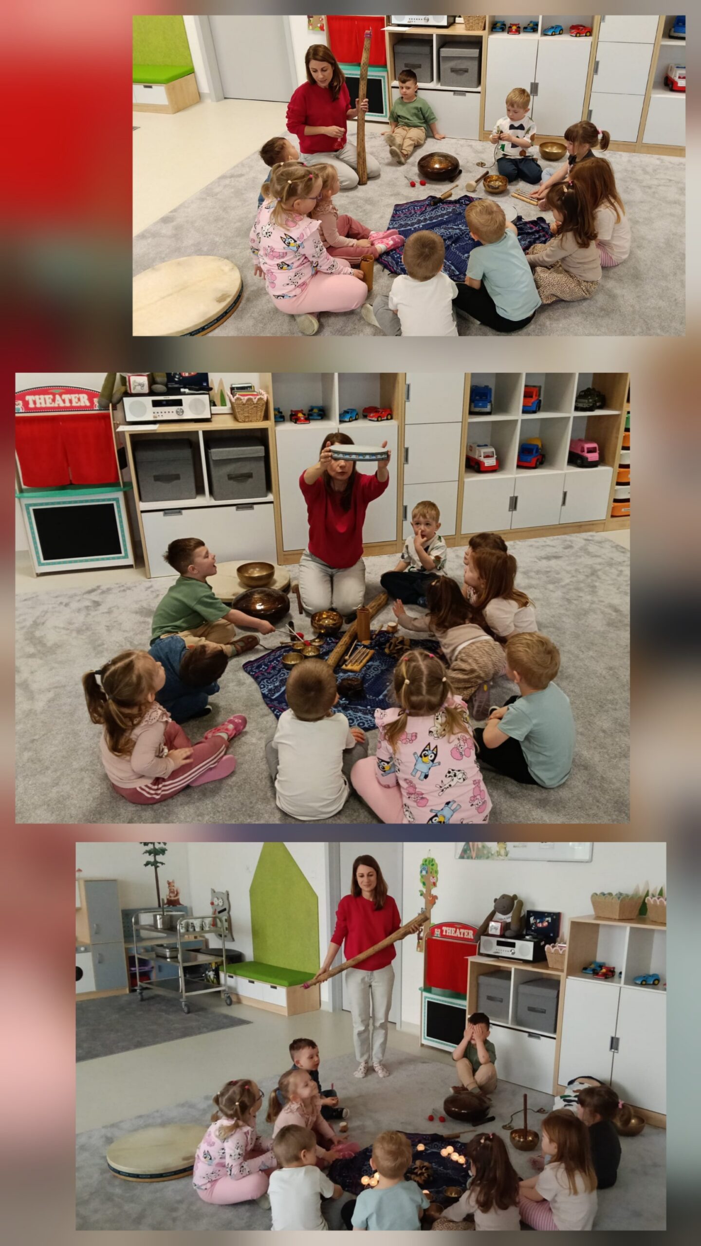 Dzieci z oddziału „Mrówki” wyruszyły w niezwykłą muzyczną podróż pod przewodnictwem Pani Eweliny Ceklarz – terapeuty z PPP w Głogowie, trenera uważności i muzykoterapeuty holistycznego. Warsztaty rozpoczęliśmy od wyprawy nad morze – dzieci rozciągały ciała i wzmacniały mięśnie, przygotowując się do dalszych aktywności. Nie zabrakło także chwili na automasaż, który wspiera rozwój zmysłu dotyku. Podczas zajęć dzieci poznały podstawy prawidłowego oddychania – ważny krok w kierunku uważności. W dalszej części ćwiczyły empatię w relaksacji w parach, a następnie odkrywały egzotyczne i nowoczesne instrumenty muzyczne. Wspólnie stworzyliśmy wyjątkową relaksację przy dźwiękach, pełną rytmu i wyobraźni. To była piękna podróż do świata emocji i uważności – czas spokoju, współpracy i radości z odkrywania dźwięków.