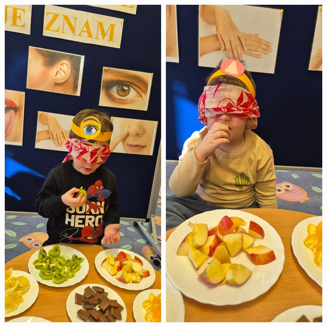 Przedszkolaki z oddziału „Pszczółki” wzięły udział w warsztatach edukacyjnych, które miały na celu zapoznanie z narządami zmysłów i wyjaśnianie dzieciom znaczenia ich u ludzi, a także o ich roli i funkcjach, które pełnią w organizmie. Wiemy, że każdy zmysł jest niezbędny i przydatny w życiu. Liczne zadania do wykonania sprawiły wszystkim dzieciom wiele radości.