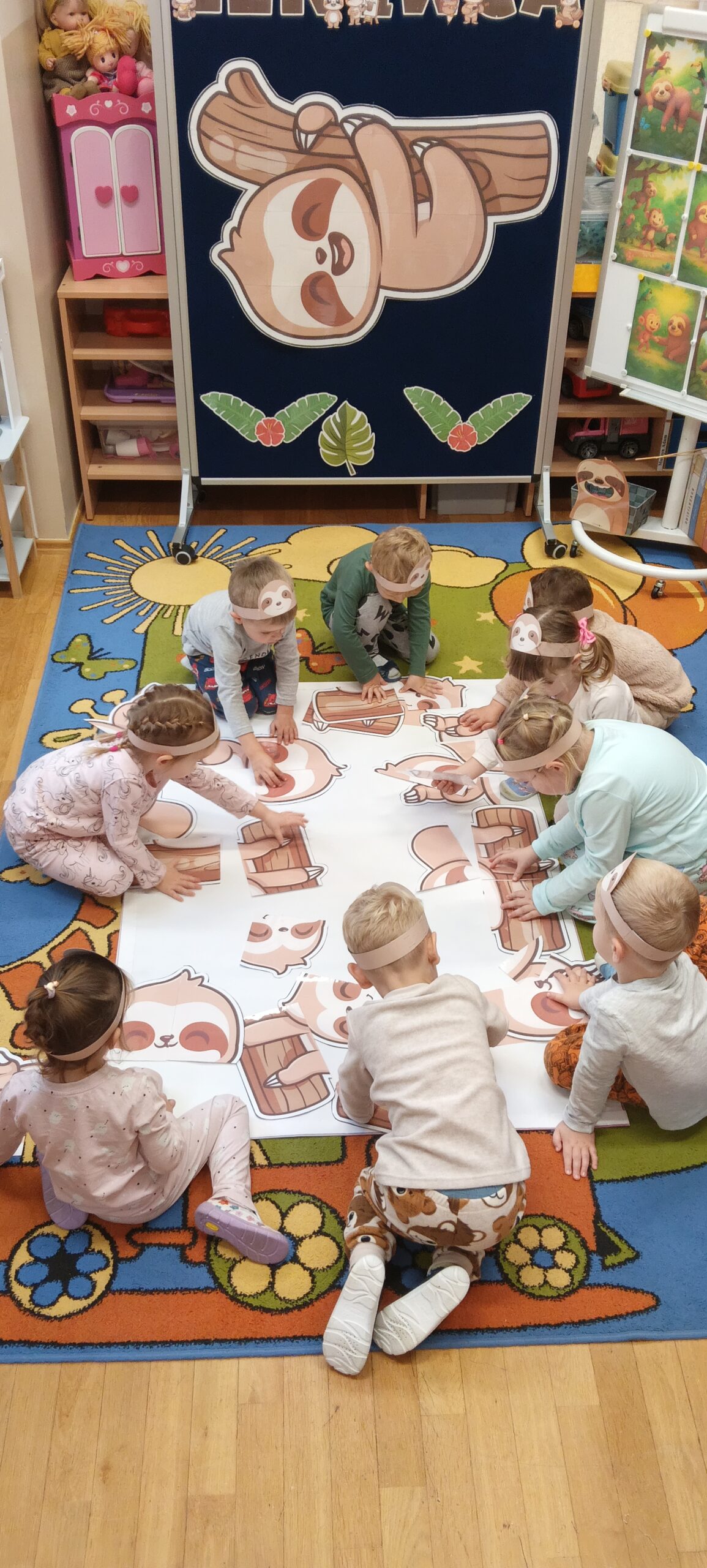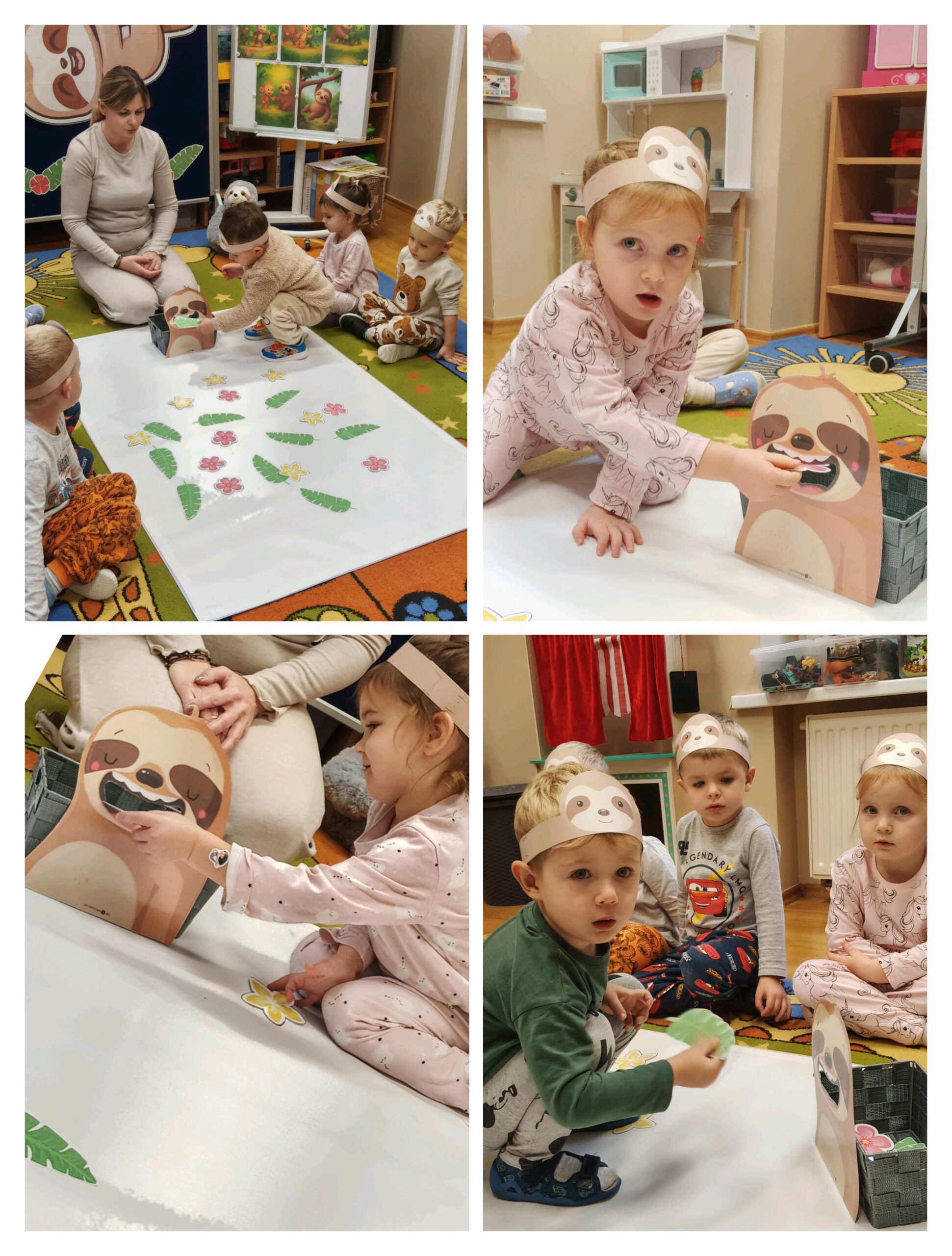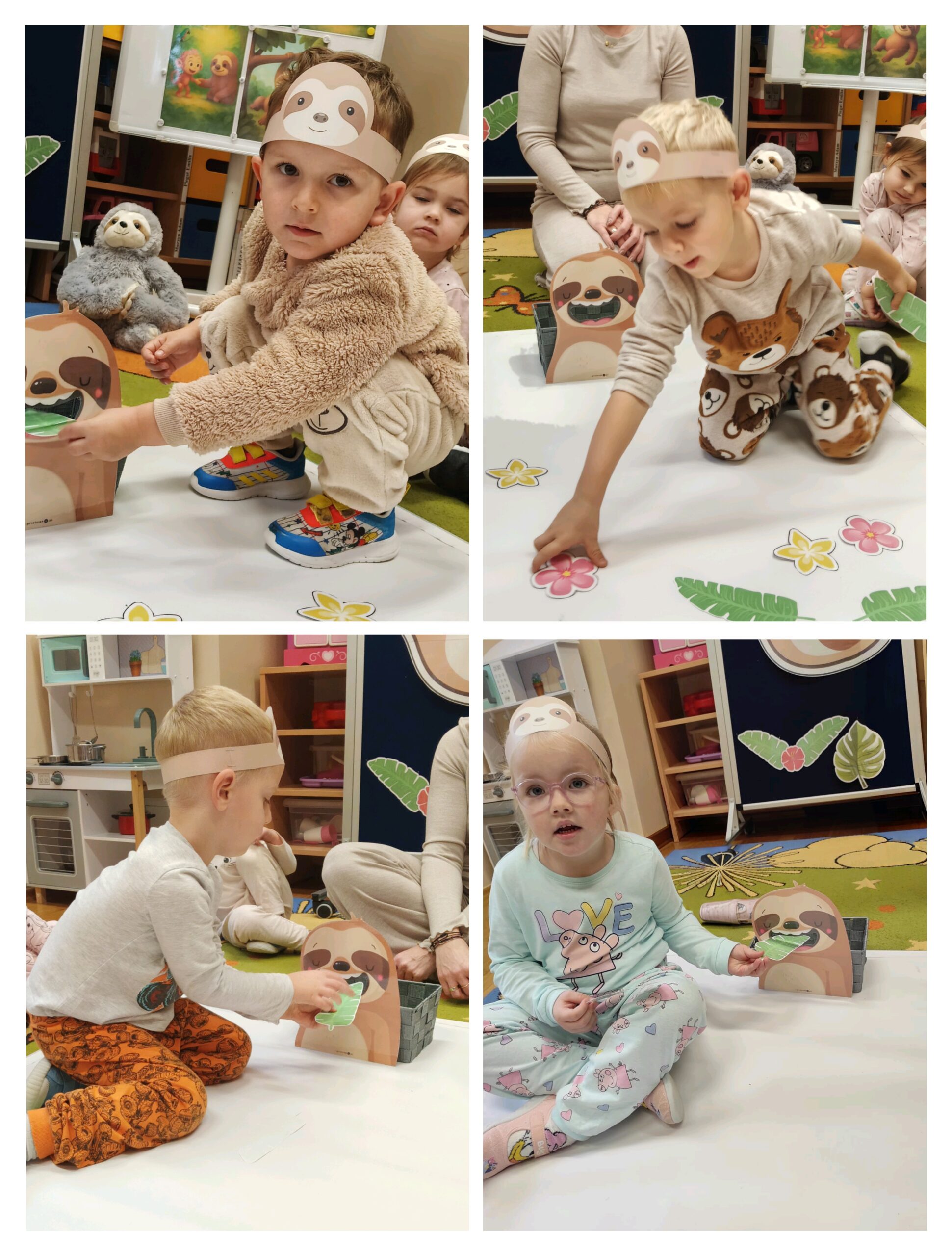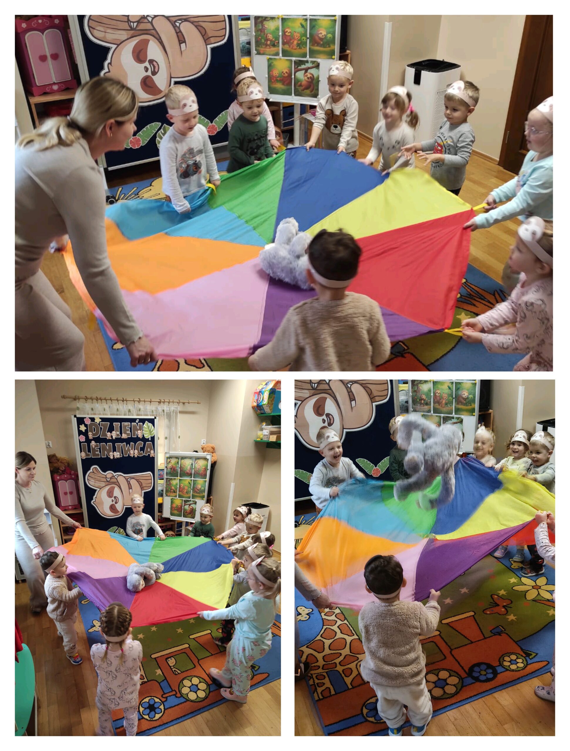 W oddziale przedszkolnym „Mrówki” odbył się wyjątkowy dzień pełen radości i zabawy – „Dzień Leniwca”. Dzieci przyszły do przedszkola w kolorowych, mięciutkich piżamkach, gotowe na relaks i wesołe aktywności. Uczestniczyły w różnych zabawach tematycznych i dydaktycznych m.in. śpiewały piosenki o leniwcach, oglądały prezentację multimedialną, a także tworzyły „leniwcowy las”. Wiele radości sprawiły przedszkolakom „leniwcowe ćwiczenia” – podczas których naśladowały powolne ruchy leniwca i ćwiczyły równowagę. Nie zabrakło również czytania bajek o sympatycznym, pomocnym leniwcu, który wprowadził dzieci w spokojny i przyjazny nastrój. Dzięki niemu odkryły ważną prawdę, że „czasem warto zwolnić, by dostrzec piękno świata”.