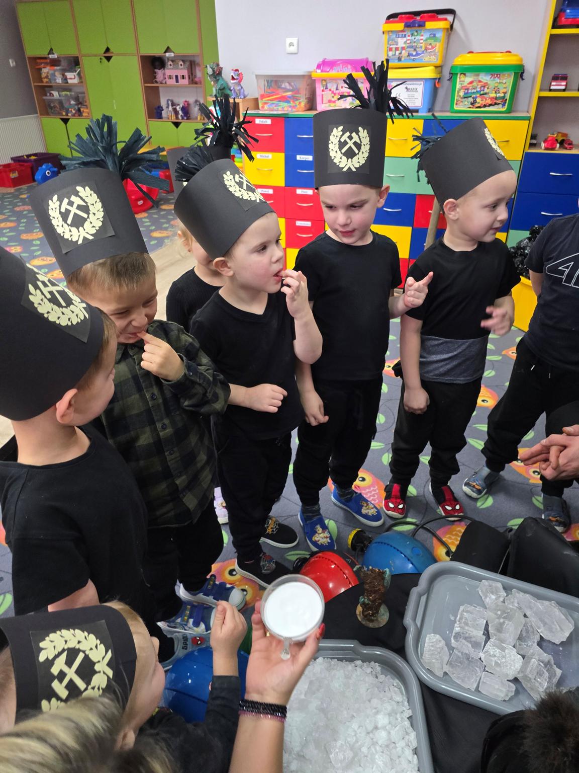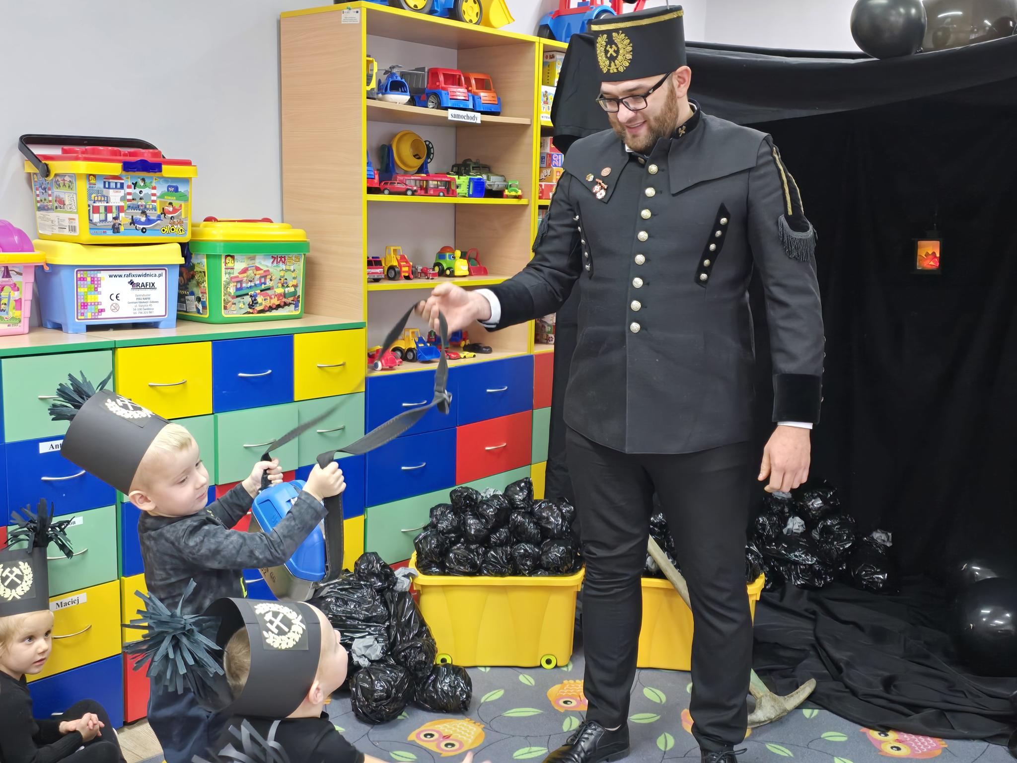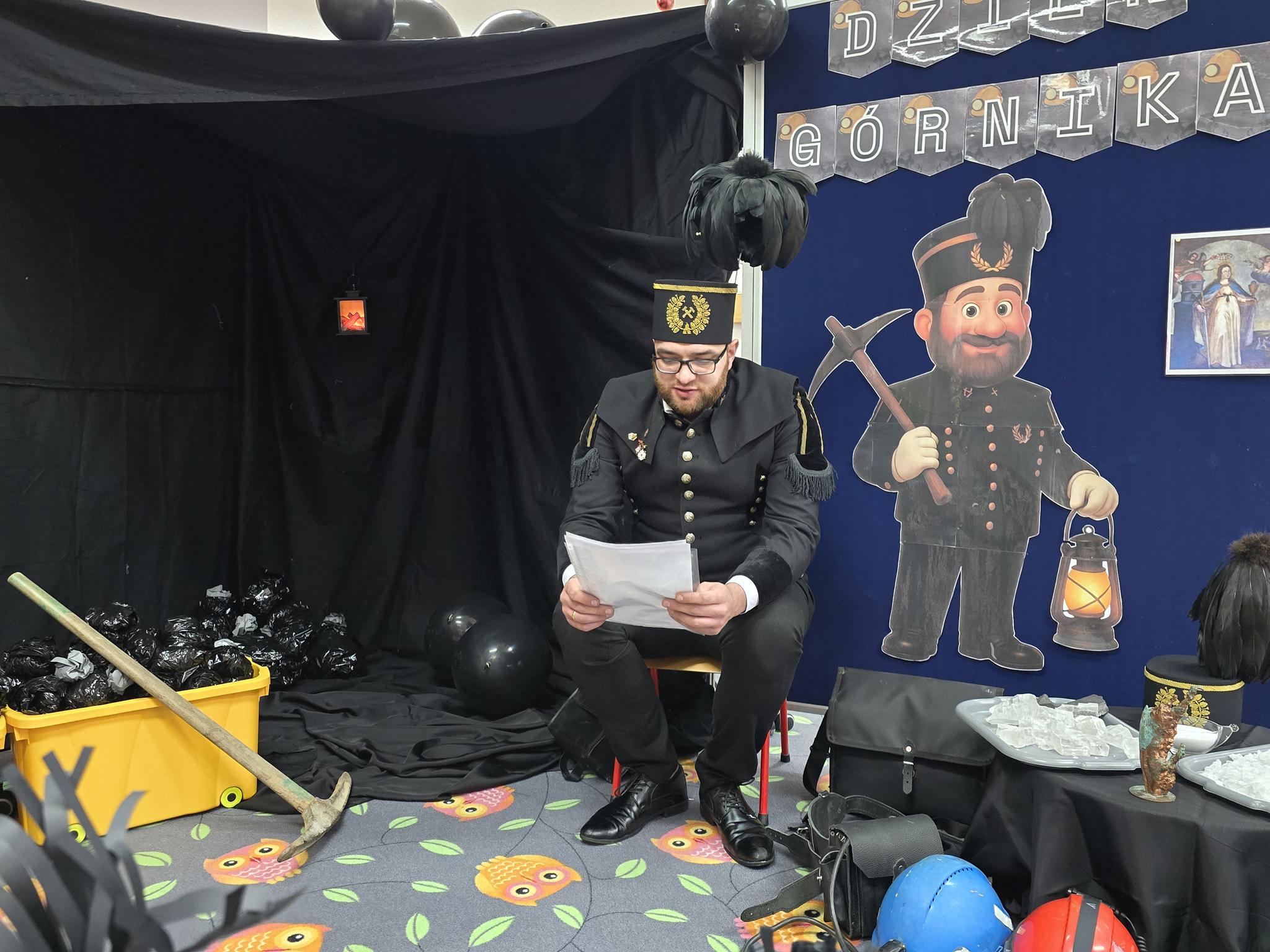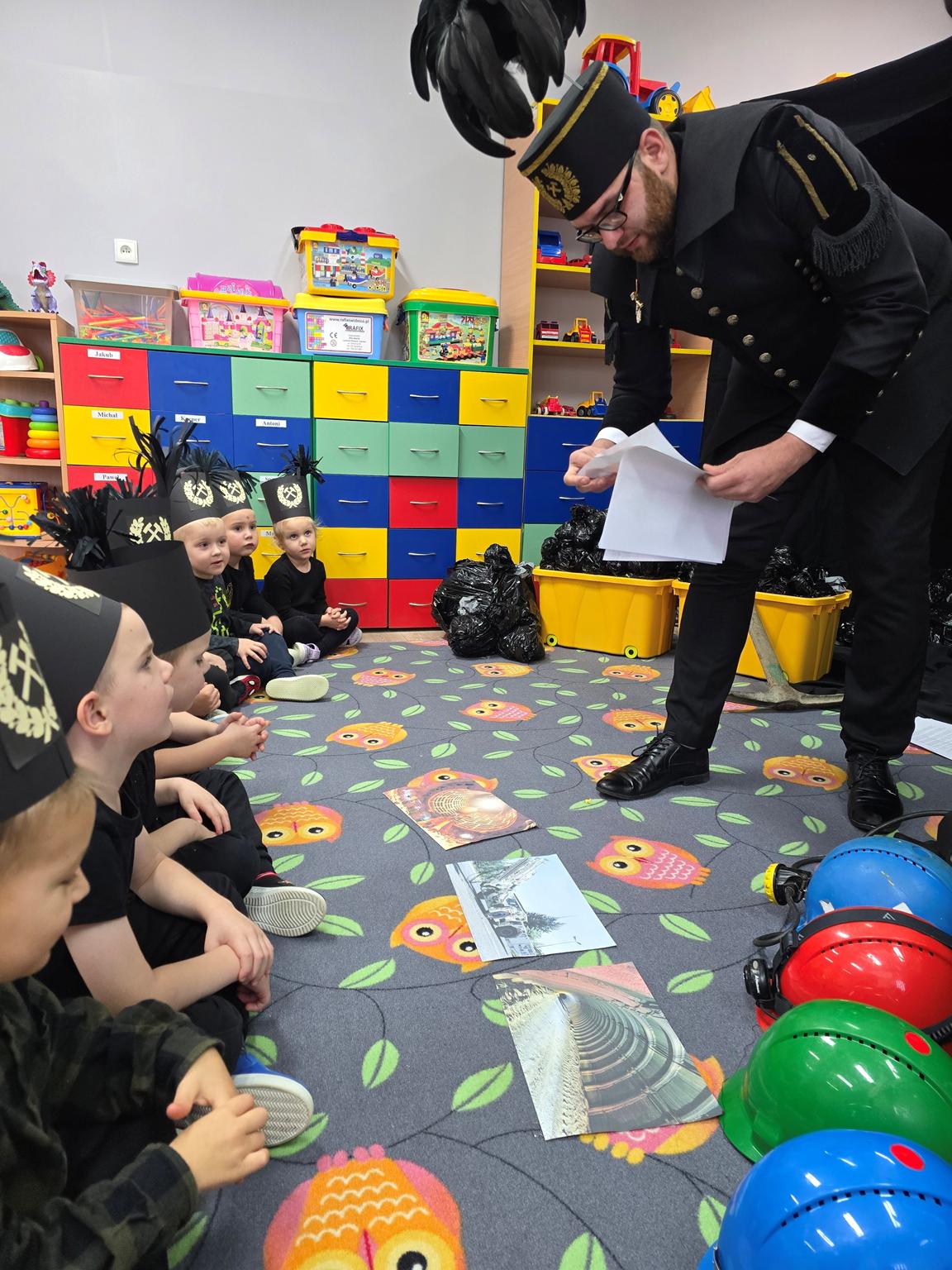 W Oddziale „Krasnoludki” odbyło się wyjątkowe spotkanie z górnikiem – Panem Danielem Bobrowskim. Dzieci poznały galowy mundur górniczy, tradycje górnicze oraz ciekawostki związane z pracą pod ziemią. Przedszkolaki z zainteresowaniem słuchały opowieści o kopalni, bezpieczeństwie i górniczych zwyczajach, chętnie zadając pytania. Celem spotkania było przybliżenie dzieciom zawodu górnika, rozwijanie ciekawości poznawczej oraz kształtowanie szacunku do pracy innych ludzi.
