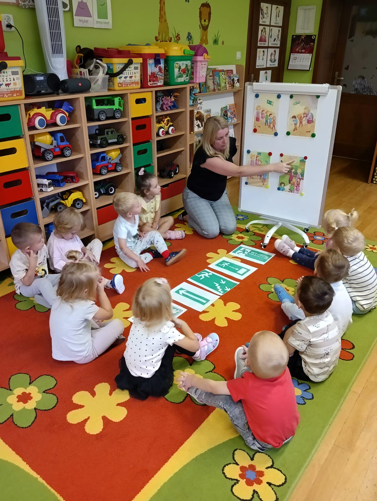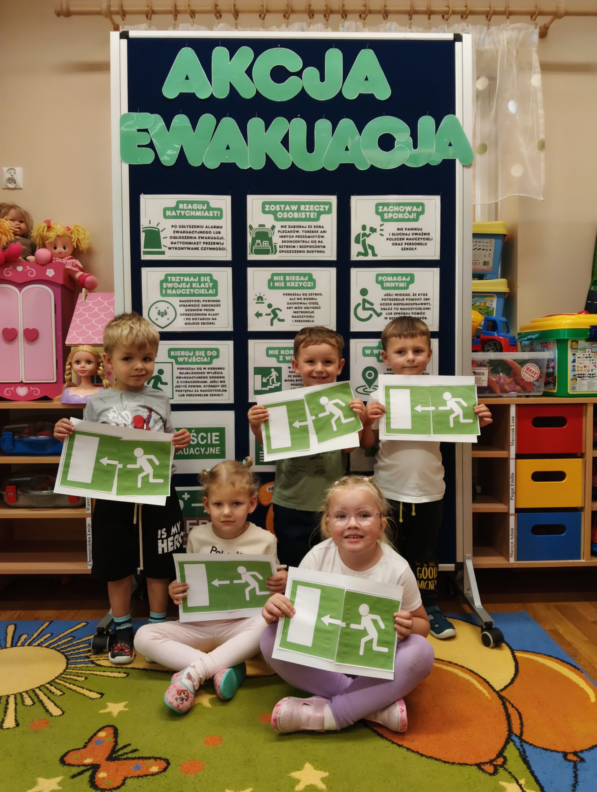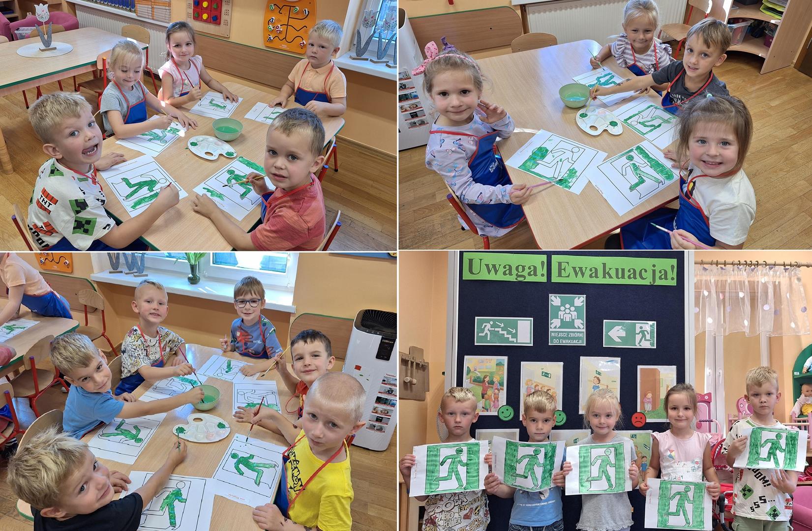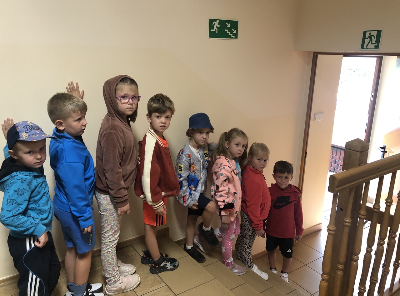 Zgodnie z wymaganiami § 17 rozporządzenia Ministra Spraw Wewnętrznych i Administracji z dnia 7 czerwca 2010 r. w sprawie ochrony przeciwpożarowej budynków, innych obiektów budowlanych i terenów (Dz. U. z 2010 r. nr 109, poz. 719), w dniu 10.09.2025 w godzinach: 8.30 – 9.15 (budynek w Grębocicach, ul Kościelna 18A, godz.: 9.15; budynek w Rzeczycy Nr 68 godz.: 8.30) przeprowadzone zostały praktyczne ćwiczenia, w zakresie sprawdzenia organizacji i warunków ewakuacji. Komunikat o ewakuacji przedszkola został przekazany przez radiolę dzięki czemu był słyszalny we wszystkich salach przedszkolnych jednocześnie. Na miejscu zbiórki sprawdzono stan osobowy ewakuowanych, czujność nauczycielek zapewniła dzieciom bezpieczeństwo na wysokim poziomie. Ewakuacja przebiegła sprawnie i prawidłowo.