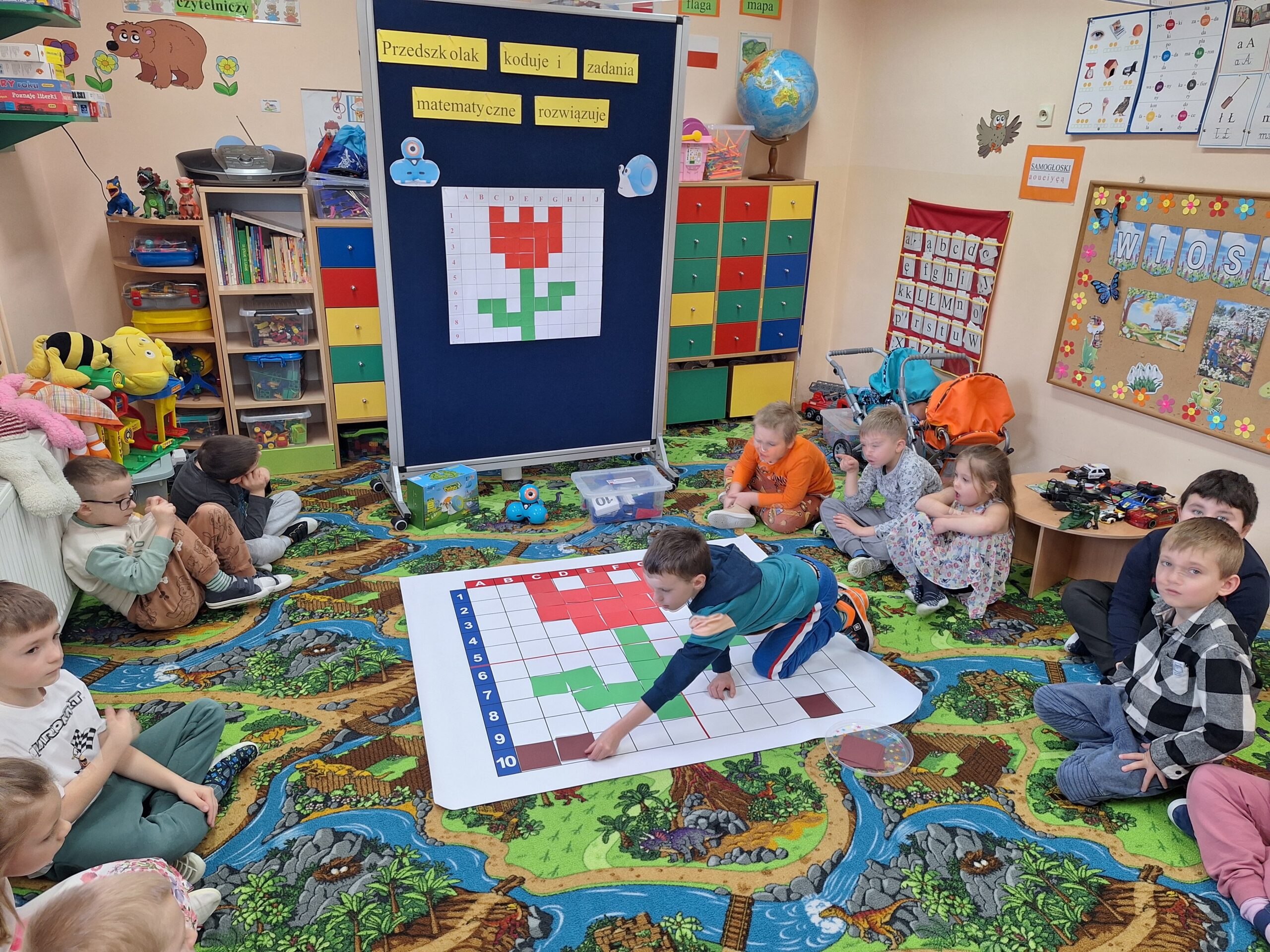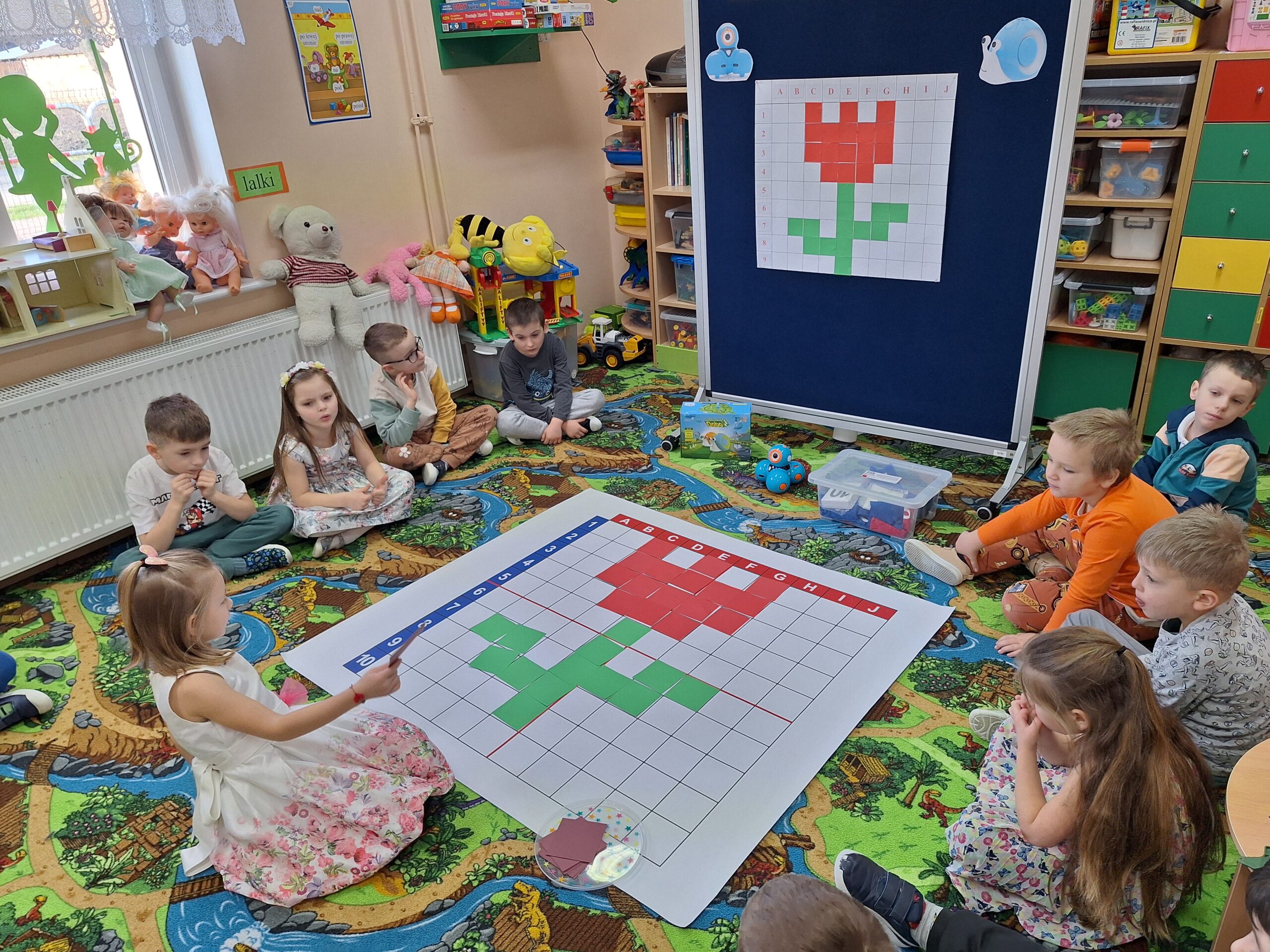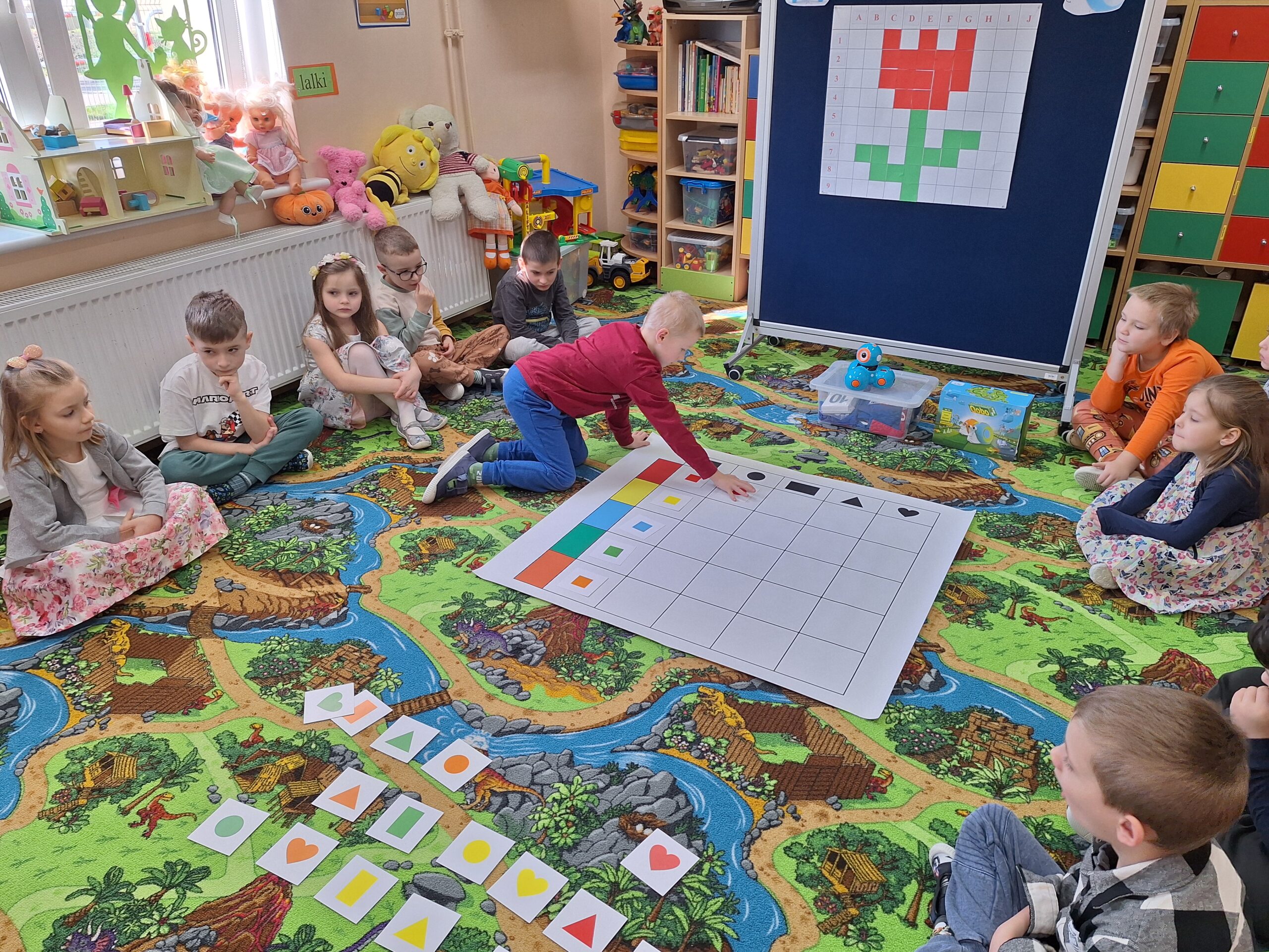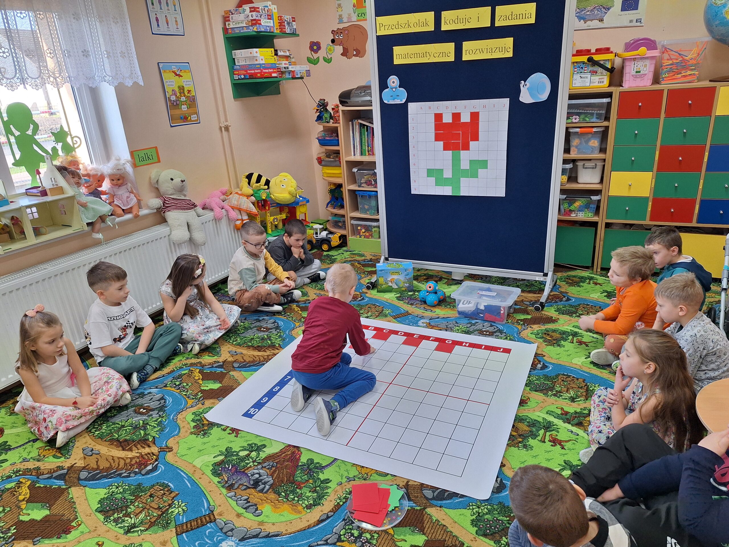 W ramach projektu „20 minut dla matematyki” dzieci z Oddziału „Stokrotki” uczyły się kodowania i programowania robotów takich jak: DOC oraz QOBO. Kodowanie i programowanie staje się dziś ważnym kierunkiem w edukacji na wszystkich poziomach kształcenia, aby jednak uczniowie z powodzeniem kodowali, pewne umiejętności analizowania, wnioskowania, planowania możemy zaszczepić u dzieci jeszcze na etapie przedszkola. Zabawy z kodowaniem są pełne radości, otwierają umysły, rozwijają umiejętności logicznego myślenia, rozumowania i wnioskowania. Czas, który dzieci spędzają w przedszkolu, pozwala im polubić kodowanie, traktować zabawy z nim jako naturalną część edukacji i wychowania. Stokrotki poznały zasady kodowania z Robotem DOC oraz QOBO. Każde dziecko miało okazję zaprogramować robota i sprawdzić czy dobrze wykonał ich kodowanie. Dzieci z grypy „Stokrotek” w ramach zajęć zrozumiały, że matematyka jest wszędzie i może być ciekawa, przyjemna, a przede wszystkim daje dużo radości. Koordynatorem zajęć była nauczycielka Zuzanna Bilska.
