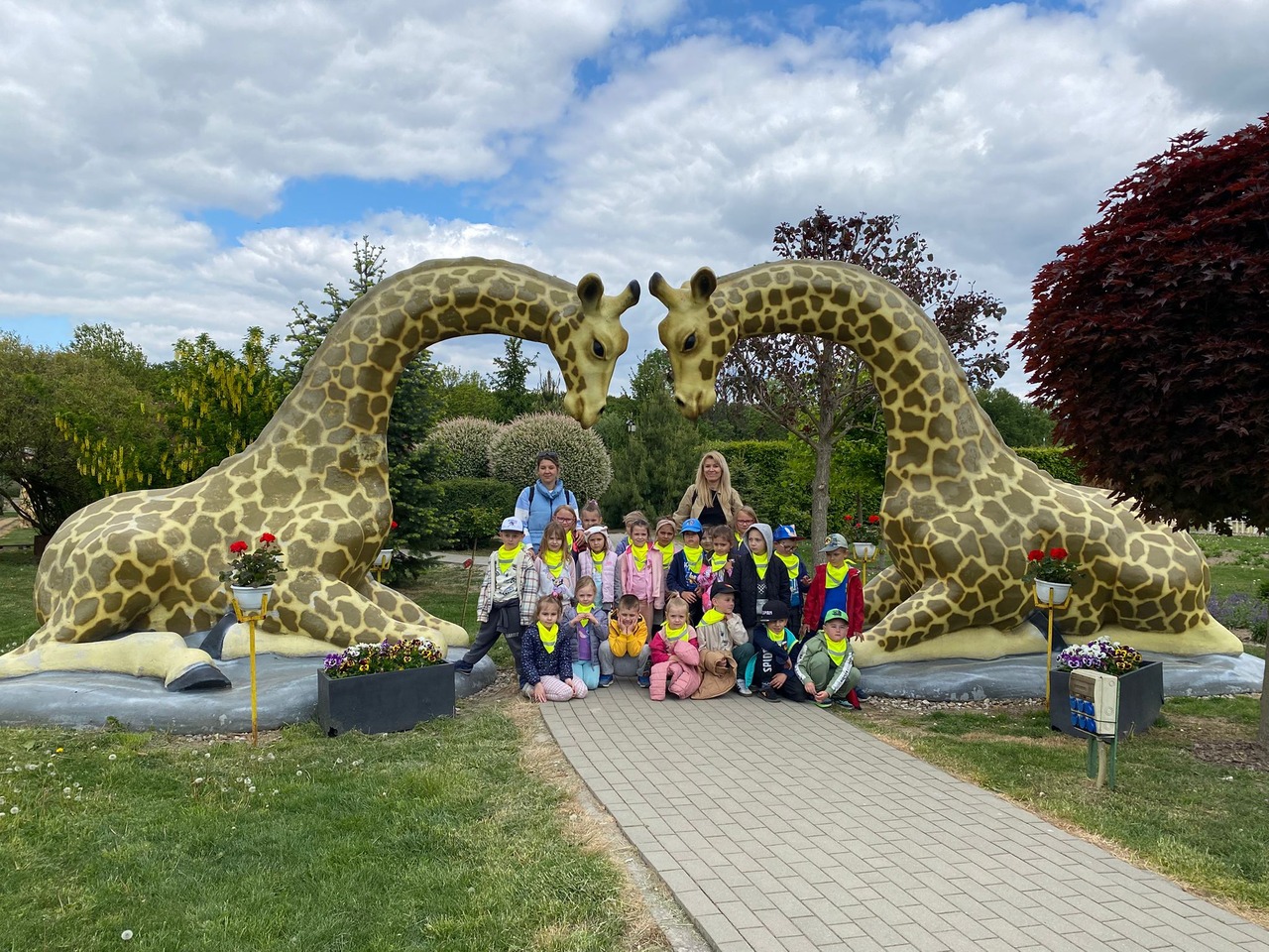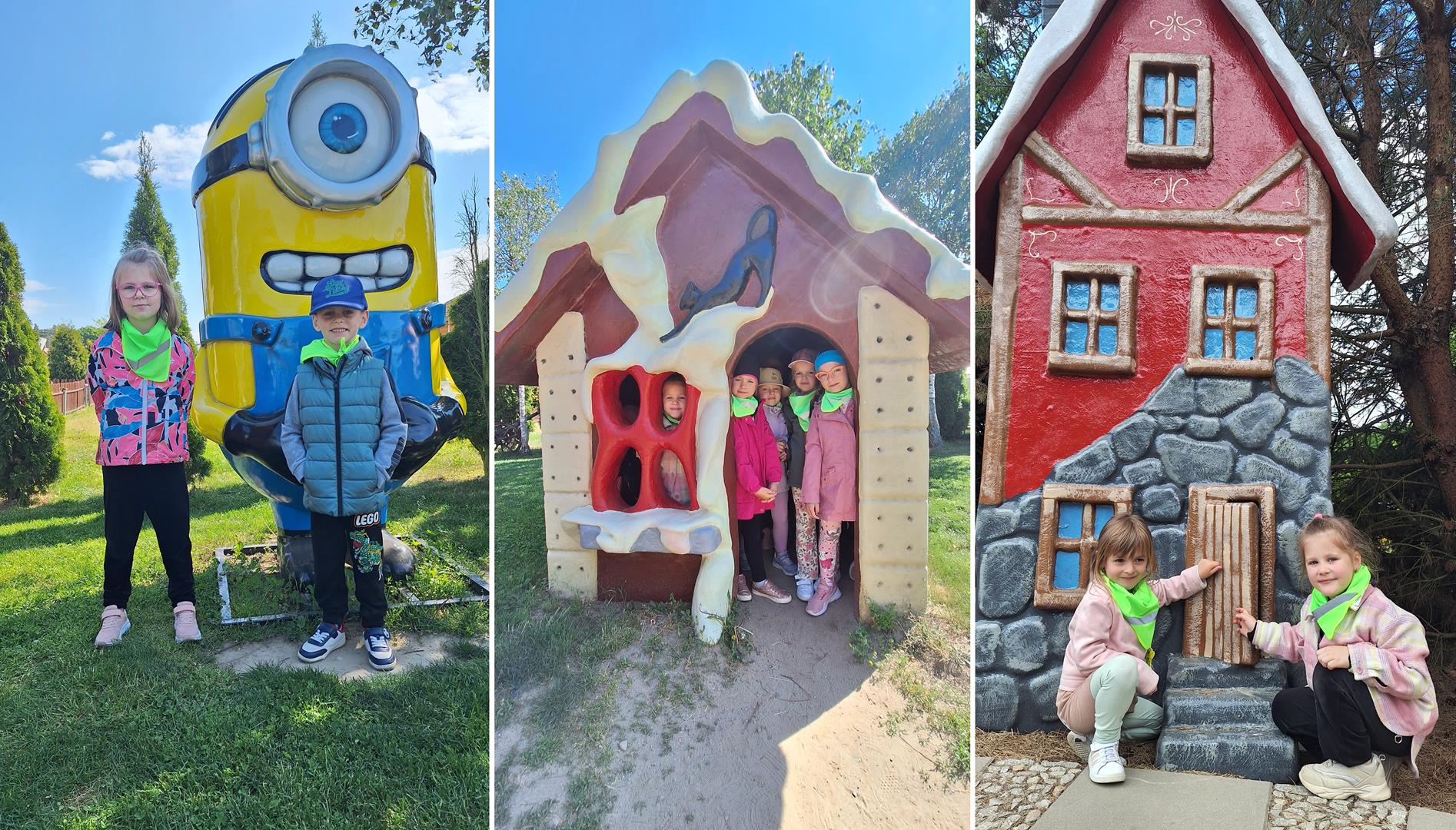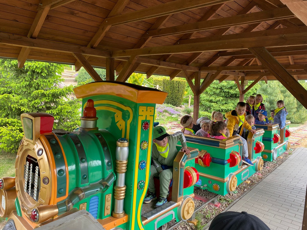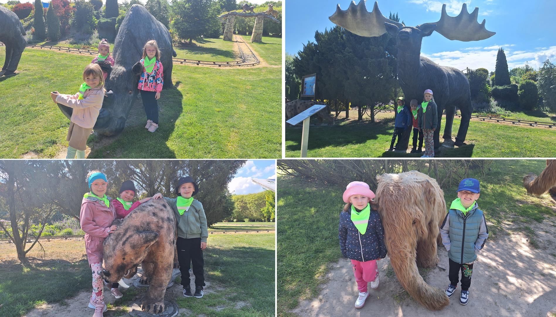 Dnia 12.05.2025 roku dzieci z oddziału „Biedronek” i „Motylków” wybrały się na wycieczkę do Deli Parku w miejscowości Trzebaw. Na terenie parku odwiedziliśmy Mini Zoo, gdzie obserwowaliśmy zwierzęta wiejskie. Podziwialiśmy figury prehistorycznych zwierząt, gigantycznych owadów, budowle świata, a także figury postaci z bajek. Dzieci korzystały z wielu atrakcji: podniebnej eko-wioski, placów zabaw oraz dmuchańców. Zabawa była wspaniała, a pogoda wymarzona. Po tak mile spędzonym dniu wszyscy wrócili do domów w doskonałych humorach.