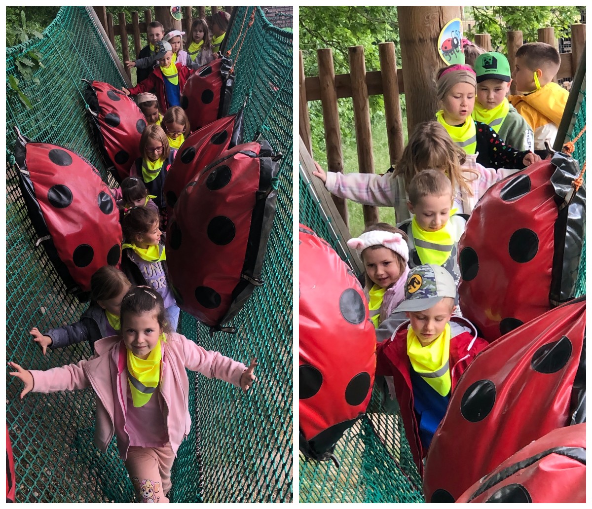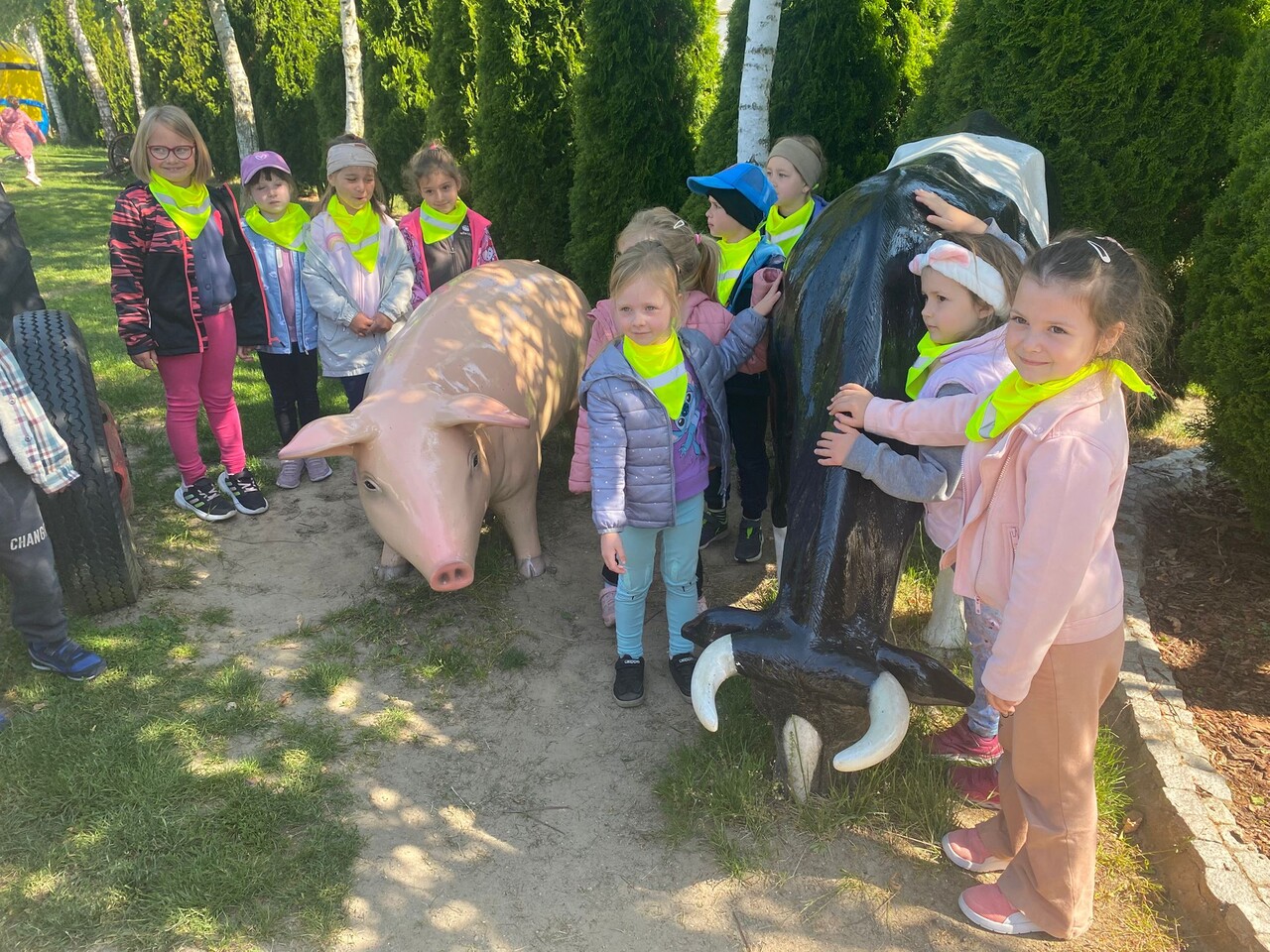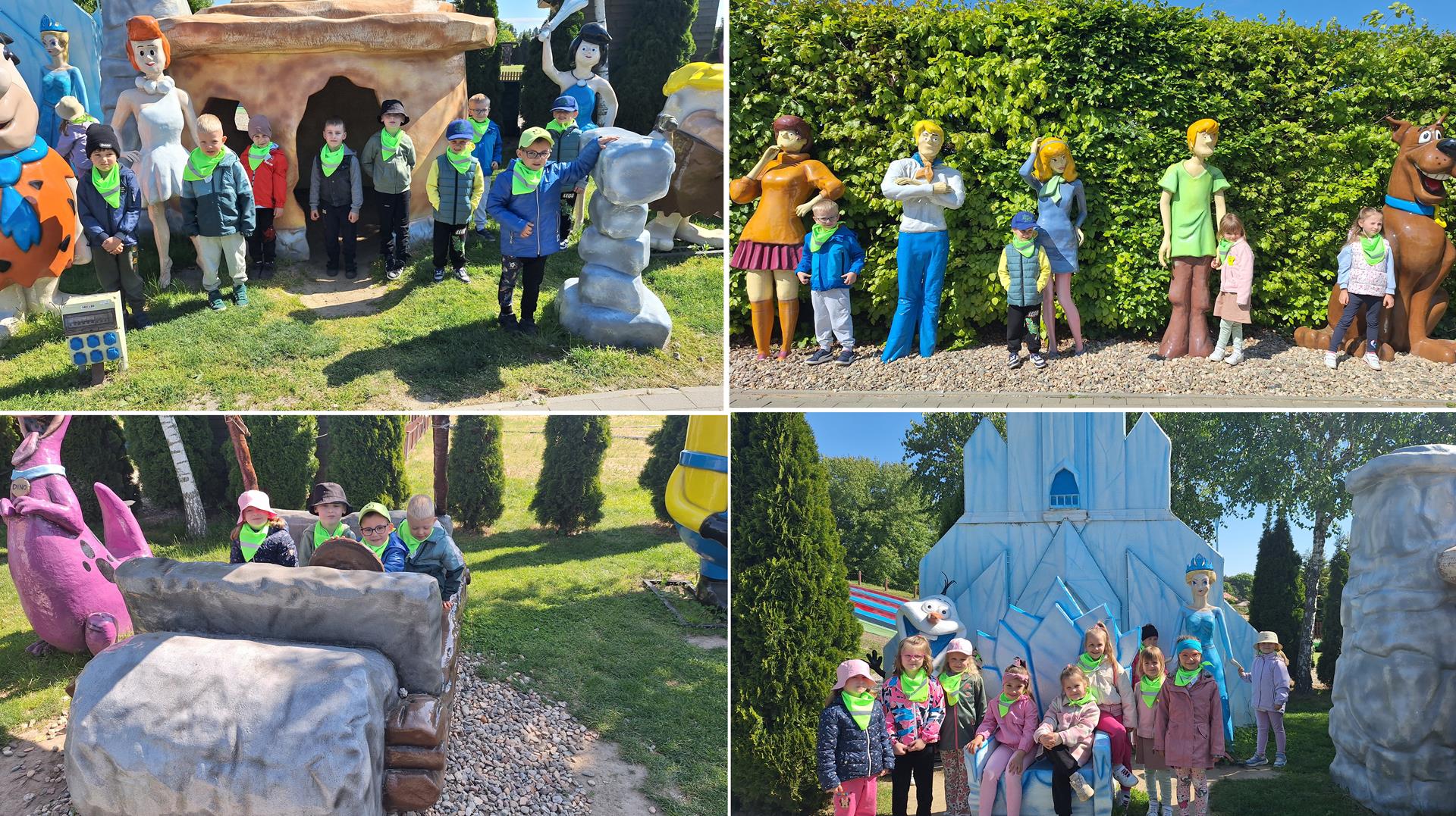 Dnia 12.05.2025 roku dzieci z oddziału „Biedronek” i „Motylków” wybrały się na wycieczkę do Deli Parku w miejscowości Trzebaw. Na terenie parku odwiedziliśmy Mini Zoo, gdzie obserwowaliśmy zwierzęta wiejskie. Podziwialiśmy figury prehistorycznych zwierząt, gigantycznych owadów, budowle świata, a także figury postaci z bajek. Dzieci korzystały z wielu atrakcji: podniebnej eko-wioski, placów zabaw oraz dmuchańców. Zabawa była wspaniała, a pogoda wymarzona. Po tak mile spędzonym dniu wszyscy wrócili do domów w doskonałych humorach.