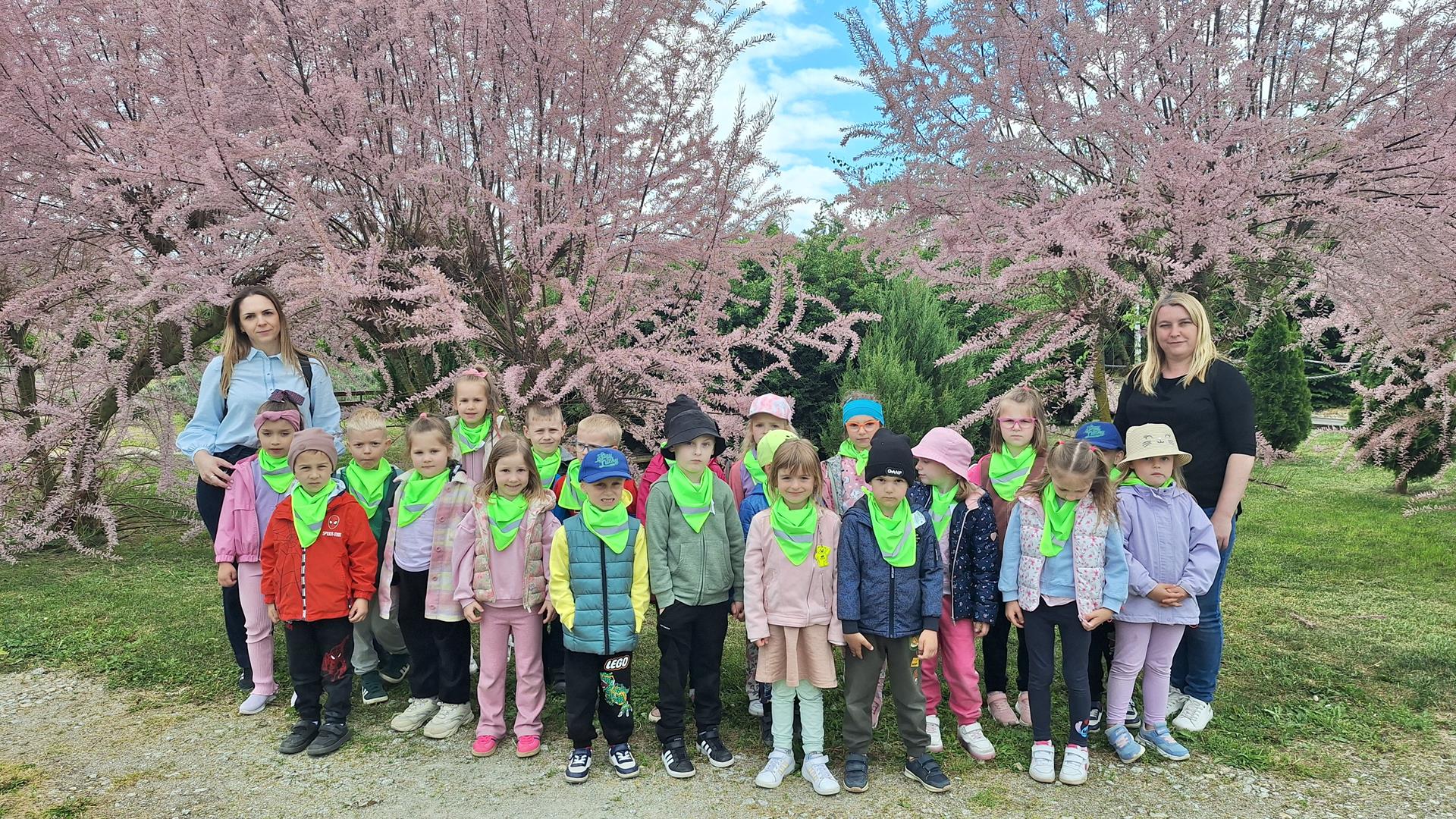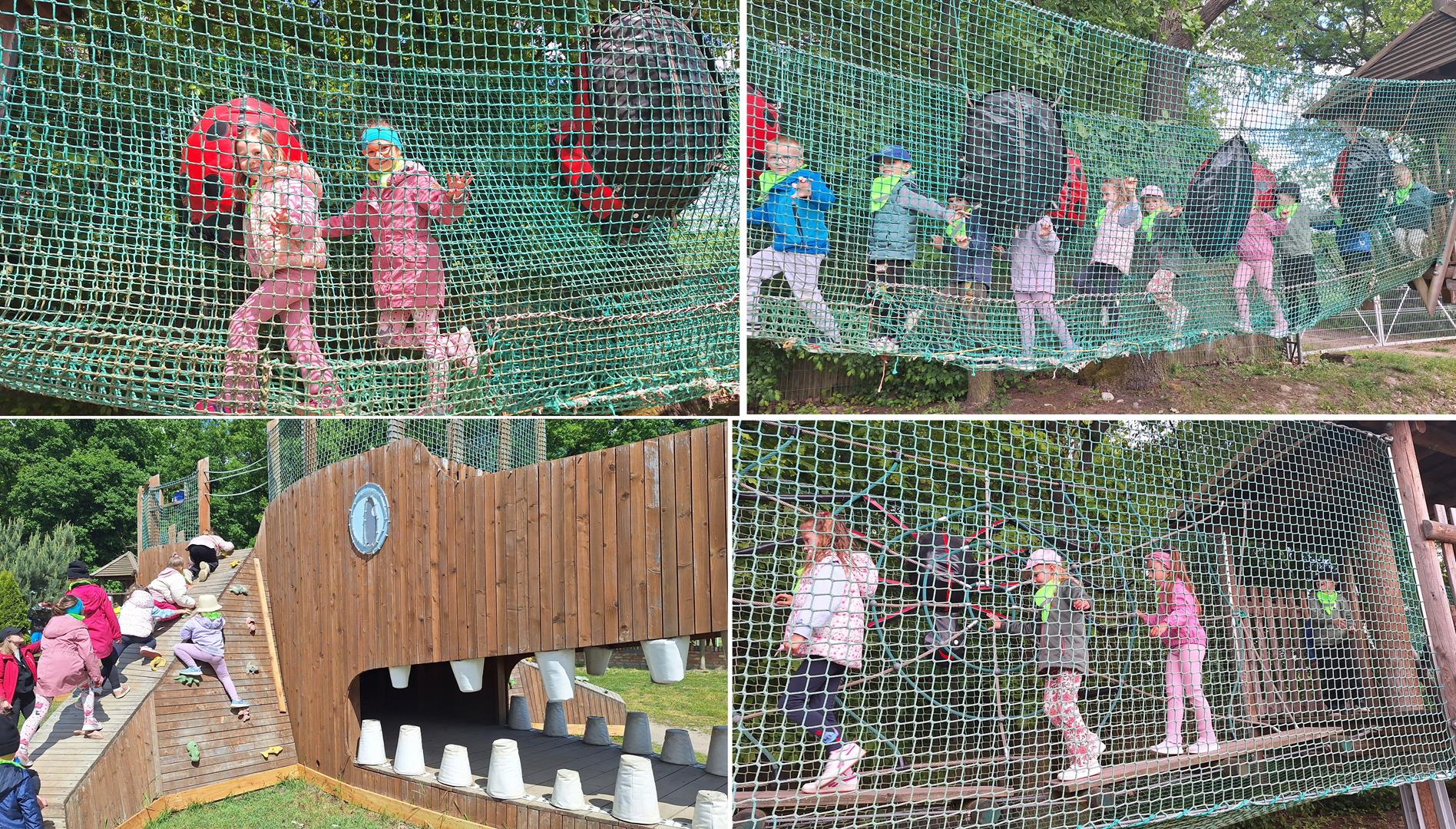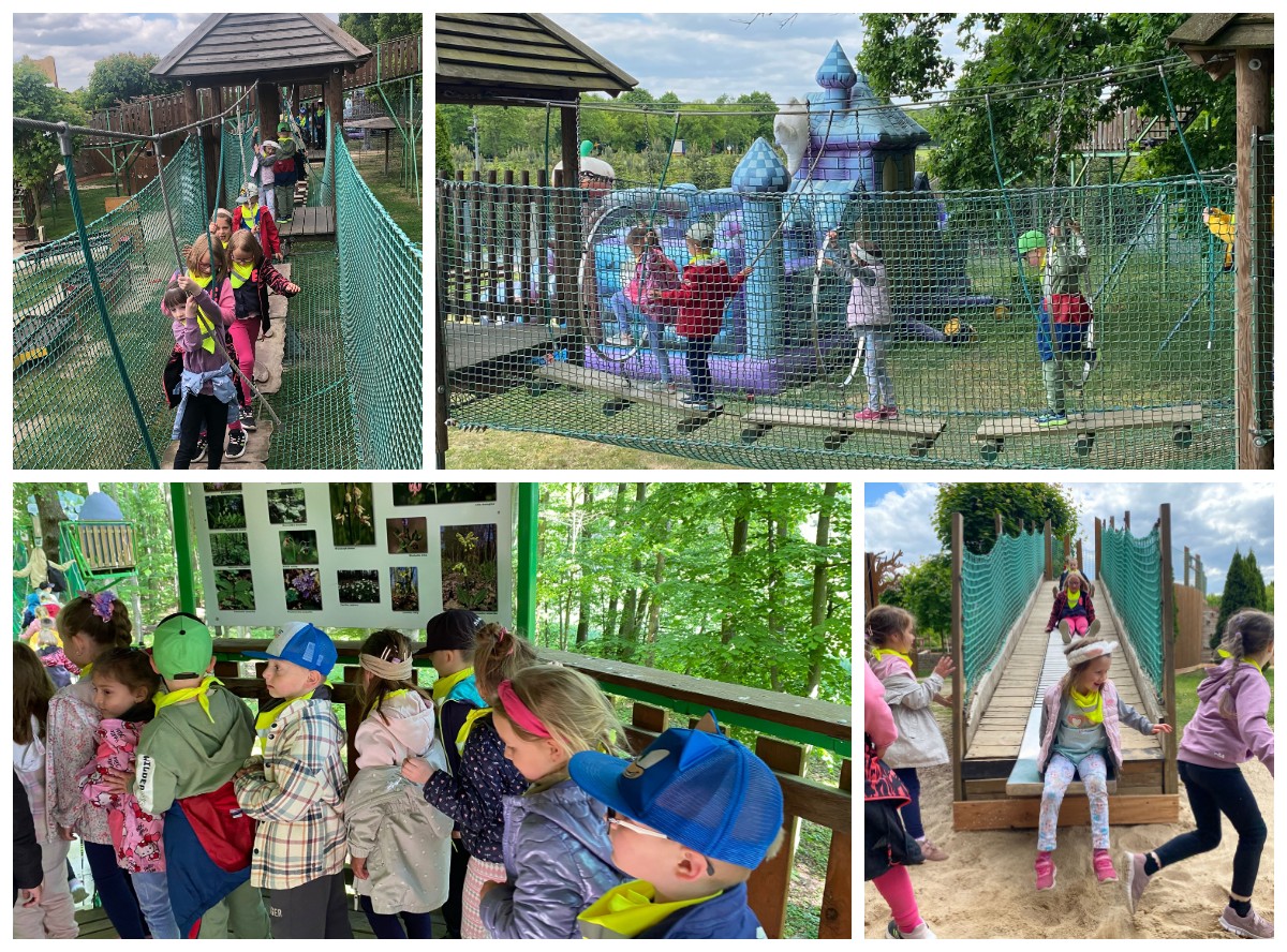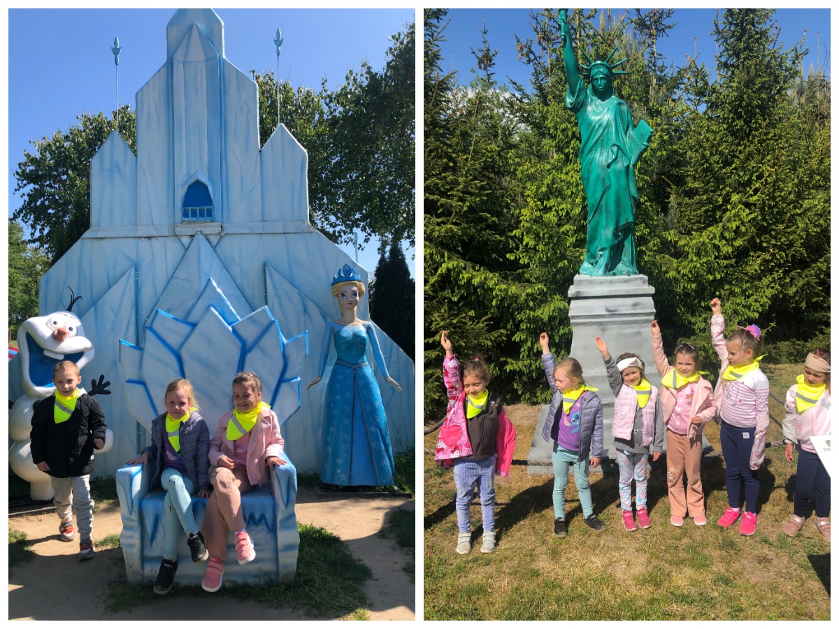 Dnia 12.05.2025 roku dzieci z oddziału „Biedronek” i „Motylków” wybrały się na wycieczkę do Deli Parku w miejscowości Trzebaw. Na terenie parku odwiedziliśmy Mini Zoo, gdzie obserwowaliśmy zwierzęta wiejskie. Podziwialiśmy figury prehistorycznych zwierząt, gigantycznych owadów, budowle świata, a także figury postaci z bajek. Dzieci korzystały z wielu atrakcji: podniebnej eko-wioski, placów zabaw oraz dmuchańców. Zabawa była wspaniała, a pogoda wymarzona. Po tak mile spędzonym dniu wszyscy wrócili do domów w doskonałych humorach.