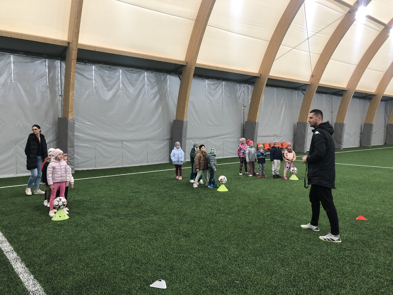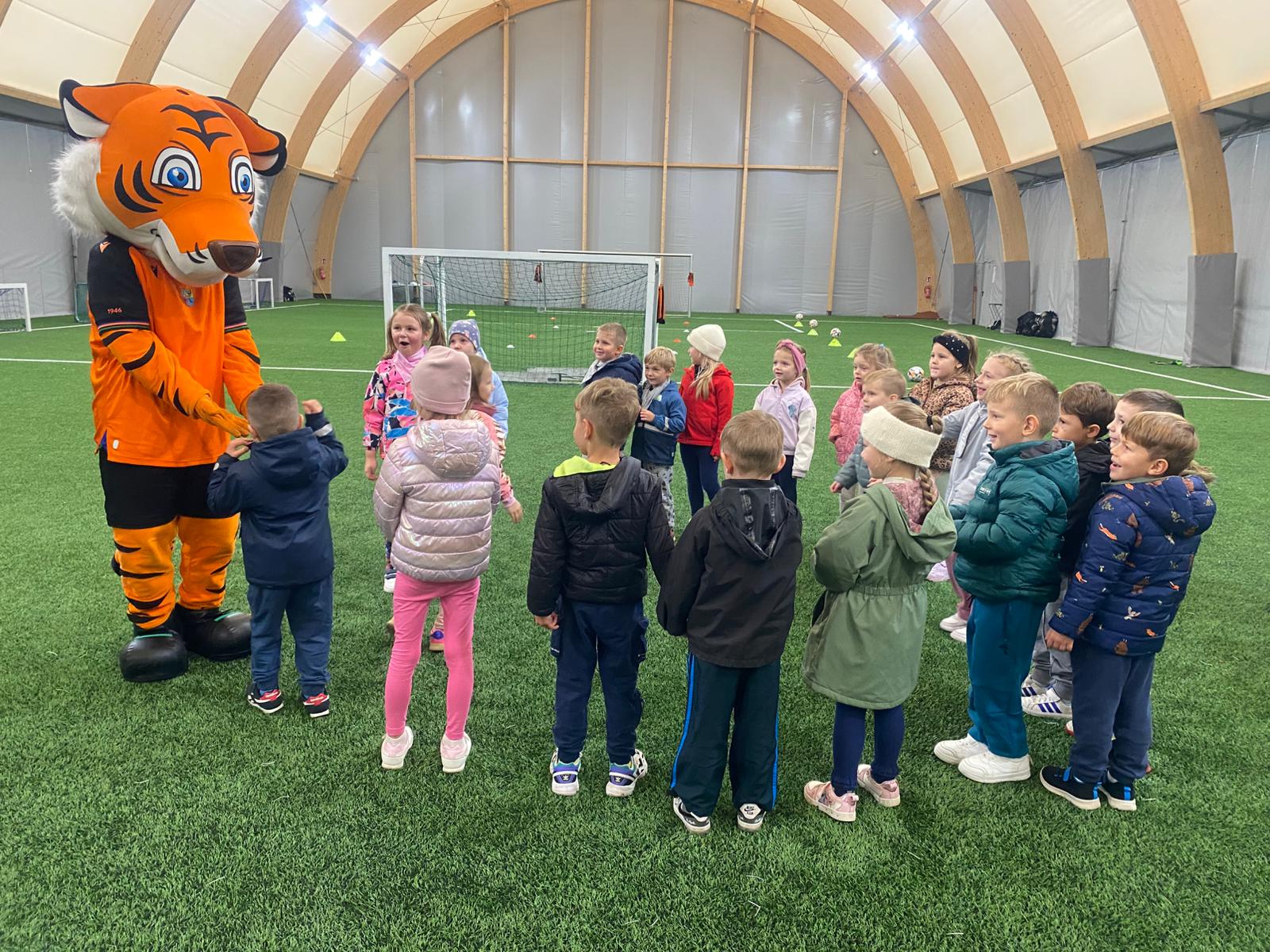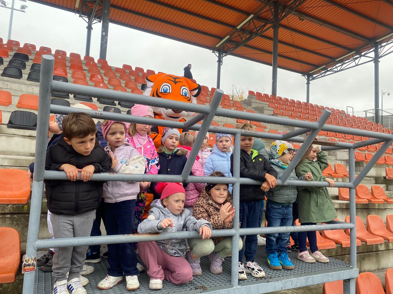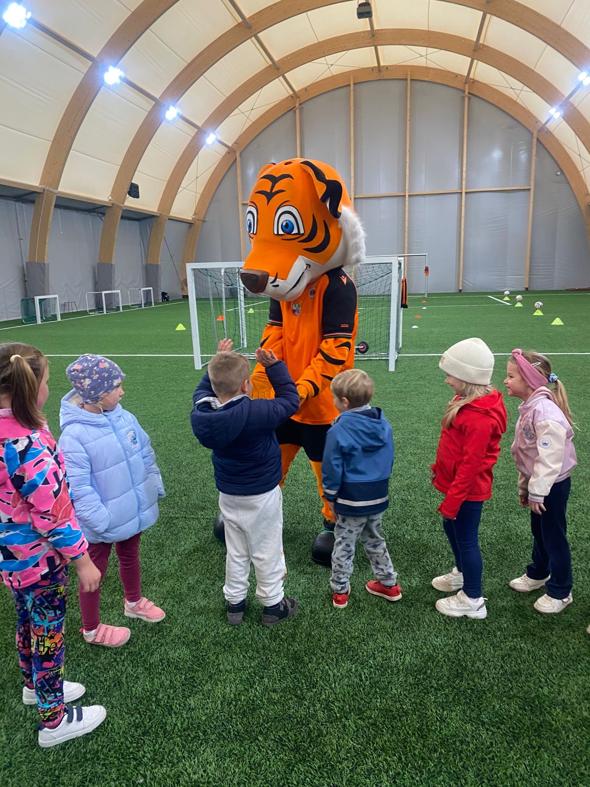 W środę, 15.10.2025 r. dzieci z oddziałów ,,Motylki” i ,,Biedronki” zwiedzały obiekty sportowe Klubu Piłkarskiego Chrobry Głogów oraz miały wyjątkową okazję wziąć udział we wspólnym treningu z trenerem Akademii Piłki Nożnej panem Pawłem Marszałkiem. Podczas spotkania przedszkolaki poznały zawód trenera, dowiedziały się, że zajęcia sportowe z piłki nożnej to świetny sposób na aktywne spędzanie czasu w gronie rówieśników, a wspólna aktywność fizyczna nie tylko sprzyja budowaniu relacji i współpracy, ale uczy wzajemnego szacunku i zasad gry fair play. Na koniec, w towarzystwie maskotki klubu – Tygryska Chrobrego, dzieci zwiedziły stadion i okoliczne obiekty sportowe.