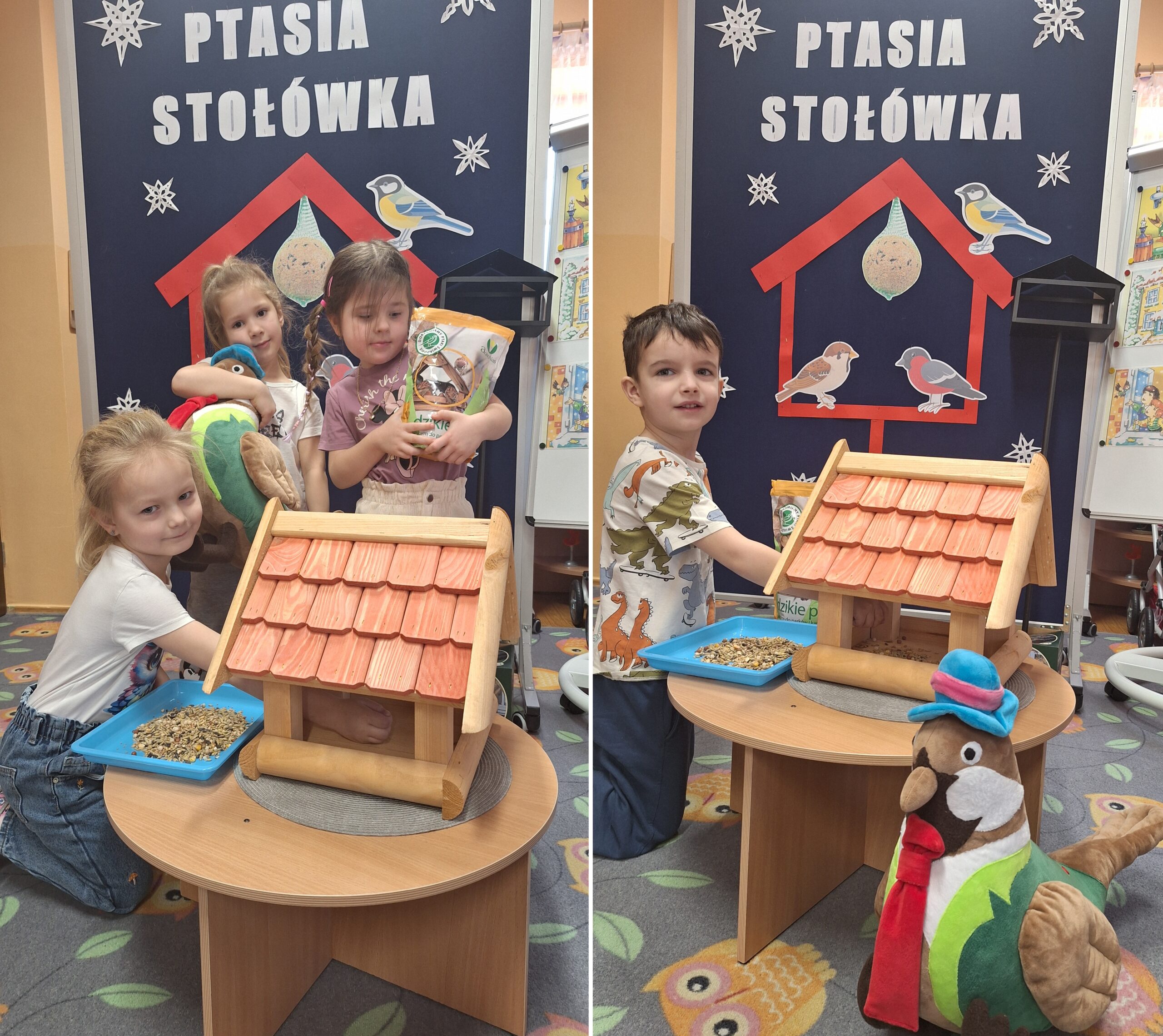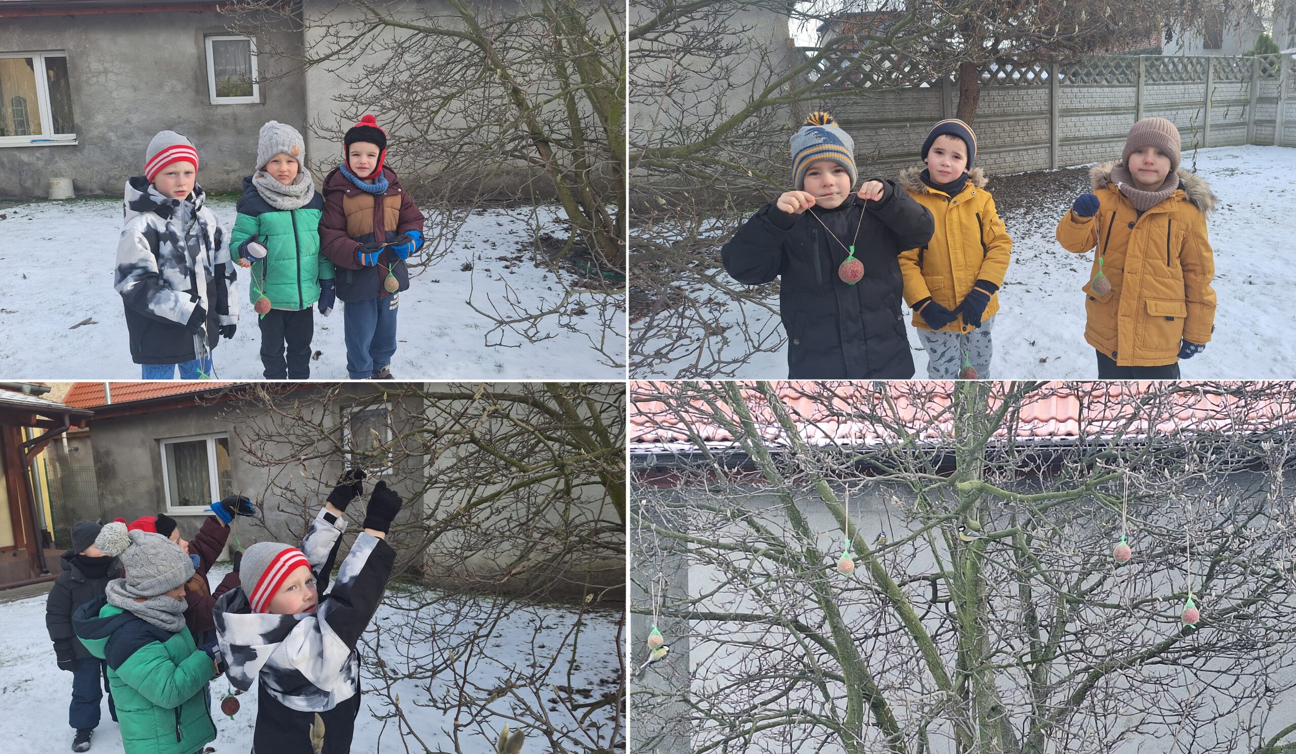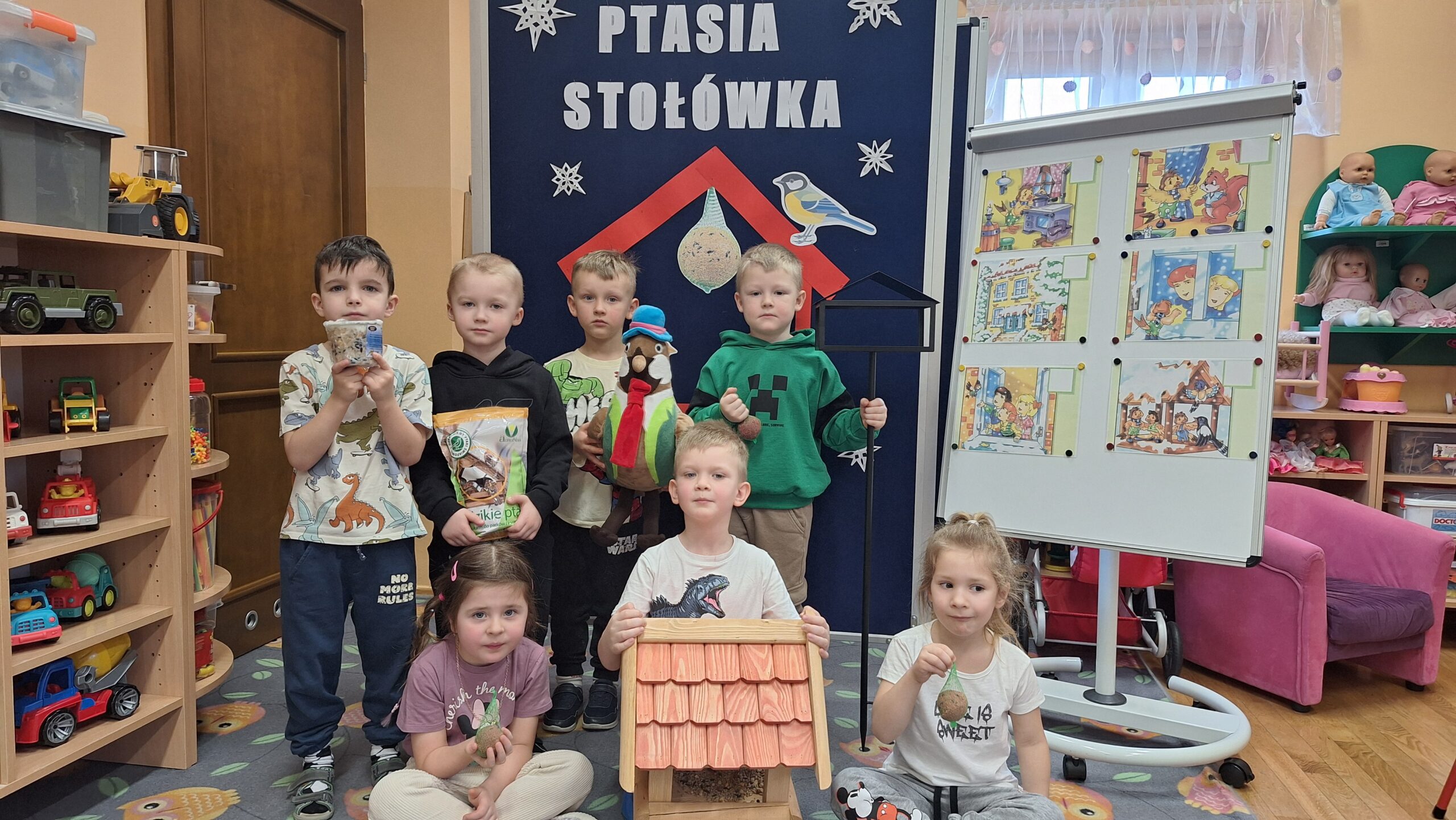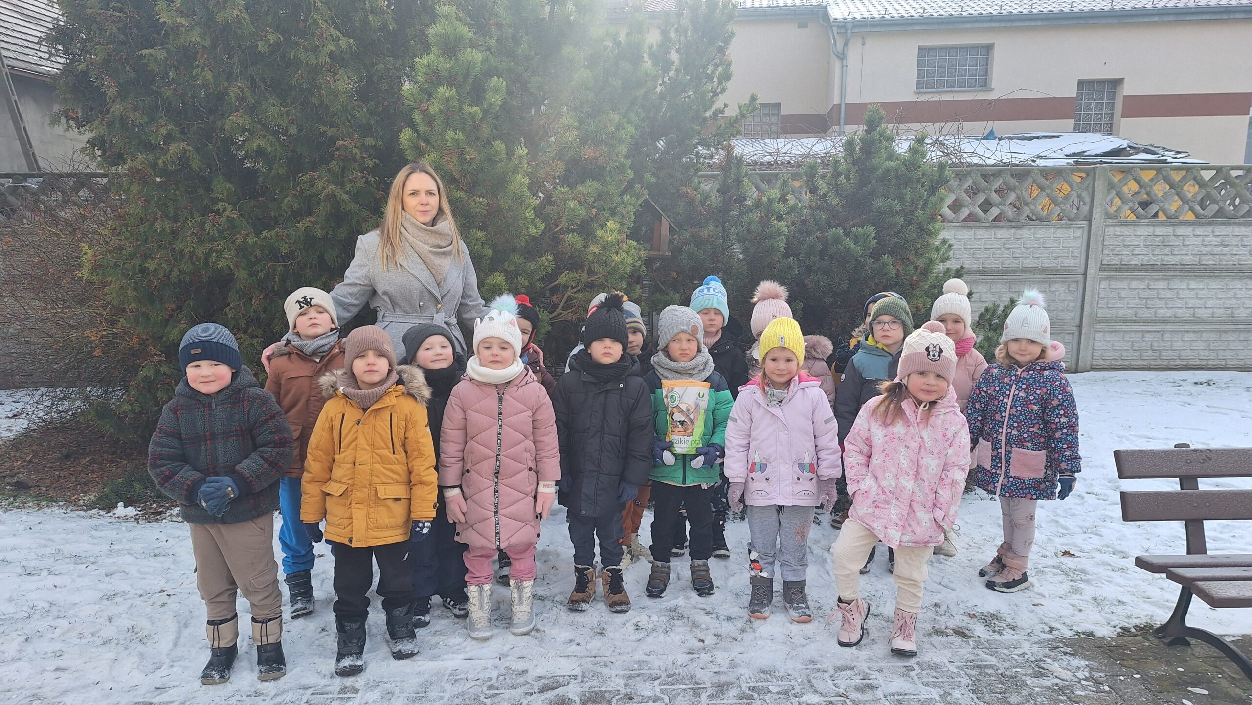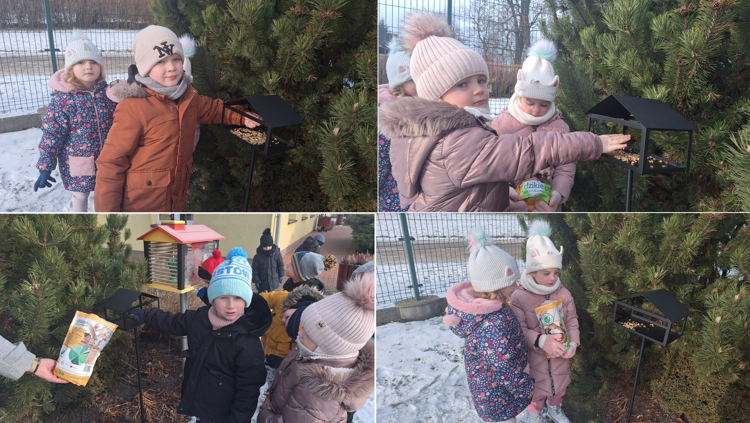 Dzieci z oddziału „Biedronek” wzięły udział w zajęciach edukacyjnych poświęconych ptakom zimą. Podczas rozmów, oglądania ilustracji oraz wspólnych zabaw dzieci dowiedziały się, które ptaki zostają z nami na zimę, dlaczego potrzebują naszej pomocy oraz czym można je bezpiecznie dokarmiać. Przedszkolaki z dużym zainteresowaniem słuchały ciekawostek o ptakach i chętnie dzieliły się swoimi spostrzeżeniami. Po zajęciach edukacyjnych dzieci postanowiły zadbać o ptaki w praktyce. Wspólnie wsypały ziarna do karmników znajdujących się na terenie przedszkola, tworząc prawdziwą „ptasią stołówkę”. Jakież było ich zaskoczenie, gdy niemal od razu przy karmnikach pojawiły się ptaki! Dzieci z radością obserwowały skrzydlatych gości, ucząc się jednocześnie wrażliwości, odpowiedzialności oraz troski o przyrodę.