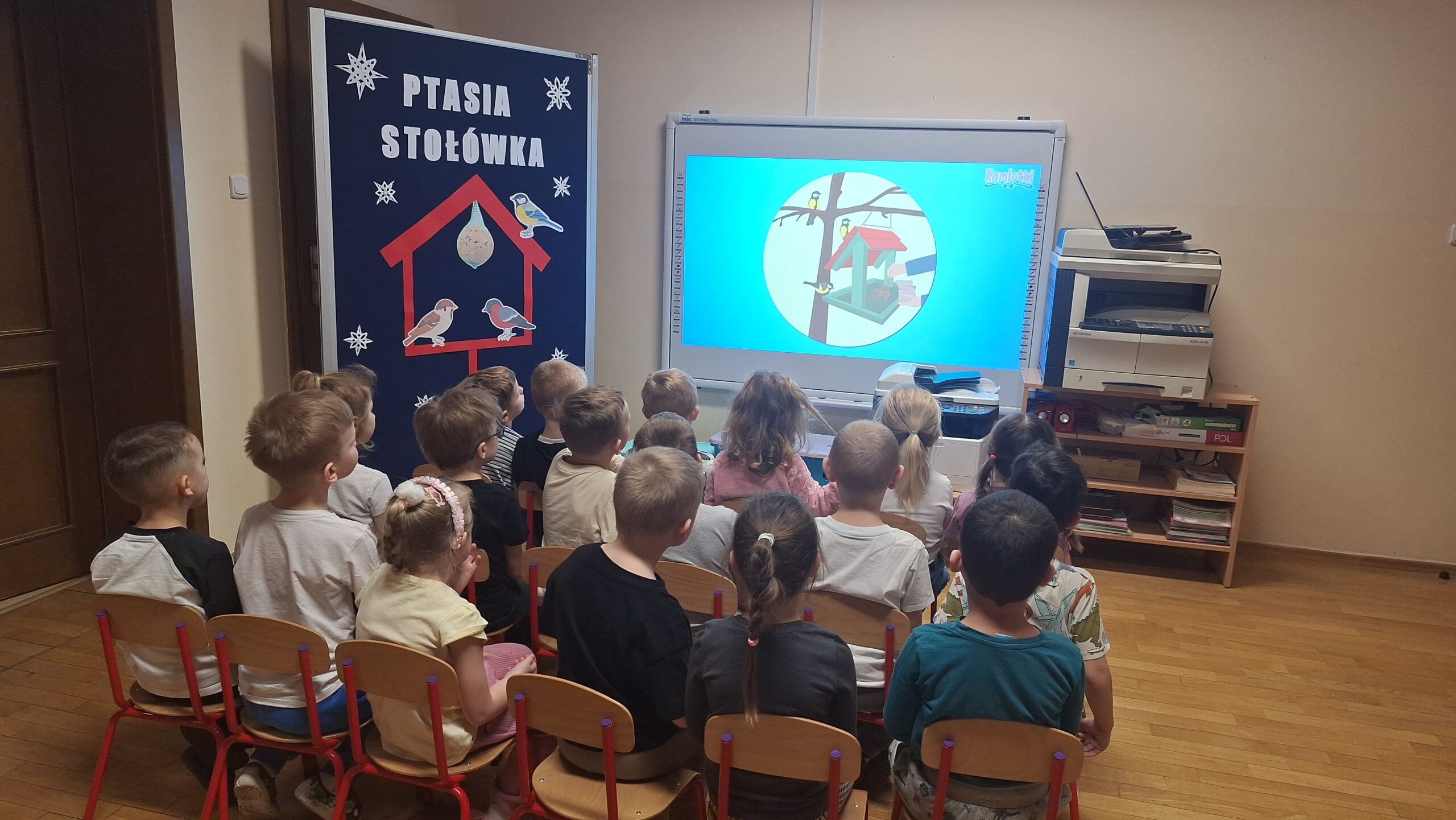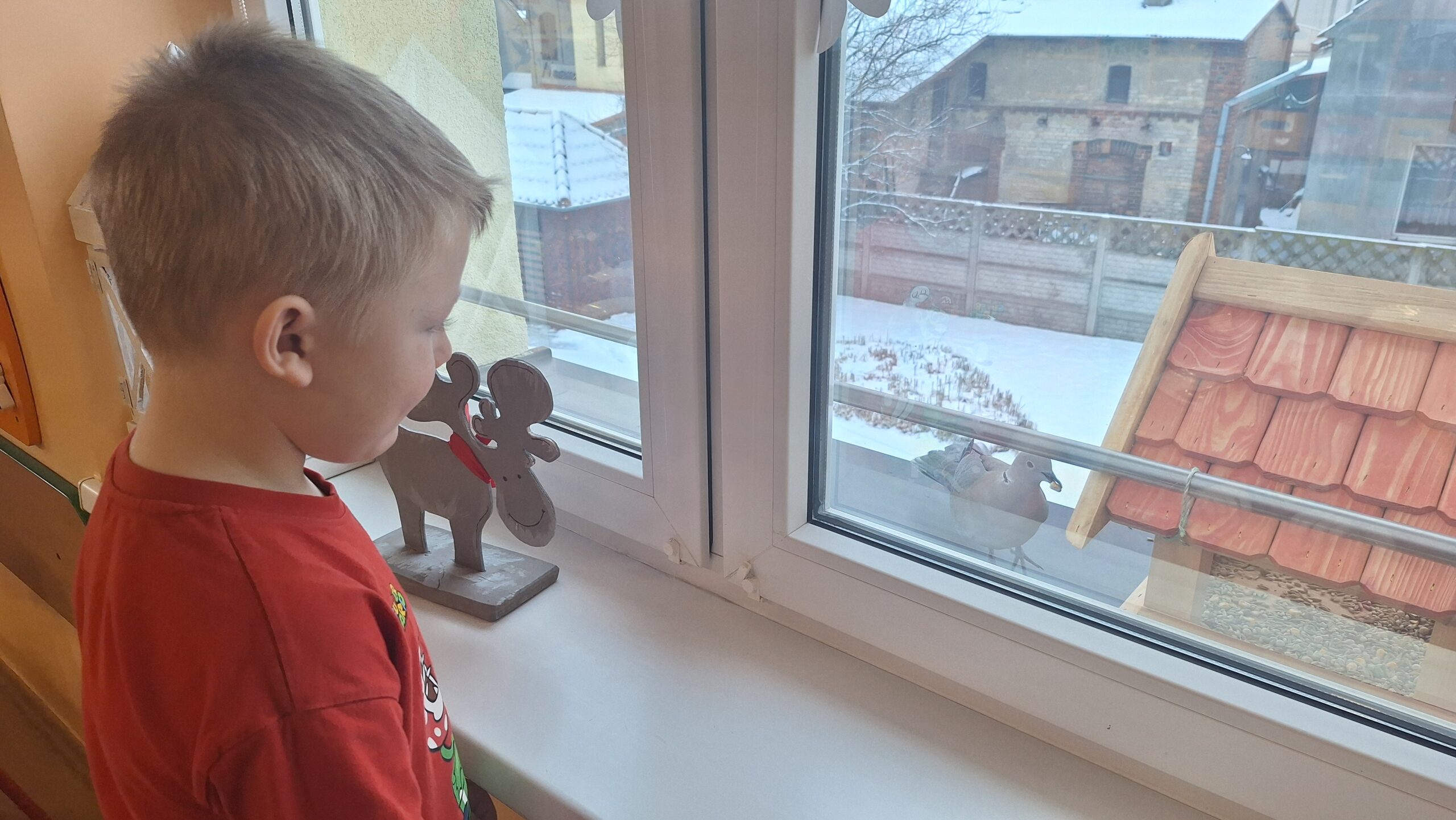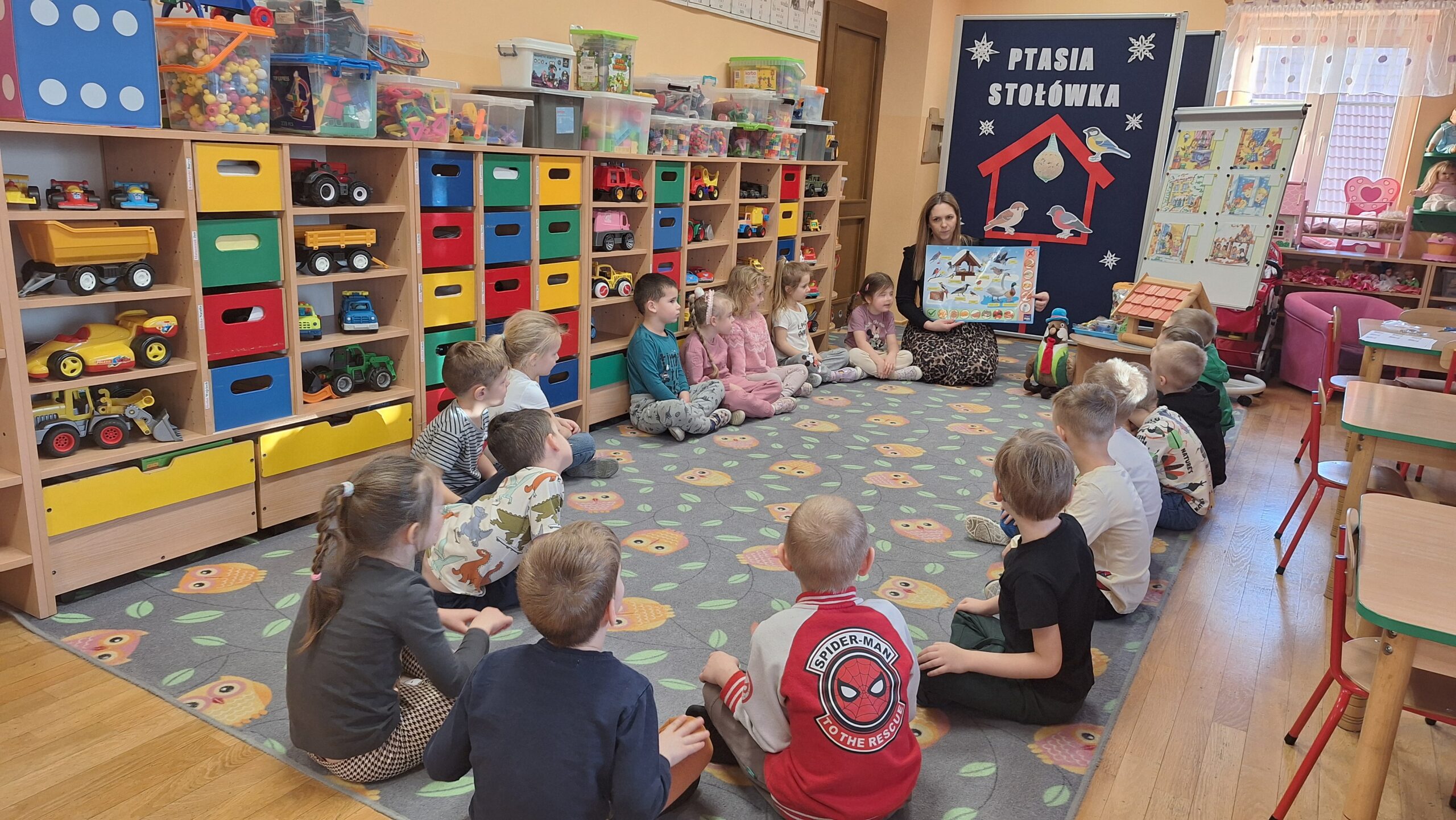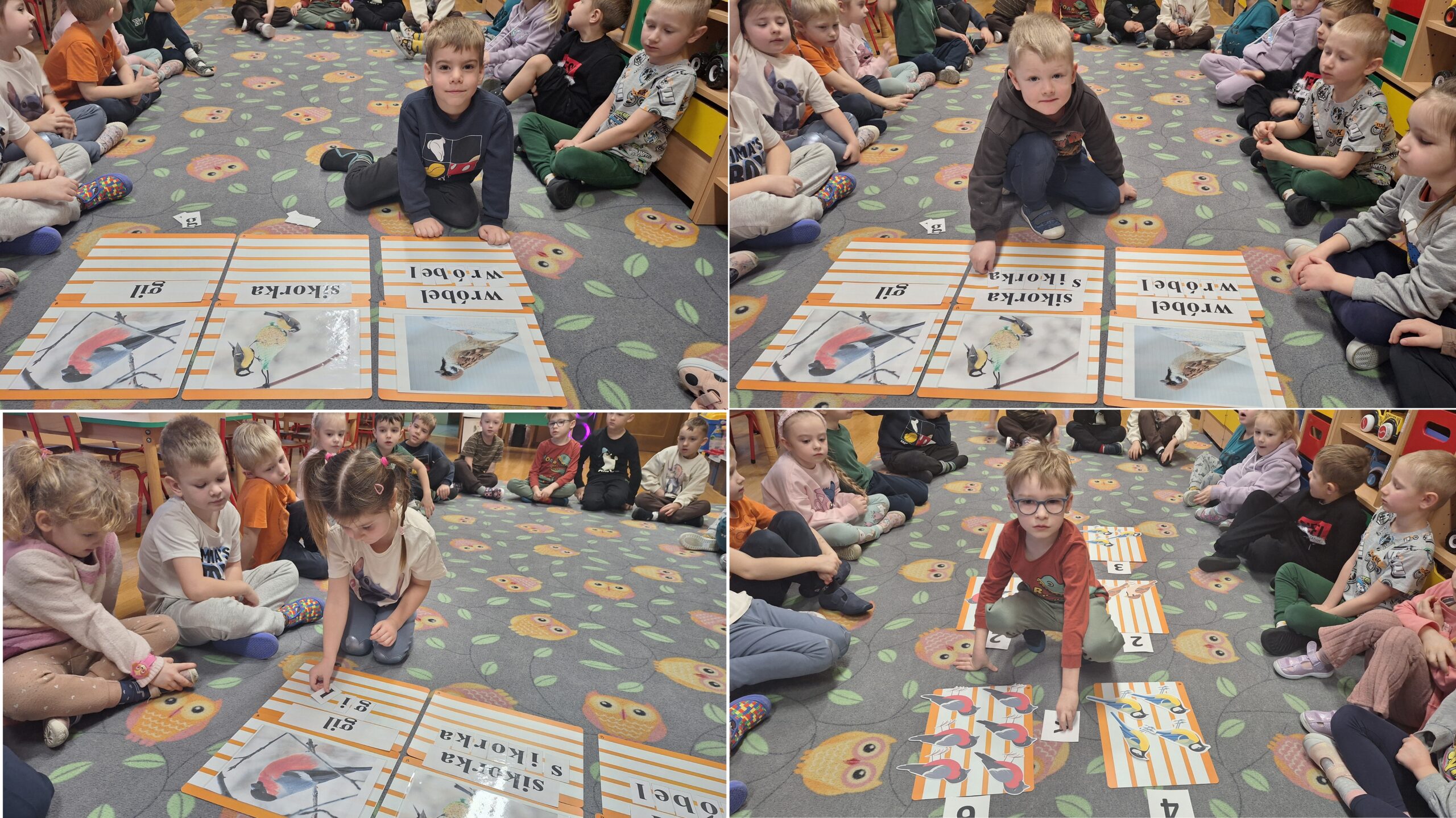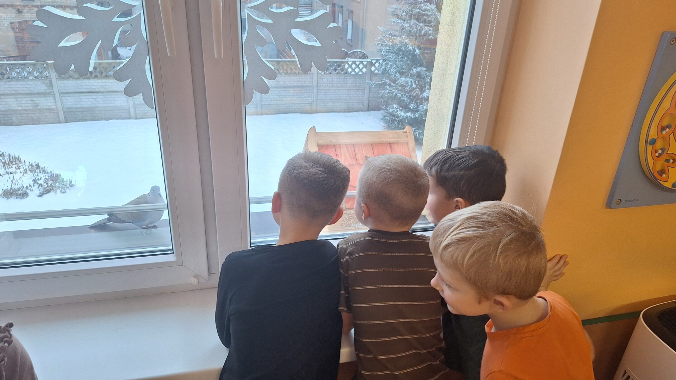 Dzieci z oddziału „Biedronek” wzięły udział w zajęciach edukacyjnych poświęconych ptakom zimą. Podczas rozmów, oglądania ilustracji oraz wspólnych zabaw dzieci dowiedziały się, które ptaki zostają z nami na zimę, dlaczego potrzebują naszej pomocy oraz czym można je bezpiecznie dokarmiać. Przedszkolaki z dużym zainteresowaniem słuchały ciekawostek o ptakach i chętnie dzieliły się swoimi spostrzeżeniami. Po zajęciach edukacyjnych dzieci postanowiły zadbać o ptaki w praktyce. Wspólnie wsypały ziarna do karmników znajdujących się na terenie przedszkola, tworząc prawdziwą „ptasią stołówkę”. Jakież było ich zaskoczenie, gdy niemal od razu przy karmnikach pojawiły się ptaki! Dzieci z radością obserwowały skrzydlatych gości, ucząc się jednocześnie wrażliwości, odpowiedzialności oraz troski o przyrodę.