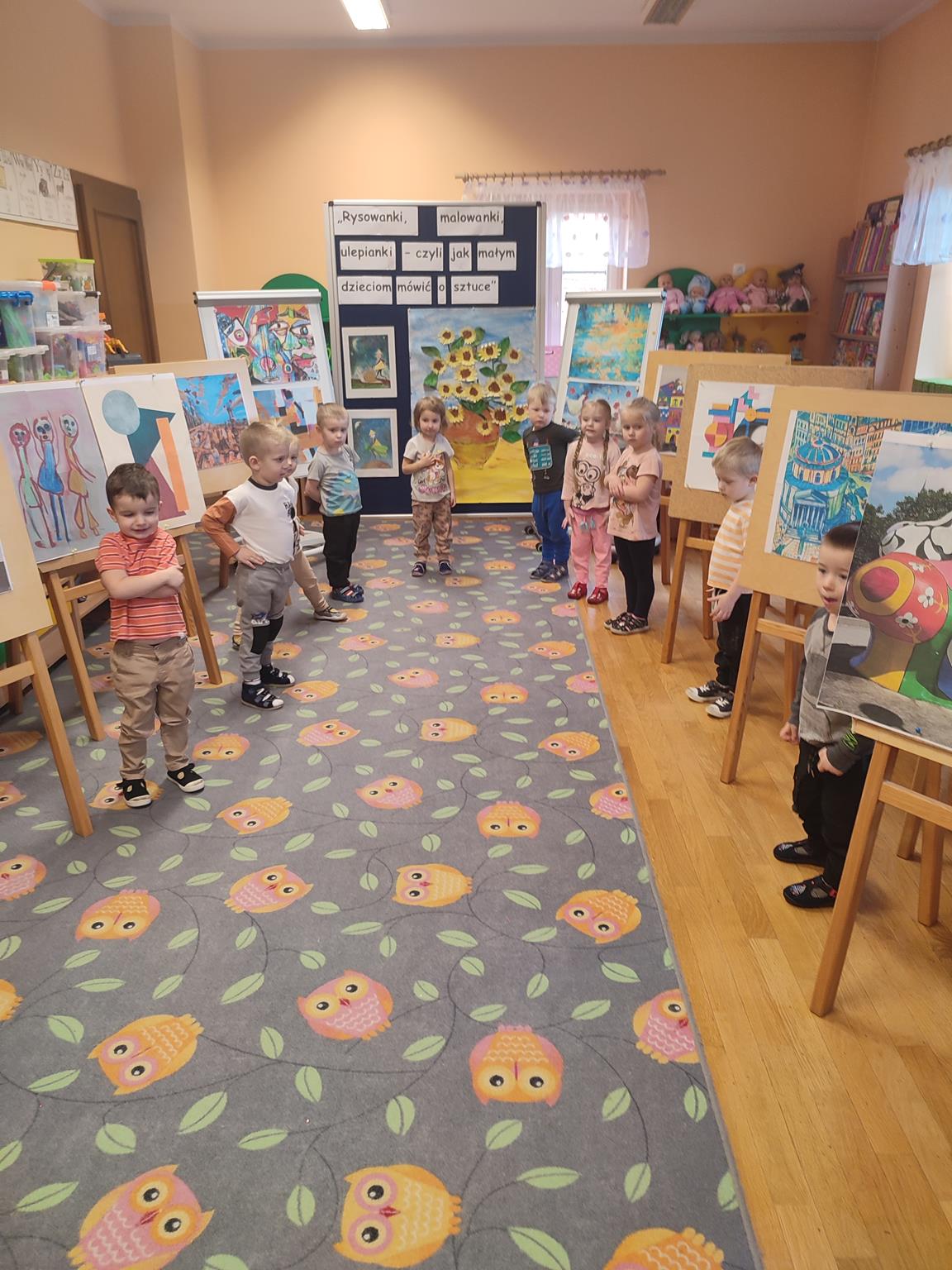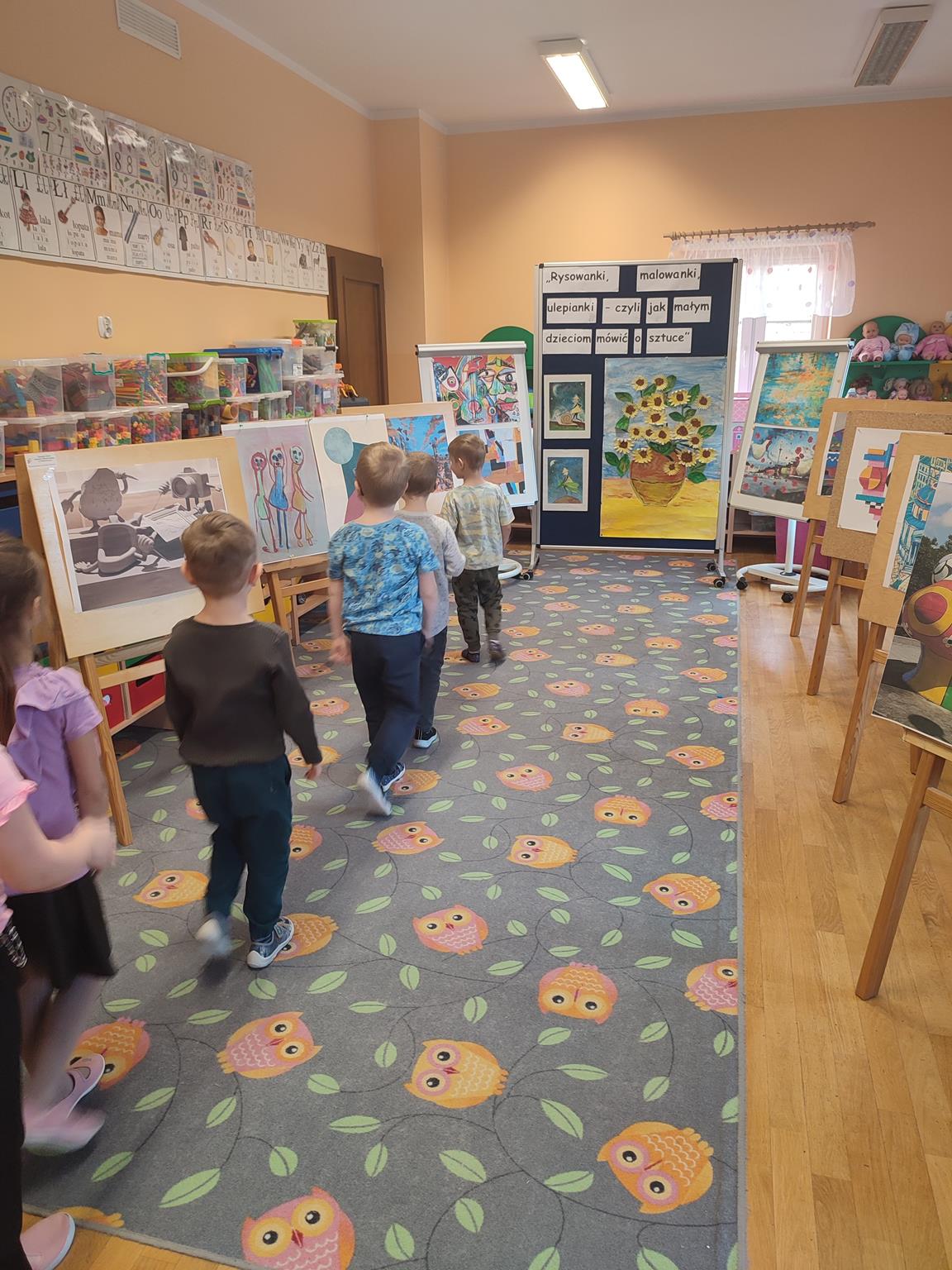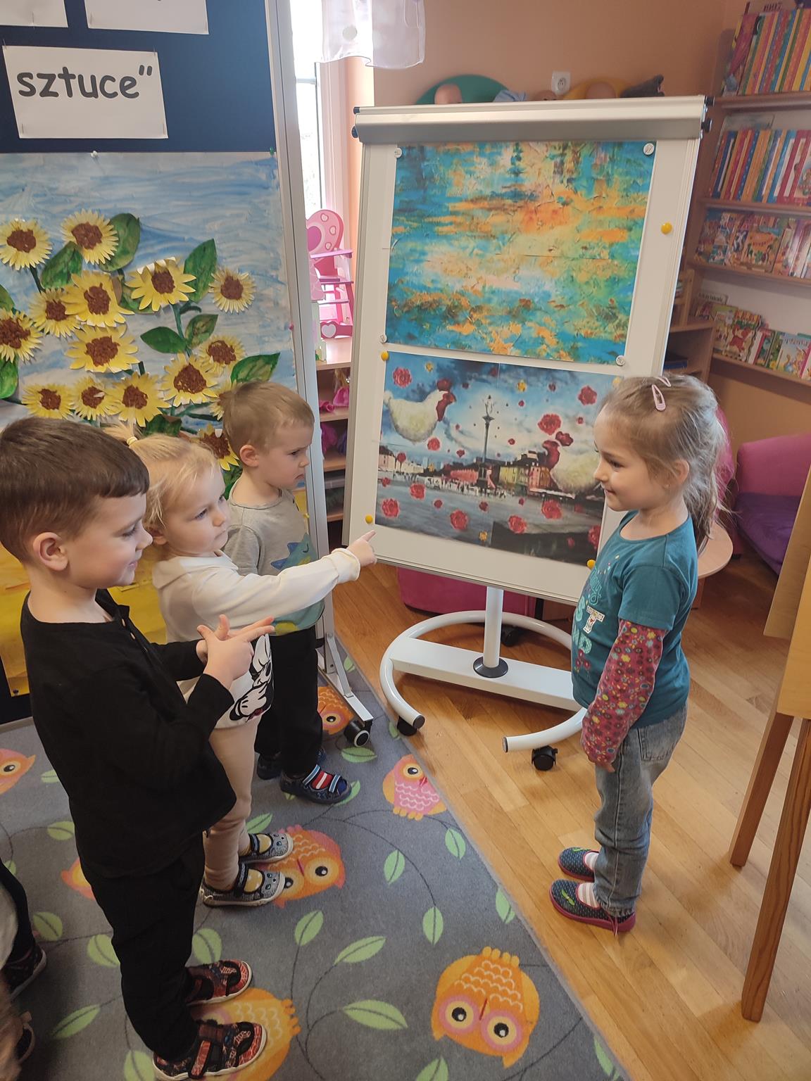 Dzieci z oddziału „Żuczki” wzięły udział w warsztatach artystycznych o sztuce. Celem zajęć było wdrożenie podstawowych pojęć z dziedzin sztuk plastycznych i wzbogacenie słownictwa. Bardzo ważne było również zainteresowanie i przygotowanie dzieci do odbioru dzieł wielkich mistrzów. Wspólnie ze swoimi starszymi kolegami z oddziału Biedronki dokonywały podstaw analizy dzieł poprzez wyrażanie własnych interpretacji oraz twórczego działania. Chcąc, aby na dobre dzieci wsiąknęły w świat sztuki, kreacji i nieskończonych możliwości, przedszkolaki ze swobodą, czerpały radość z procesu tworzenia i wykorzystywania różnych technik plastycznych. Przedszkole pokazuje swoim wychowankom, że sztuka to cała masa frajdy, a także pole do eksperymentów, sposobność do lepszego poznania siebie i możliwość ogólnego rozwoju.