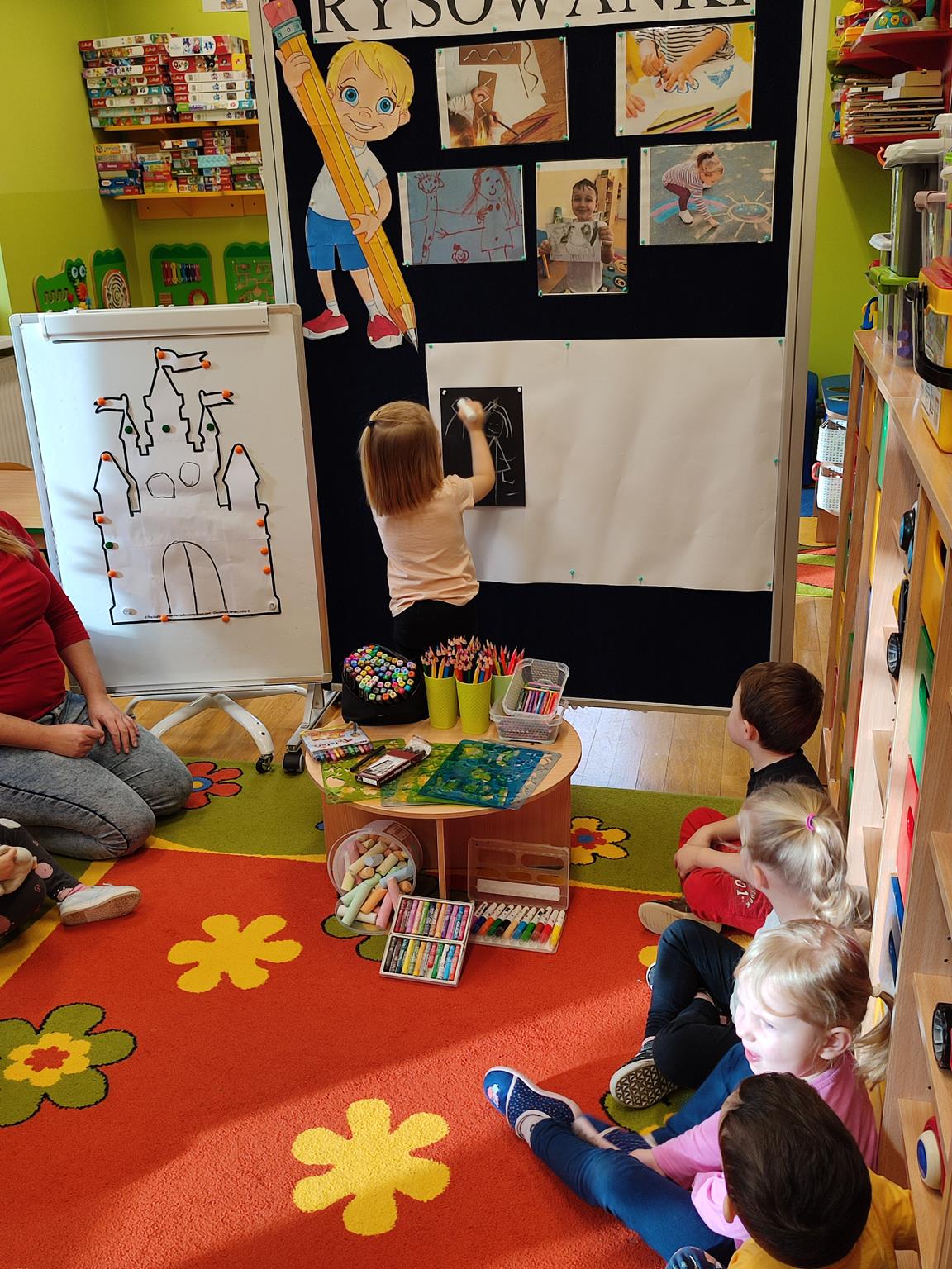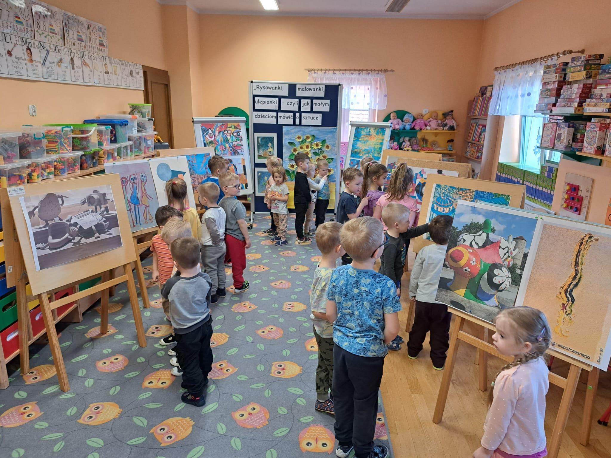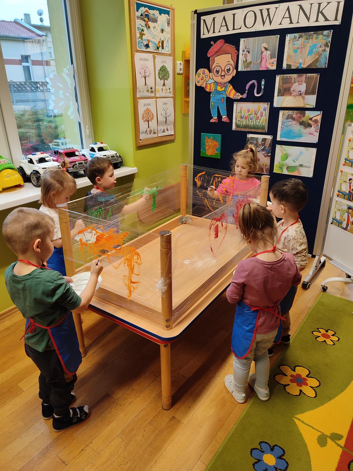 Dzieci z oddziału „Żuczki” wzięły udział w warsztatach artystycznych o sztuce. Celem zajęć było wdrożenie podstawowych pojęć z dziedzin sztuk plastycznych i wzbogacenie słownictwa. Bardzo ważne było również zainteresowanie i przygotowanie dzieci do odbioru dzieł wielkich mistrzów. Wspólnie ze swoimi starszymi kolegami z oddziału Biedronki dokonywały podstaw analizy dzieł poprzez wyrażanie własnych interpretacji oraz twórczego działania. Chcąc, aby na dobre dzieci wsiąknęły w świat sztuki, kreacji i nieskończonych możliwości, przedszkolaki ze swobodą, czerpały radość z procesu tworzenia i wykorzystywania różnych technik plastycznych. Przedszkole pokazuje swoim wychowankom, że sztuka to cała masa frajdy, a także pole do eksperymentów, sposobność do lepszego poznania siebie i możliwość ogólnego rozwoju.