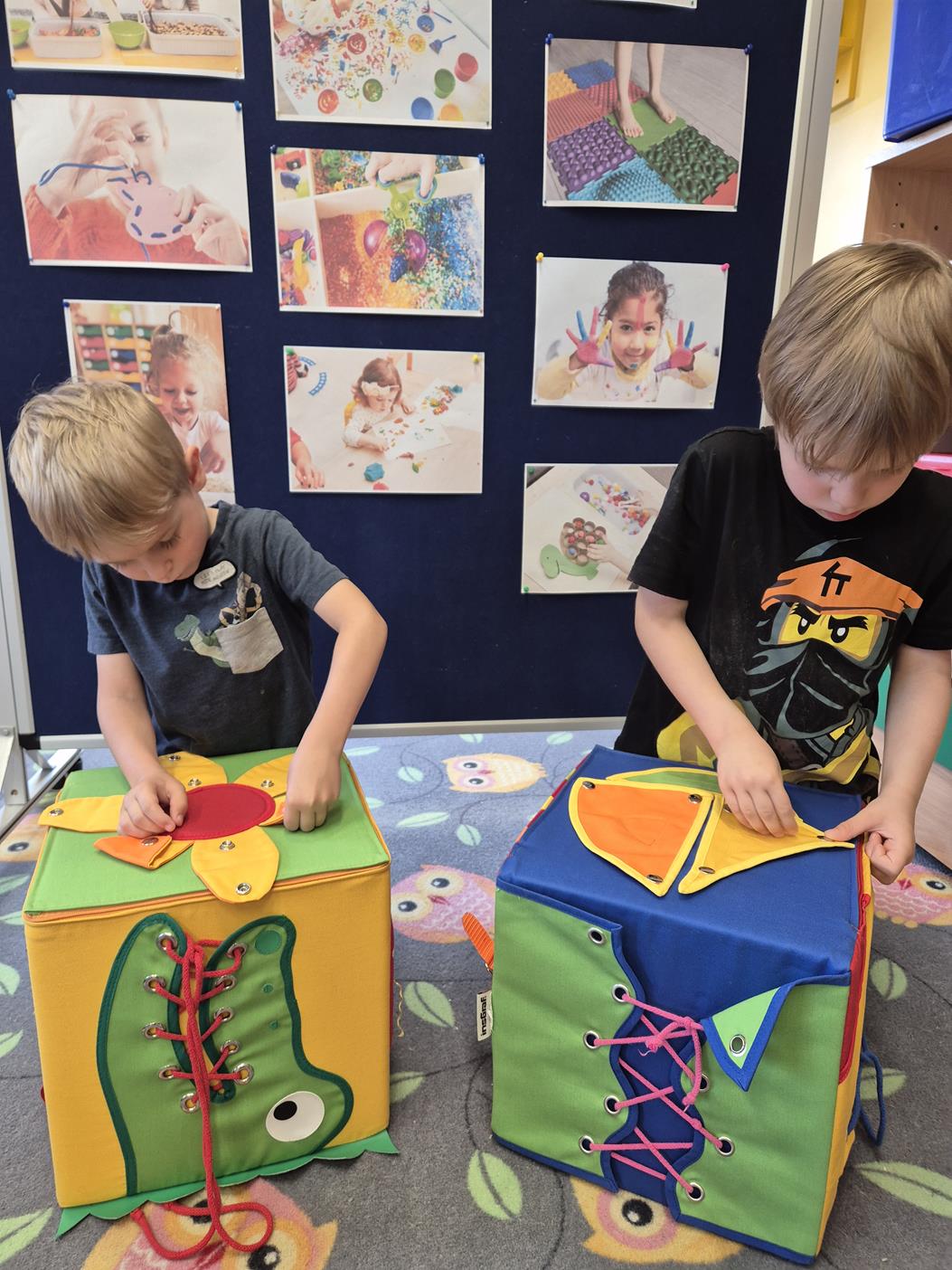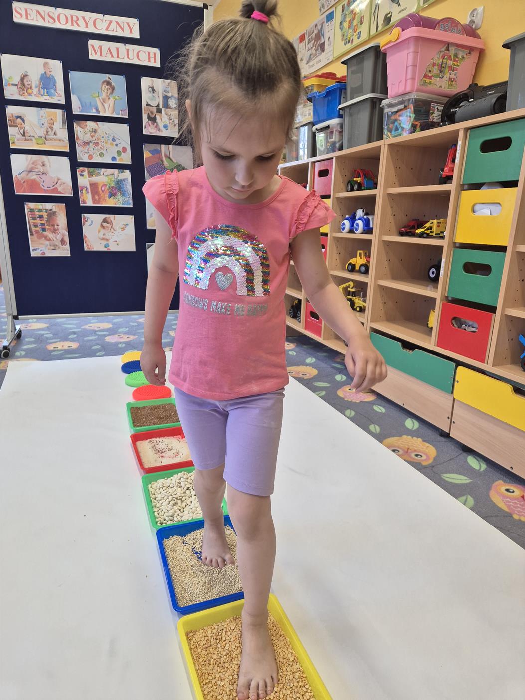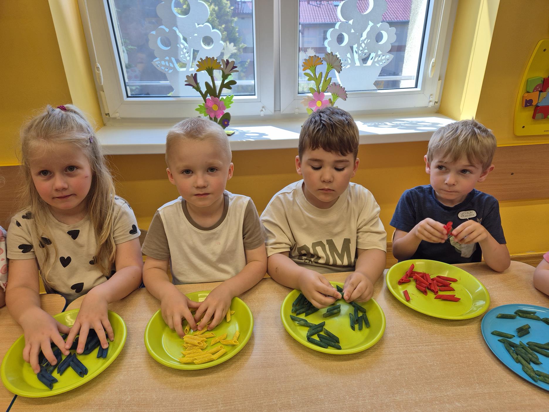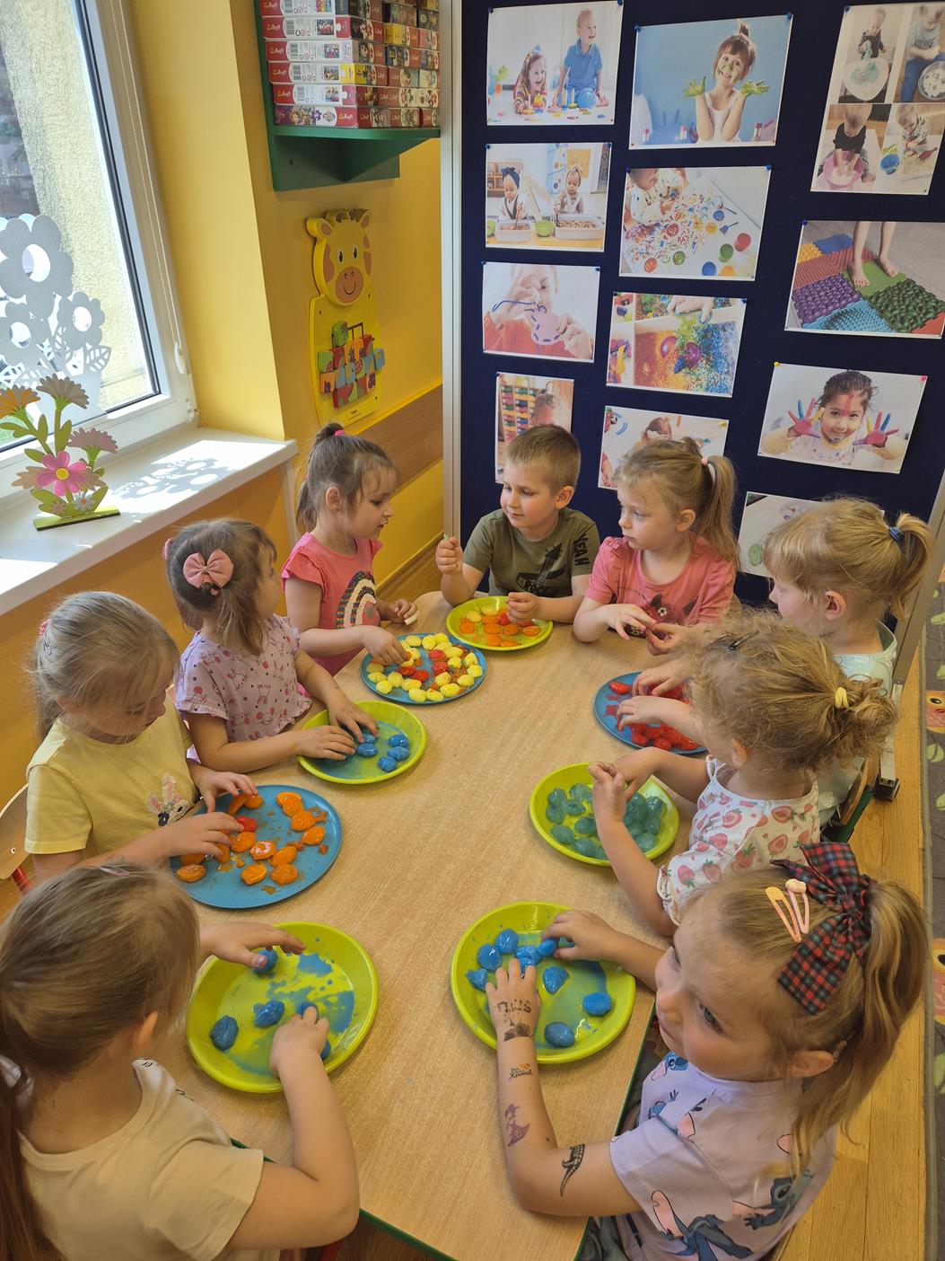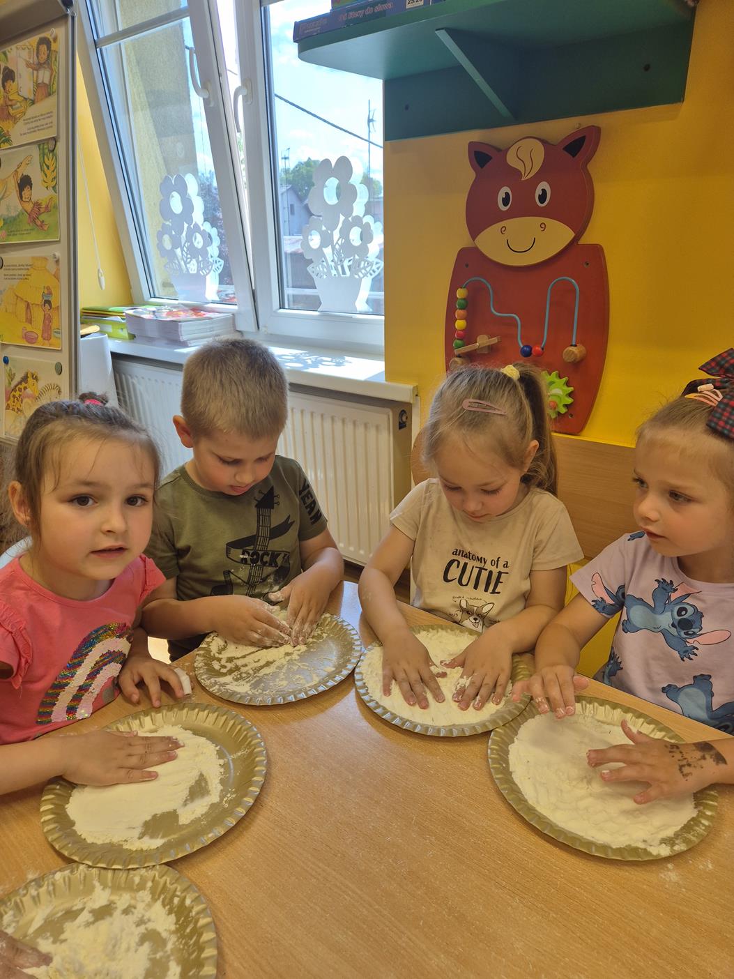 W grupie oddziału przedszkolnego „Pszczółki” odbyły się zabawy sensoryczne, które miały na celu rozwijanie zmysłu dotyku. Dzieci uczestniczyły w aktywnościach pobudzających ciekawość i kreatywność, jednocześnie rozwijając umiejętności poznawcze i motorykę małą. Przedszkolaki były zaangażowane, chętne do współpracy i dzielenia się swoimi wrażeniami z rówieśnikami.