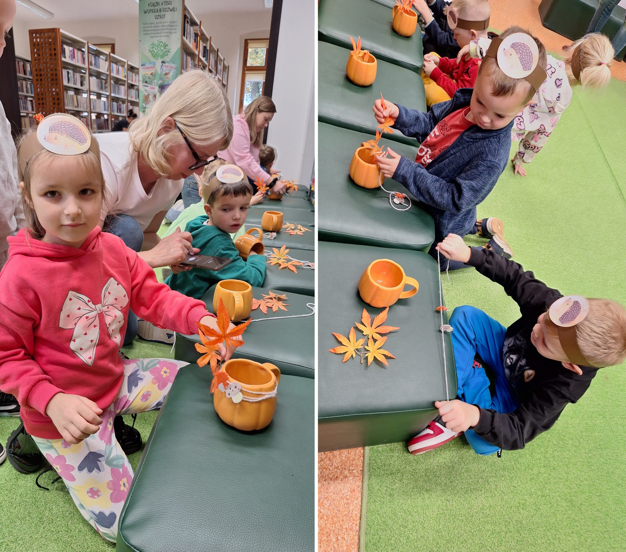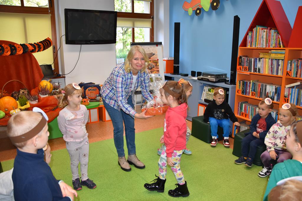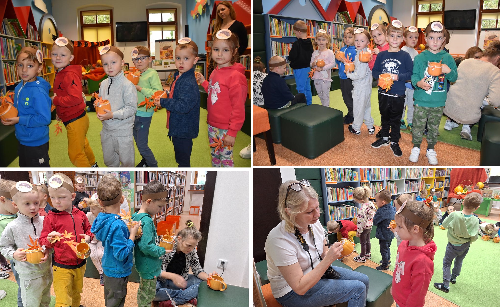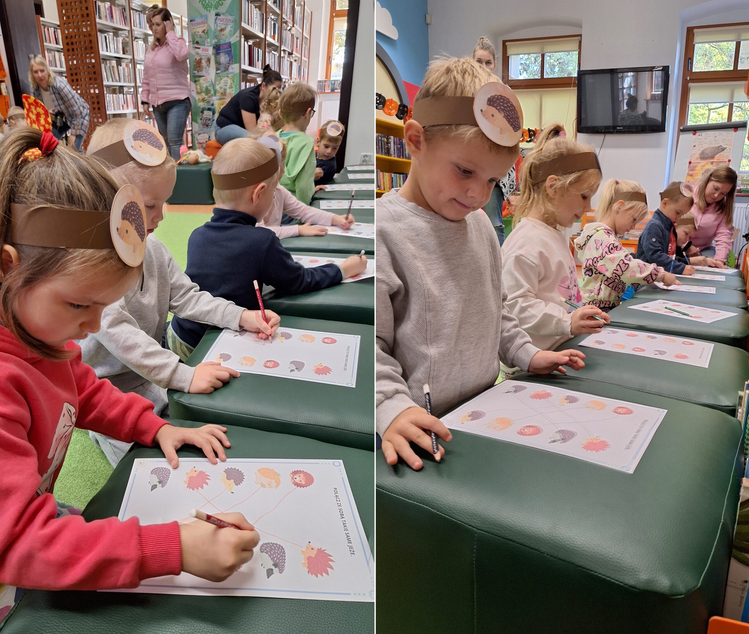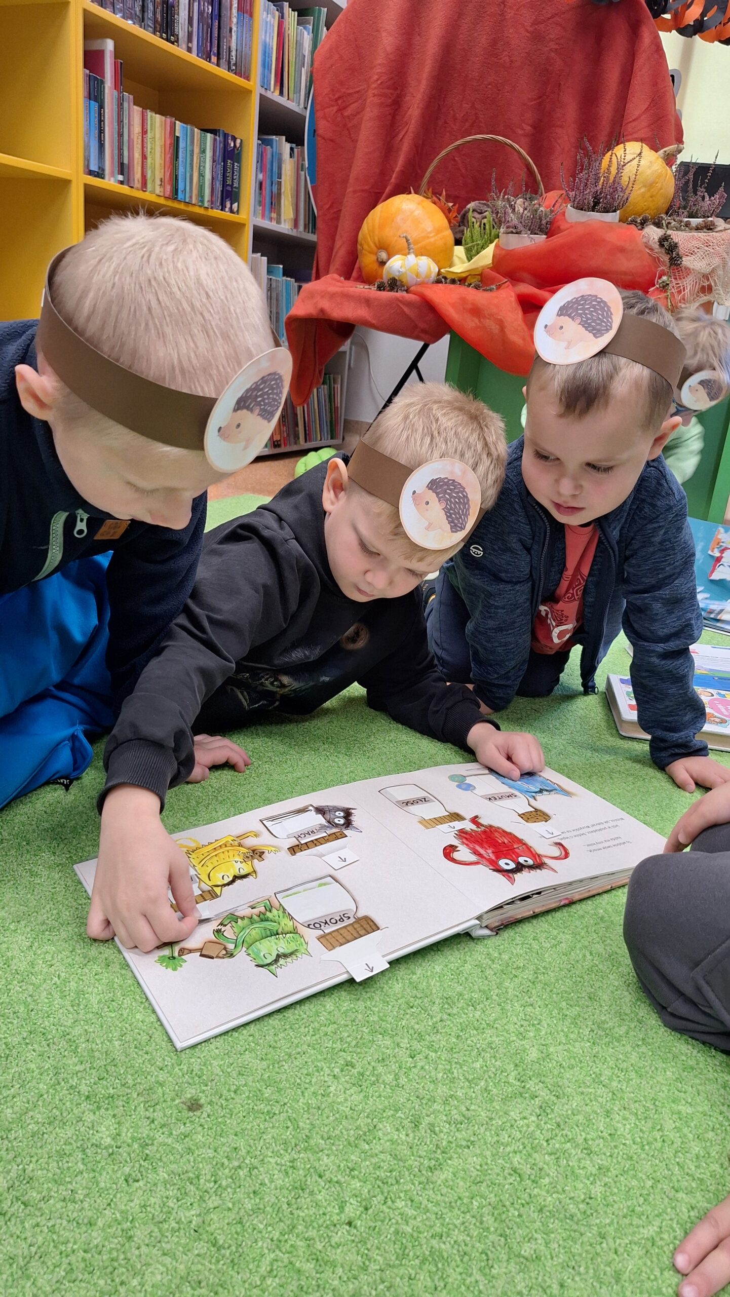 Dnia 10 października 2025 roku dzieci z oddziału „Biedronek” odwiedziły Bibliotekę Publiczną w Grębocicach. Przedszkolaki miały okazję wysłuchać fascynującą książkę pt. „Śmiały plan jeża Nieśmiałka”. Opowieść ta niezwykle przypadła do gustu dzieciom, które z zainteresowaniem słuchały o jeżu Nieśmiałku i jego przyjaciołach. Przedszkolaki miały również okazję wziąć udział w różnych zadaniach tematycznych, które pozwoliły im lepiej zrozumieć świat tych małych zwierzątek. Wśród atrakcji znalazła się także piosenka oraz ścieżka śladami jeżyka po której dzieci samodzielnie ozdobiły dyniowe kubki, które zabrały ze sobą do domu. Na zakończenie wizyty dzieci z entuzjazmem przeglądały nowości książkowe, co z pewnością rozbudziło w nich ciekawość do dalszego odkrywania literatury. To była niezwykle pouczająca wizyta, która pozostawiła uśmiechy na twarzach wszystkich uczestników włącznie z paniami z biblioteki. Dziękujemy za spotkanie!