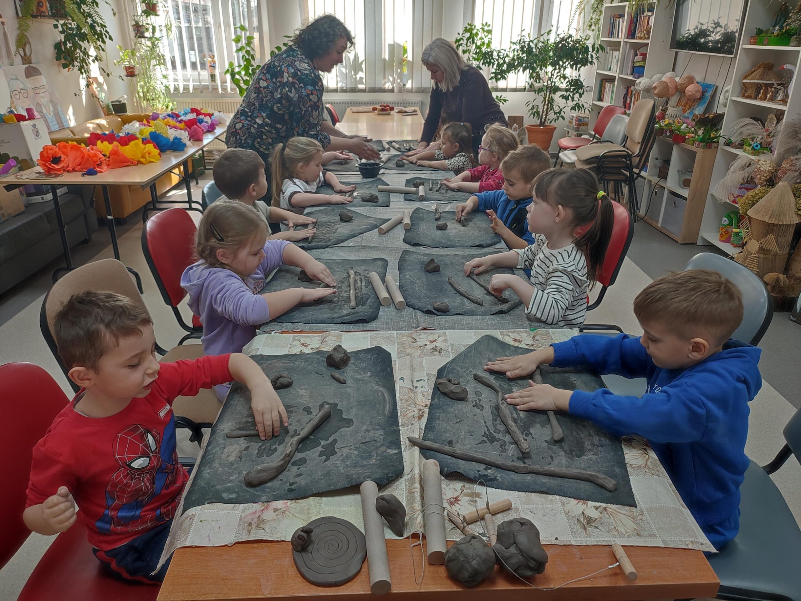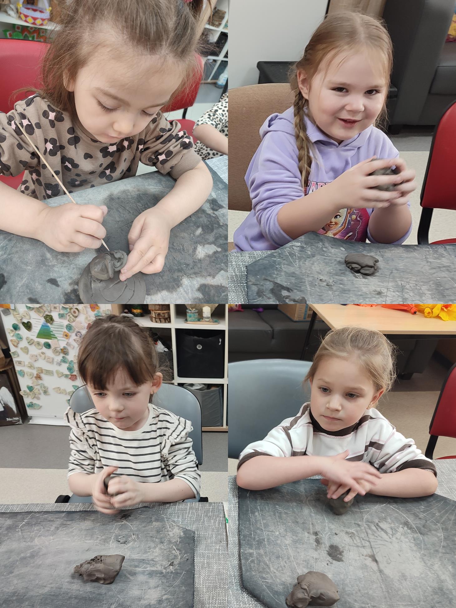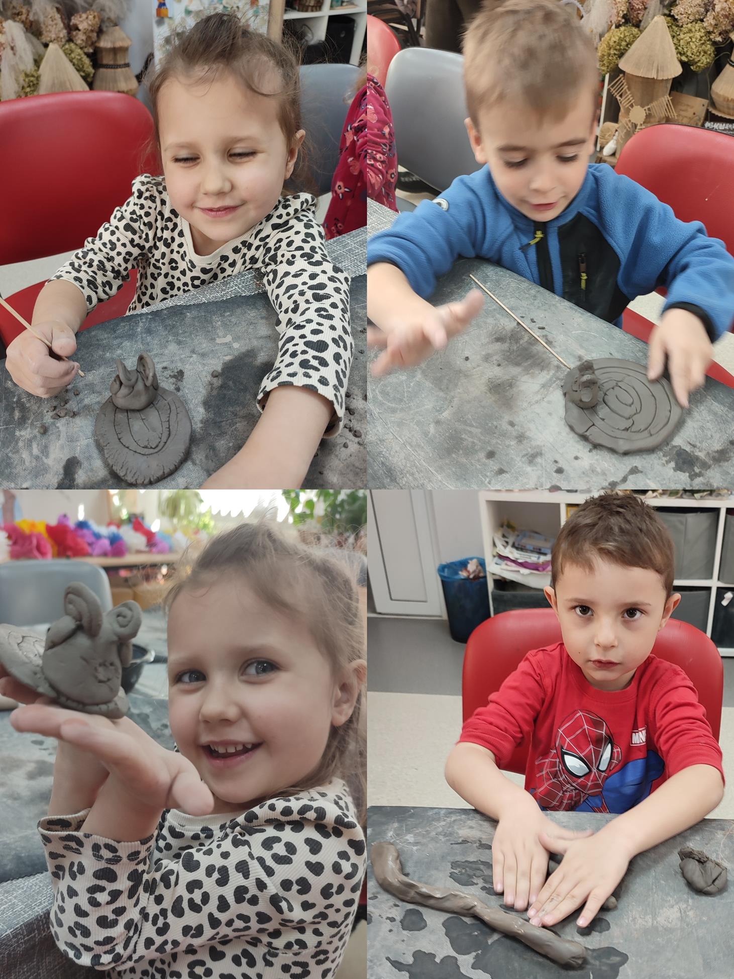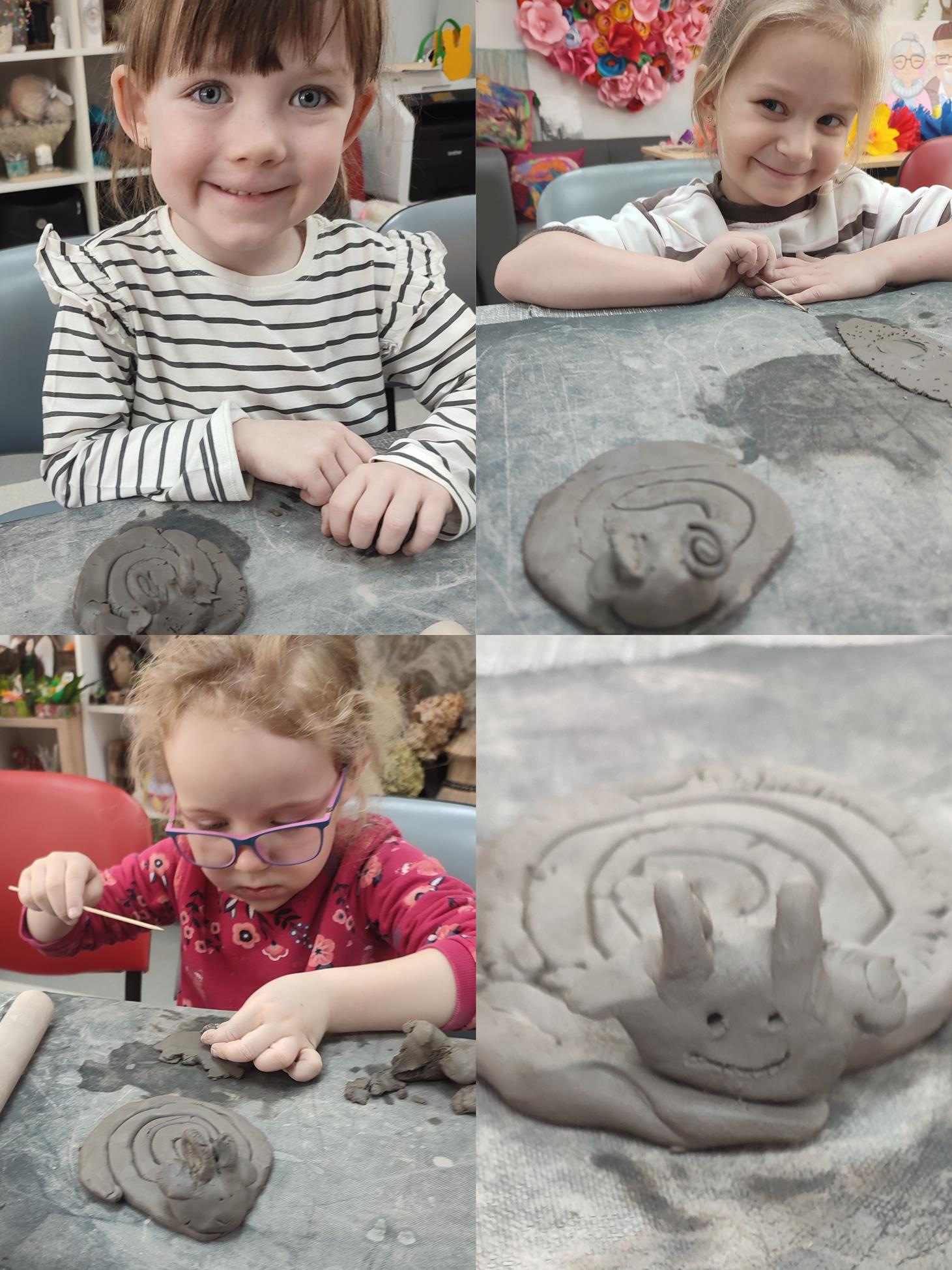 Dzieci z oddziału „Tulipanki” uczestniczyły w warsztatach ceramicznych pt. „Spodeczki wielkanocne pod filiżankę”. Celem zajęć było rozwijanie sprawności manualnej, kreatywności oraz wrażliwości estetycznej dzieci, a także kształtowanie umiejętności koncentracji i cierpliwości podczas pracy twórczej. Pod kierunkiem Pani Joanny, dzieci przystąpiły do lepienia własnych prac. Każde dziecko wykonało z gliny spodeczek z akcentem wielkanocnym. Warsztaty przebiegały w miłej i twórczej atmosferze, a dzieci z dużym zainteresowaniem i radością uczestniczyły w zajęciach. Warsztaty ceramiczne dostarczyły dzieciom wielu pozytywnych emocji, były okazją do rozwijania wyobraźni oraz stanowiły cenne doświadczenie artystyczne.