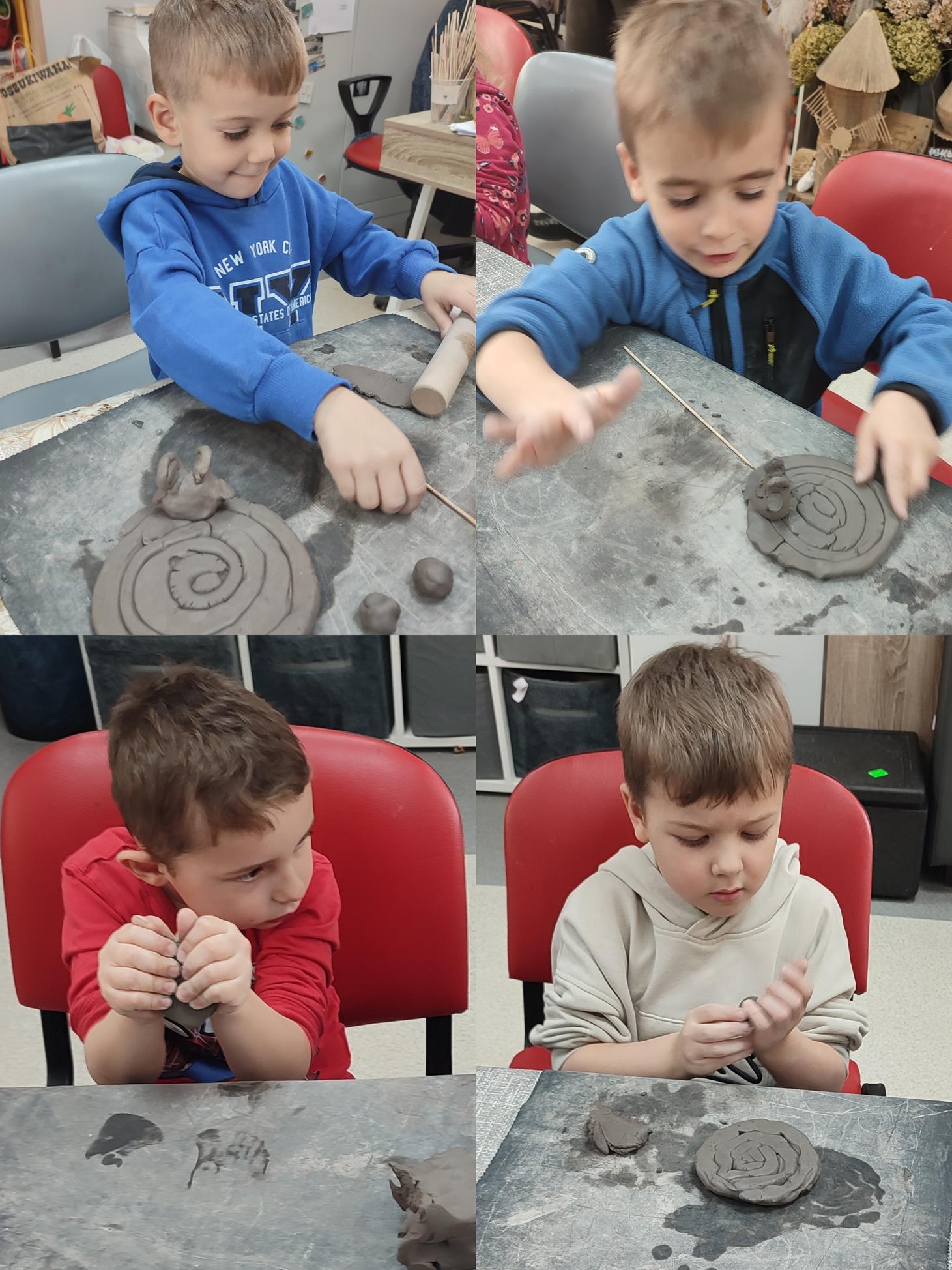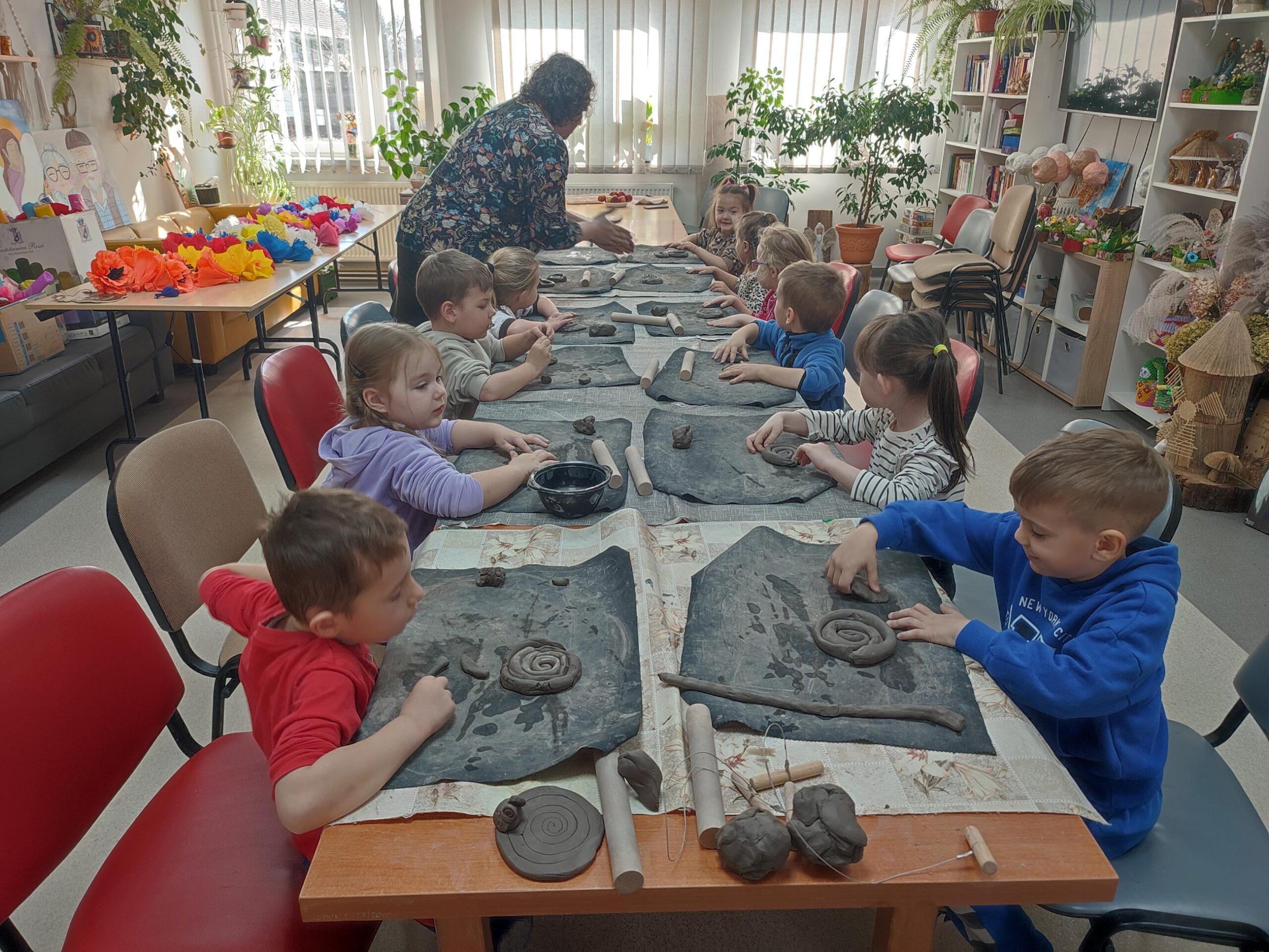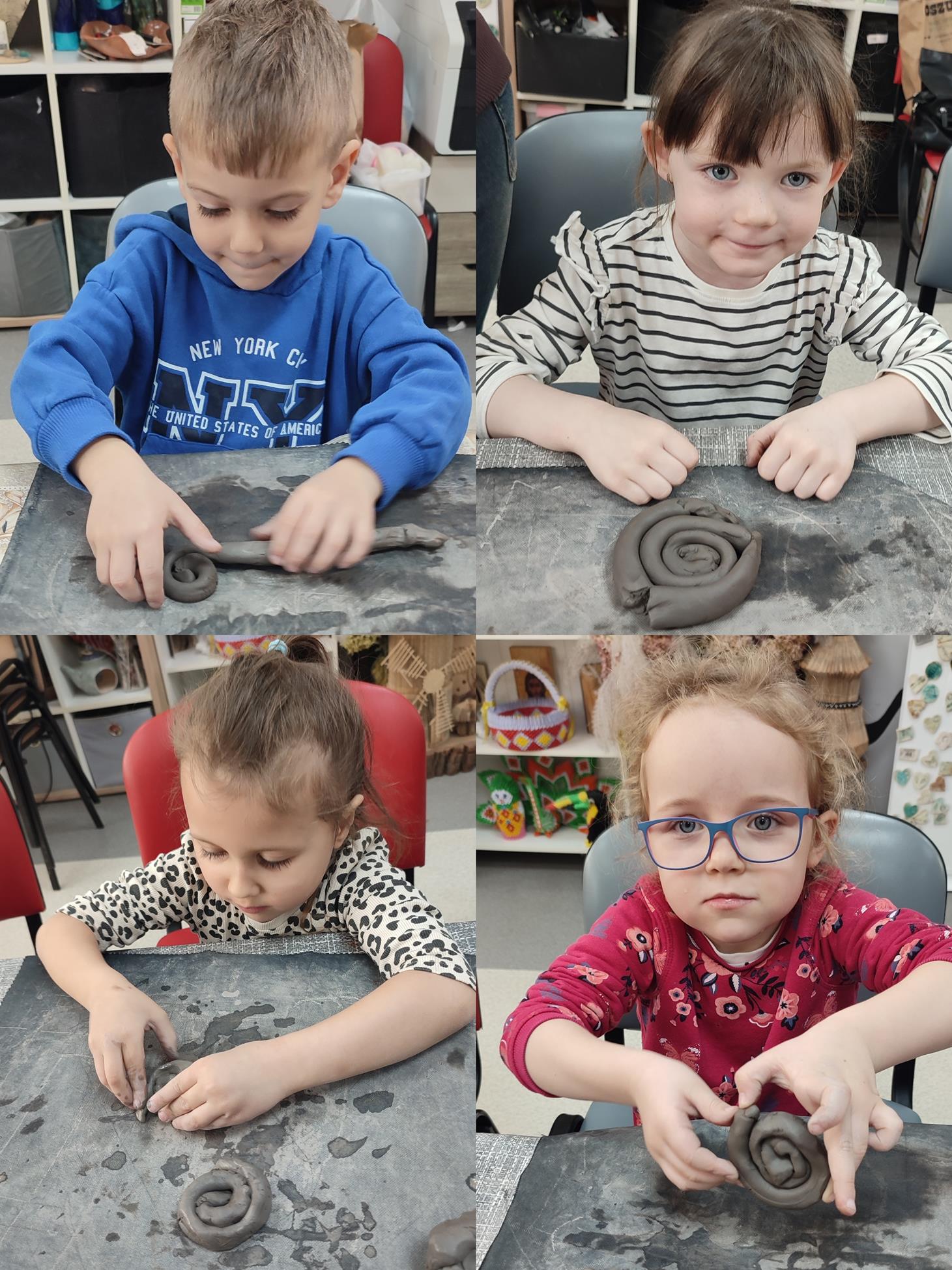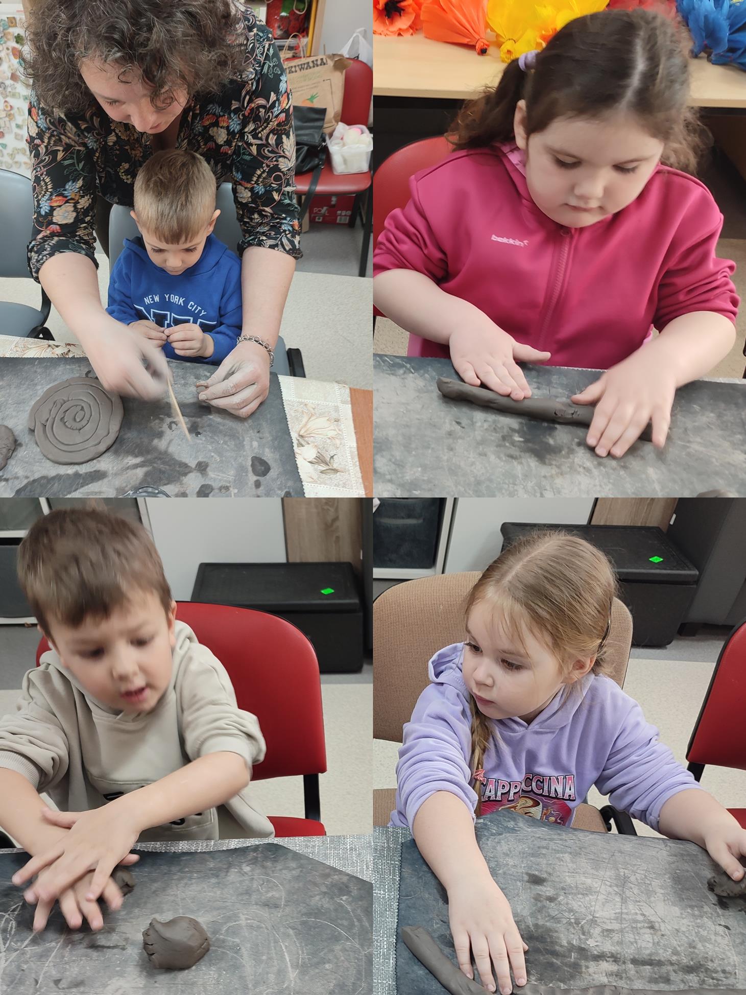 Dzieci z oddziału „Tulipanki” uczestniczyły w warsztatach ceramicznych pt. „Spodeczki wielkanocne pod filiżankę”. Celem zajęć było rozwijanie sprawności manualnej, kreatywności oraz wrażliwości estetycznej dzieci, a także kształtowanie umiejętności koncentracji i cierpliwości podczas pracy twórczej. Pod kierunkiem Pani Joanny, dzieci przystąpiły do lepienia własnych prac. Każde dziecko wykonało z gliny spodeczek z akcentem wielkanocnym. Warsztaty przebiegały w miłej i twórczej atmosferze, a dzieci z dużym zainteresowaniem i radością uczestniczyły w zajęciach. Warsztaty ceramiczne dostarczyły dzieciom wielu pozytywnych emocji, były okazją do rozwijania wyobraźni oraz stanowiły cenne doświadczenie artystyczne.