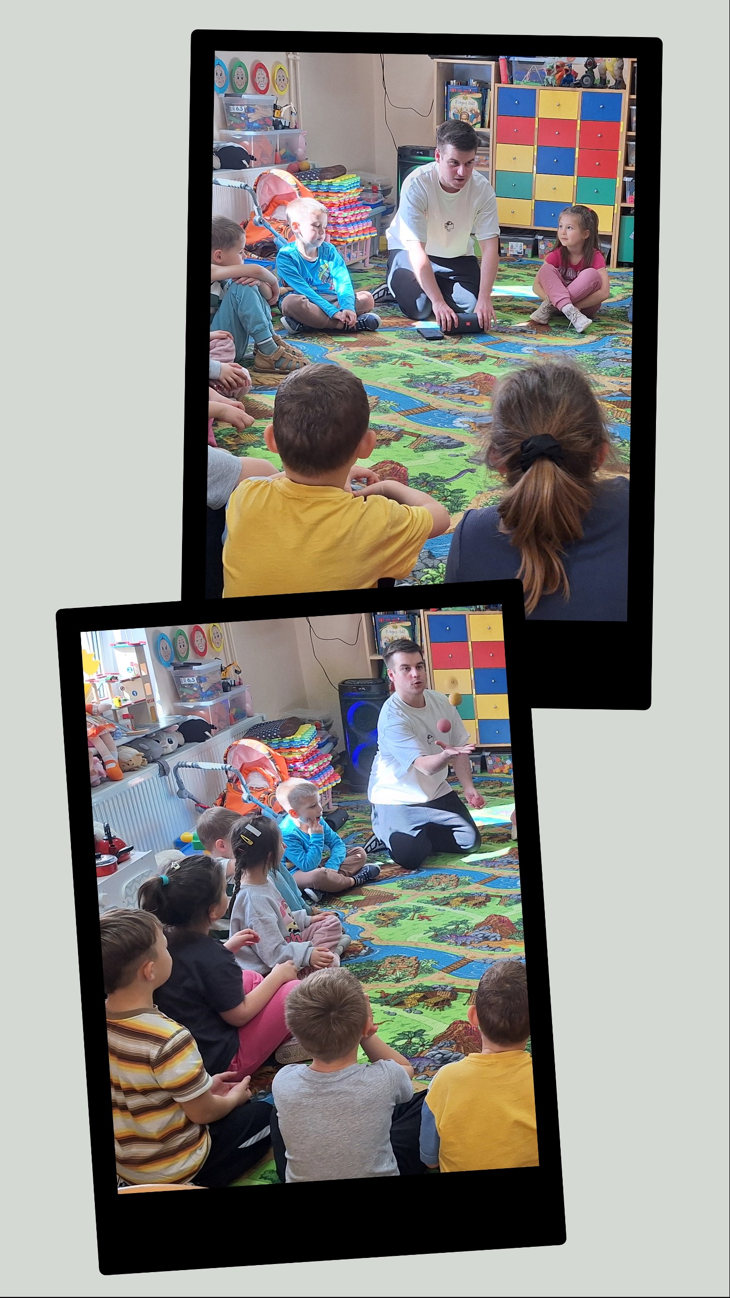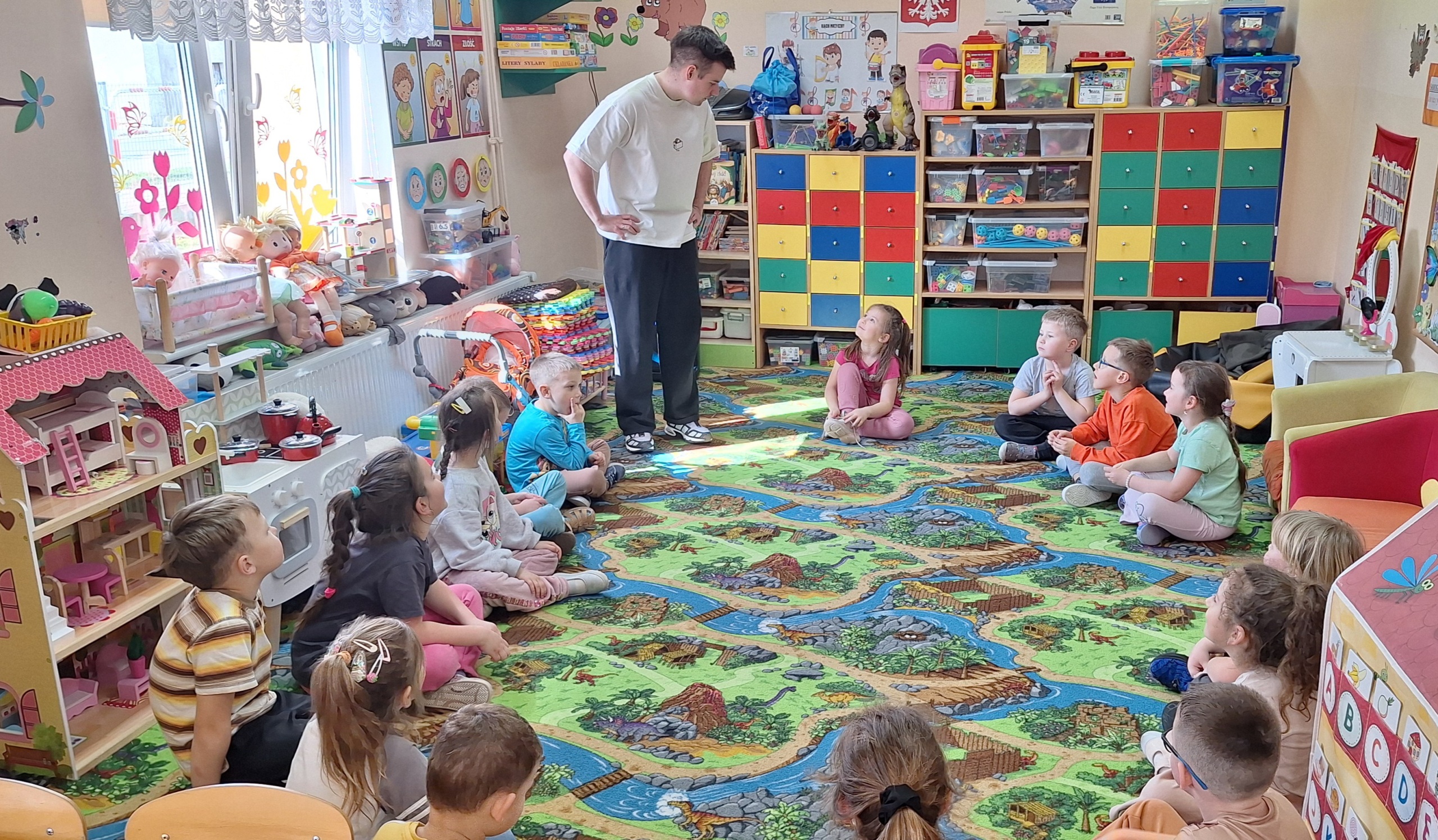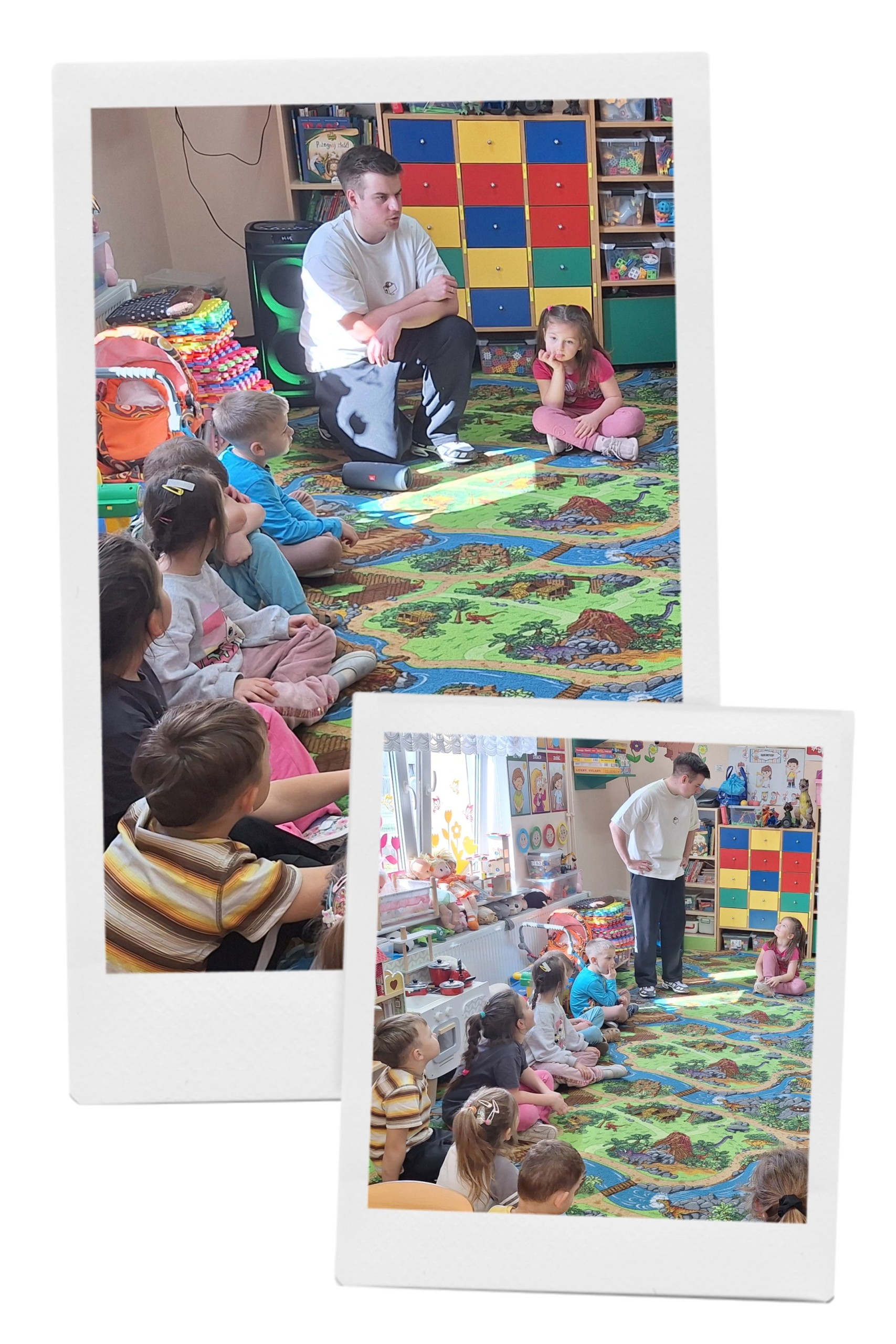 W Oddziale „Stokrotki” odbyło się wyjątkowe spotkanie z Panem Michałem Bukowskim – raperem, profilaktykiem ds. uzależnień, konferansjerem oraz prezenterem programu telewizyjnego „Studio Raban” w TVP1. Podczas spotkania Pan Michał opowiedział dzieciom o swojej pasji do muzyki, w szczególności rapu i hip-hopu. W przystępny i ciekawy sposób przybliżył przedszkolakom, jak ważne jest rozwijanie swoich talentów, wiara w siebie oraz dążenie do realizacji marzeń. Zwrócił również uwagę na znaczenie dokonywania dobrych wyborów i unikania zagrożeń, które mogą pojawić się w życiu. Artysta podkreślił, że poprzez swoją twórczość stara się przekazywać wartościowe treści oraz przestrzegać młodych ludzi przed różnego rodzaju uzależnieniami. Opowiedział także o swojej działalności w zespole „Muode Koty”. Spotkanie przebiegło w miłej i radosnej atmosferze. Dzieci z dużym zainteresowaniem słuchały gościa, chętnie zadawały pytania i aktywnie uczestniczyły w zajęciach. Było to cenne doświadczenie, które z pewnością pozostanie w pamięci przedszkolaków i będzie inspiracją do rozwijania własnych pasji oraz podejmowania właściwych wyborów.