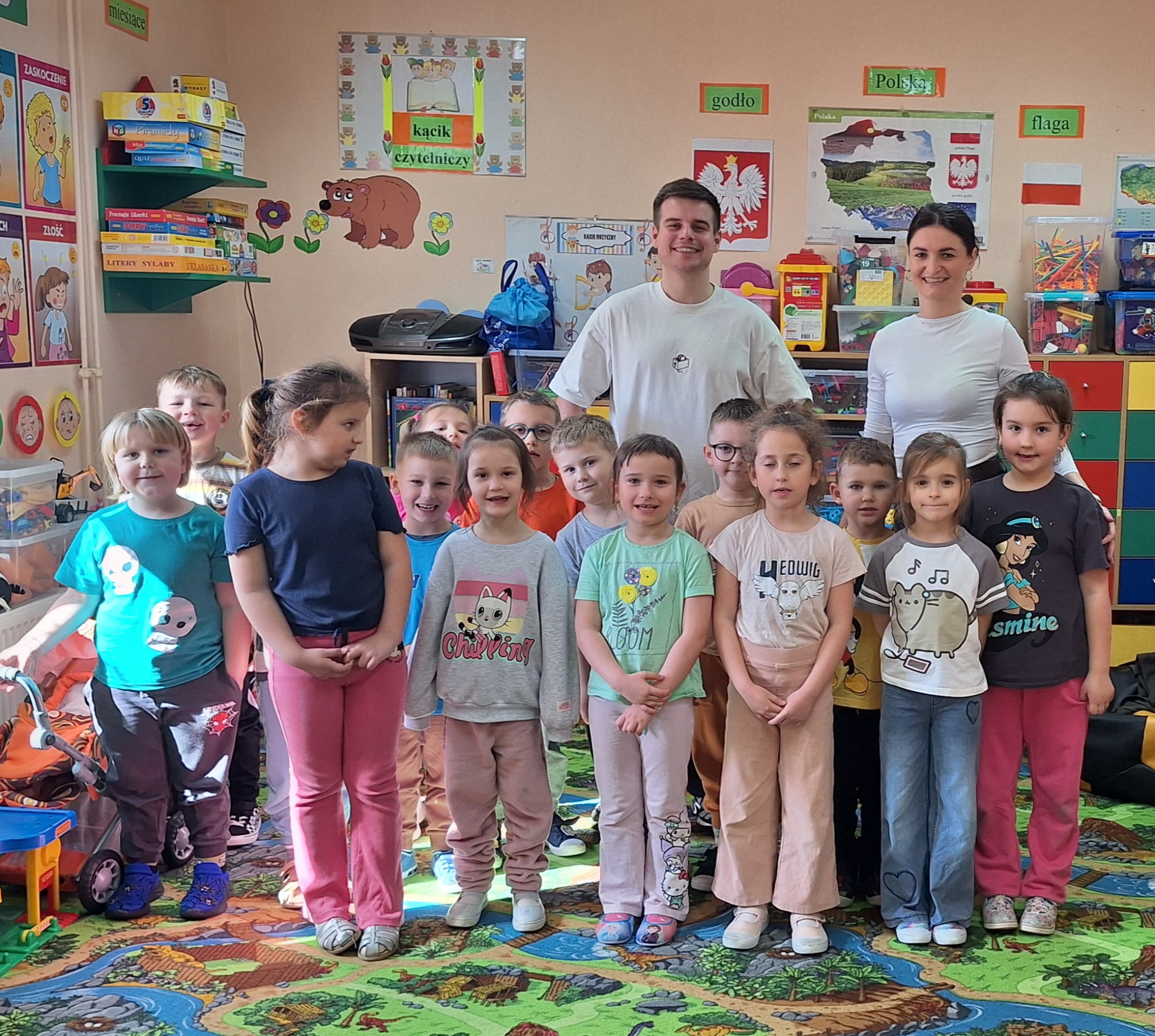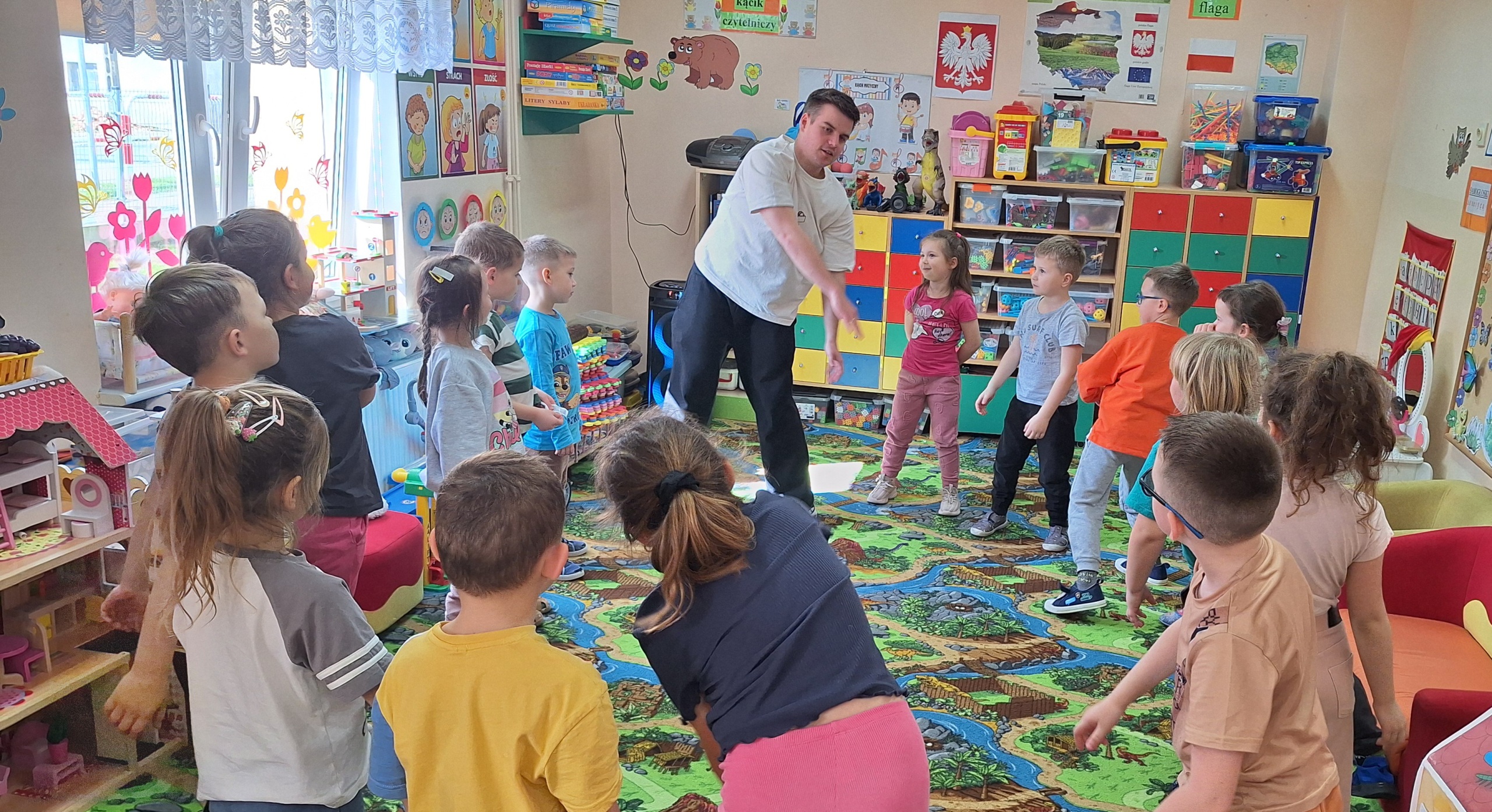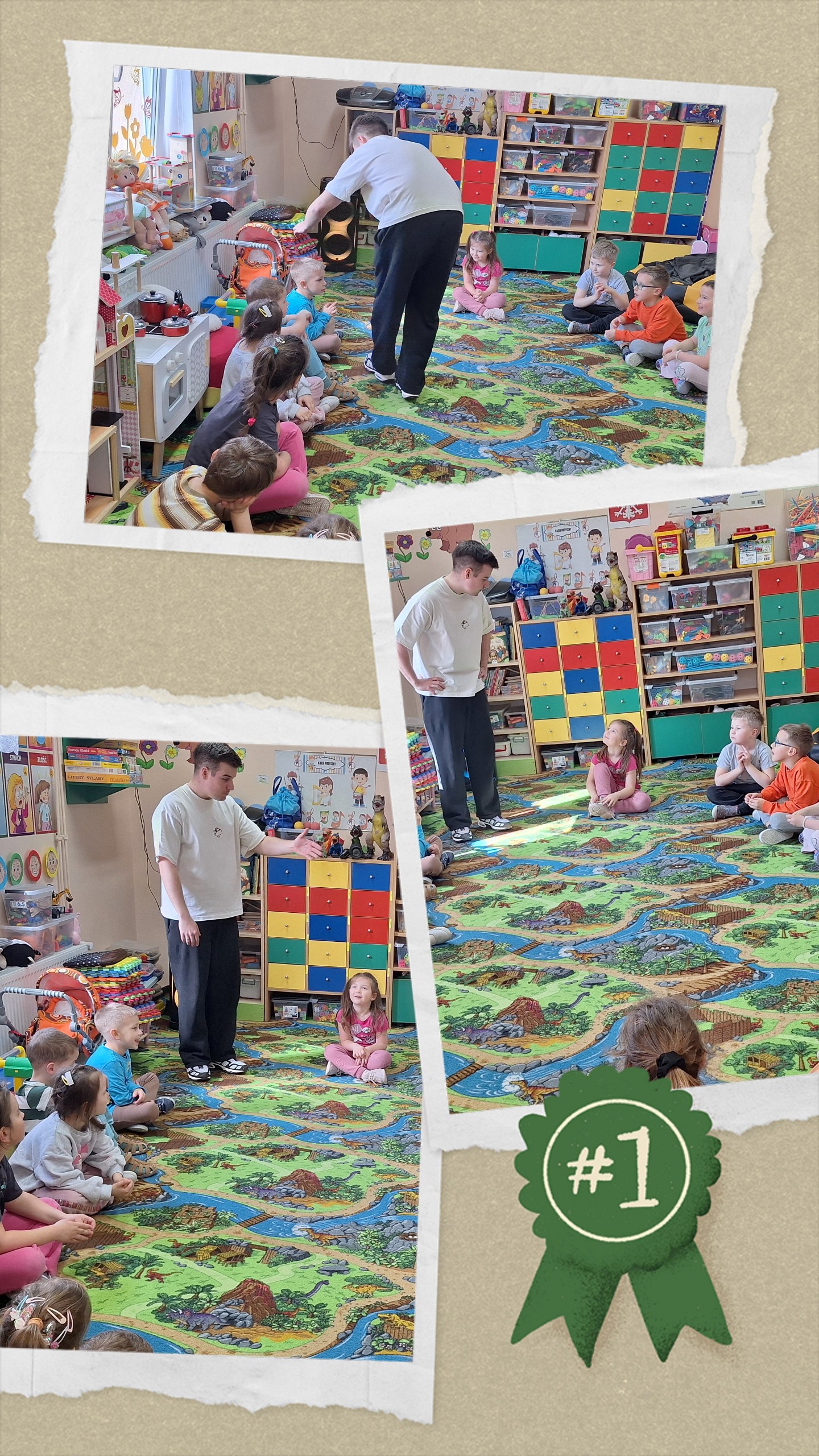 W Oddziale „Stokrotki” odbyło się wyjątkowe spotkanie z Panem Michałem Bukowskim – raperem, profilaktykiem ds. uzależnień, konferansjerem oraz prezenterem programu telewizyjnego „Studio Raban” w TVP1. Podczas spotkania Pan Michał opowiedział dzieciom o swojej pasji do muzyki, w szczególności rapu i hip-hopu. W przystępny i ciekawy sposób przybliżył przedszkolakom, jak ważne jest rozwijanie swoich talentów, wiara w siebie oraz dążenie do realizacji marzeń. Zwrócił również uwagę na znaczenie dokonywania dobrych wyborów i unikania zagrożeń, które mogą pojawić się w życiu. Artysta podkreślił, że poprzez swoją twórczość stara się przekazywać wartościowe treści oraz przestrzegać młodych ludzi przed różnego rodzaju uzależnieniami. Opowiedział także o swojej działalności w zespole „Muode Koty”. Spotkanie przebiegło w miłej i radosnej atmosferze. Dzieci z dużym zainteresowaniem słuchały gościa, chętnie zadawały pytania i aktywnie uczestniczyły w zajęciach. Było to cenne doświadczenie, które z pewnością pozostanie w pamięci przedszkolaków i będzie inspiracją do rozwijania własnych pasji oraz podejmowania właściwych wyborów.