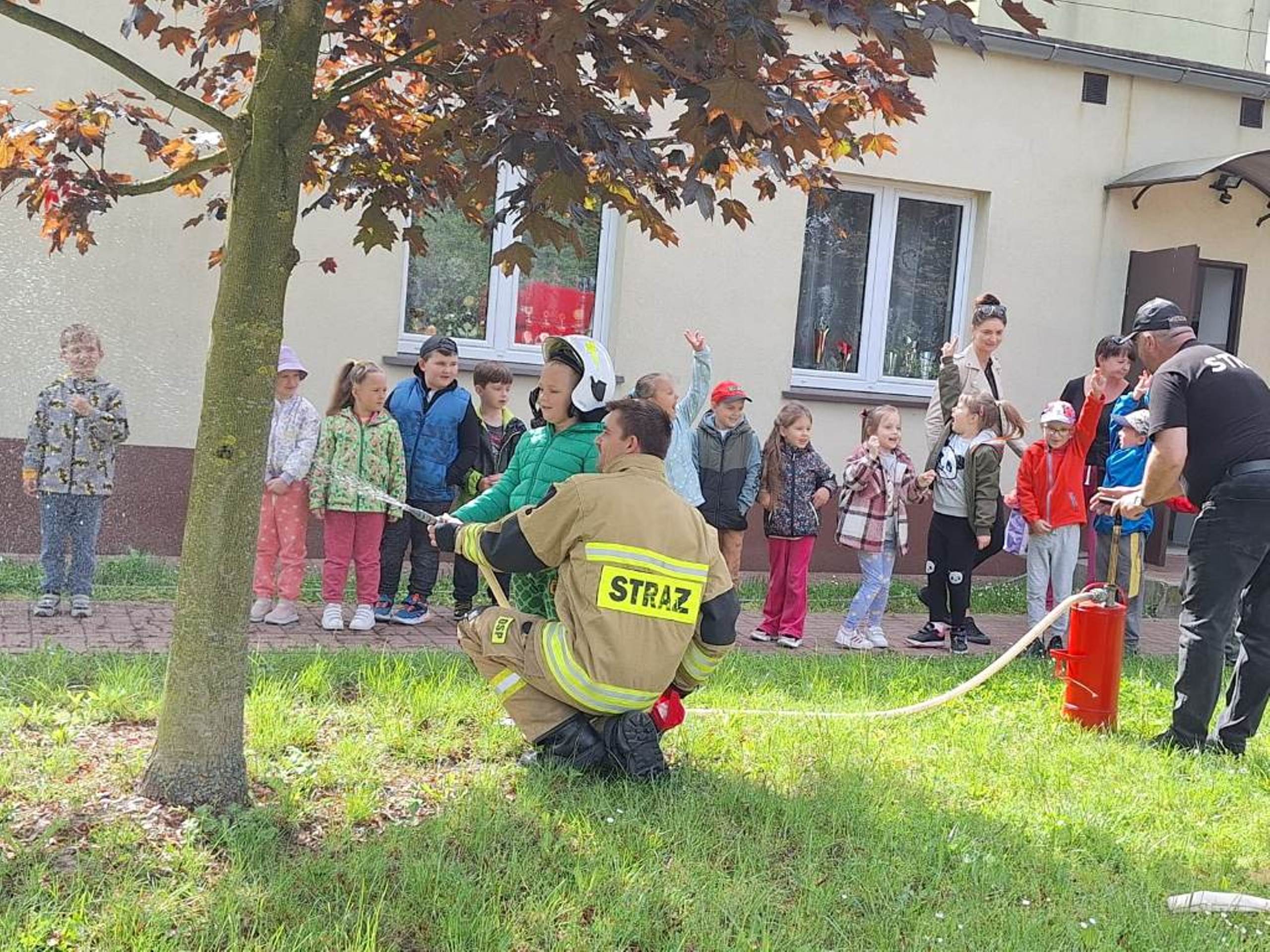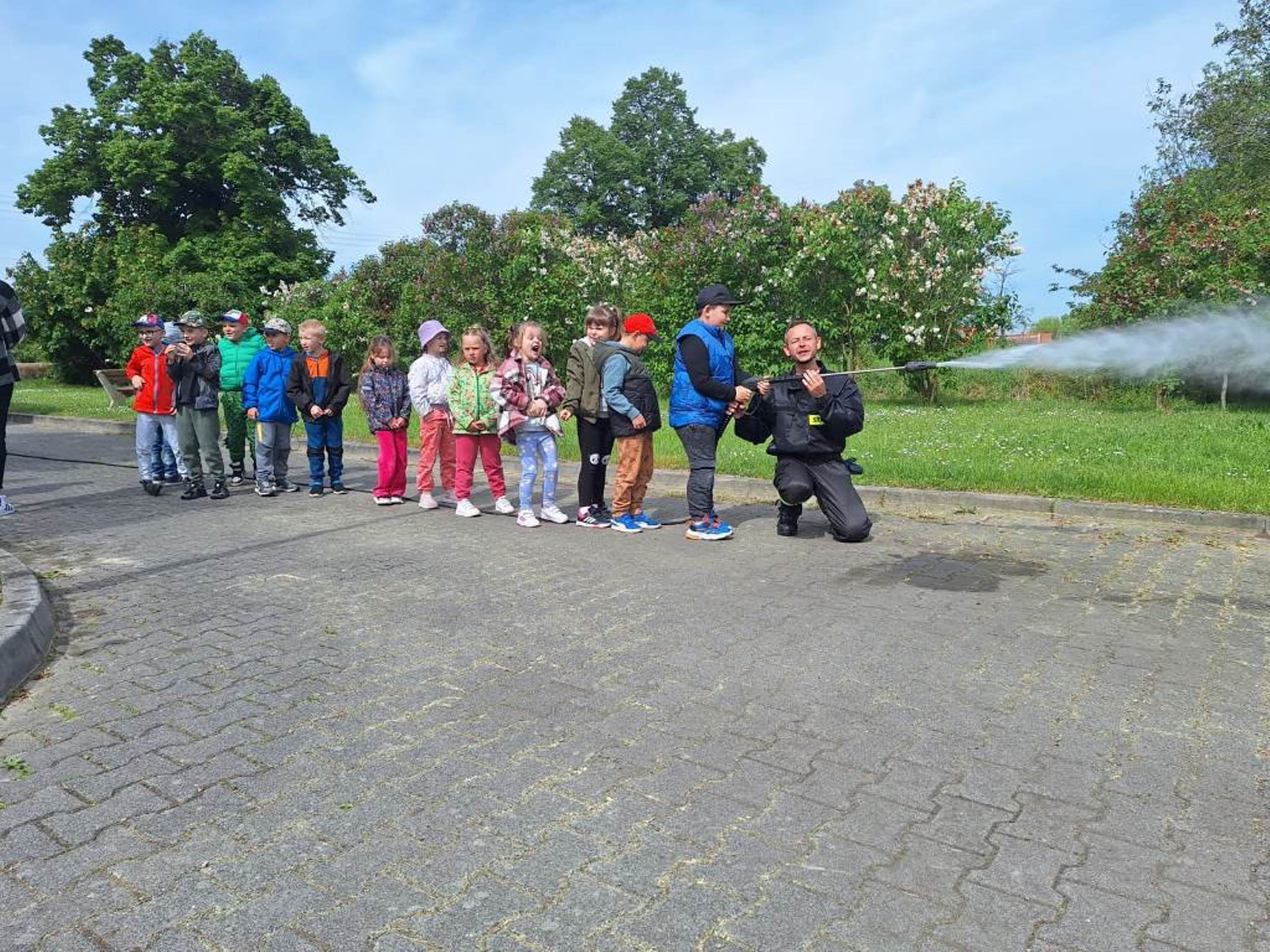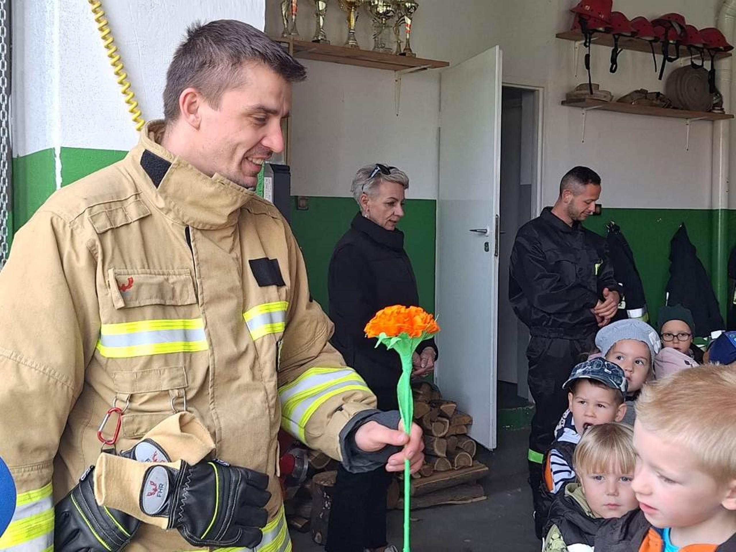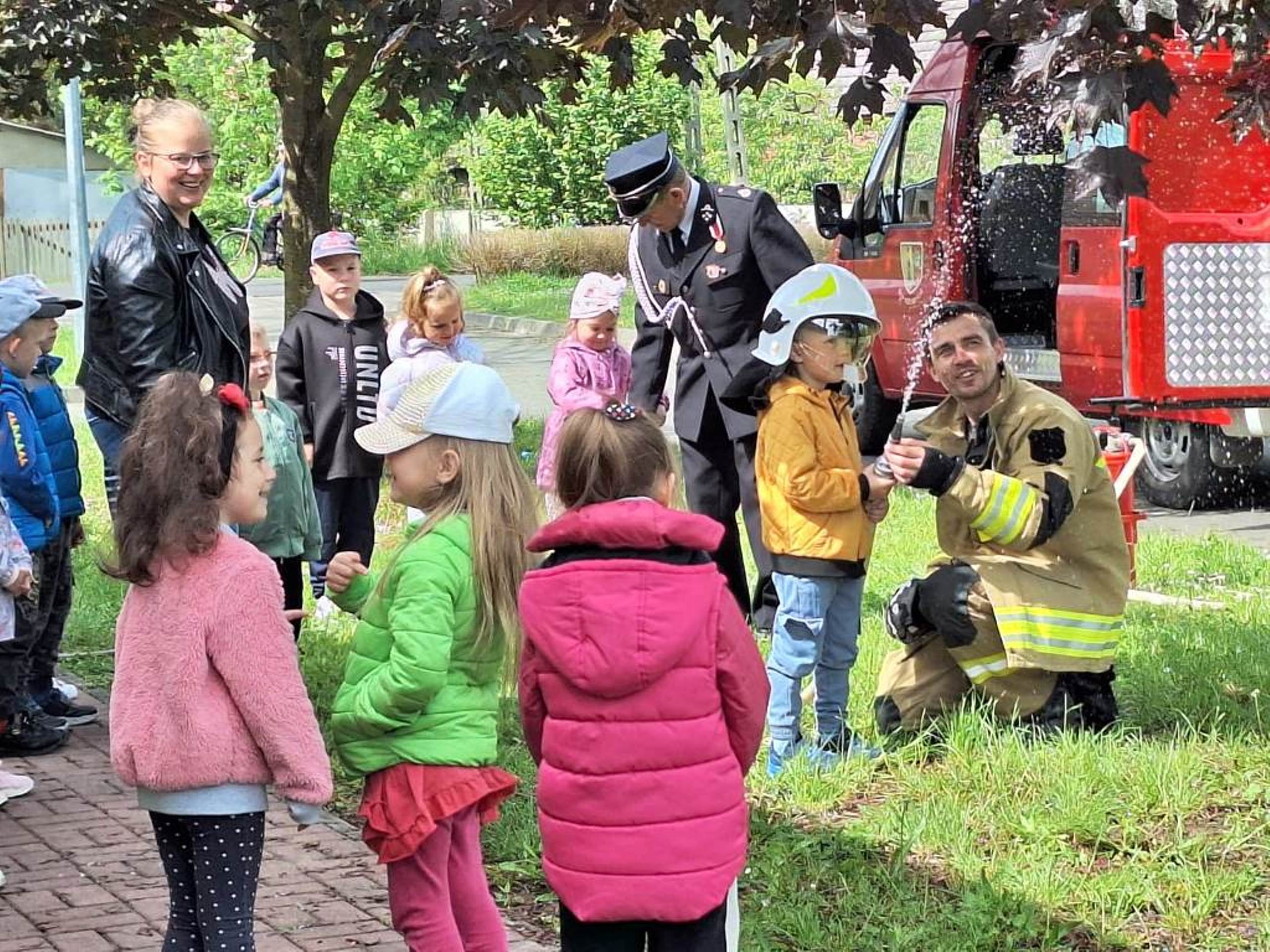 W dniu 08.05.2024r. dzieci z oddziału przedszkolnego w Rzeczycy odwiedziły Strażaków Ochotniczej Straży Pożarnej. Przedszkolaki z zachwytem i wielkim zaciekawieniem uczestniczyli w spotkaniu, podczas którego mogły poznać specyfikę pracy strażaków, umundurowanie strażackie oraz niektóre sprzęty jakimi dysponują. Dzieci dowiedziały się, że strażacy nie tylko gaszą pożary, ale również są wzywani do wypadków samochodowych, do zalanych domów, powalonych drzew, a także ratują zwierzęta. Podczas spotkania strażacy uświadomili dzieciom, jak zachowywać się w sytuacjach zagrożenia oraz jak powiadomić służby ratownicze i udzielać pierwszej pomocy. Wielką radość przedszkolakom sprawił przejazd wozem strażackim, pryskanie wodą oraz pyszny poczęstunek, który przygotowali strażacy. Jeszcze raz serdeczne podziękowania dla Strażaków z OSP Rzeczyca za trud, poświęcenie, wielki dar serca, jakim jest wasza służba i zaangażowanie. Dziękujemy za to, że zawsze możemy na Was liczyć.