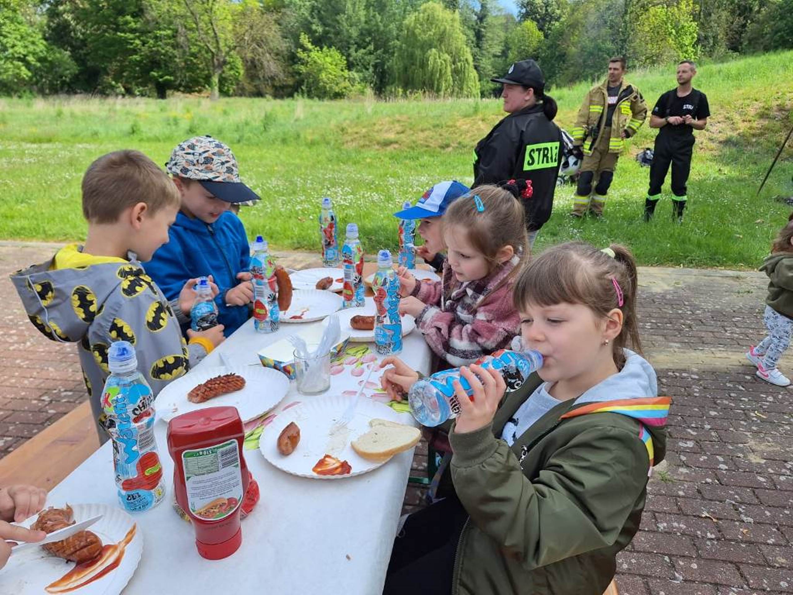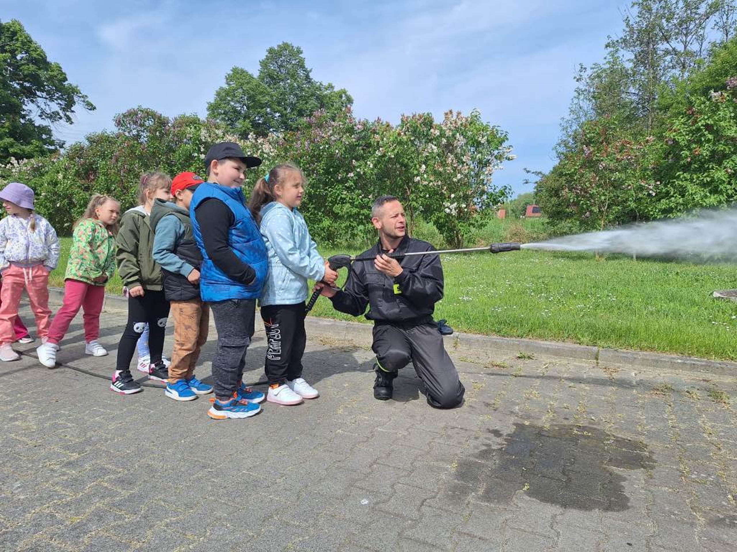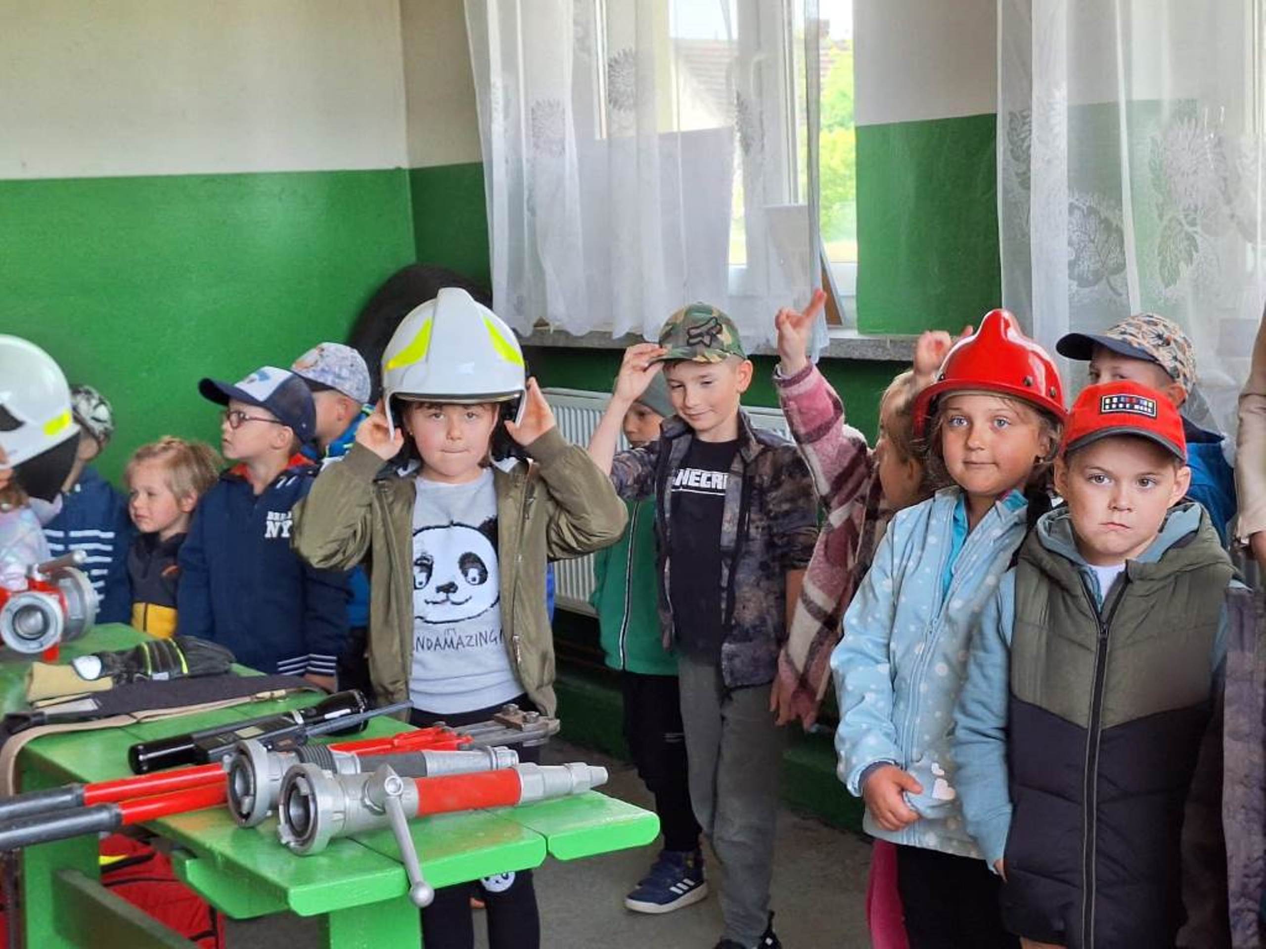 W dniu 08.05.2024r. dzieci z oddziału przedszkolnego w Rzeczycy odwiedziły Strażaków Ochotniczej Straży Pożarnej. Przedszkolaki z zachwytem i wielkim zaciekawieniem uczestniczyli w spotkaniu, podczas którego mogły poznać specyfikę pracy strażaków, umundurowanie strażackie oraz niektóre sprzęty jakimi dysponują. Dzieci dowiedziały się, że strażacy nie tylko gaszą pożary, ale również są wzywani do wypadków samochodowych, do zalanych domów, powalonych drzew, a także ratują zwierzęta. Podczas spotkania strażacy uświadomili dzieciom, jak zachowywać się w sytuacjach zagrożenia oraz jak powiadomić służby ratownicze i udzielać pierwszej pomocy. Wielką radość przedszkolakom sprawił przejazd wozem strażackim, pryskanie wodą oraz pyszny poczęstunek, który przygotowali strażacy. Jeszcze raz serdeczne podziękowania dla Strażaków z OSP Rzeczyca za trud, poświęcenie, wielki dar serca, jakim jest wasza służba i zaangażowanie. Dziękujemy za to, że zawsze możemy na Was liczyć.