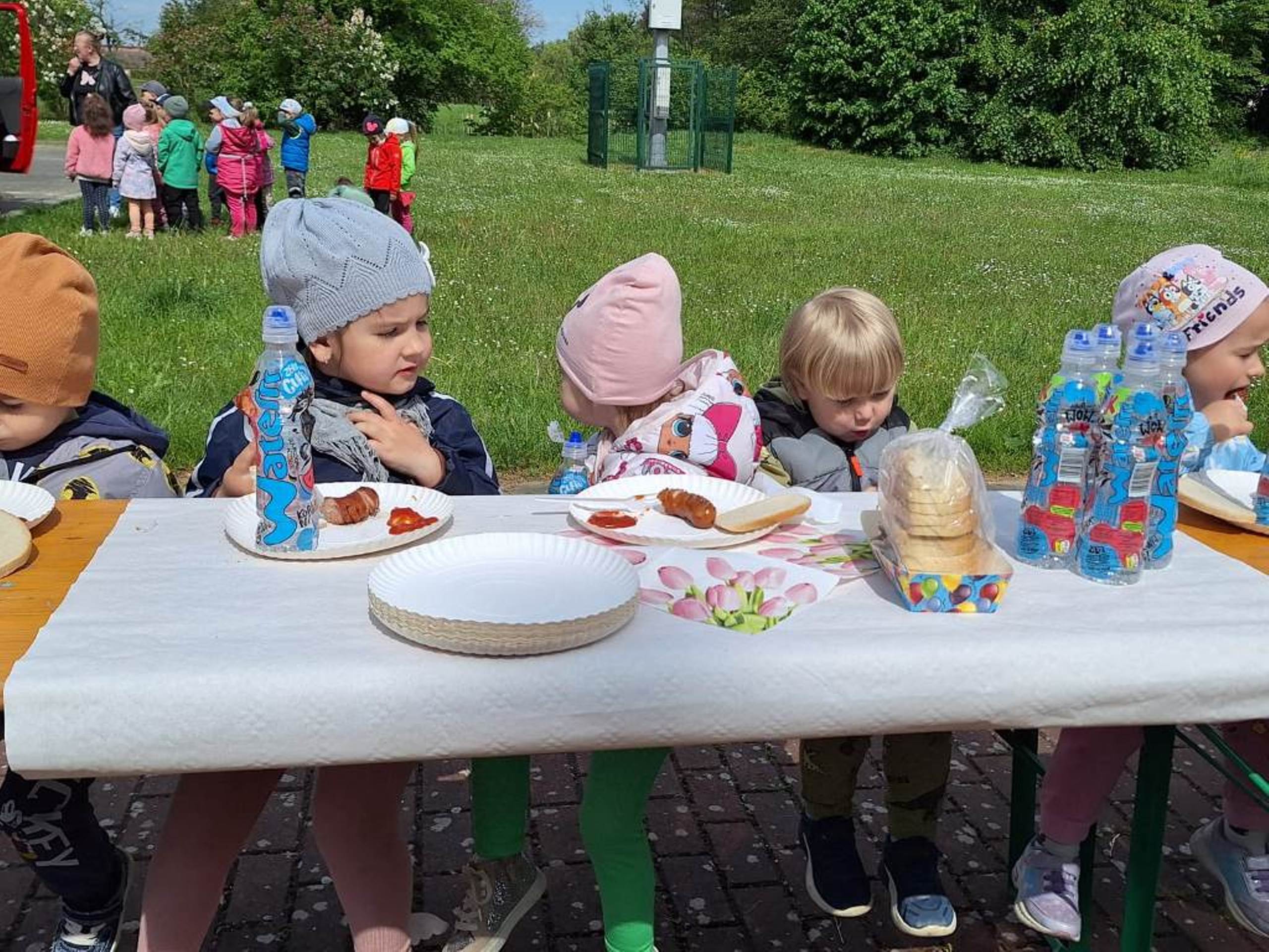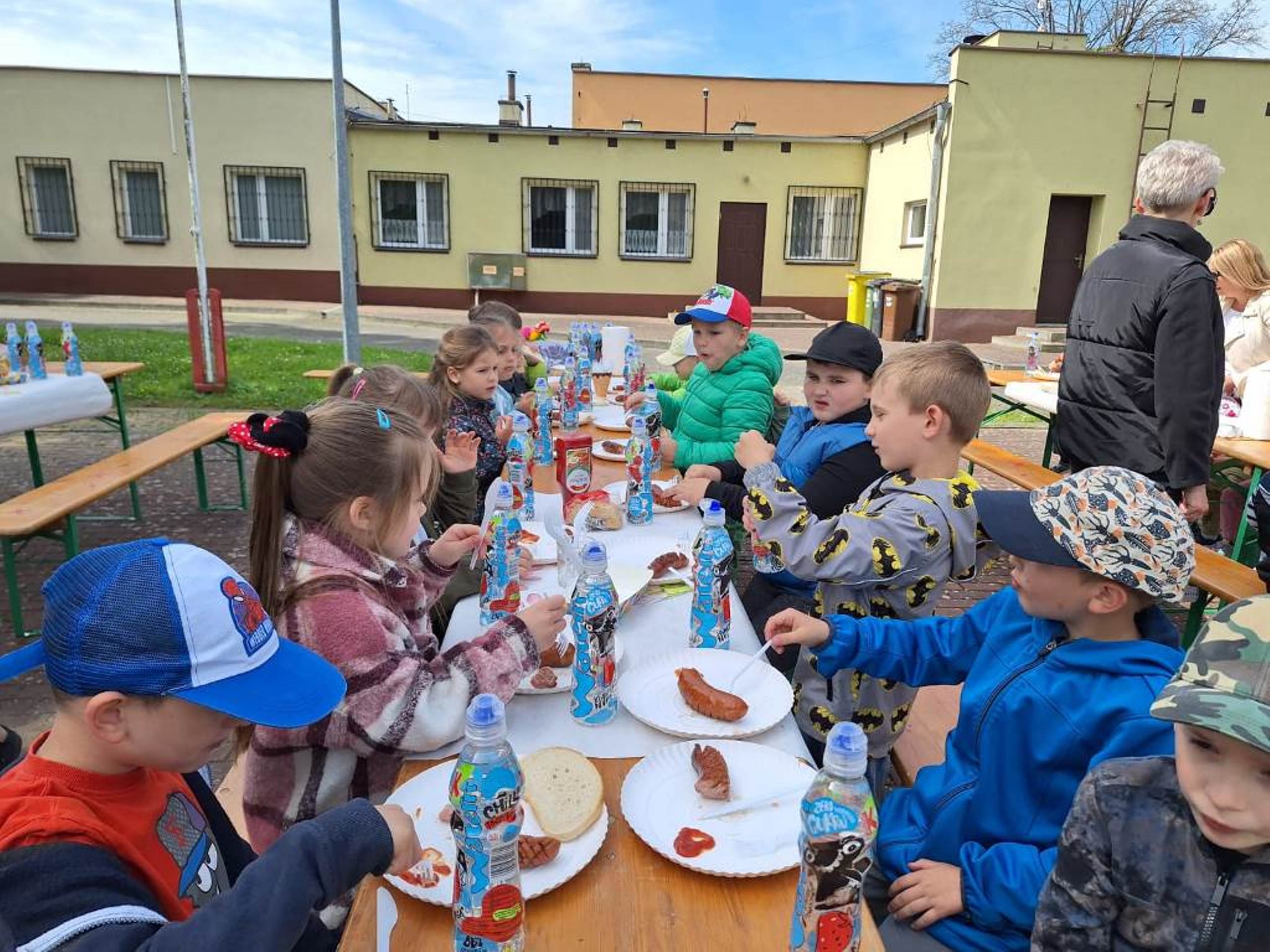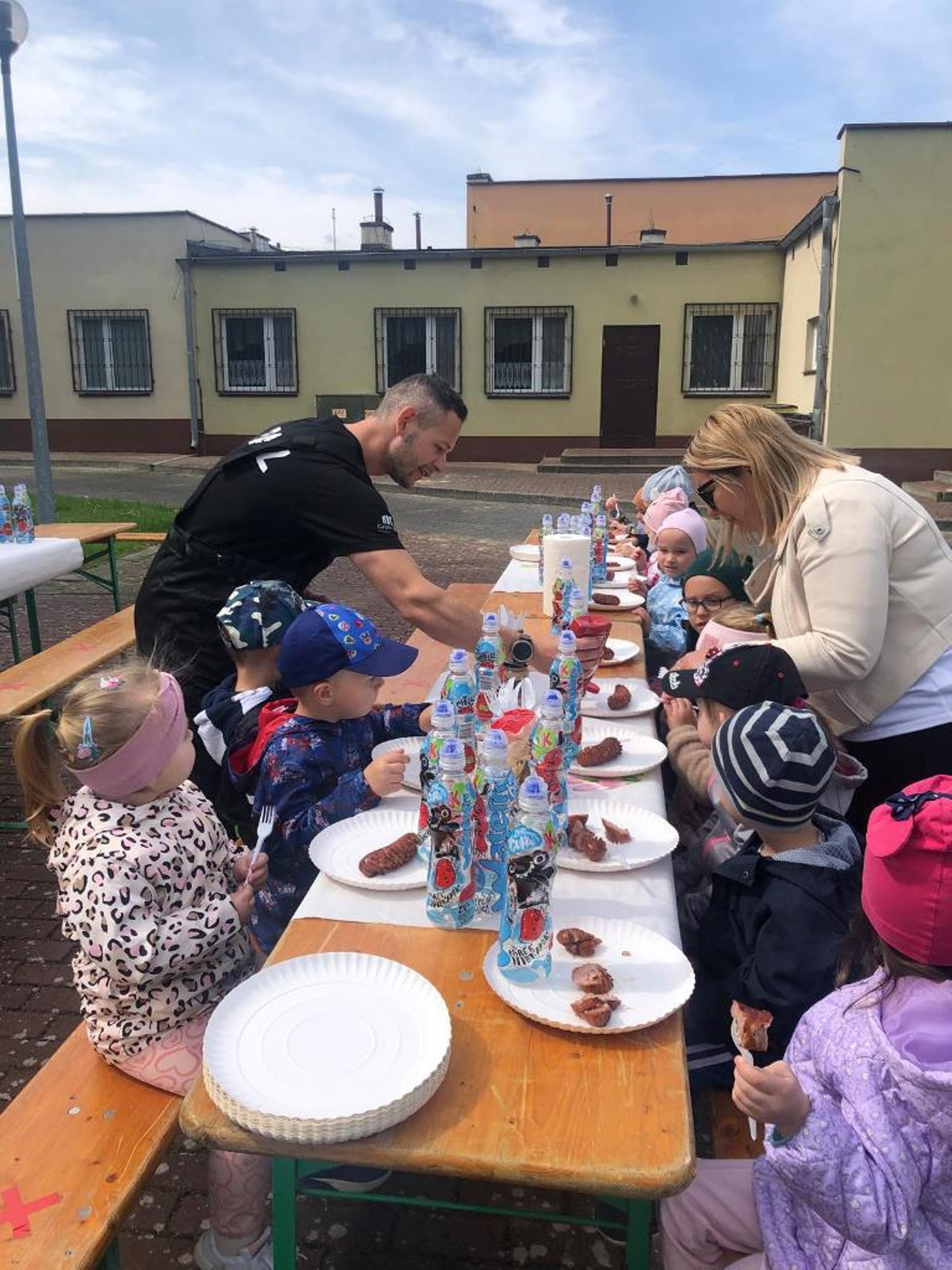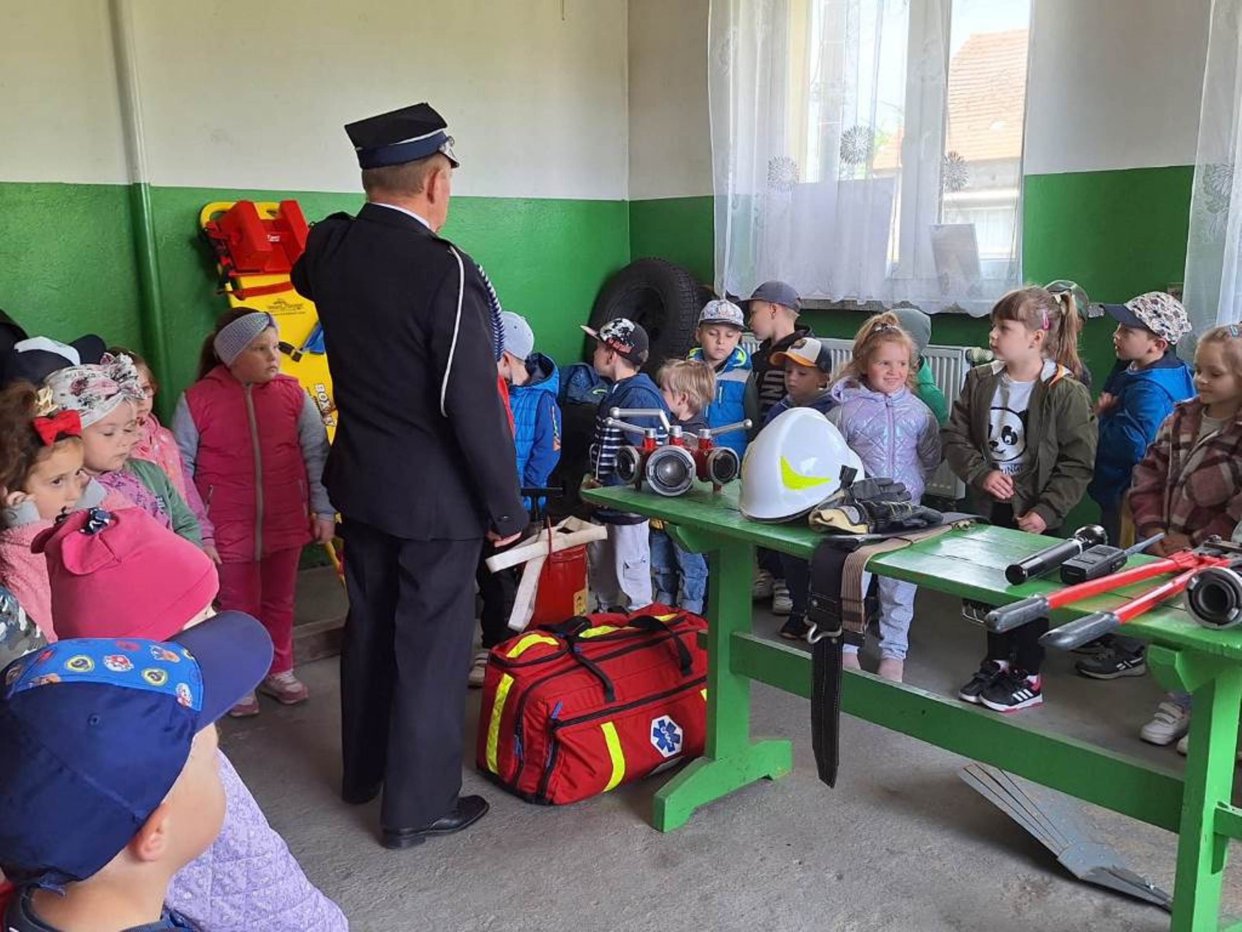 W dniu 08.05.2024r. dzieci z oddziału przedszkolnego w Rzeczycy odwiedziły Strażaków Ochotniczej Straży Pożarnej. Przedszkolaki z zachwytem i wielkim zaciekawieniem uczestniczyli w spotkaniu, podczas którego mogły poznać specyfikę pracy strażaków, umundurowanie strażackie oraz niektóre sprzęty jakimi dysponują. Dzieci dowiedziały się, że strażacy nie tylko gaszą pożary, ale również są wzywani do wypadków samochodowych, do zalanych domów, powalonych drzew, a także ratują zwierzęta. Podczas spotkania strażacy uświadomili dzieciom, jak zachowywać się w sytuacjach zagrożenia oraz jak powiadomić służby ratownicze i udzielać pierwszej pomocy. Wielką radość przedszkolakom sprawił przejazd wozem strażackim, pryskanie wodą oraz pyszny poczęstunek, który przygotowali strażacy. Jeszcze raz serdeczne podziękowania dla Strażaków z OSP Rzeczyca za trud, poświęcenie, wielki dar serca, jakim jest wasza służba i zaangażowanie. Dziękujemy za to, że zawsze możemy na Was liczyć.