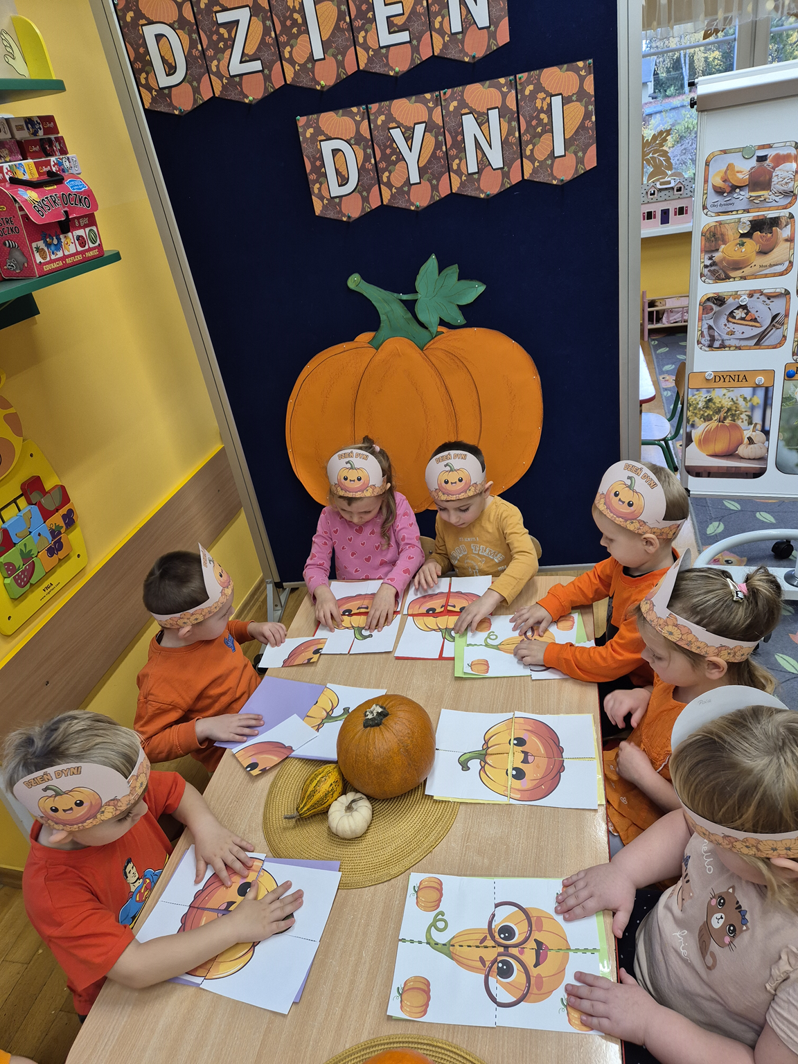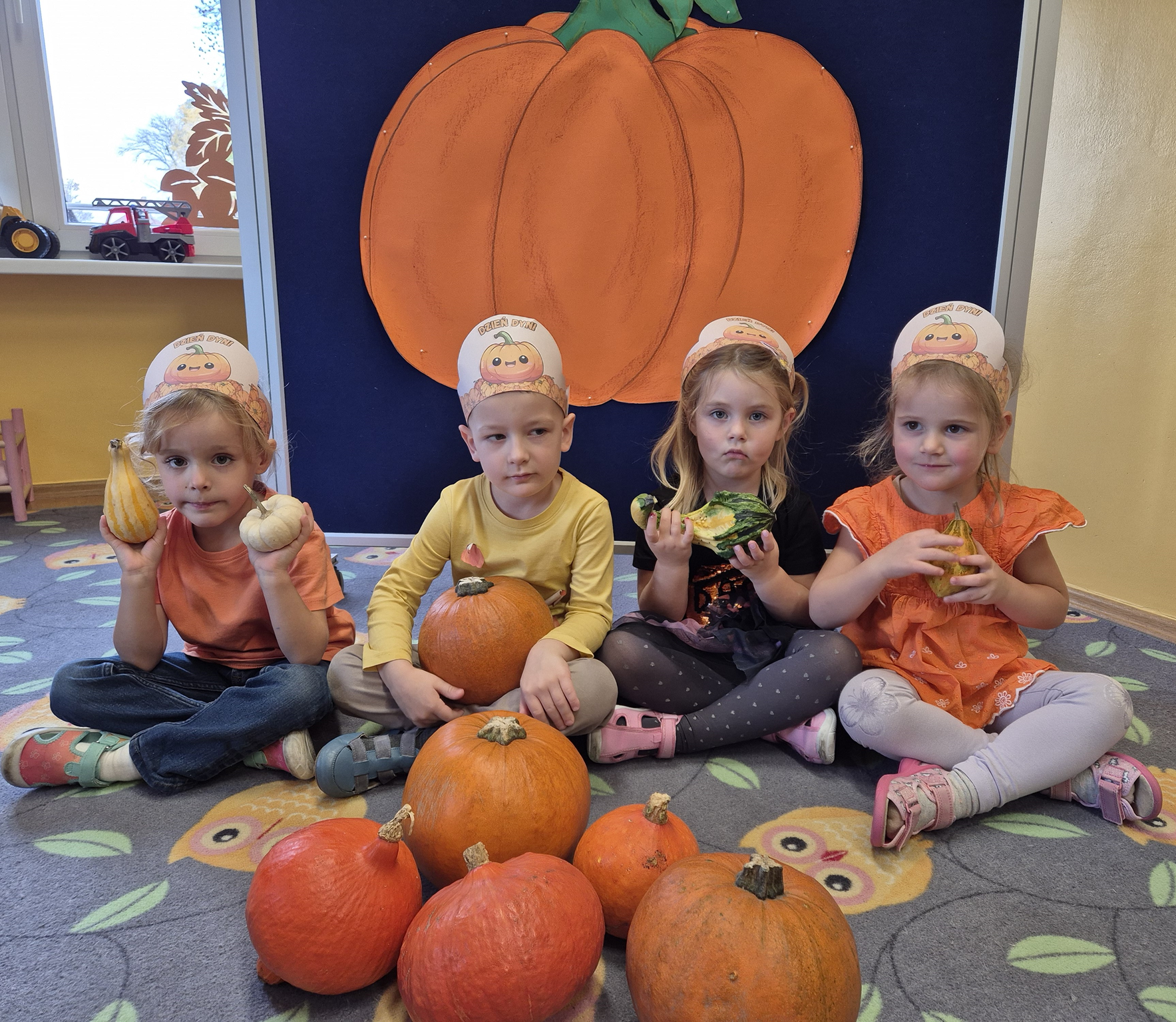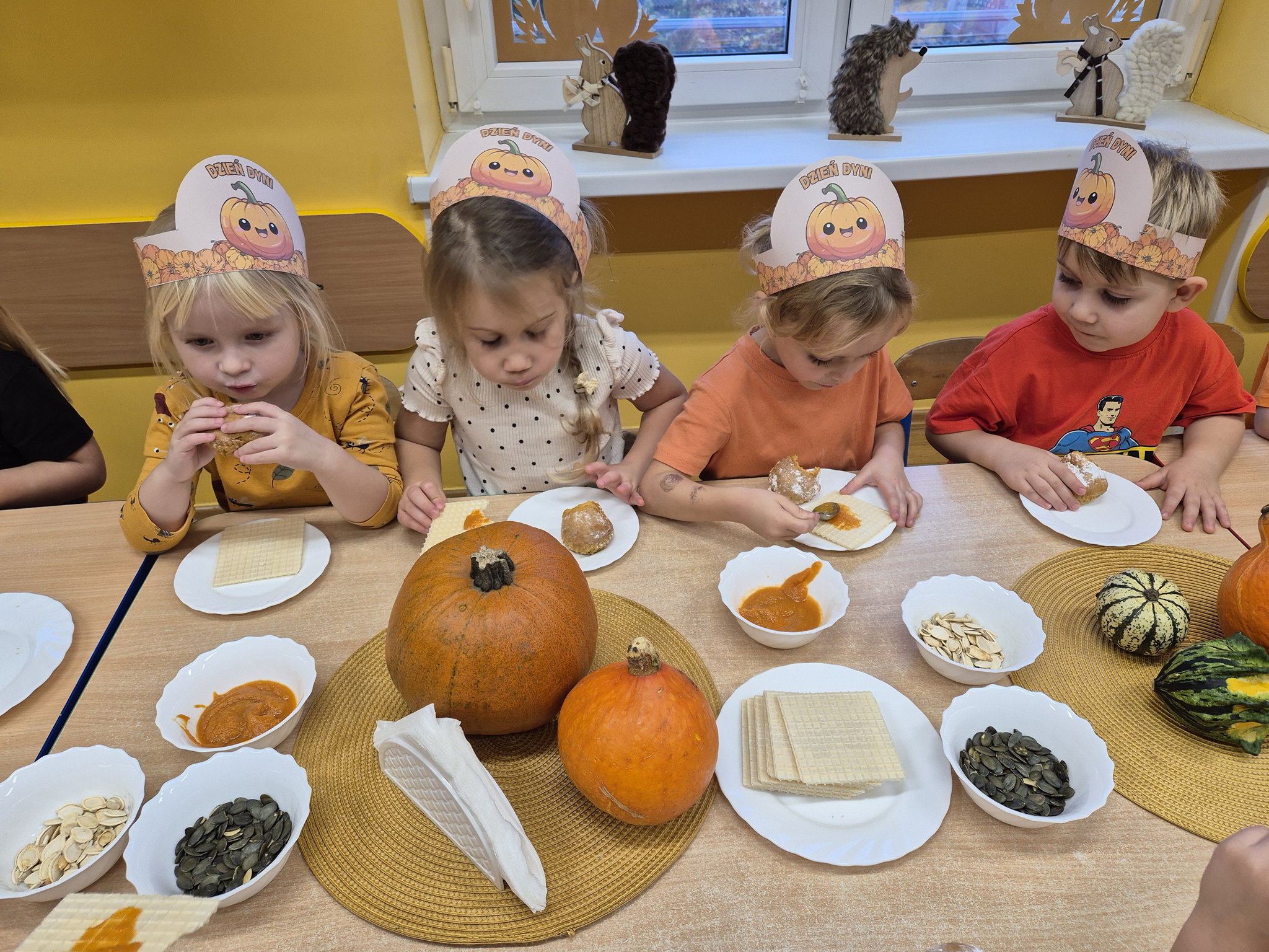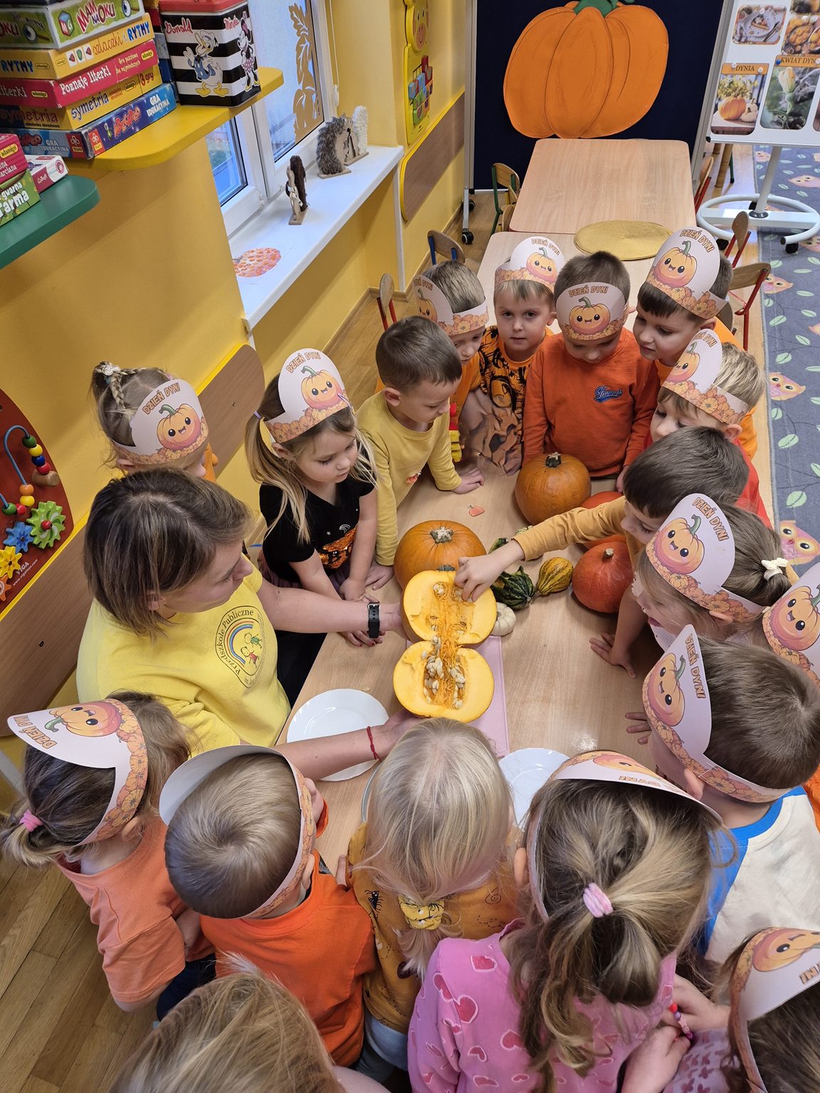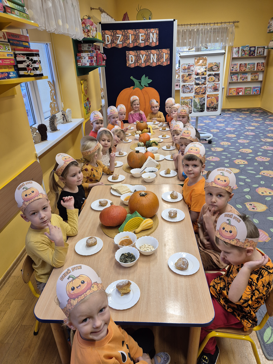W naszym przedszkolu obchodziliśmy Święto Dyni – święto pełne koloru, zabawy i jesiennej atmosfery. Tego dnia przedszkolaki przyszły ubrane na pomarańczowo, a sale zamieniły się w prawdziwe dyniowe krainy. Wspólnie uczestniczyliśmy w zajęciach, których celem było poznanie bardzo zdrowego i urodziwego warzywa jakim jest dynia. Nie zabrakło również degustacji dyniowych babeczek i pestek dyni. Dzień Dyni dostarczył wszystkim wielu radości i uśmiechu, a przy okazji był doskonałą okazją do utrwalenia wiedzy o darach jesieni. Koordynatorem zajęć były nauczycielki E. Andrzejewska, M. Fercho, M. Skowronek