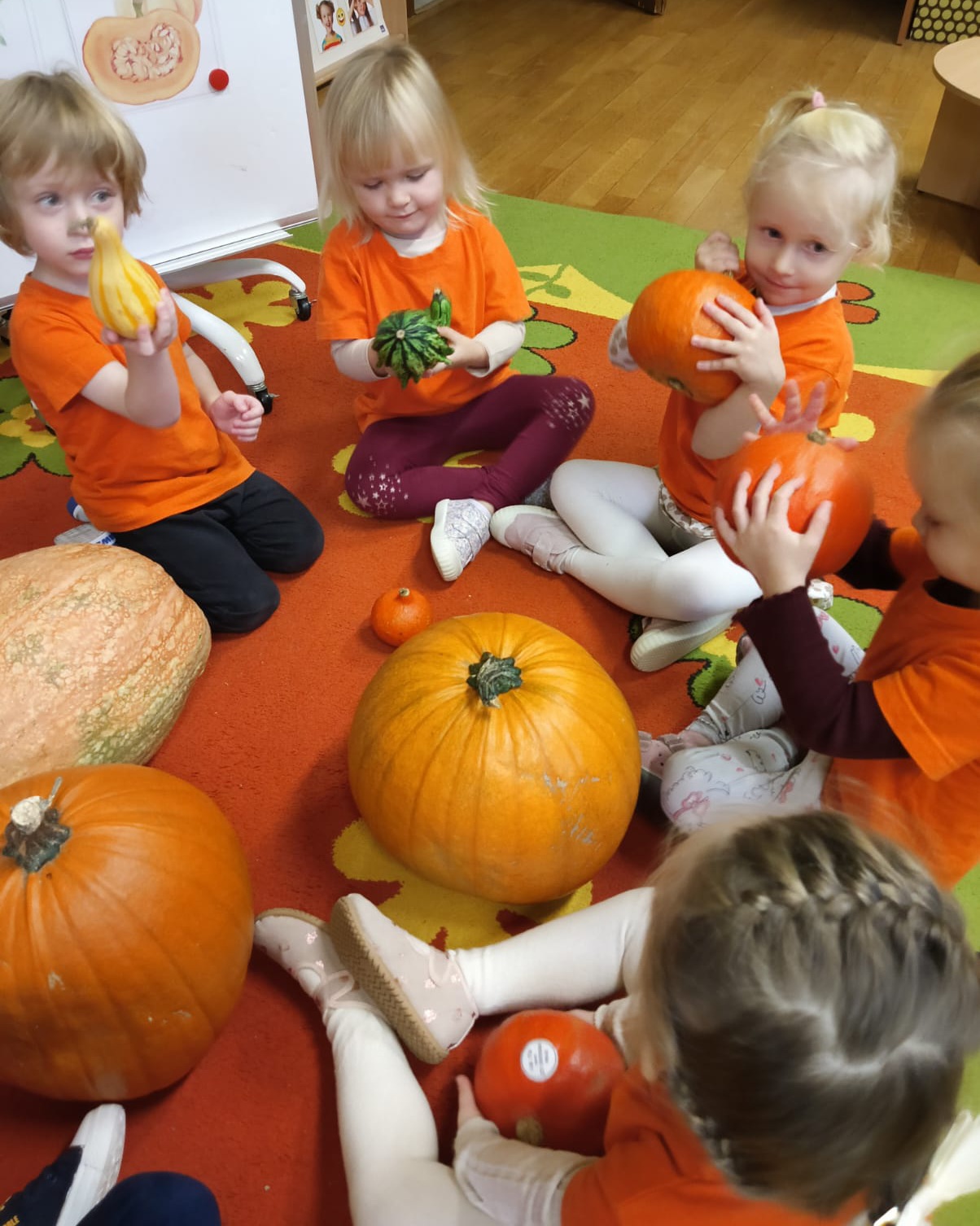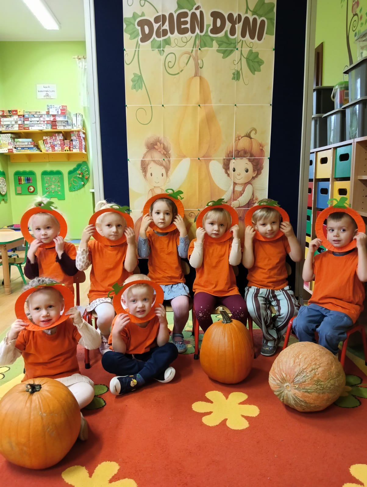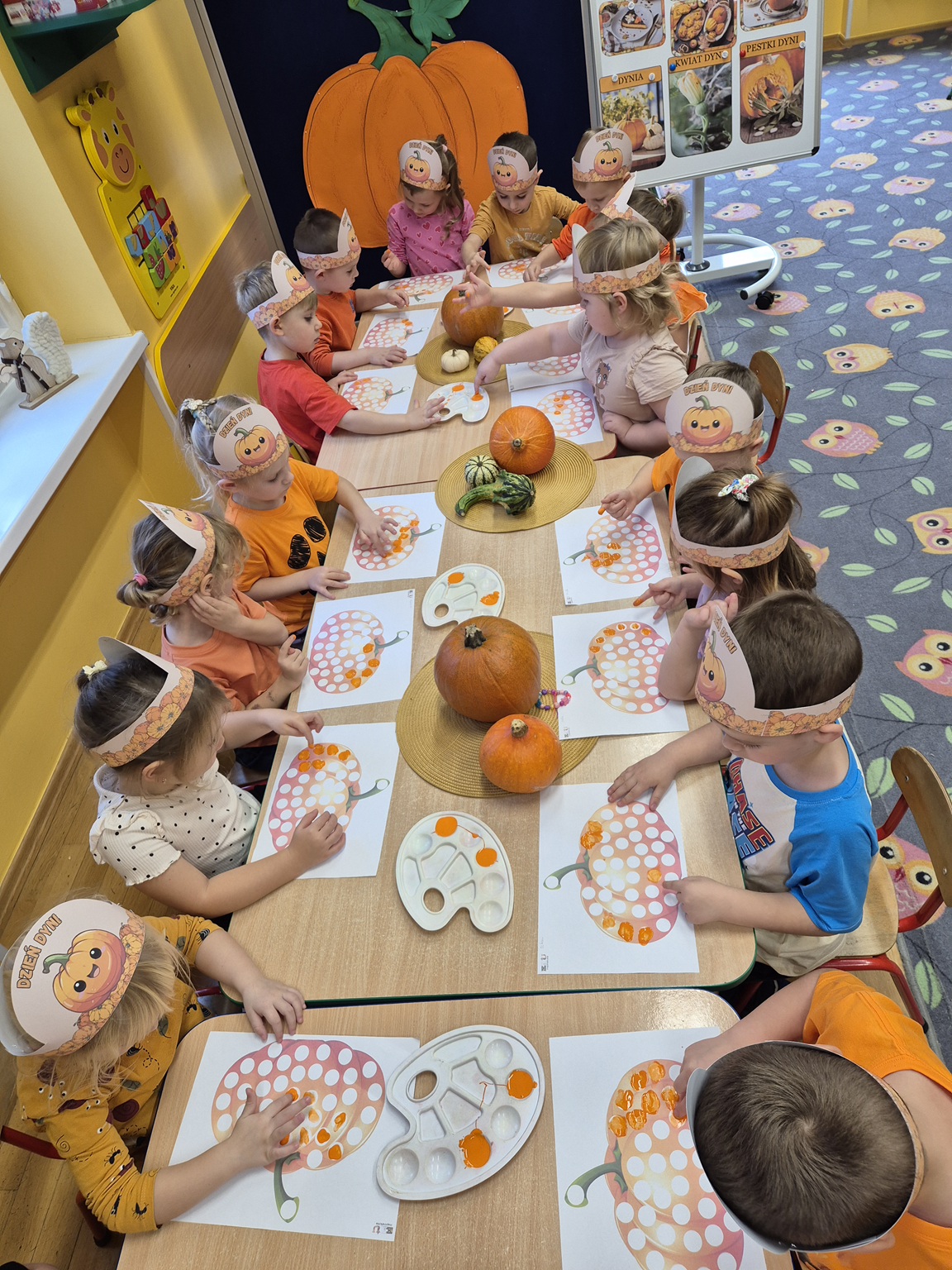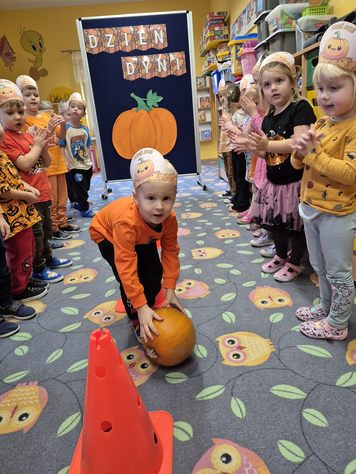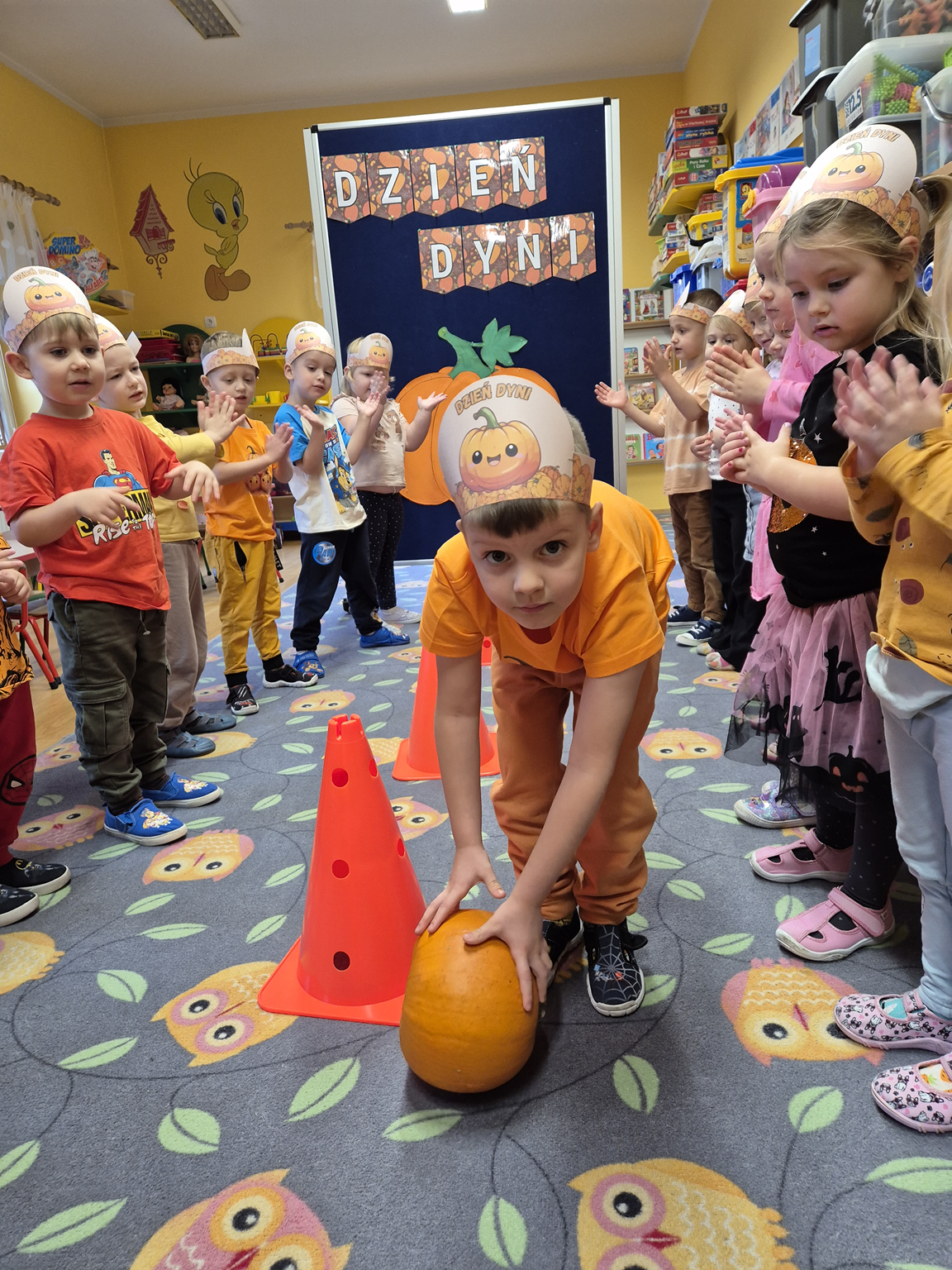 W naszym przedszkolu obchodziliśmy Święto Dyni – święto pełne koloru, zabawy i jesiennej atmosfery. Tego dnia przedszkolaki przyszły ubrane na pomarańczowo, a sale zamieniły się w prawdziwe dyniowe krainy. Wspólnie uczestniczyliśmy w zajęciach, których celem było poznanie bardzo zdrowego i urodziwego warzywa jakim jest dynia. Nie zabrakło również degustacji dyniowych babeczek i pestek dyni. Dzień Dyni dostarczył wszystkim wielu radości i uśmiechu, a przy okazji był doskonałą okazją do utrwalenia wiedzy o darach jesieni. Koordynatorem zajęć były nauczycielki E. Andrzejewska, M. Fercho, M. Skowronek