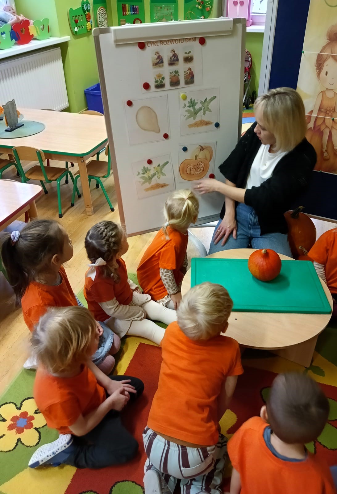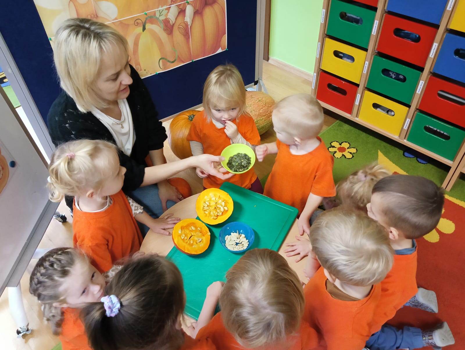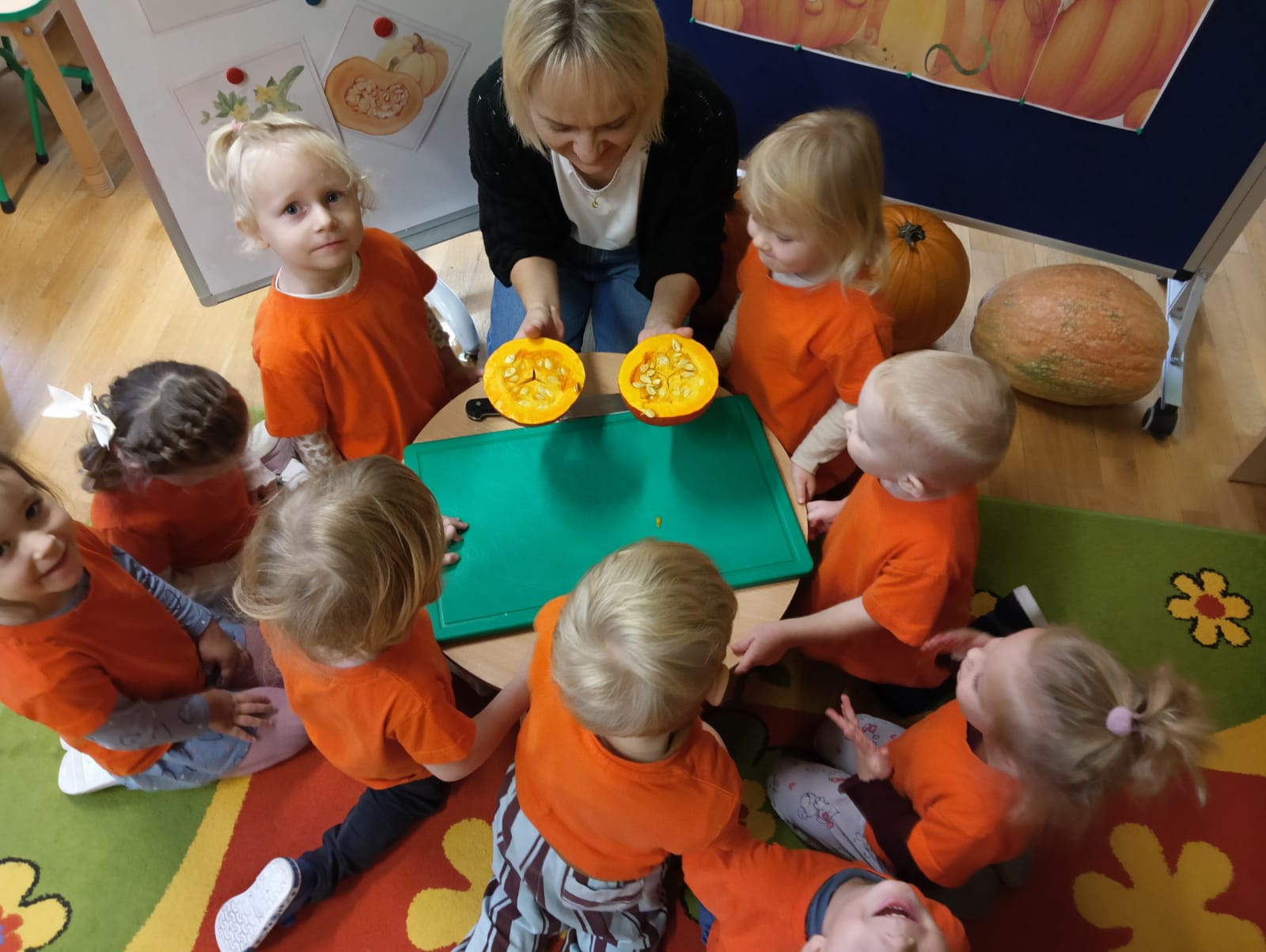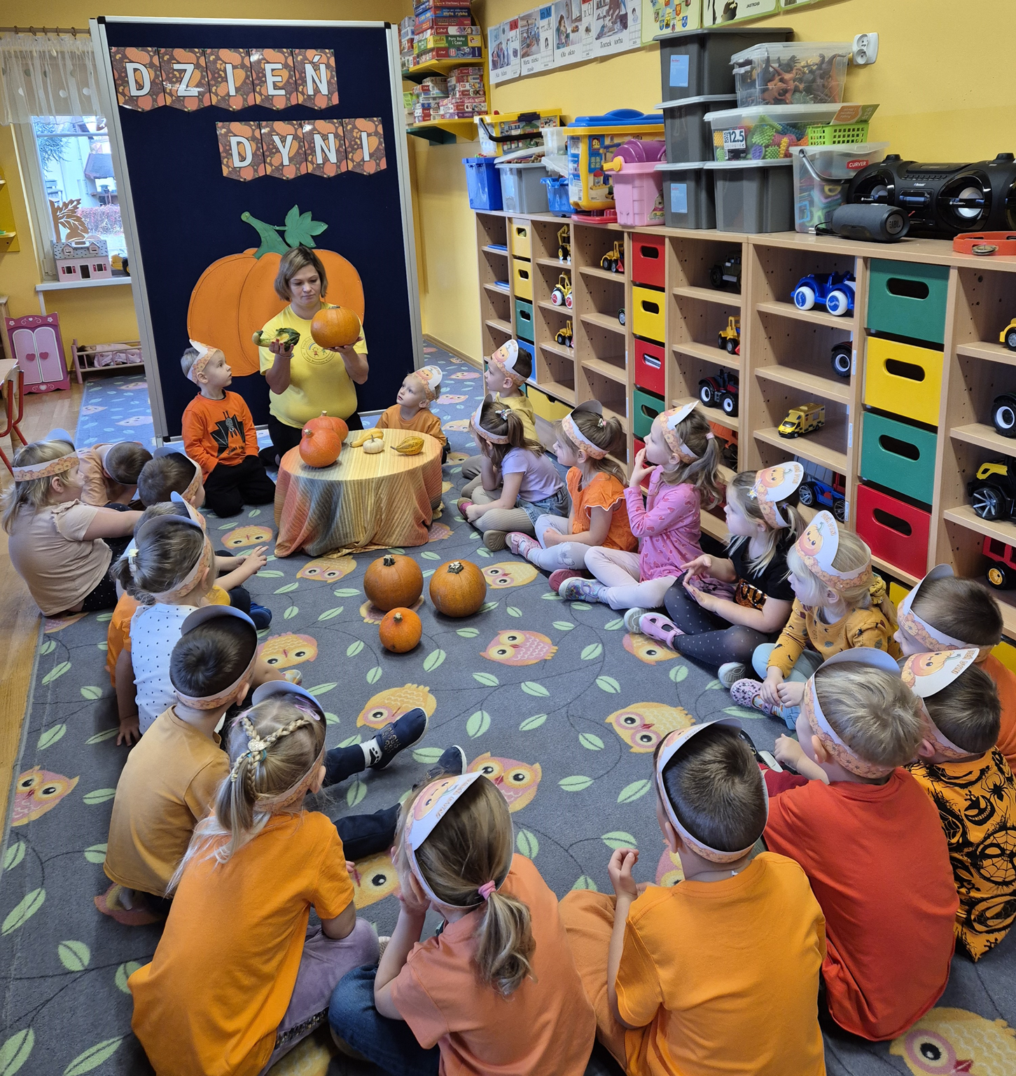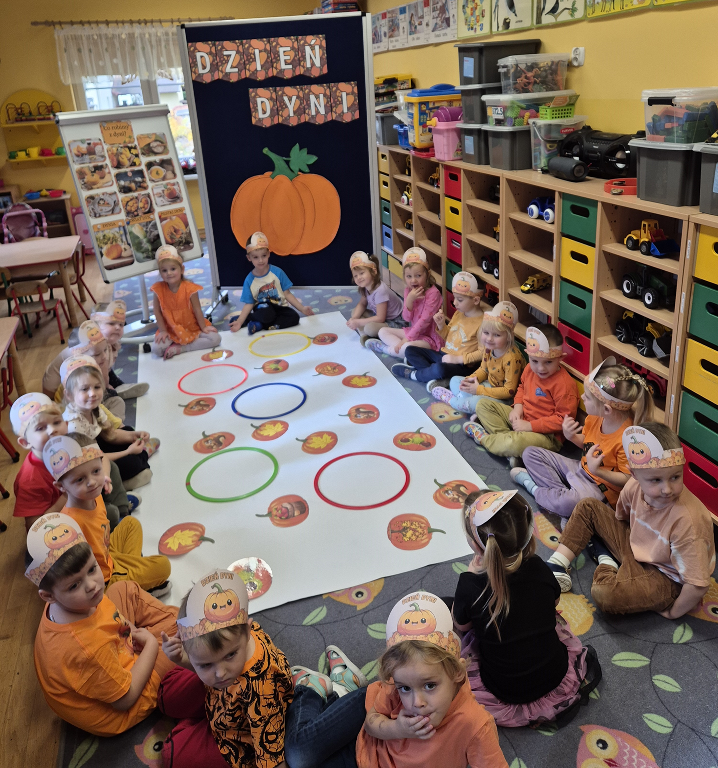 W naszym przedszkolu obchodziliśmy Święto Dyni – święto pełne koloru, zabawy i jesiennej atmosfery. Tego dnia przedszkolaki przyszły ubrane na pomarańczowo, a sale zamieniły się w prawdziwe dyniowe krainy. Wspólnie uczestniczyliśmy w zajęciach, których celem było poznanie bardzo zdrowego i urodziwego warzywa jakim jest dynia. Nie zabrakło również degustacji dyniowych babeczek i pestek dyni. Dzień Dyni dostarczył wszystkim wielu radości i uśmiechu, a przy okazji był doskonałą okazją do utrwalenia wiedzy o darach jesieni. Koordynatorem zajęć były nauczycielki E. Andrzejewska, M. Fercho, M. Skowronek