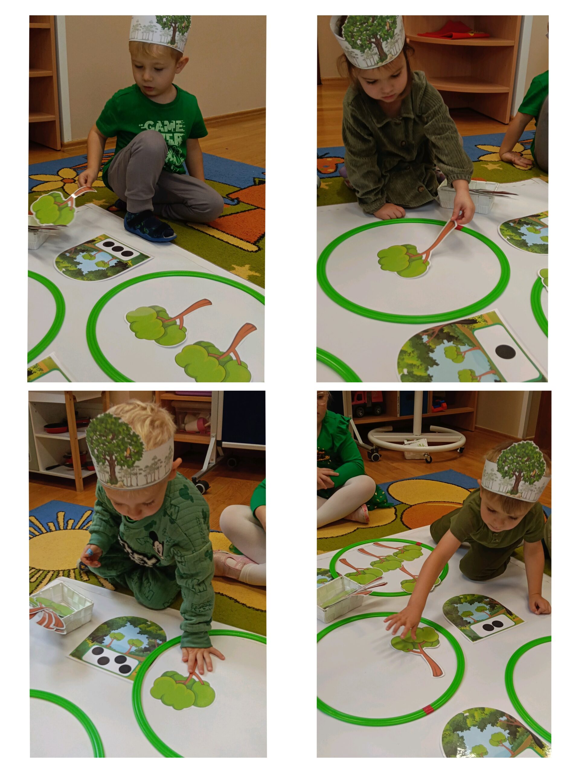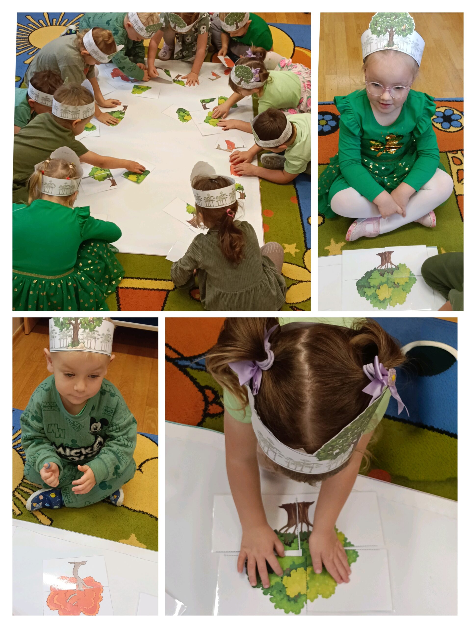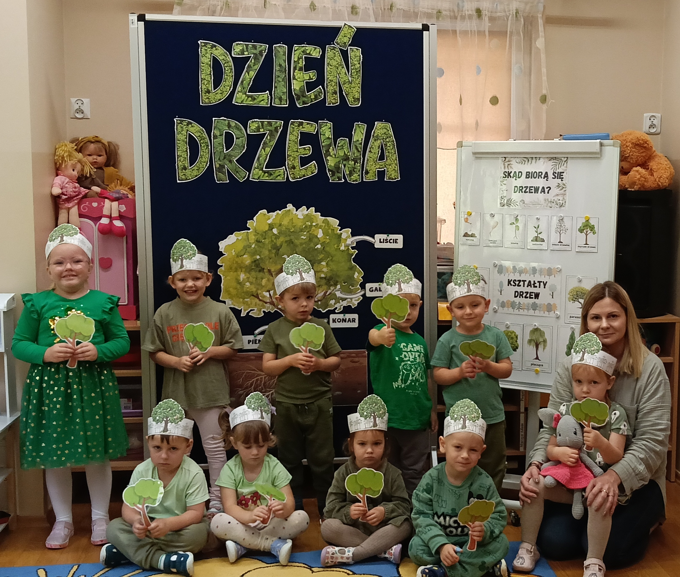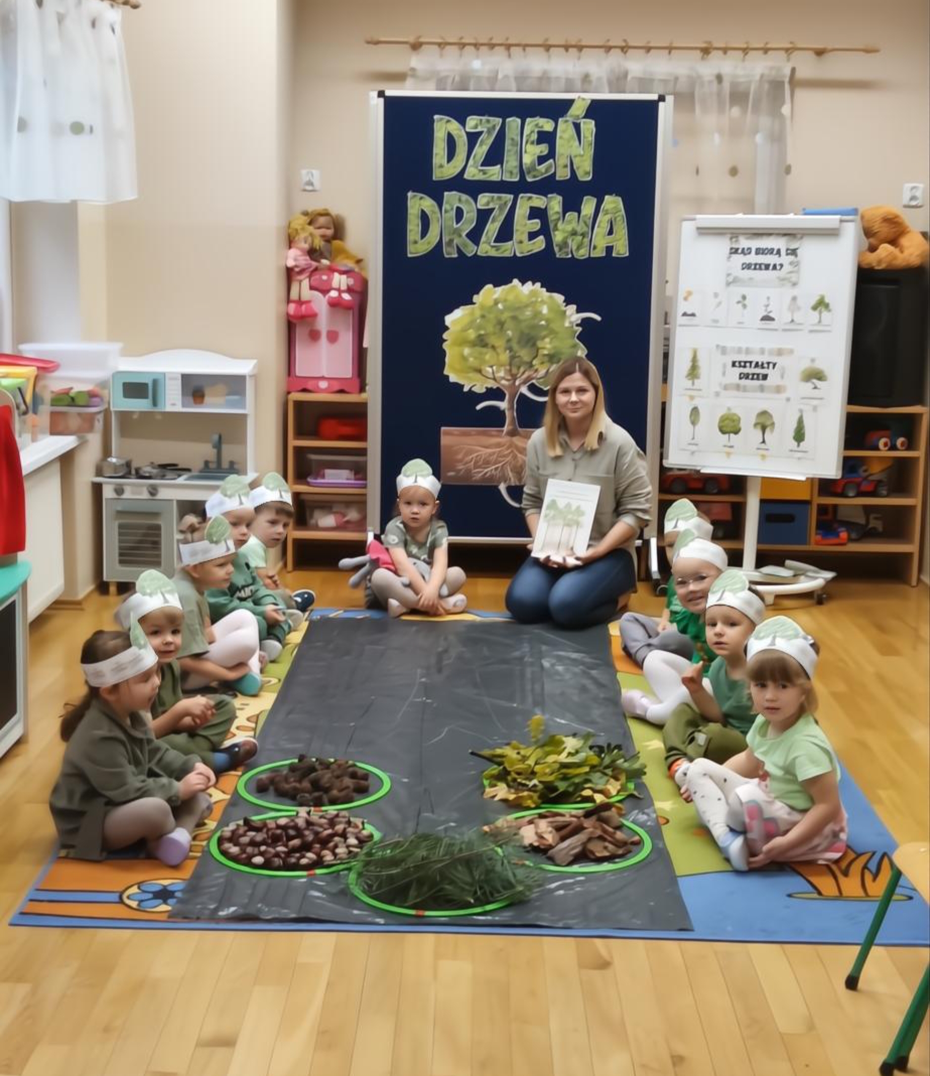 Dnia 10 października w oddziale „Mrówki” obchodzony był „Dzień Drzewa” – w ramach kampanii edukacyjnej „Bioróżnorodnie połączeni” pod patronatem Ministerstwa Klimatu i Środowiska. To święto przypomina nam, jak ważną rolę ekosystemową odgrywają zielone płuca naszej planety – drzewa. Celem takich zajęć jest lepsze poznanie świata przyrody przez dzieci. Przedszkolaki słuchały opowiadań o drzewach, rozpoznawały ich liście i owoce, poznały budowę drzewa, układały puzzle, pokonywały ścieżkę sensoryczną i wykonały piękne prace plastyczne. Podczas zabaw badawczych dotykały kory drzew, gałązek różnego rodzaju drzew oraz ich owoców. To był dzień pełen radości, zabawy i troski o naszą planetę.