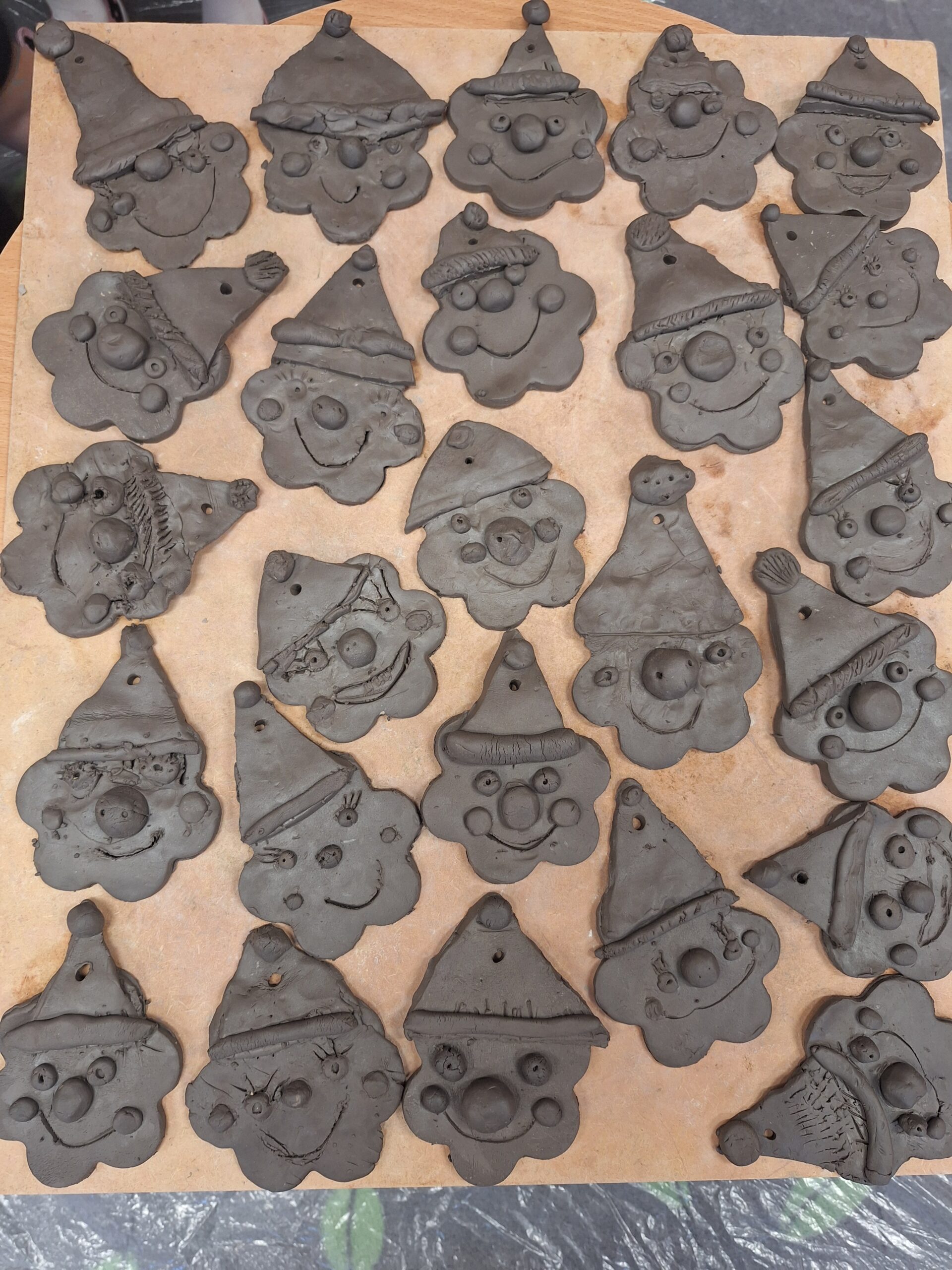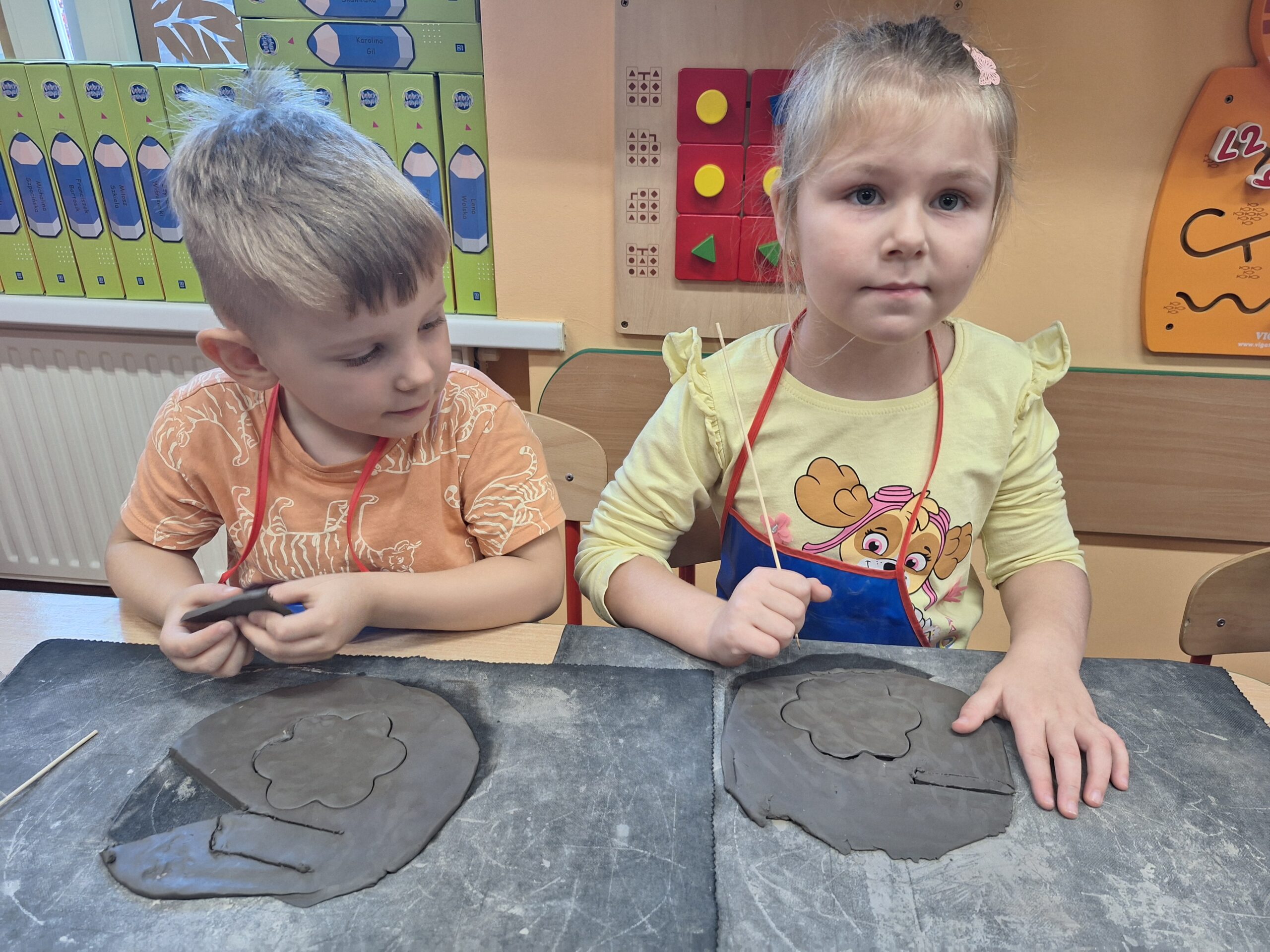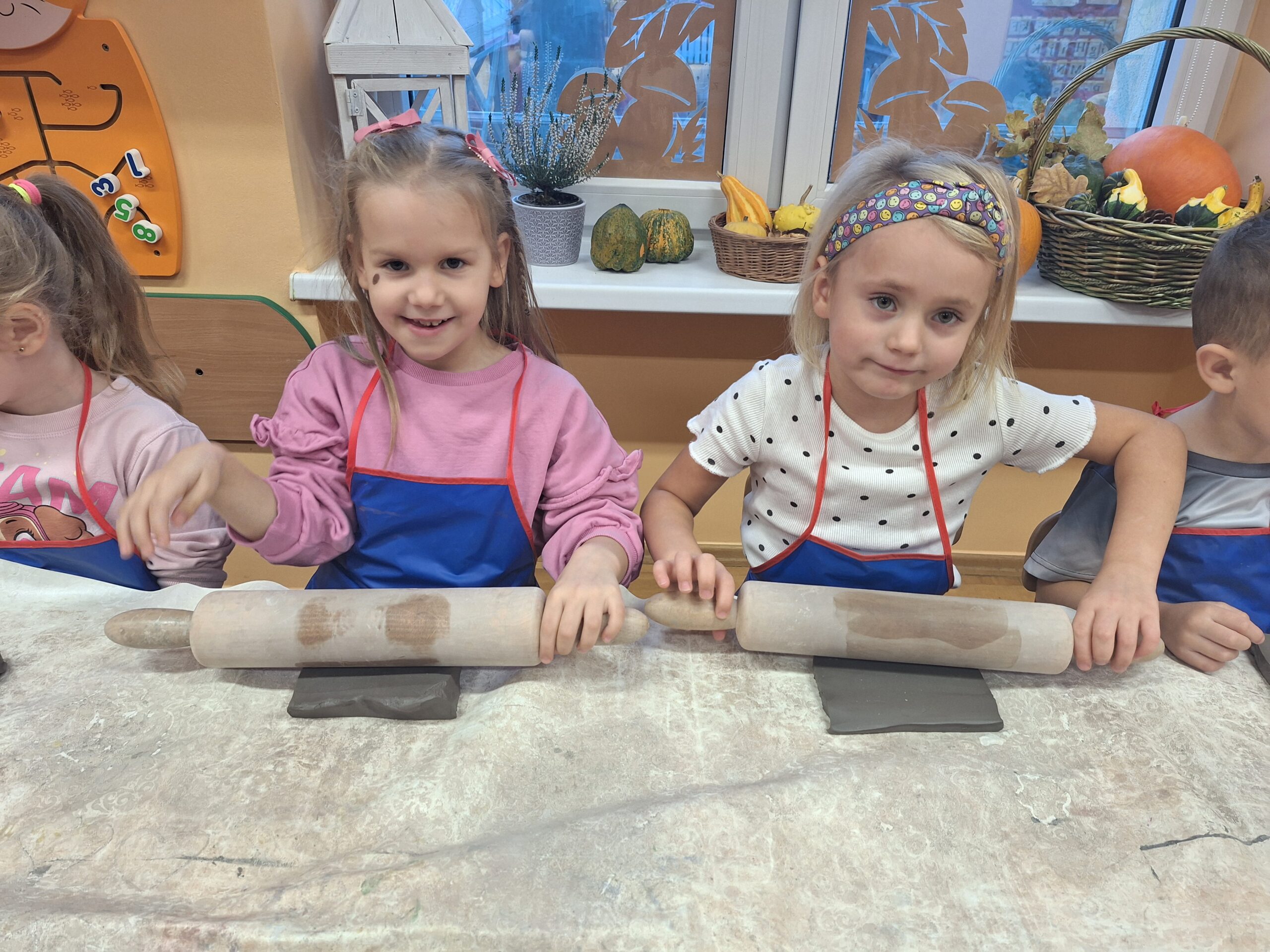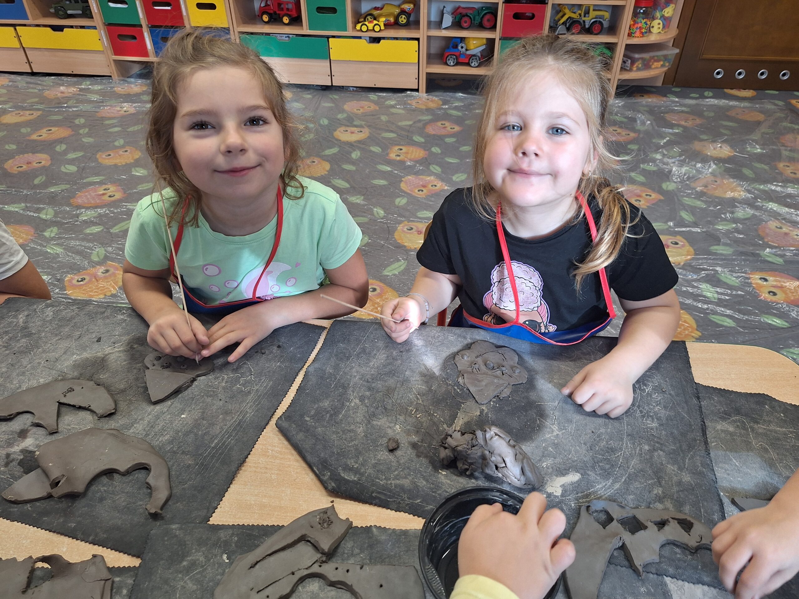 Dnia 30 października 2024 roku dzieci z oddziału „Biedronek” uczestniczyły w warsztatach ceramicznych. Prowadząca zajęcia, Pani Joanna Powaserowska, wprowadziła dzieci w niezwykły świat ceramiki, opowiedziała o właściwościach gliny oraz omówiła etapy powstawania gotowego produktu ceramicznego. Praca z gliną bardzo dobrze wpływa na harmonijny rozwój dzieci. Wycisza, uczy skupienia i cierpliwości. Rozwija sprawność manualną dziecka. Znakomicie stymuluje i rozwija układ nerwowy. Rozwija wyobraźnię, zdolności manualne, ekspresję plastyczną, a przede wszystkim jest wspaniałą zabawą. Efektem naszej zabawy z gliną są Mikołaje.