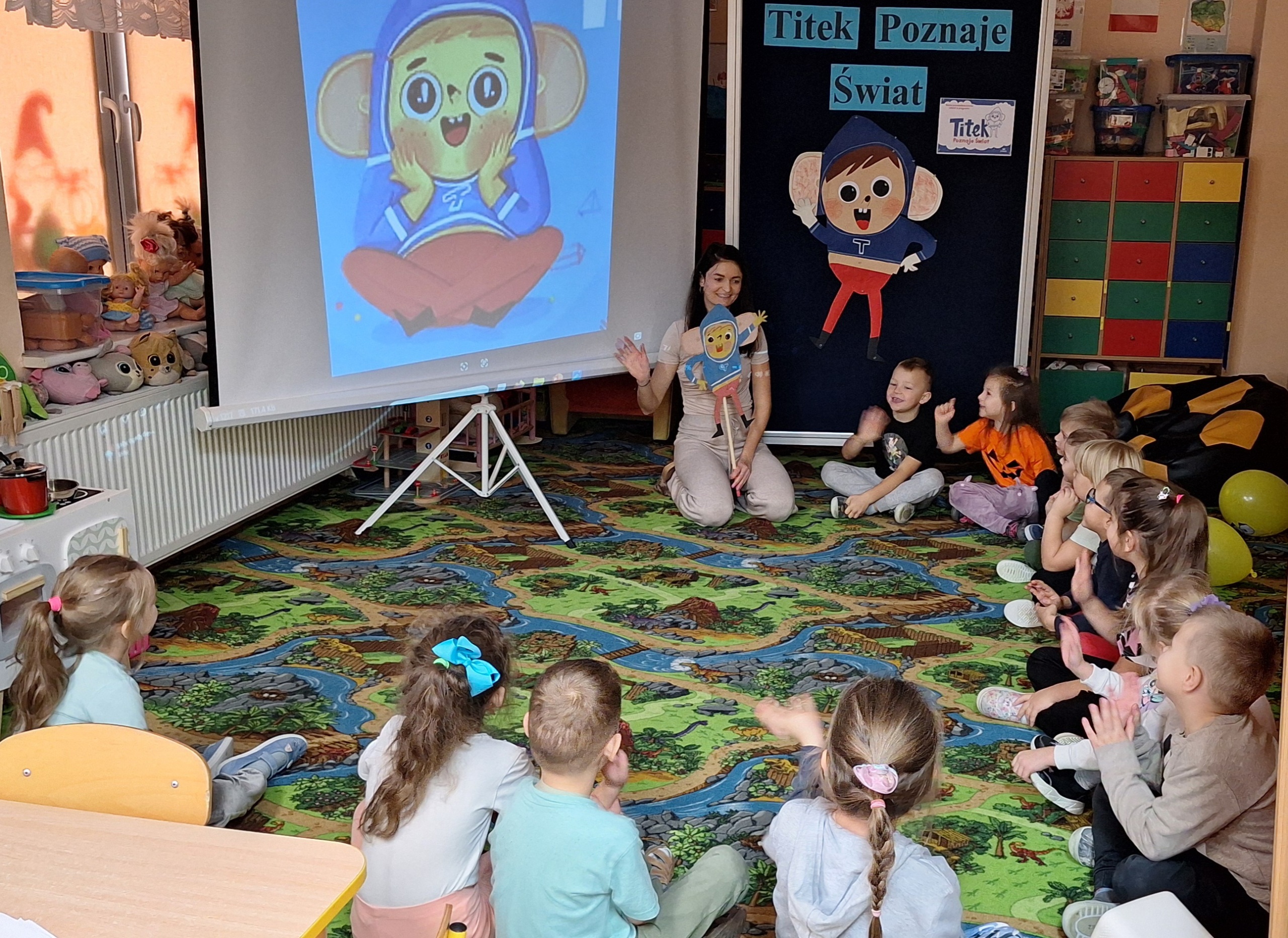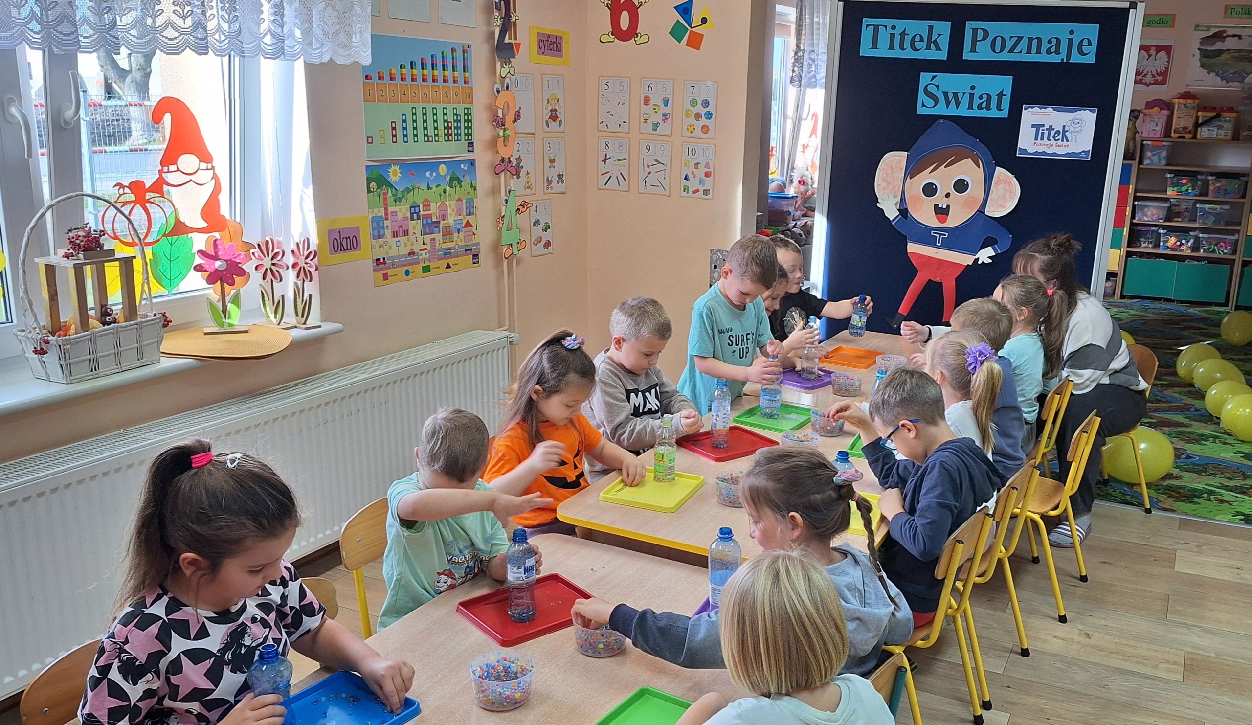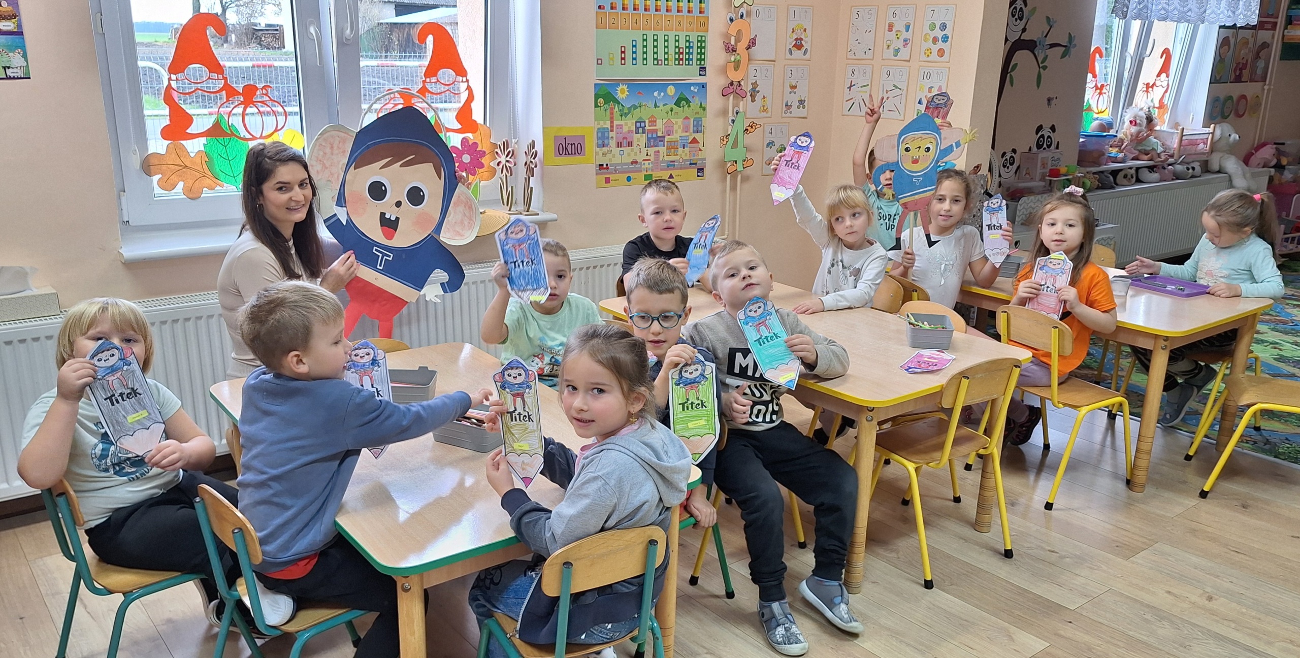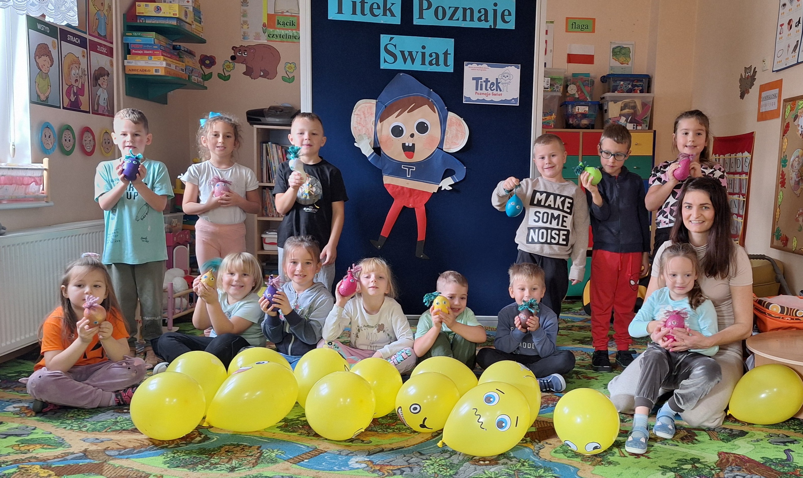 Dzieci z Oddziału „Stokrotki” uczestniczyły w realizacji programu „Titek poznaje świat” były to zajęcia poświęcone emocjom. W życiu każdego człowieka emocje odgrywają bardzo istotną rolę. Każdy z nas przeżywa swoje porażki i sukcesy w zupełnie inny sposób, dlatego tak ważne jest, aby już od najmłodszych lat uczyć dzieci rozpoznawania, nazywania i wyrażania uczuć w bezpieczny i akceptowalny sposób. Dzieci poznały bohatera opowiadań Titka i dowiedziały się, czym są emocje, kiedy się pojawiają i w jaki sposób mogą wpływać na nasze zachowanie. Podczas zabaw dydaktycznych oraz rozmów kierowanych przedszkolaki uczyły się rozpoznawać podstawowe emocje – radość, smutek, złość, strach i zaskoczenie – zarówno u siebie, jak i u innych. W trakcie zajęć wykorzystano ilustracje, opowiadania oraz aktywności ruchowe, które pomagały dzieciom lepiej zrozumieć świat emocji. Przedszkolaki w zaczarowanym pudełku odkrywały emocje, również obejrzały krótki film dotyczący bohatera programu ,,Titek chce jeszcze jedną bajkę”. Przedszkolaki chętnie dzieliły się swoimi spostrzeżeniami, opowiadały o sytuacjach budzących różne uczucia i podejmowały próby wyrażania ich w sposób konstruktywny. Podczas zajęć podejmowały również aktywność artystyczną i stworzyły własne gniotki antystresowe z kulek hydrożelowych. Zajęcia pozwoliły dzieciom rozwijać umiejętności społeczne, budować empatię oraz uczyć się właściwej komunikacji. Były również okazją do wzmocnienia poczucia bezpieczeństwa i wzajemnego zaufania w grupie.