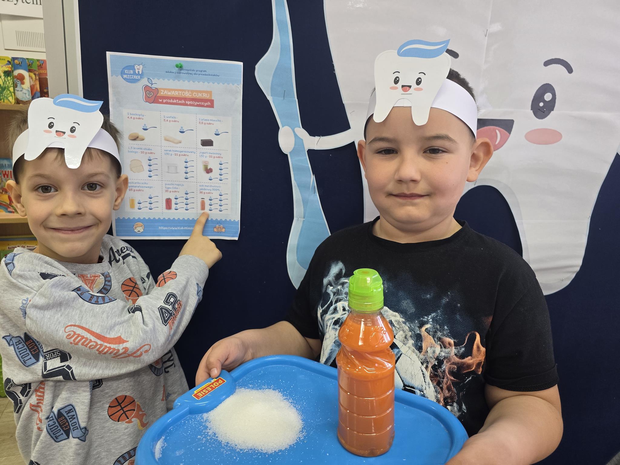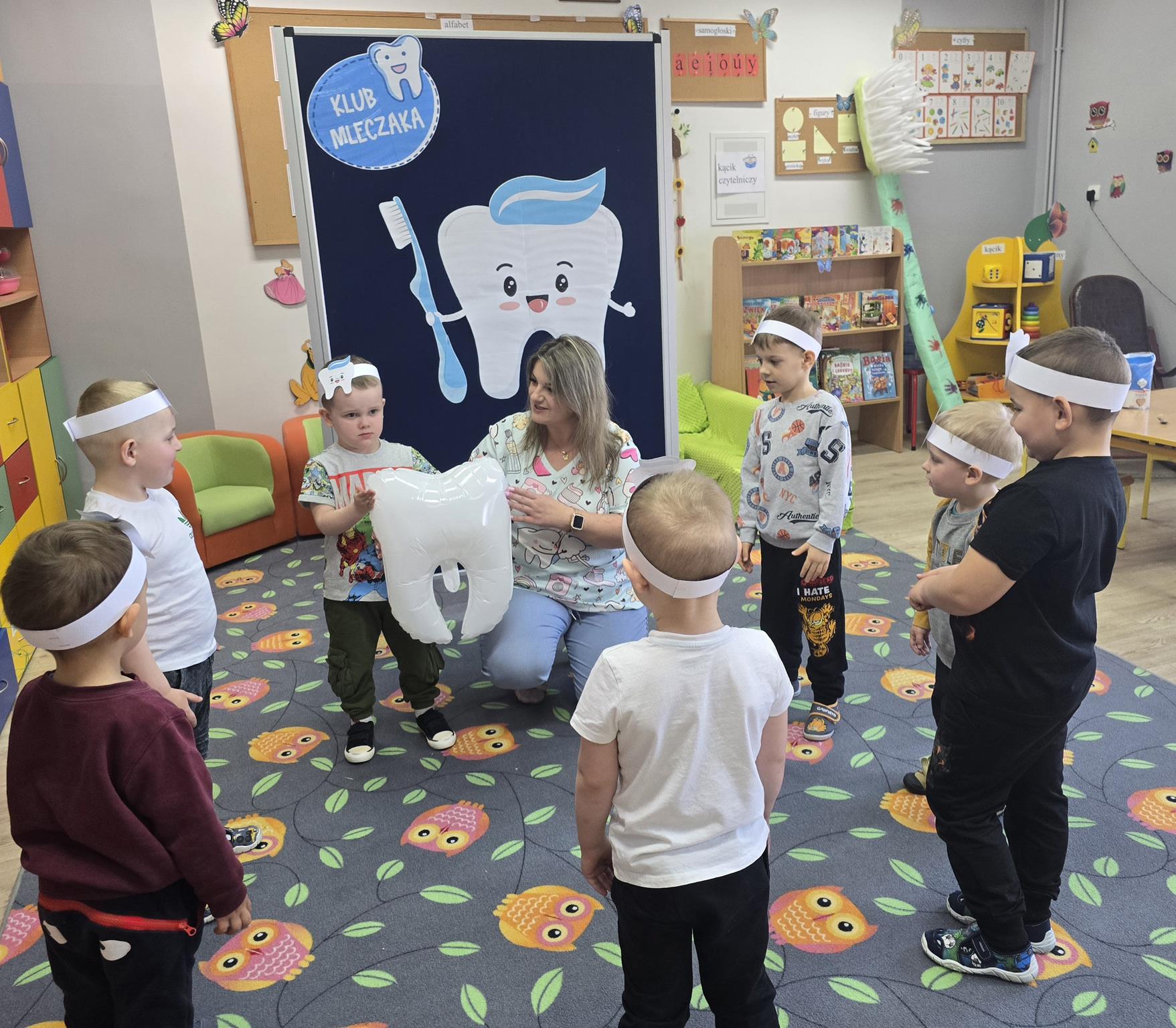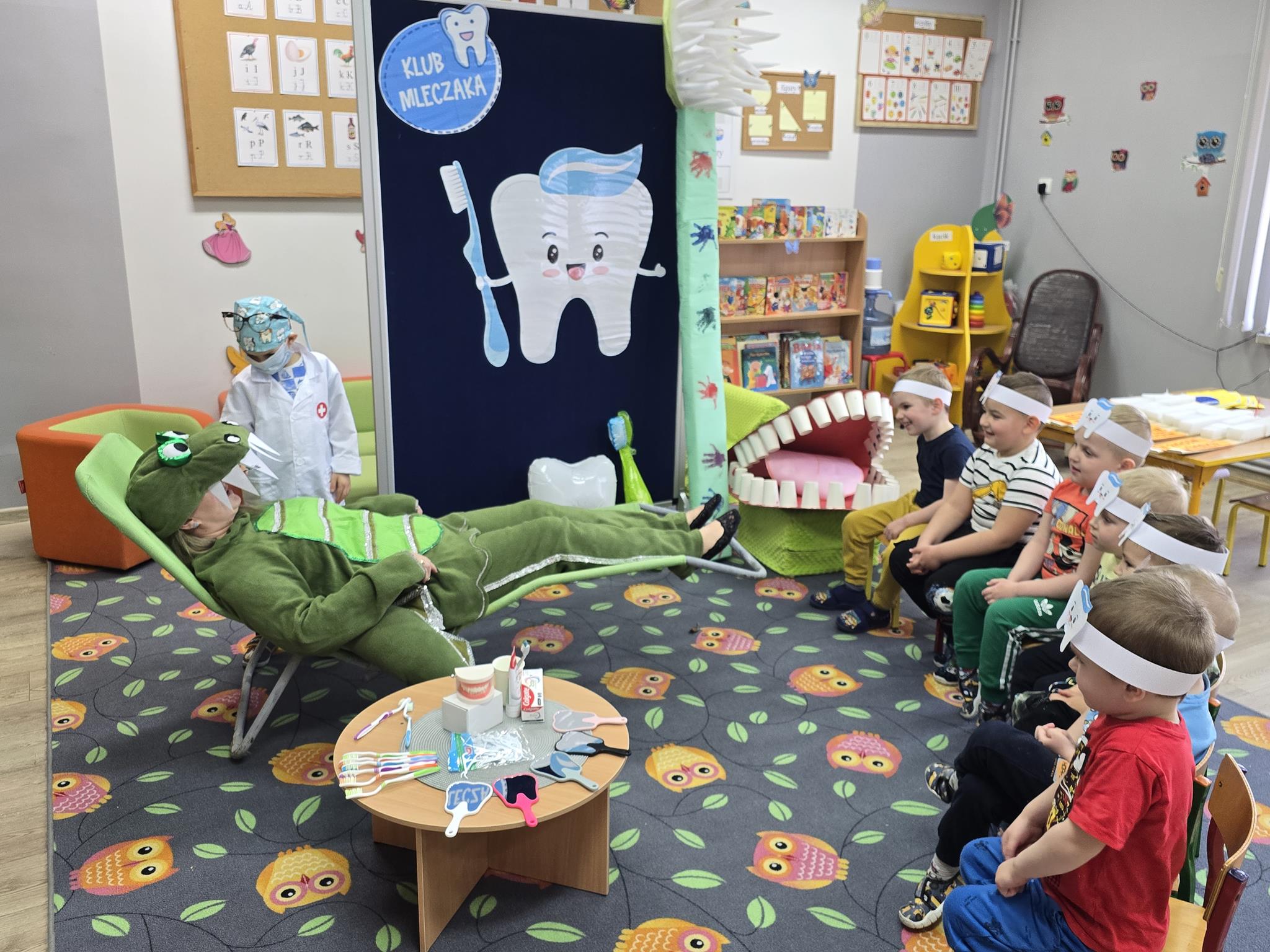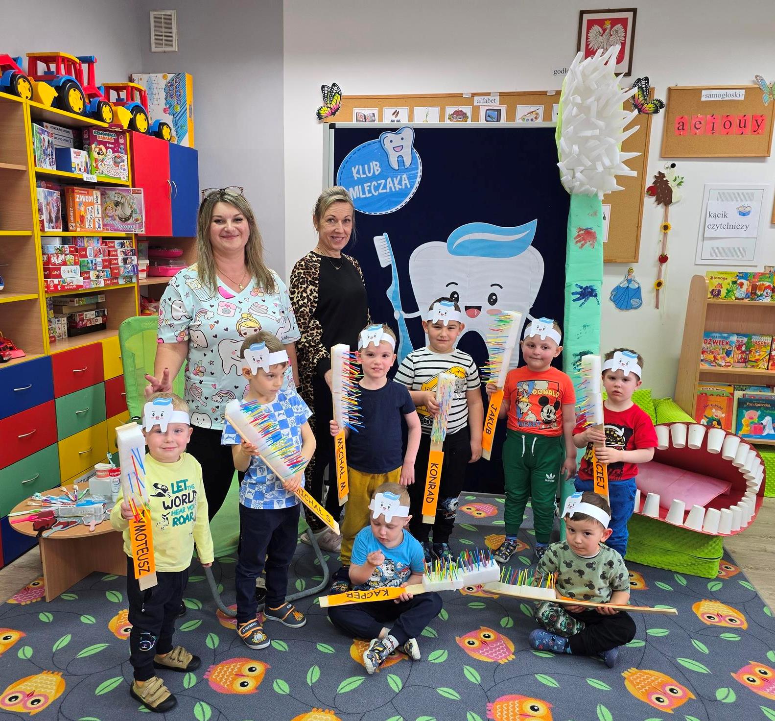 Wszystkie przedszkolaki wiedzą jak dbać o zęby, ale tej wiedzy nigdy za mało. Chcąc wzbogacić wiedzę i umiejętności, przedszkolaki z oddziału „Krasnoludki” wzięły udział w Ogólnopolskim Programie Edukacji Zdrowotnej pt.: „Klub Mleczaka”. Celem programu jest wytworzenie trwałego nawyku higieny jamy ustnej poprzez regularne szczotkowanie zębów a także spożywanie odpowiednich pokarmów przez dzieci w wieku przedszkolnym. Udział w programie pozwolił utrwalić zasady profilaktyki stomatologicznej i zmianę nawyków higienicznych u dzieci.