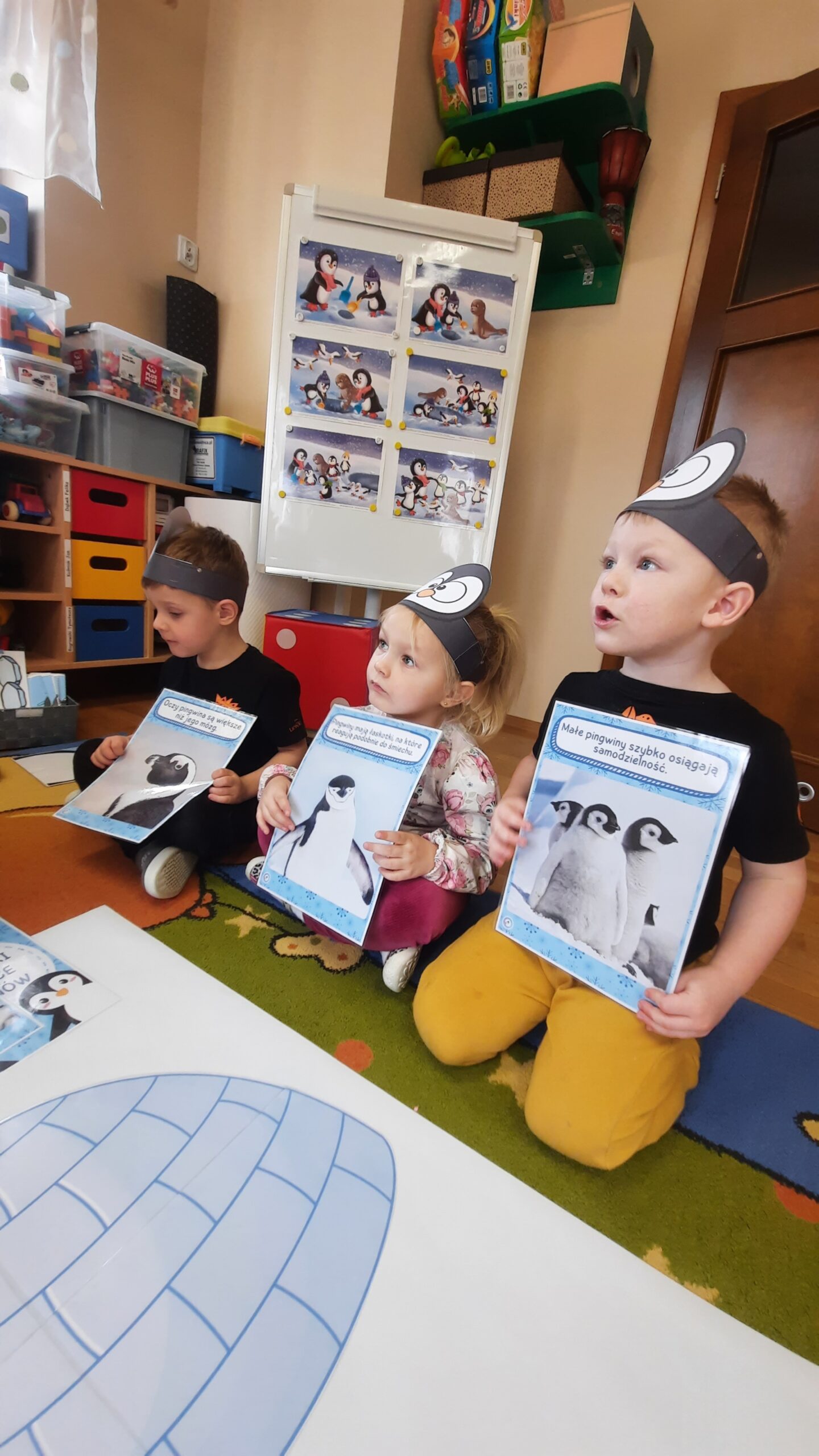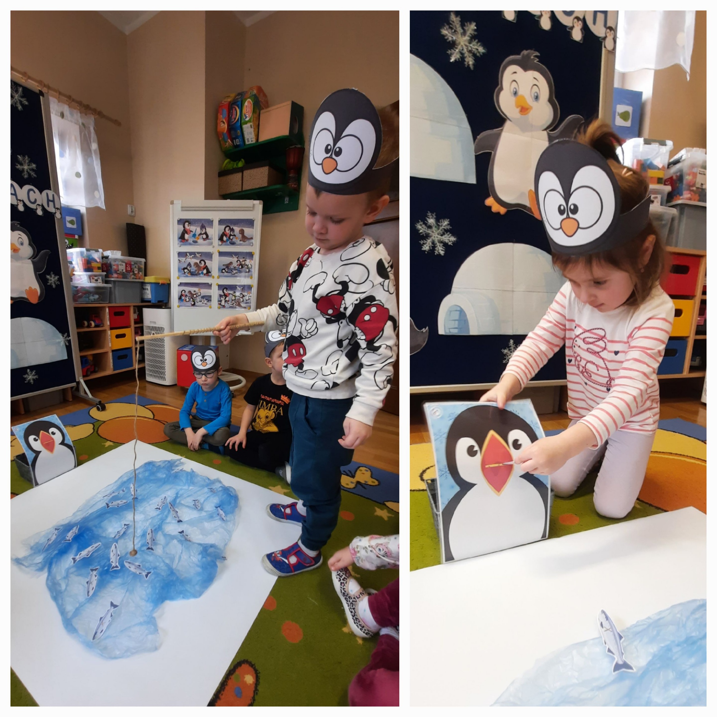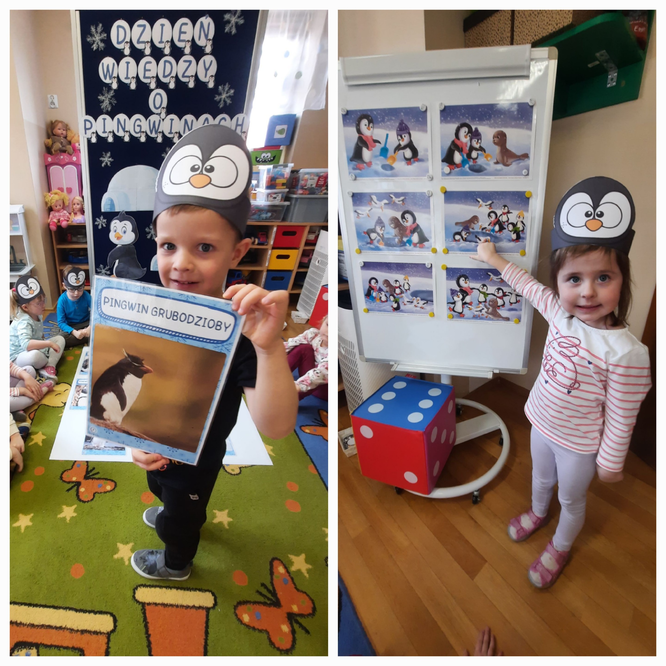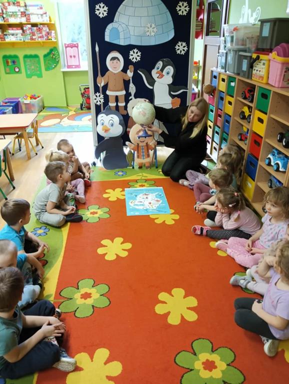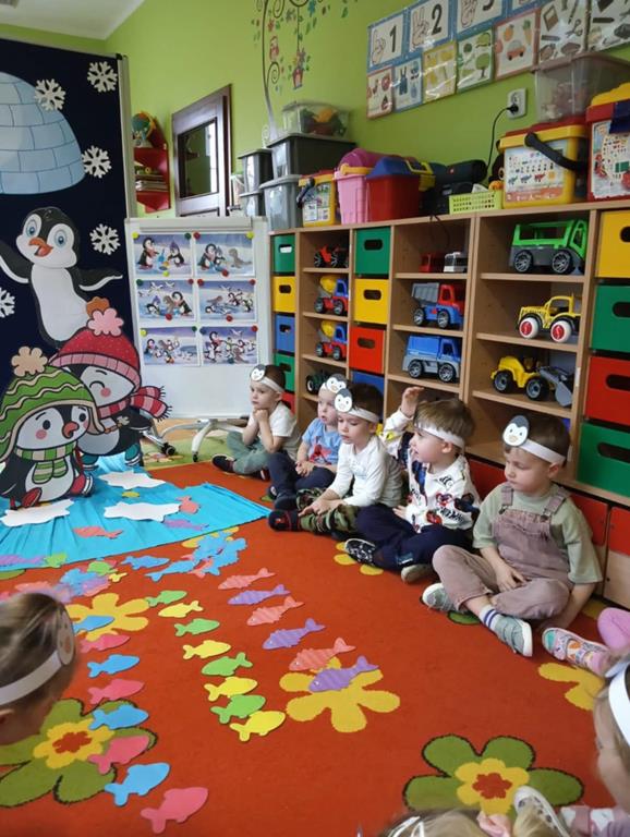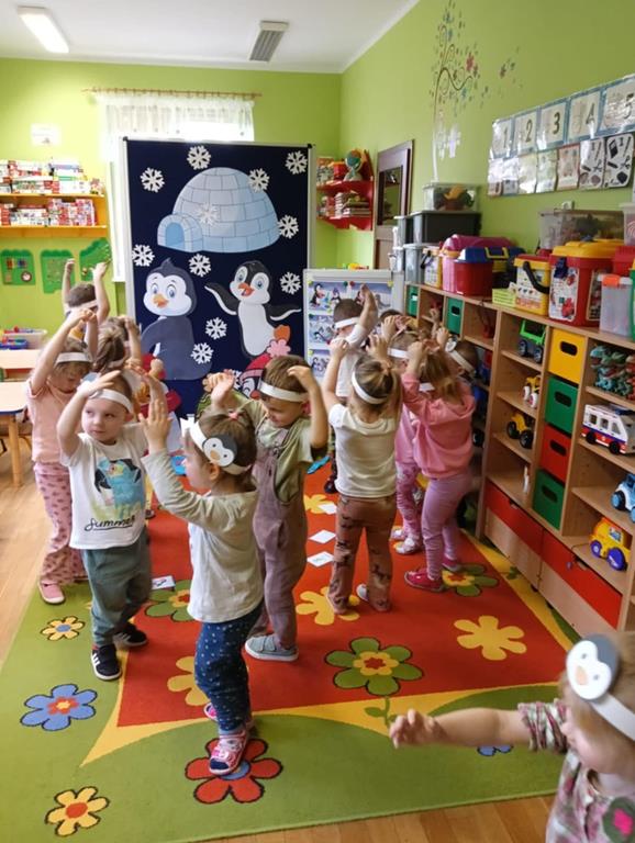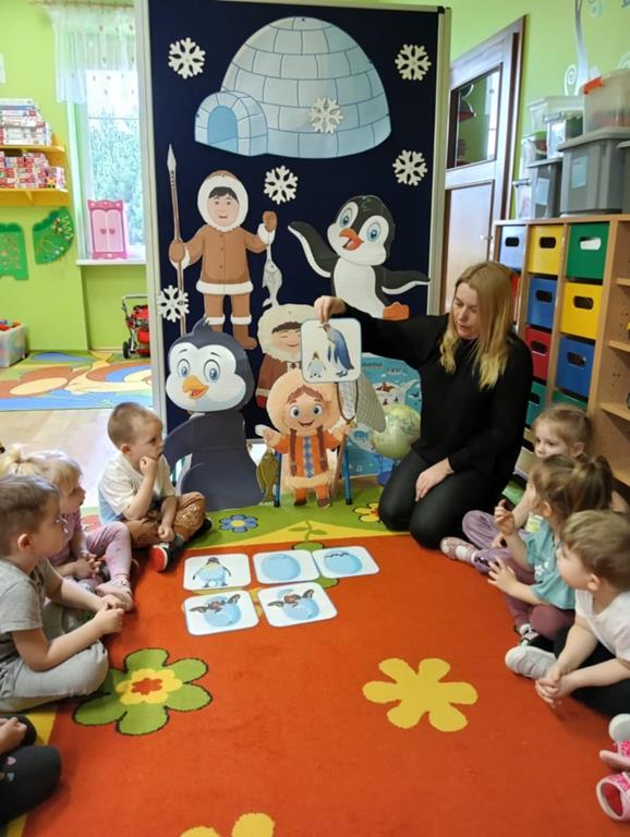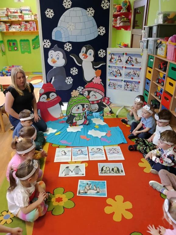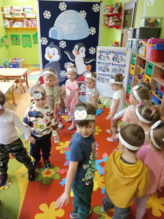 W ubiegłym tygodniu „Mrówki” i „Żuczki”, przeniosły się do ,,Krainy wiecznego lodu i śniegu”. Celem zajęć edukacyjnych było rozbudzanie u dzieci ciekawości do odkrywania świata, oraz zaznajomienie ich z warunkami panującymi w ,,Lodowej krainie”. Przedszkolaki dowiedziały się gdzie leży Biegun Północny i Południowy, poznały zwierzątka, które zamieszkują tamtejsze krainy i zapoznały się ze zwyczajami Eskimosów. Łowiły ryby i poznały właściwości lodu oraz śniegu. Wysłuchały historii o trzech bardzo śmiesznych ptakach Kleofasie, Klemensie i Lulku – pingwinach . Dowiedziały się wielu ciekawych rzeczy na temat życia tych nielotów. To był tydzień pełen wielu wrażeń i dobrej zabawy żegnający zimową porę roku.