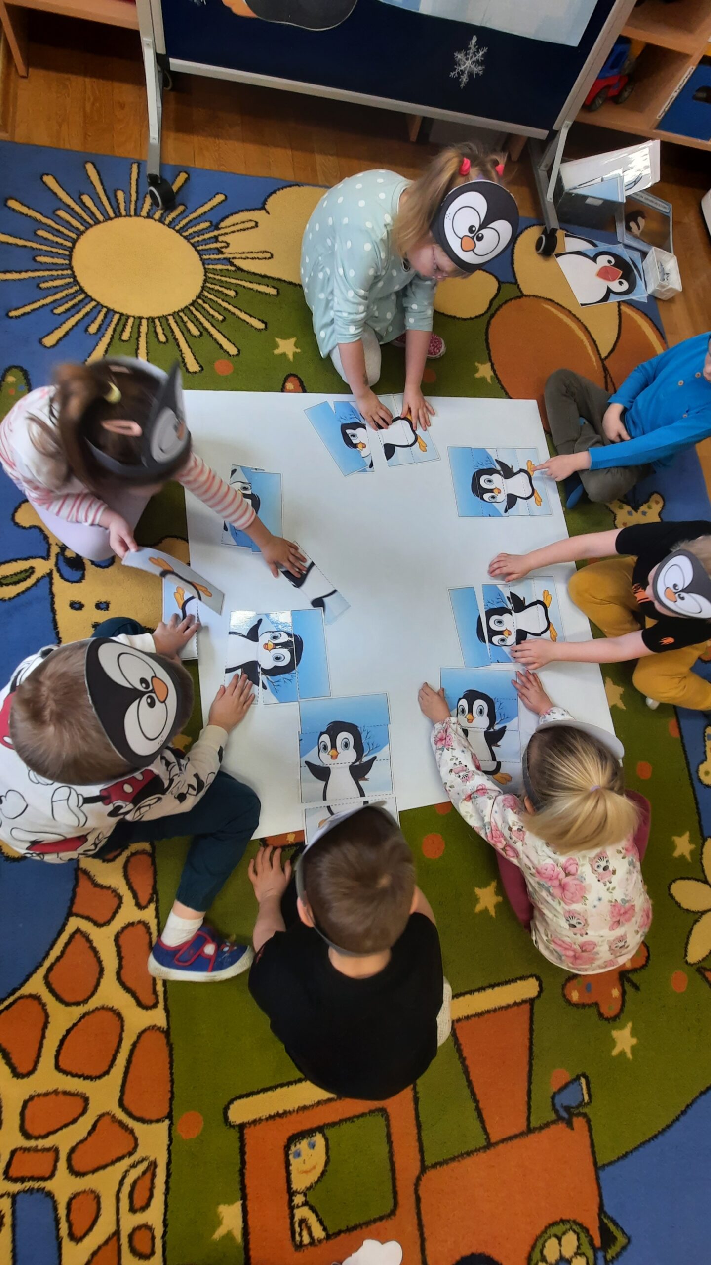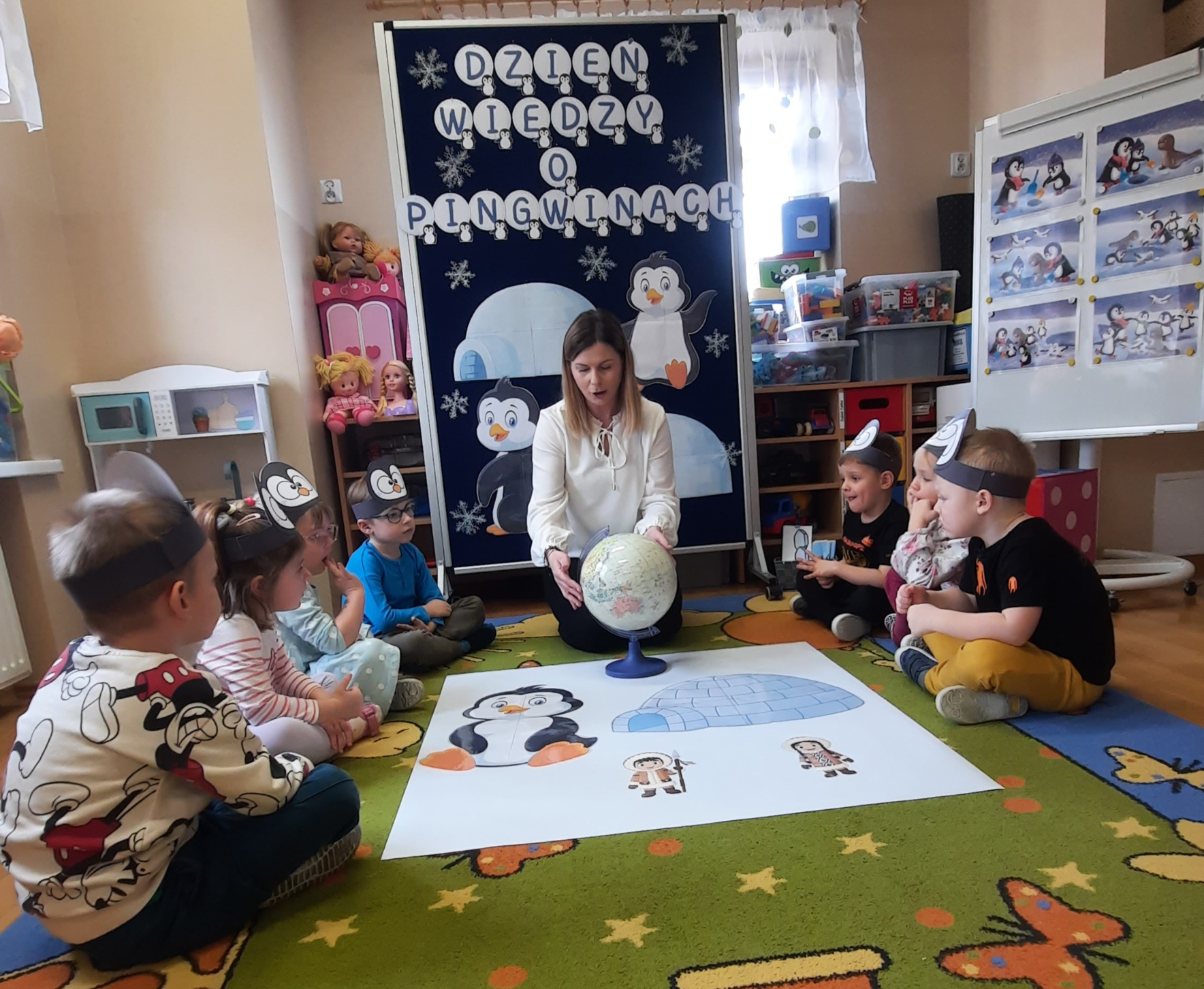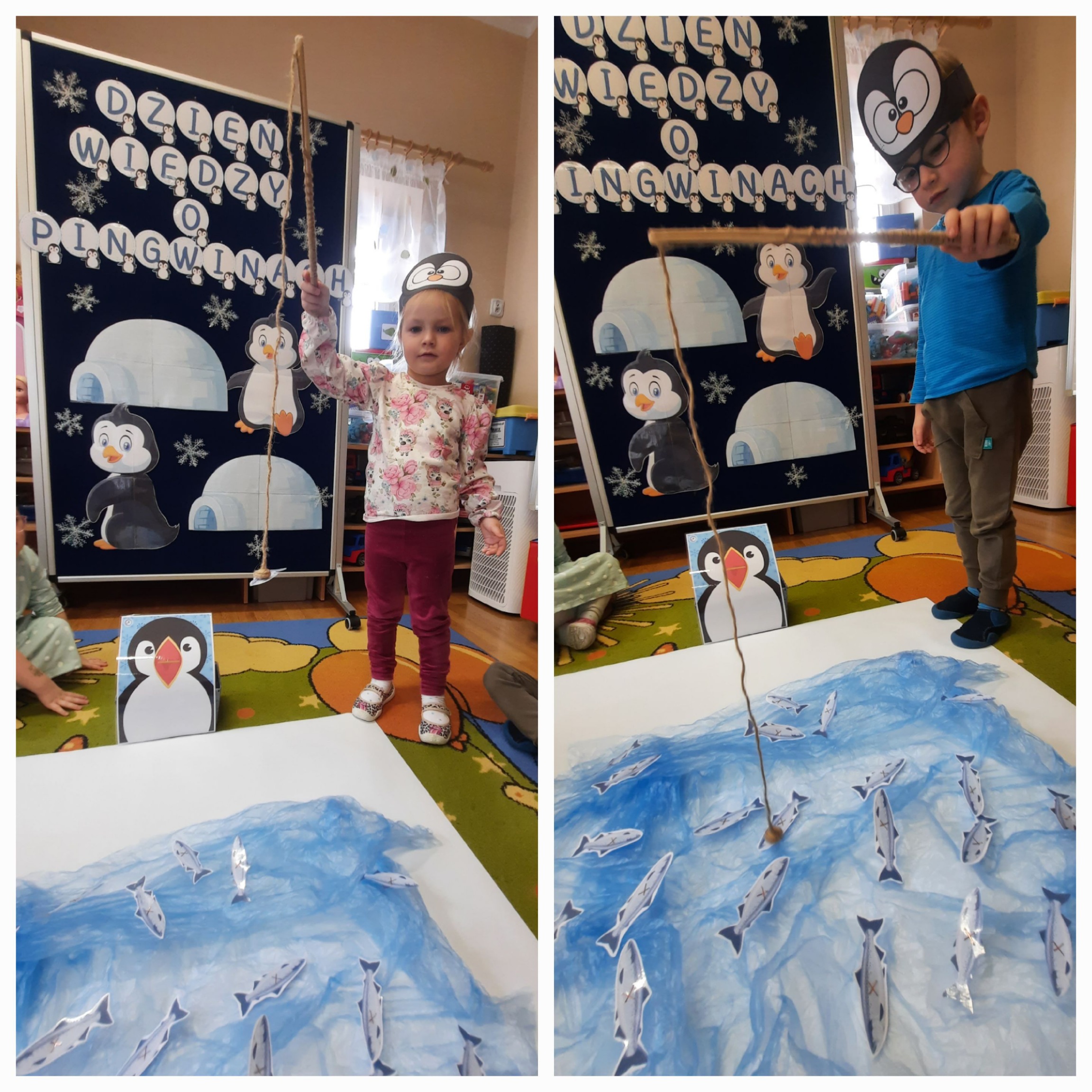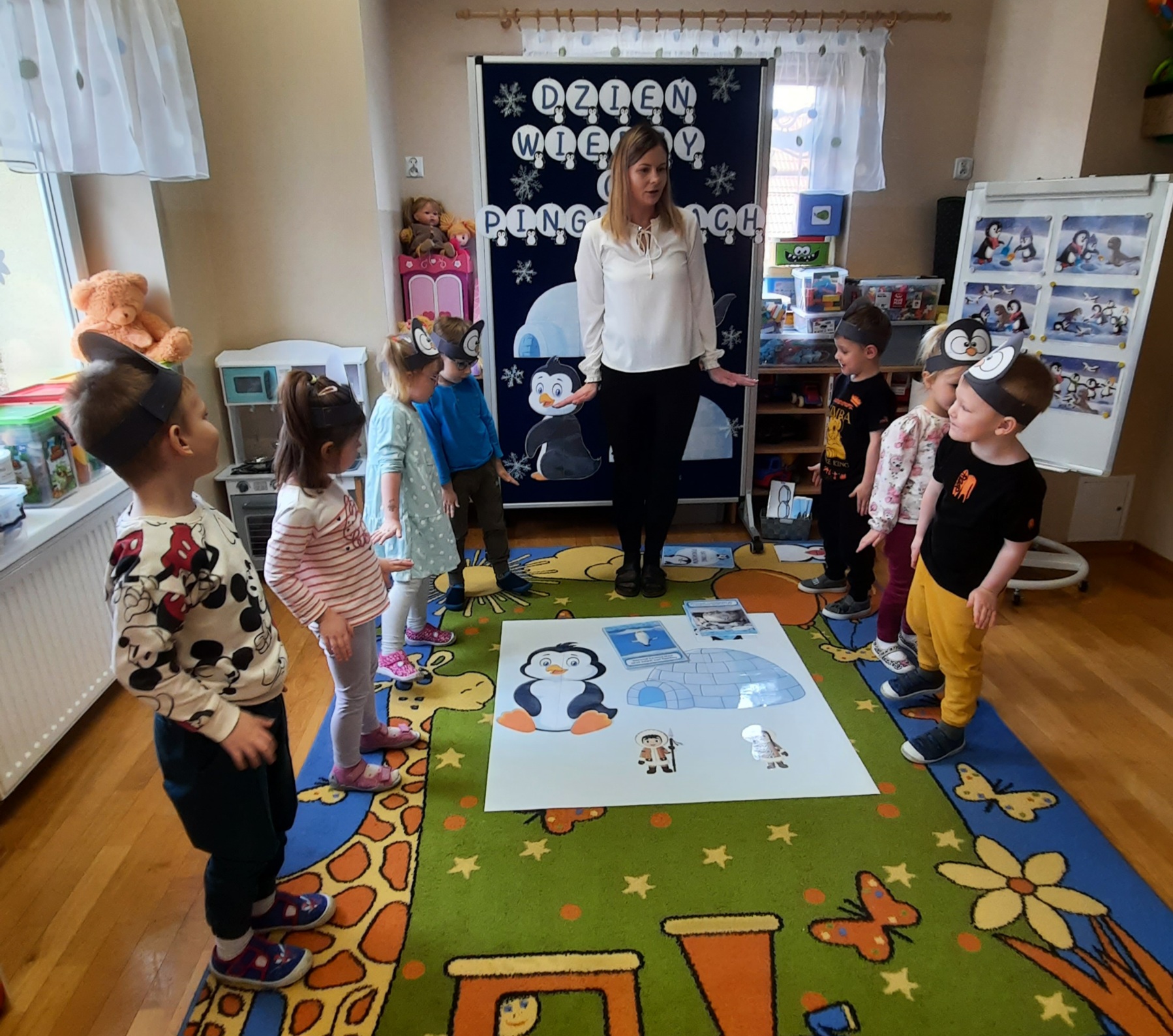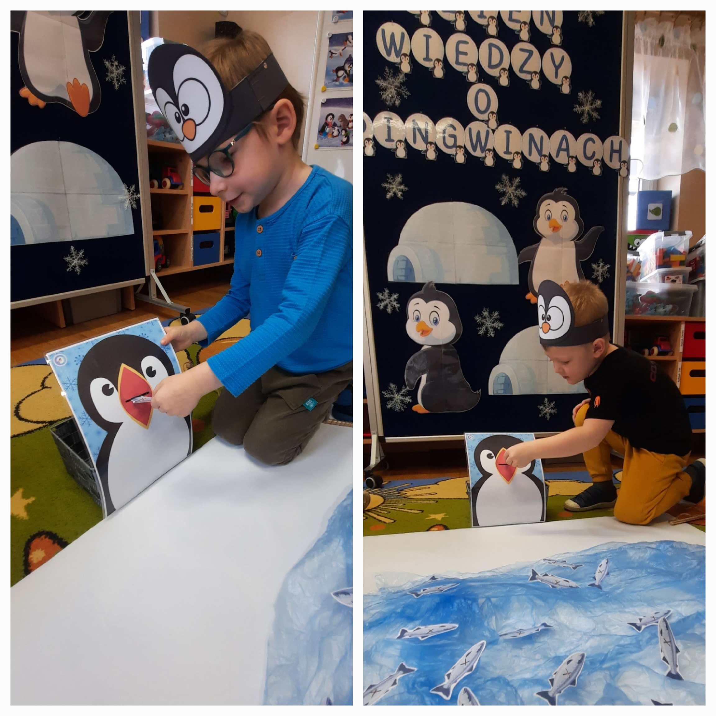 W ubiegłym tygodniu „Mrówki” i „Żuczki”, przeniosły się do ,,Krainy wiecznego lodu i śniegu”. Celem zajęć edukacyjnych było rozbudzanie u dzieci ciekawości do odkrywania świata, oraz zaznajomienie ich z warunkami panującymi w ,,Lodowej krainie”. Przedszkolaki dowiedziały się gdzie leży Biegun Północny i Południowy, poznały zwierzątka, które zamieszkują tamtejsze krainy i zapoznały się ze zwyczajami Eskimosów. Łowiły ryby i poznały właściwości lodu oraz śniegu. Wysłuchały historii o trzech bardzo śmiesznych ptakach Kleofasie, Klemensie i Lulku – pingwinach . Dowiedziały się wielu ciekawych rzeczy na temat życia tych nielotów. To był tydzień pełen wielu wrażeń i dobrej zabawy żegnający zimową porę roku.