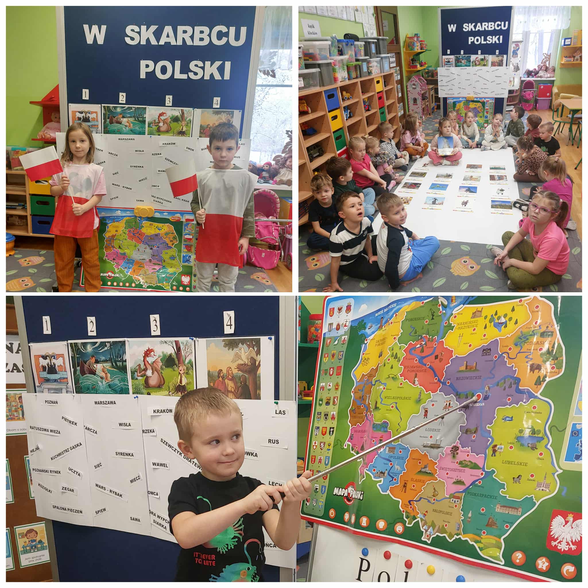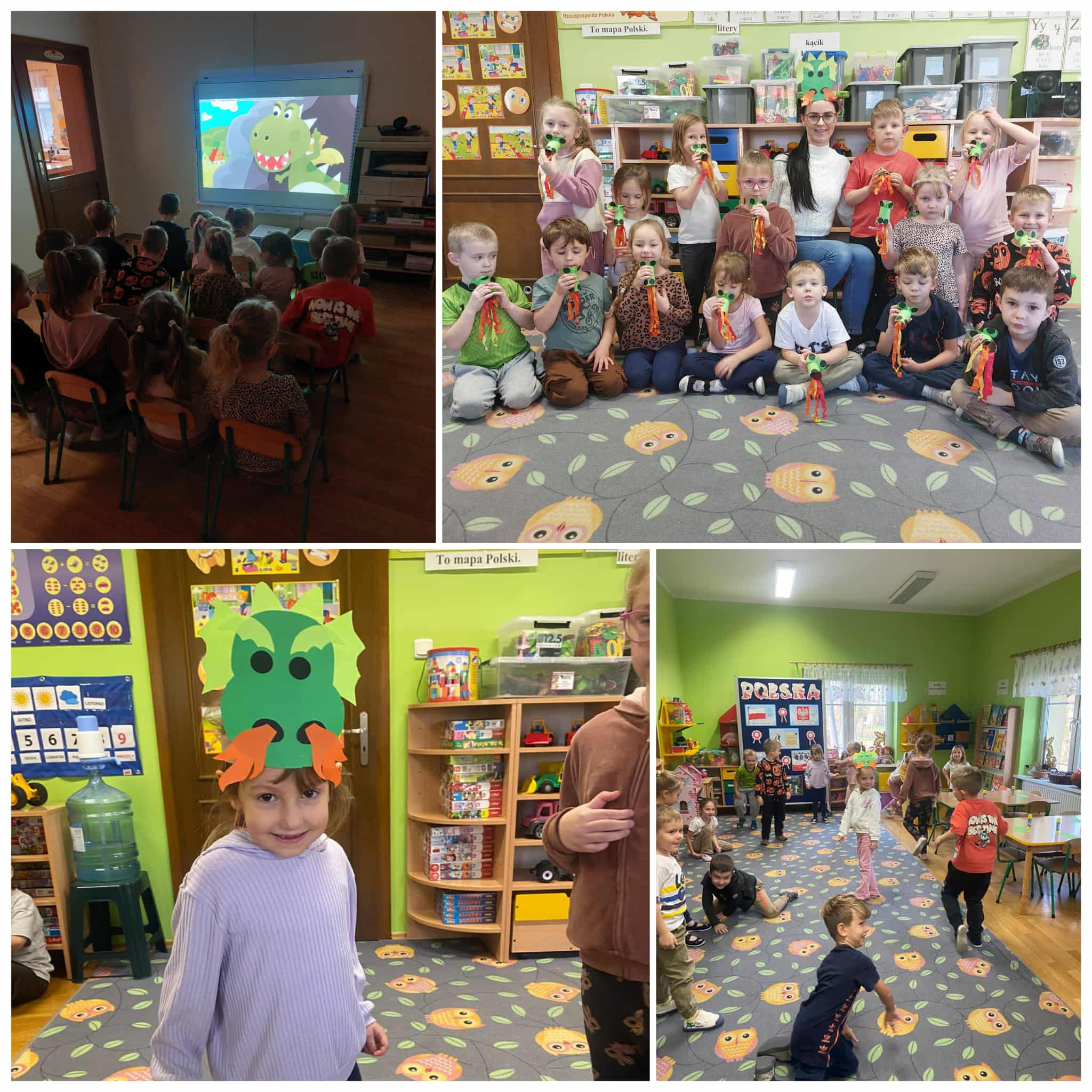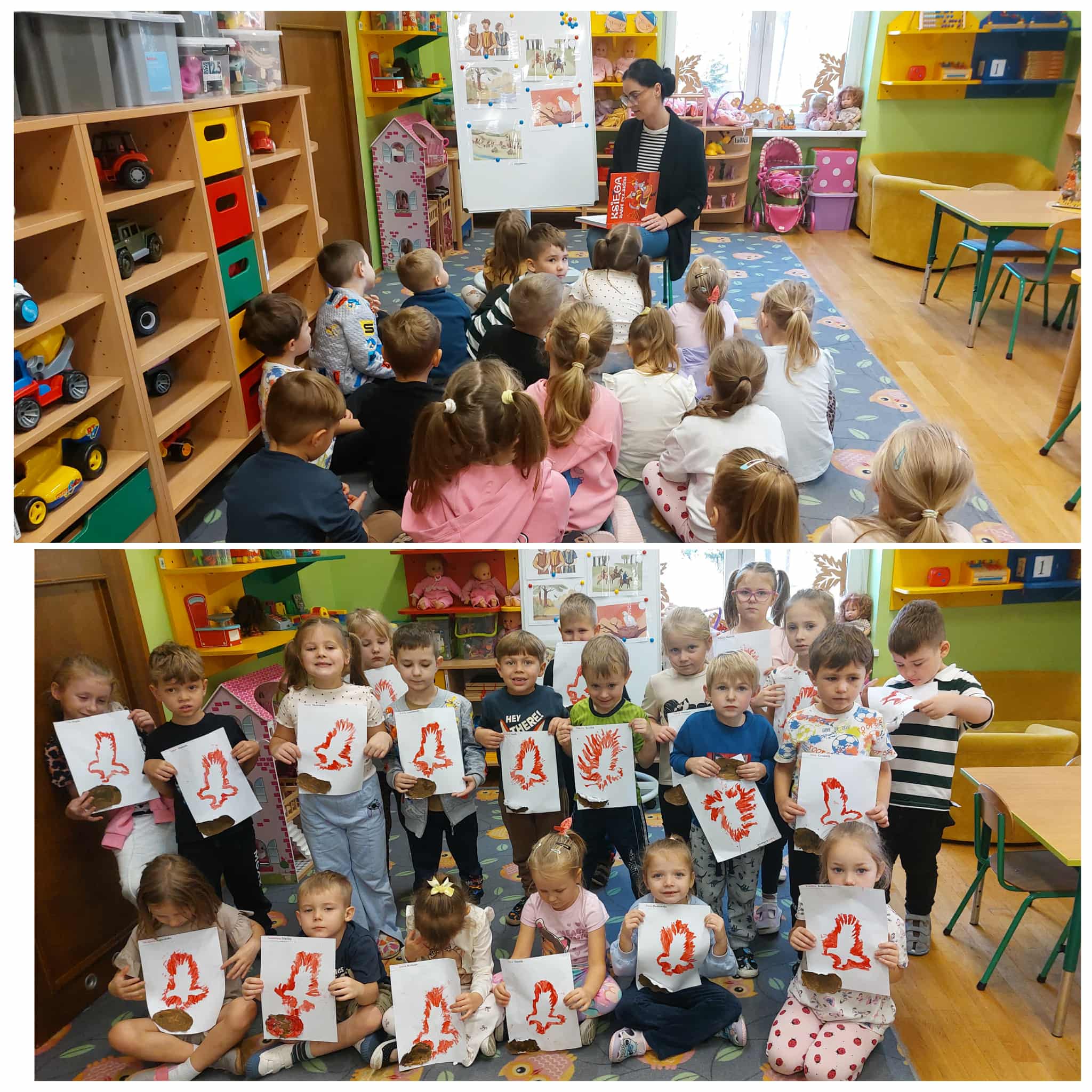 Listopad upłynął „Motylkom” pod znakiem niezwykłych opowieści i spotkań z bohaterami polskich legend. Naszą podróż rozpoczęliśmy od historii Lecha, Czecha i Rusa, trzech braci, którzy wyruszyli w świat, aby znaleźć swoje miejsce na ziemi. Dzieci z zainteresowaniem słuchały o białym orle szybującym nad gniazdem, który stał się symbolem naszego państwa. Następnie przenieśliśmy się nad Wisłę, gdzie poznaliśmy Syrenkę Warszawską – odważną i dobrą opiekunkę miasta. Dzieci były zaciekawione jej przygodami i chętnie dzieliły się własnymi wyobrażeniami o tym, jak mogłaby wyglądać i jakie dźwięki wydaje jej czarujący śpiew. Kolejną legendą była opowieść o Smoku Wawelskim, który od dawna wzbudza emocje u najmłodszych. Dzieci żywo reagowały na tę historię, komentując spryt szewczyka i próbując zrozumieć, dlaczego smok tak bardzo lubił straszyć mieszkańców Krakowa. Na zakończenie poznaliśmy zabawną historię Koziołków Poznańskich, które zamiast zachowywać się dostojnie – skakały wesoło na ratuszowej wieży. Ta legenda wywołała wiele uśmiechów i radosnych komentarzy. Dzieci aktywnie uczestniczyły w zajęciach: słuchały, dyskutowały, zadawały pytania i z łatwością przenosiły się w świat dawnych opowieści. Każda legenda była dla nich nie tylko ciekawą historią, ale także okazją do przeżywania nowych emocji i rozwijania dziecięcej wyobraźni.