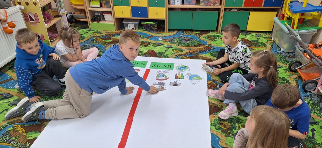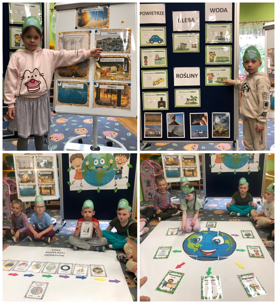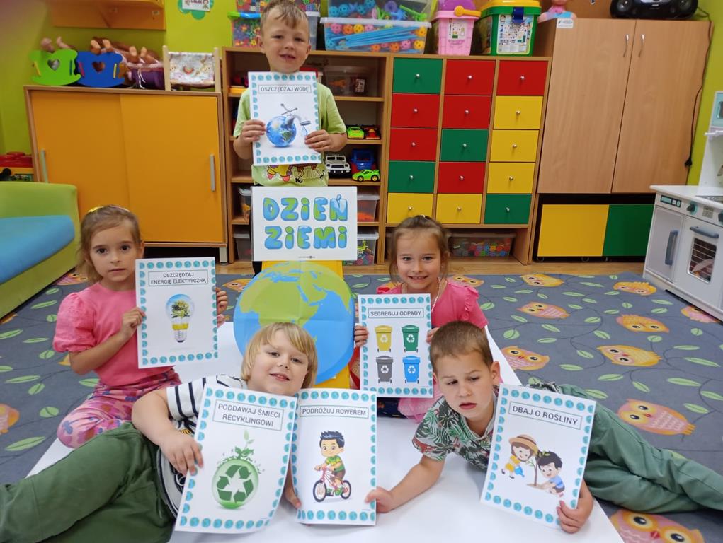 Każdego roku 22 kwietnia, na całym globie, obchodzony jest Światowy Dzień Ziemi. Celem święta jest promowanie proekologicznych postaw oraz budowanie wspólnej odpowiedzialności za Ziemię. Przedszkolaki w czasie wspólnych zajęć dowiedziały się, jak dbać o środowisko i otaczającą nas przyrodę. Oczywiście nie zabrakło pięknych prac plastycznych wykonanych rękami dzieci o tematyce ekologicznej. Dzieci miały okazję porozmawiać o tym, że Ziemia jest jedyną zamieszkaną planetą i jednocześnie naszym domem, więc musimy o nią dbać jak najlepiej potrafimy. „Im więcej nas, tym dla Ziemi lepszy czas” są dobitnym potwierdzeniem, że piękno naszej Planety jest w rękach najmłodszego pokolenia.