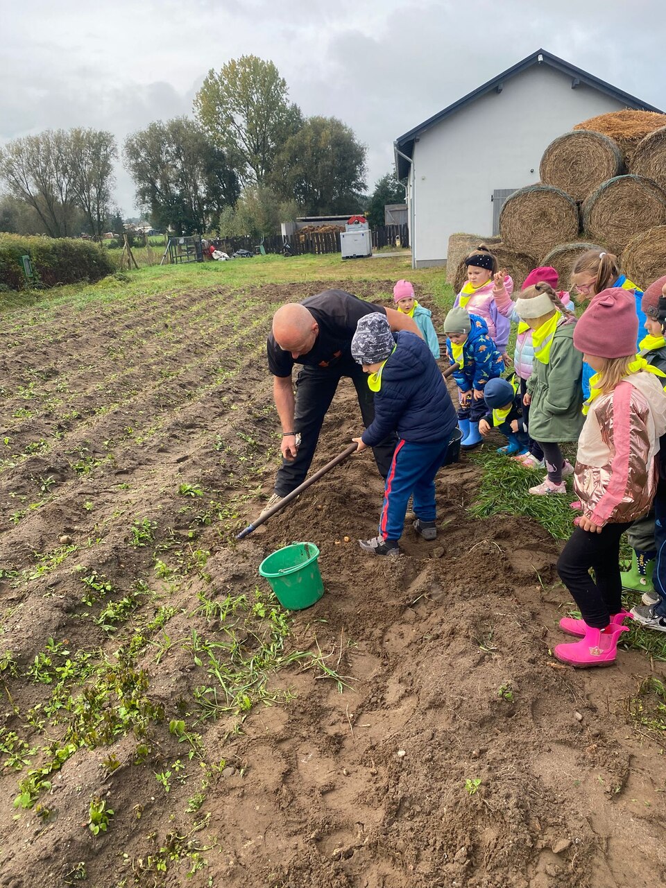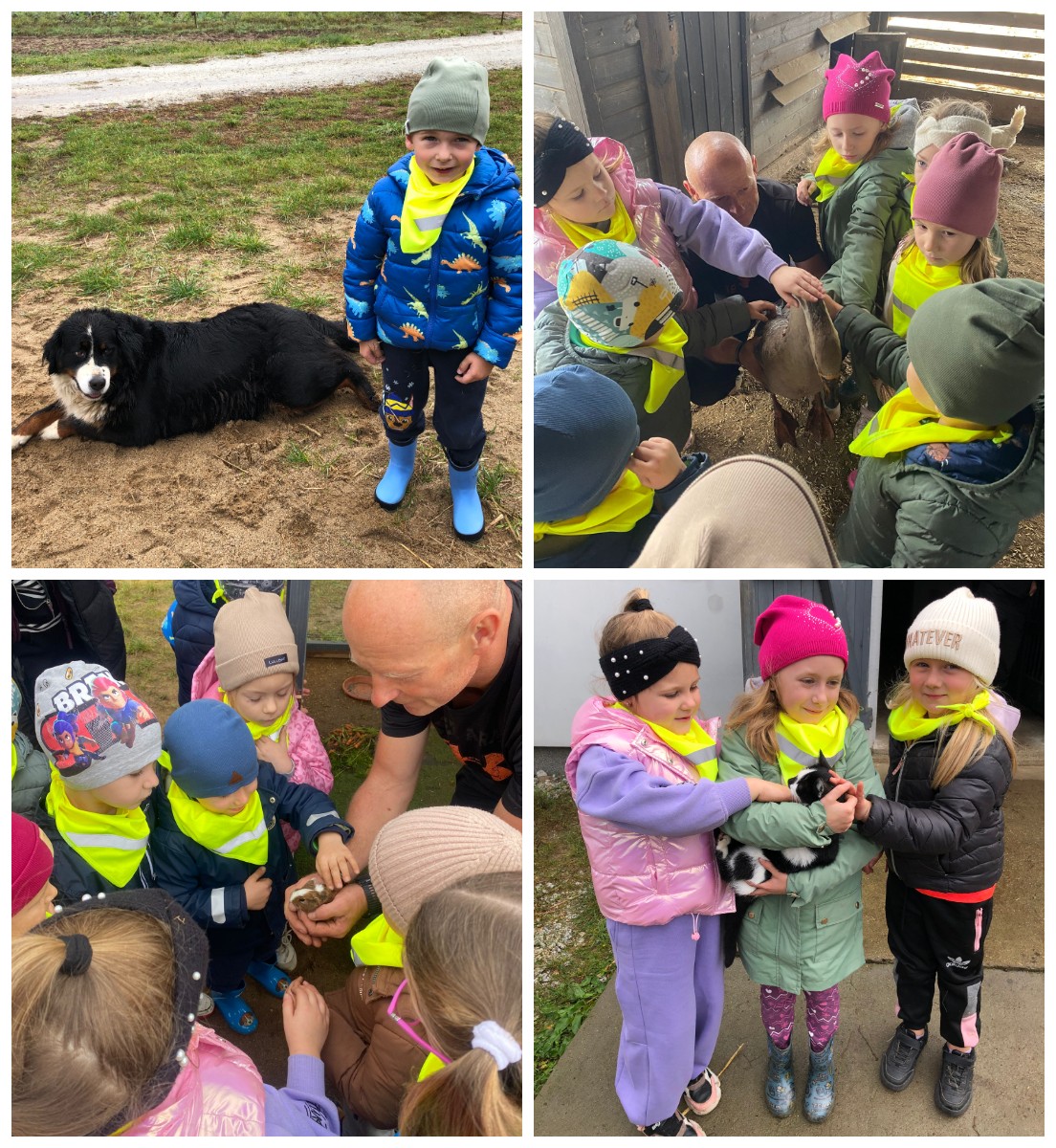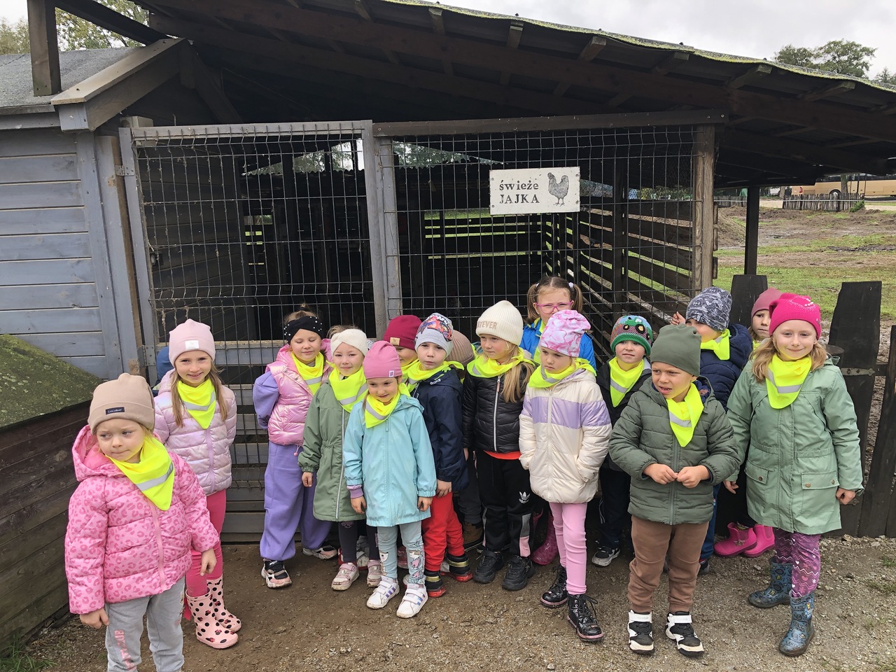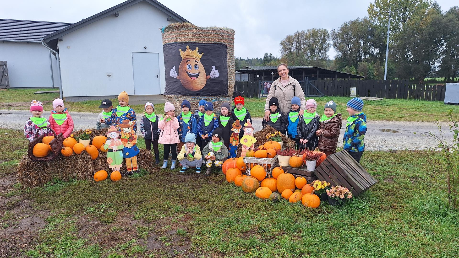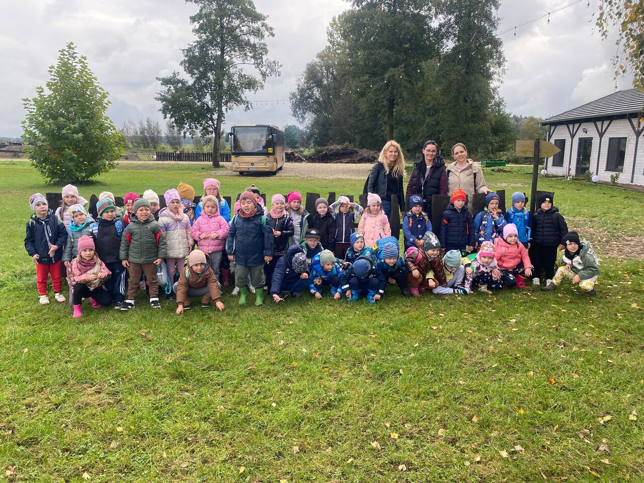 Dnia 9 października 2025 roku dzieci z oddziału Biedronek i Motylków udały się na wycieczkę autokarową do Gospodarstwa Agroturystycznego „Wesołe Ranczo” w miejscowości Niechłód. Na miejscu na dzieci czekało mnóstwo atrakcji. Na początku przedszkolaki zapoznały się z uprawą ziemniaków, miały okazję samodzielnie brać udział w wykopkach i odnajdywać w ziemi ziemniaczane skarby. Największą radość sprawił dzieciom spacer po ekologicznym gospodarstwie i spotkanie z wiejskimi zwierzętami. Przedszkolaki mogły karmić i głaskać młode cielaki, kózki, kucyki, króliki, świnki morskie, kaczki, gęsi i kury. Na koniec zostaliśmy ugoszczeni pysznym ciastem czekoladowym, kiełbaską i ziemniaczkami z ogniska. Pełny emocji i radości październikowy dzień upłynął dzieciom stanowczo za szybko. W drodze powrotnej, pomimo zmęczenia, dzieciom dopisywały humory i z entuzjazmem dzieliły się wrażeniami z wycieczki.