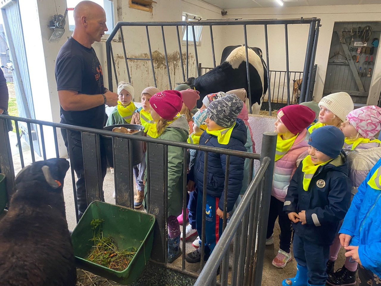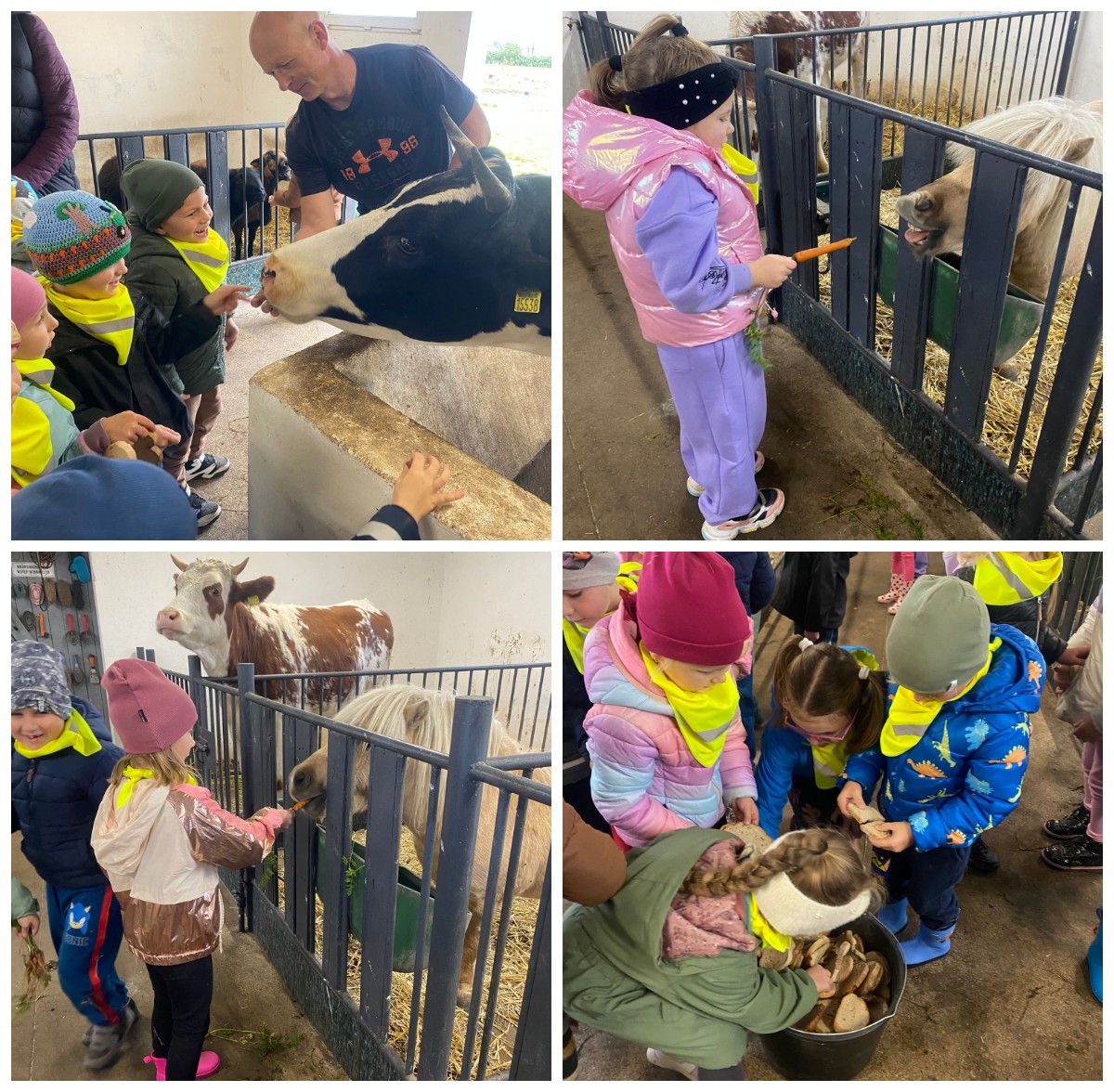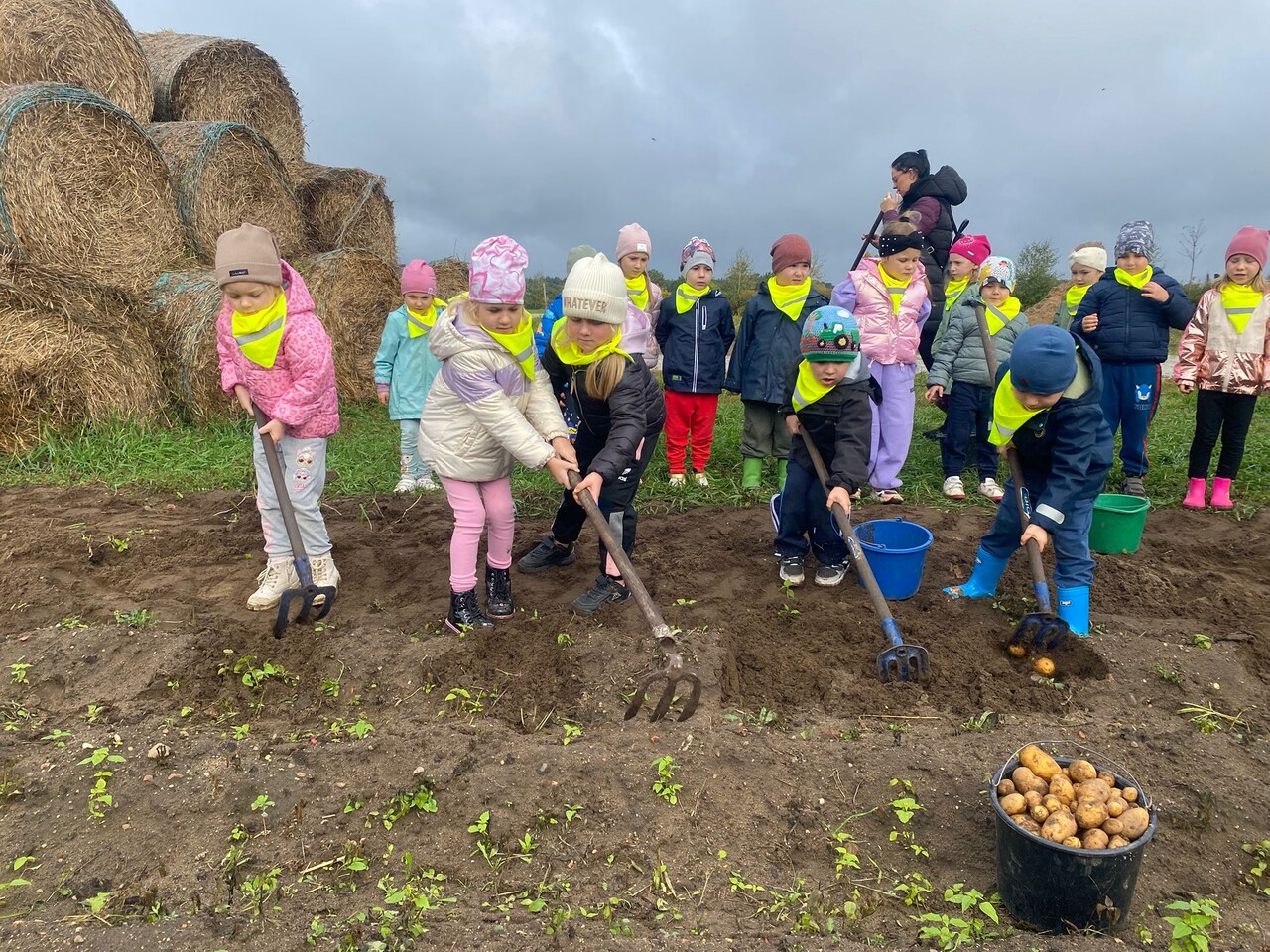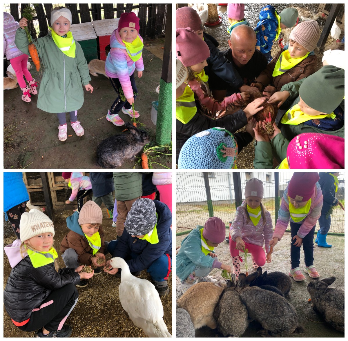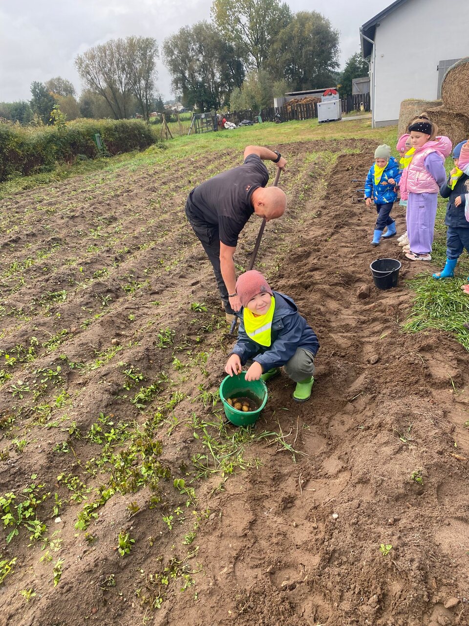 Dnia 9 października 2025 roku dzieci z oddziału Biedronek i Motylków udały się na wycieczkę autokarową do Gospodarstwa Agroturystycznego „Wesołe Ranczo” w miejscowości Niechłód. Na miejscu na dzieci czekało mnóstwo atrakcji. Na początku przedszkolaki zapoznały się z uprawą ziemniaków, miały okazję samodzielnie brać udział w wykopkach i odnajdywać w ziemi ziemniaczane skarby. Największą radość sprawił dzieciom spacer po ekologicznym gospodarstwie i spotkanie z wiejskimi zwierzętami. Przedszkolaki mogły karmić i głaskać młode cielaki, kózki, kucyki, króliki, świnki morskie, kaczki, gęsi i kury. Na koniec zostaliśmy ugoszczeni pysznym ciastem czekoladowym, kiełbaską i ziemniaczkami z ogniska. Pełny emocji i radości październikowy dzień upłynął dzieciom stanowczo za szybko. W drodze powrotnej, pomimo zmęczenia, dzieciom dopisywały humory i z entuzjazmem dzieliły się wrażeniami z wycieczki.