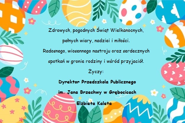 Zdrowych, pogodnych Świąt Wielkanocnych, pełnych wiary, nadziei i miłości. Radosnego, wiosennego nastroju oraz serdecznych spotkań w gronie rodziny i wśród przyjaciół.