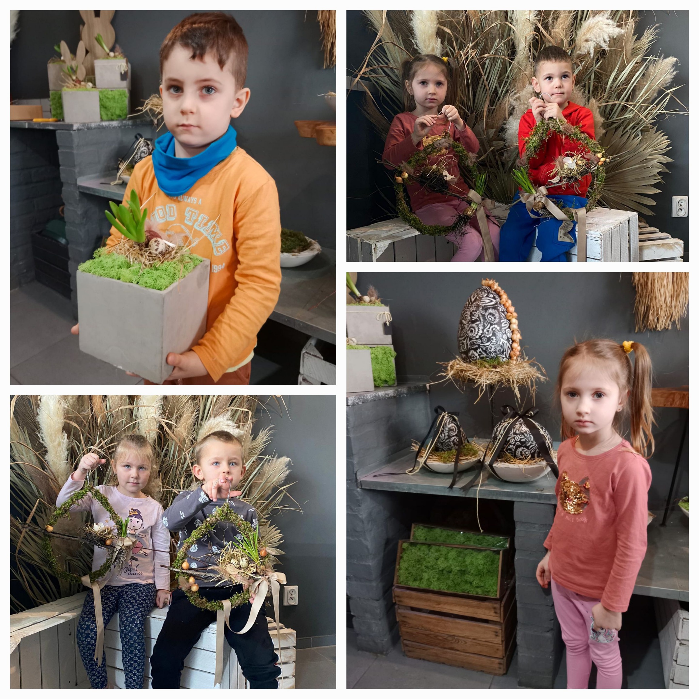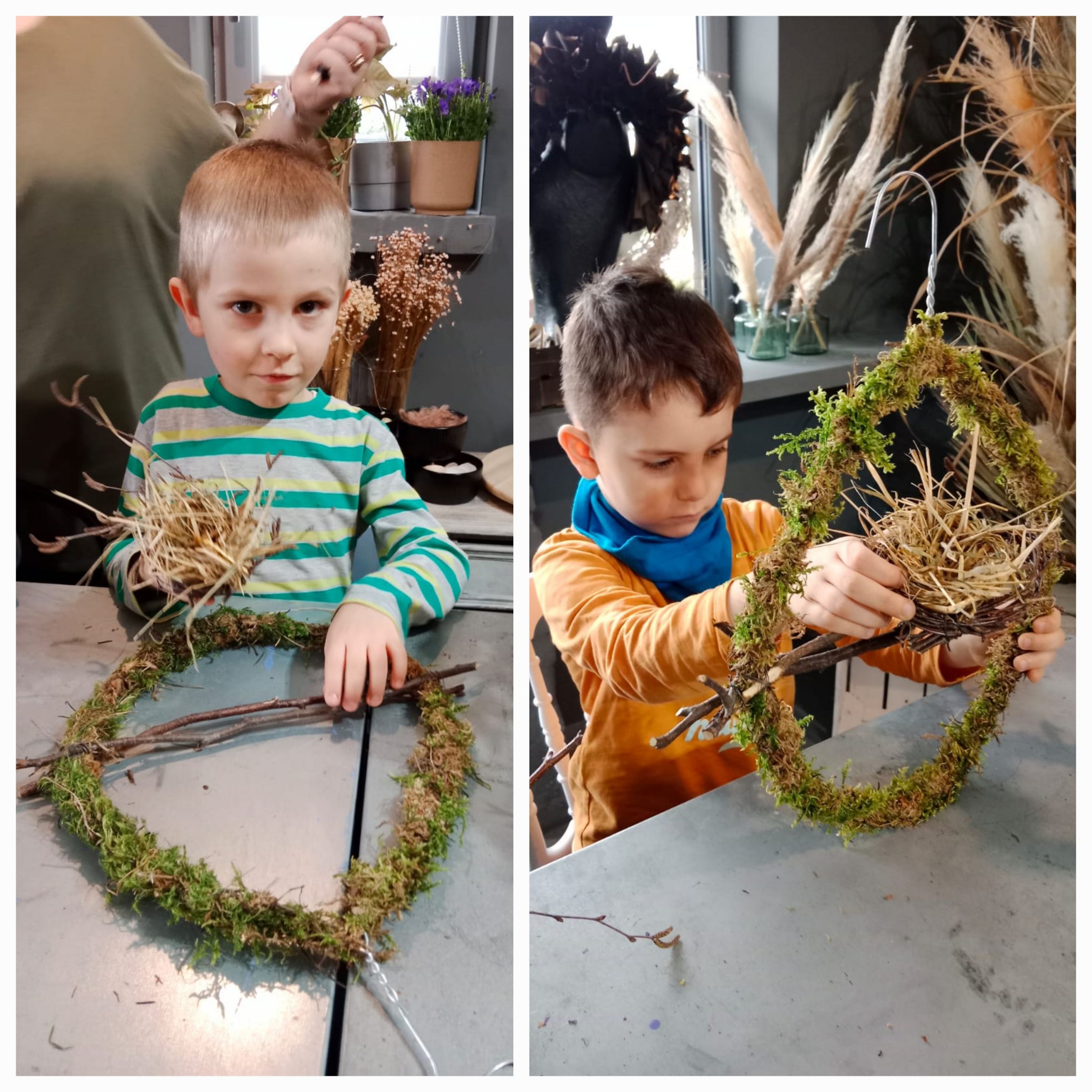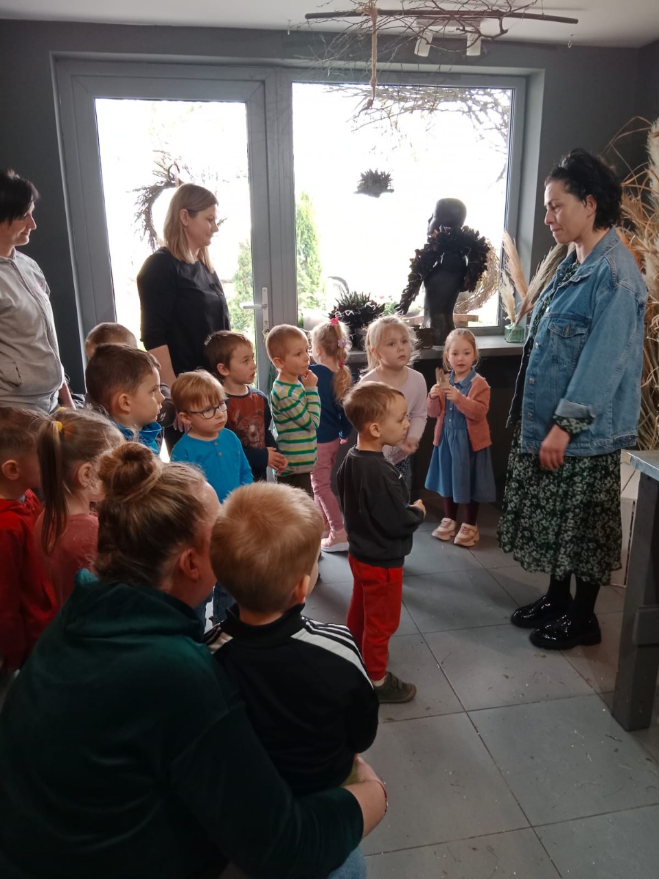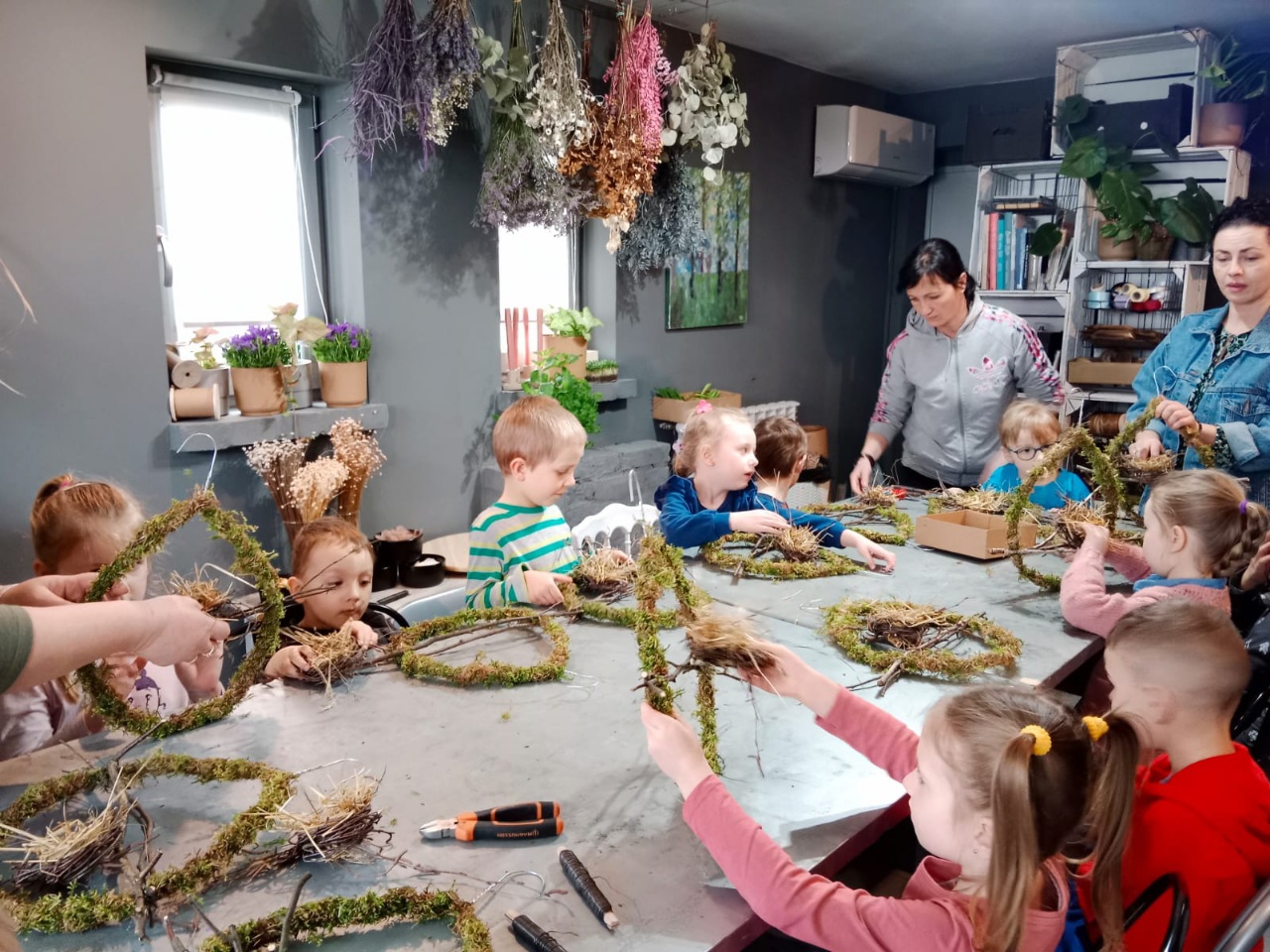 Dnia 22 marca przedszkolaki z oddziału „Mrówki”, udały się do kwiaciarni „Mięta do kwiatów” na warsztaty florystyczne. Gdzie pod czujnym okiem zawodowej florystki Pani Moniki Kasprzyk, dzieci maiły możliwość aktywnego uczestnictwa w niezwykle wyjątkowych warsztatach. Podczas tworzenia wianków świątecznych przedszkolaki manipulowały materiałem naturalnym i wykorzystały: mech, patyki, sianko, kwiaty i cebulki kwiatowe, jajeczka różnej wielkości i piórka. Dzieci doskonaliły technikę owijania materiału naturalnego na wianek za pomocą drucika. Każdy wianek był piękny i niepowtarzalny, a co najważniejsze samodzielnie wykonany i zabrany przez dzieci do domu. Dziękujemy Pani Monice za poświęcony czas i możliwość wykonania dekoracji pod fachowym okiem florysty.