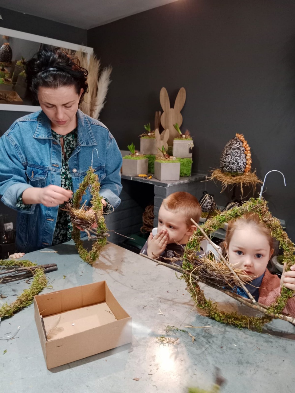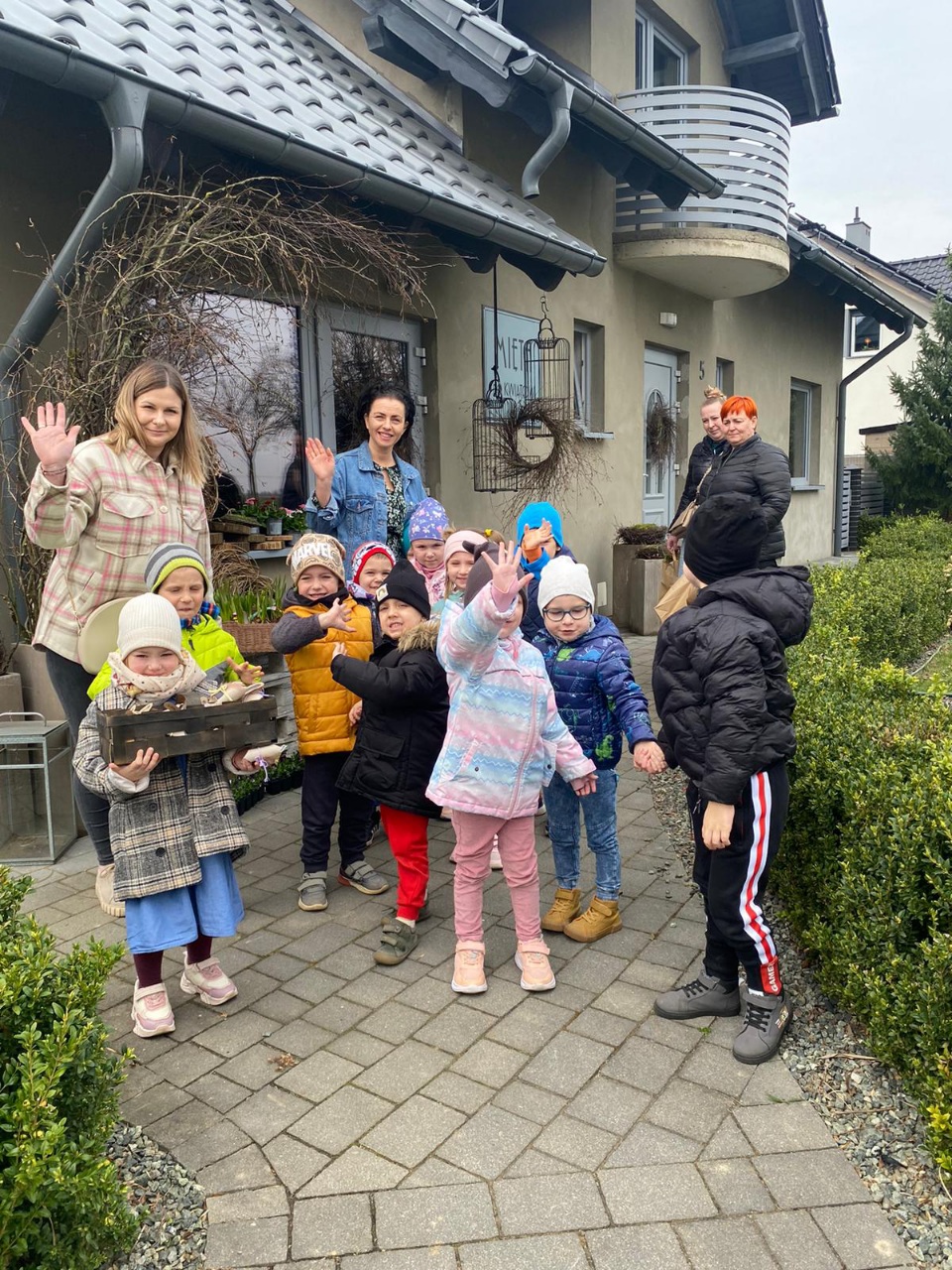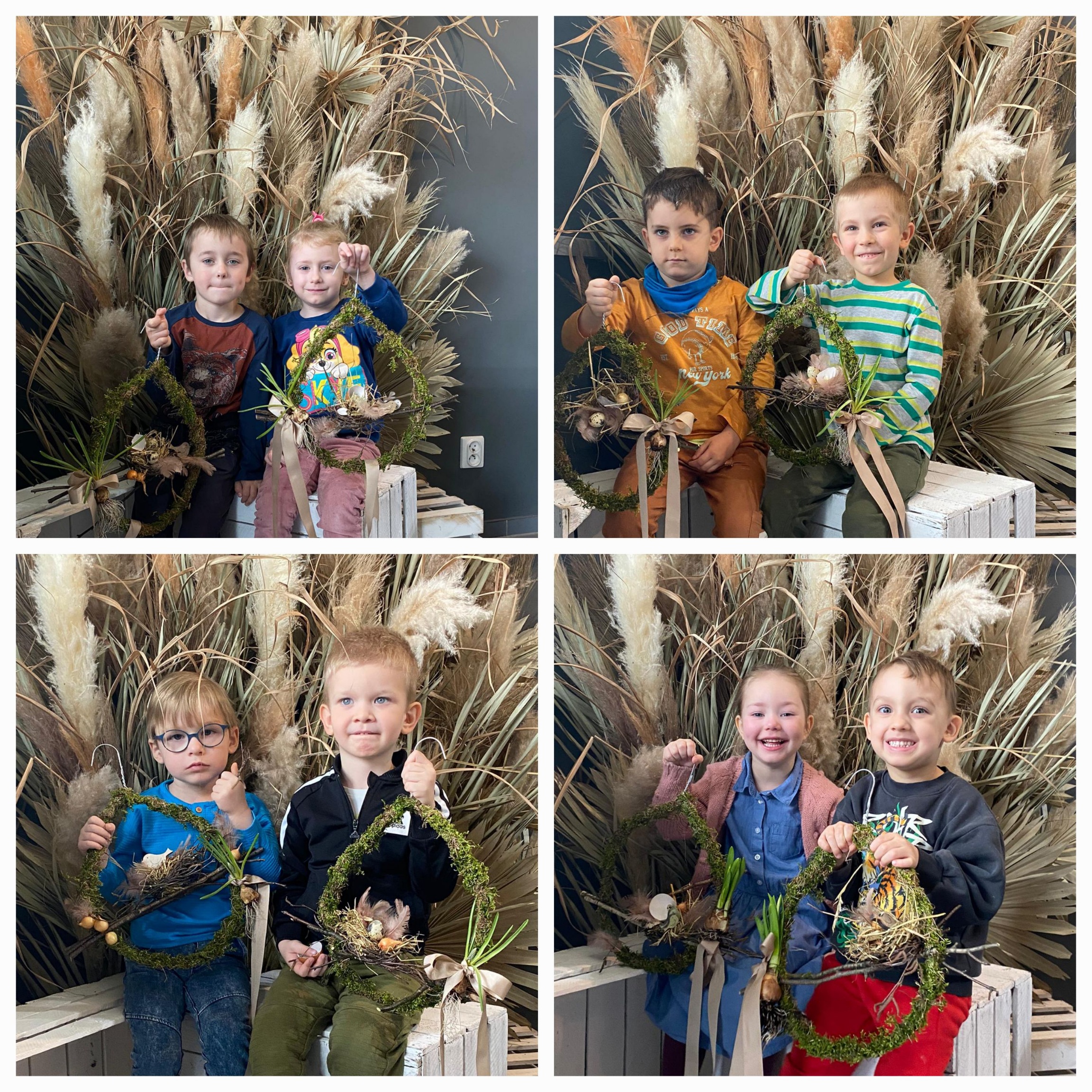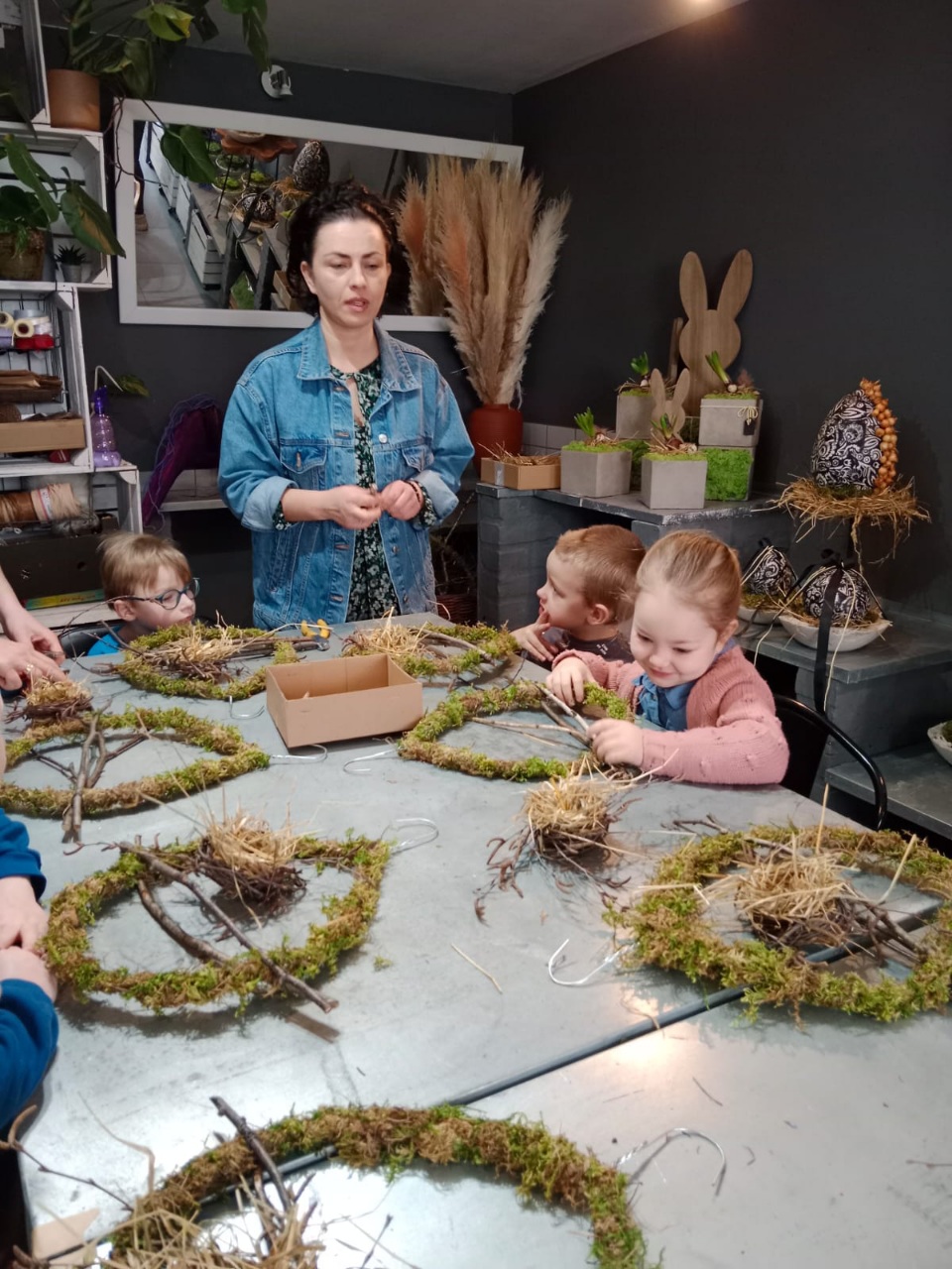 Dnia 22 marca przedszkolaki z oddziału „Mrówki”, udały się do kwiaciarni „Mięta do kwiatów” na warsztaty florystyczne. Gdzie pod czujnym okiem zawodowej florystki Pani Moniki Kasprzyk, dzieci maiły możliwość aktywnego uczestnictwa w niezwykle wyjątkowych warsztatach. Podczas tworzenia wianków świątecznych przedszkolaki manipulowały materiałem naturalnym i wykorzystały: mech, patyki, sianko, kwiaty i cebulki kwiatowe, jajeczka różnej wielkości i piórka. Dzieci doskonaliły technikę owijania materiału naturalnego na wianek za pomocą drucika. Każdy wianek był piękny i niepowtarzalny, a co najważniejsze samodzielnie wykonany i zabrany przez dzieci do domu. Dziękujemy Pani Monice za poświęcony czas i możliwość wykonania dekoracji pod fachowym okiem florysty.